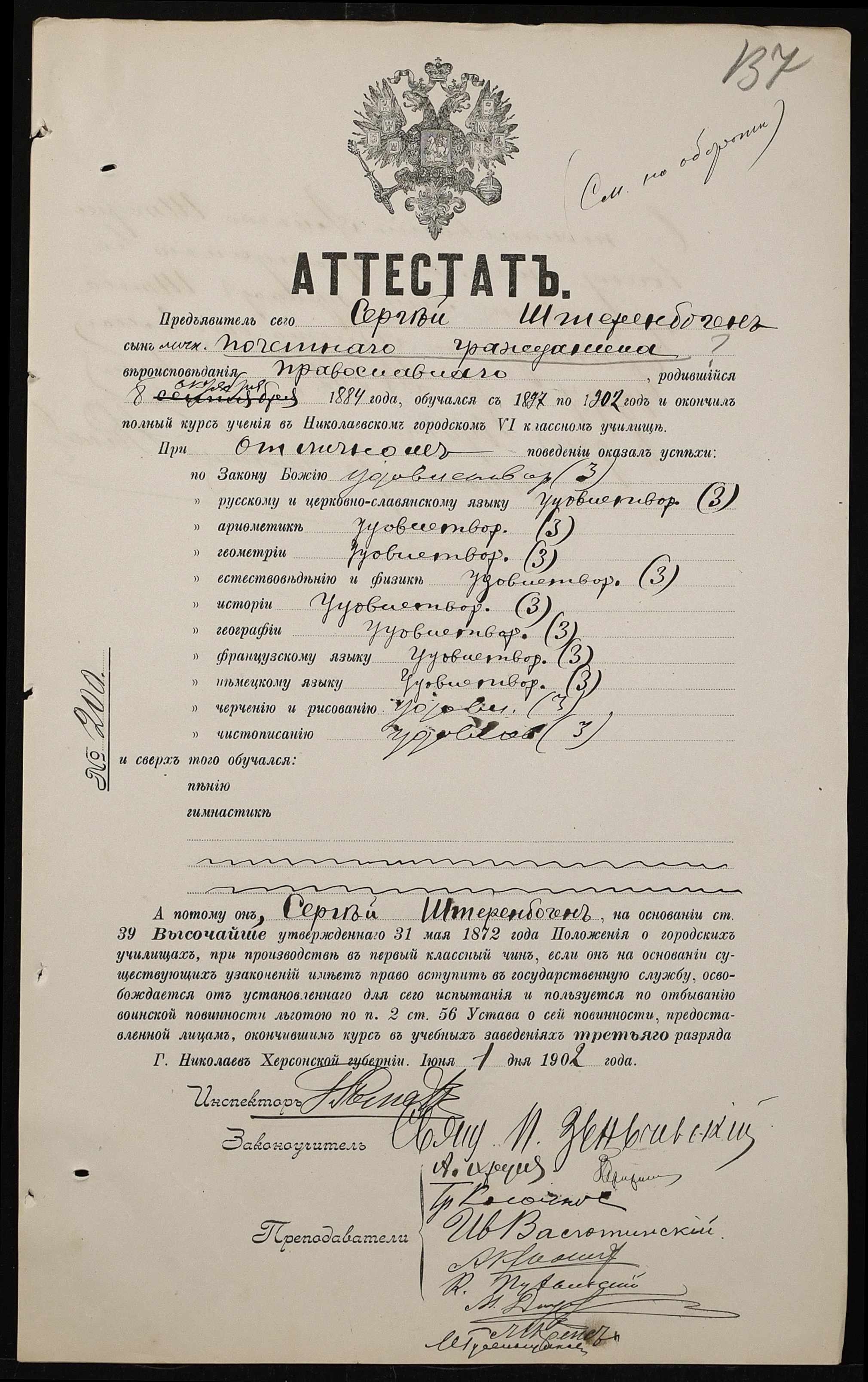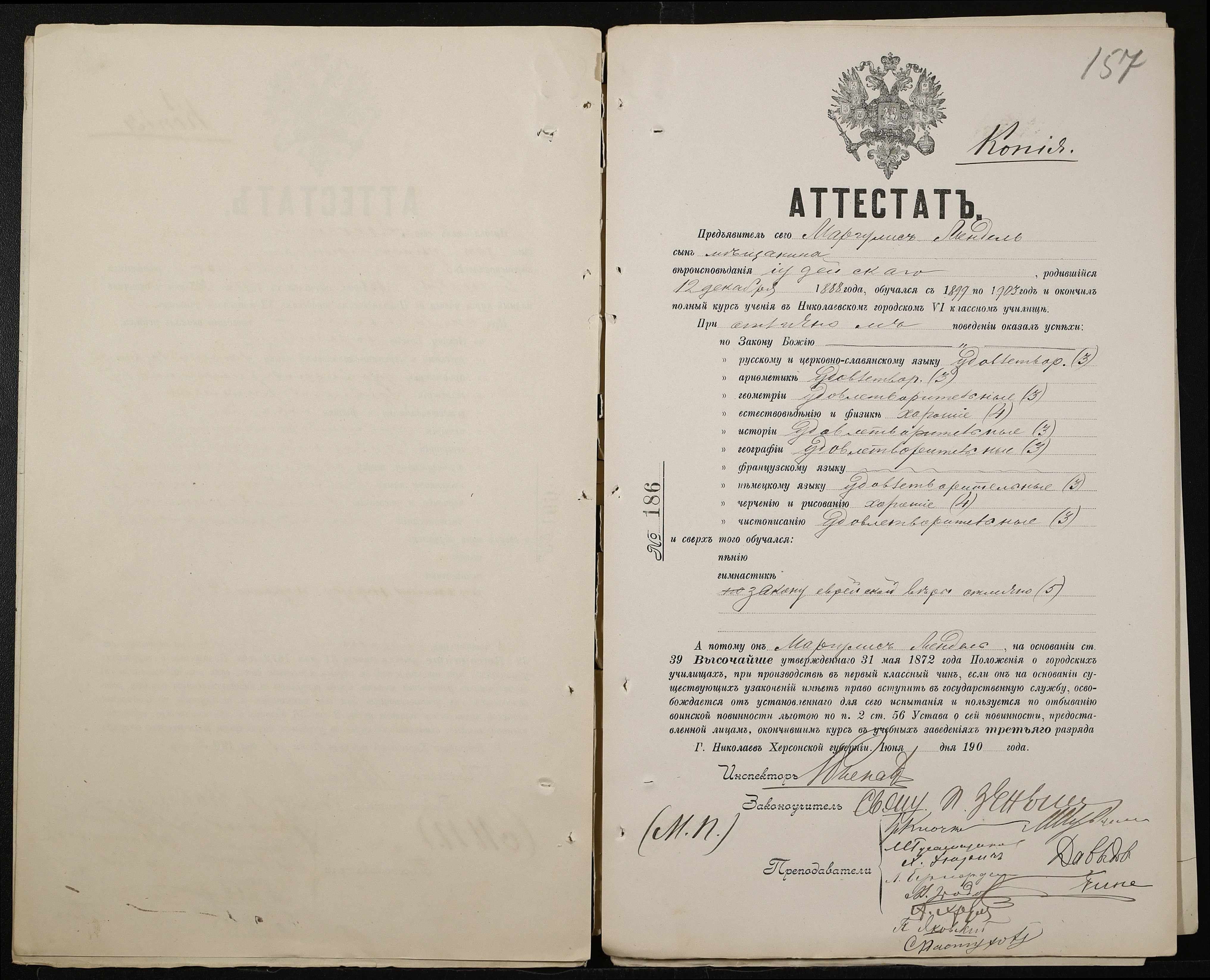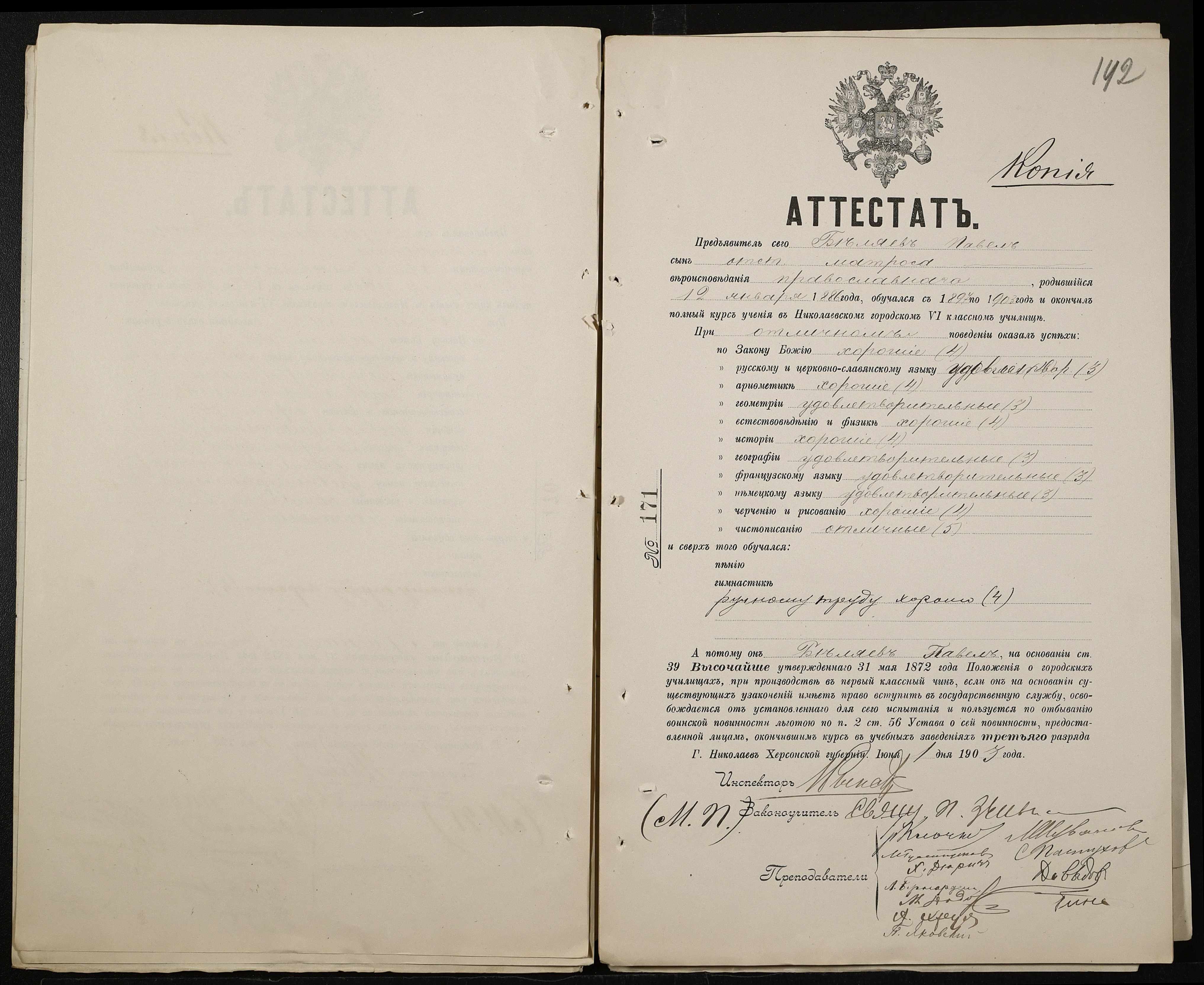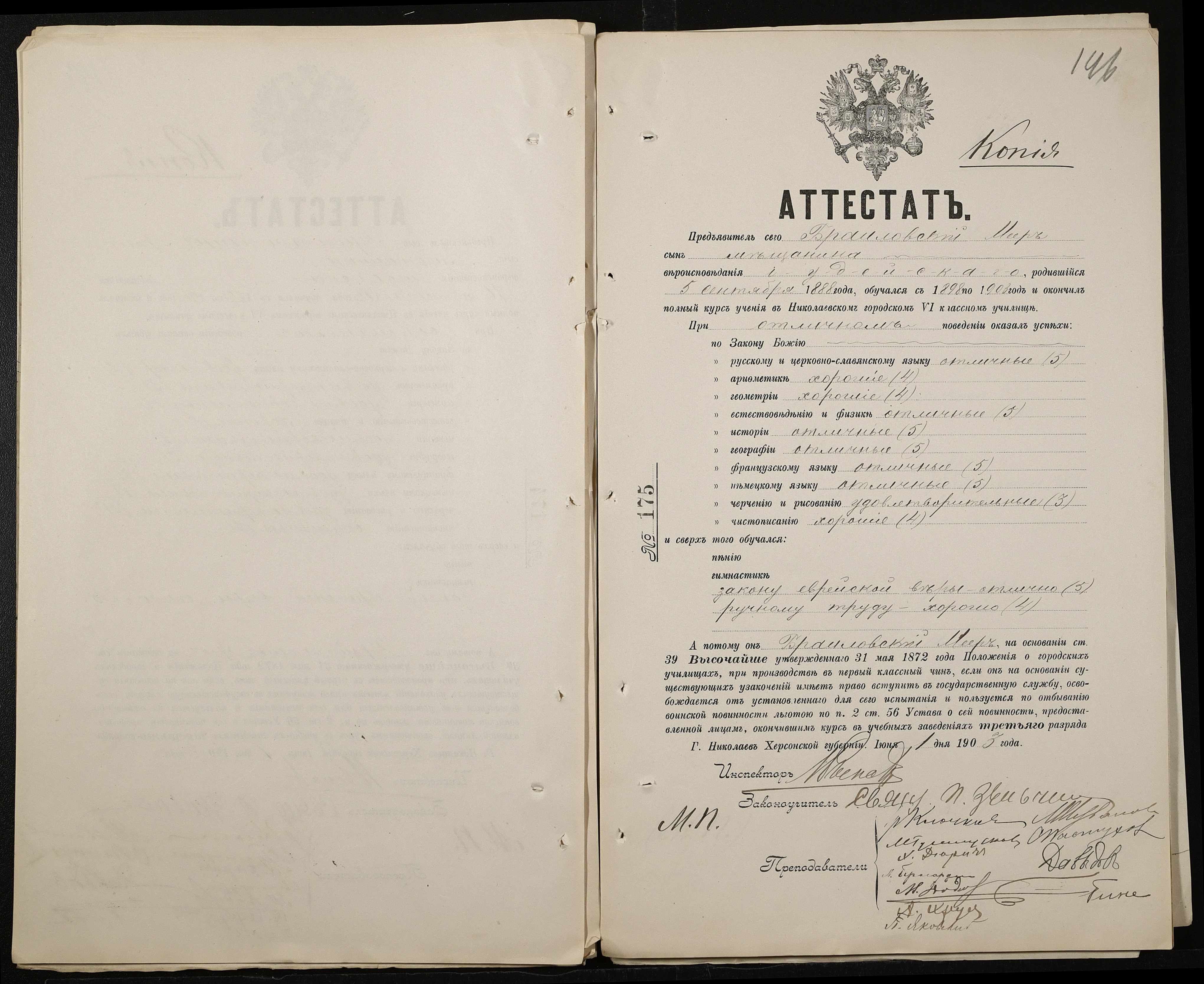 • • • • Справа № 389 “Атестати учнів про закінчення чотирикласного (шестикласного) училища (копії)”