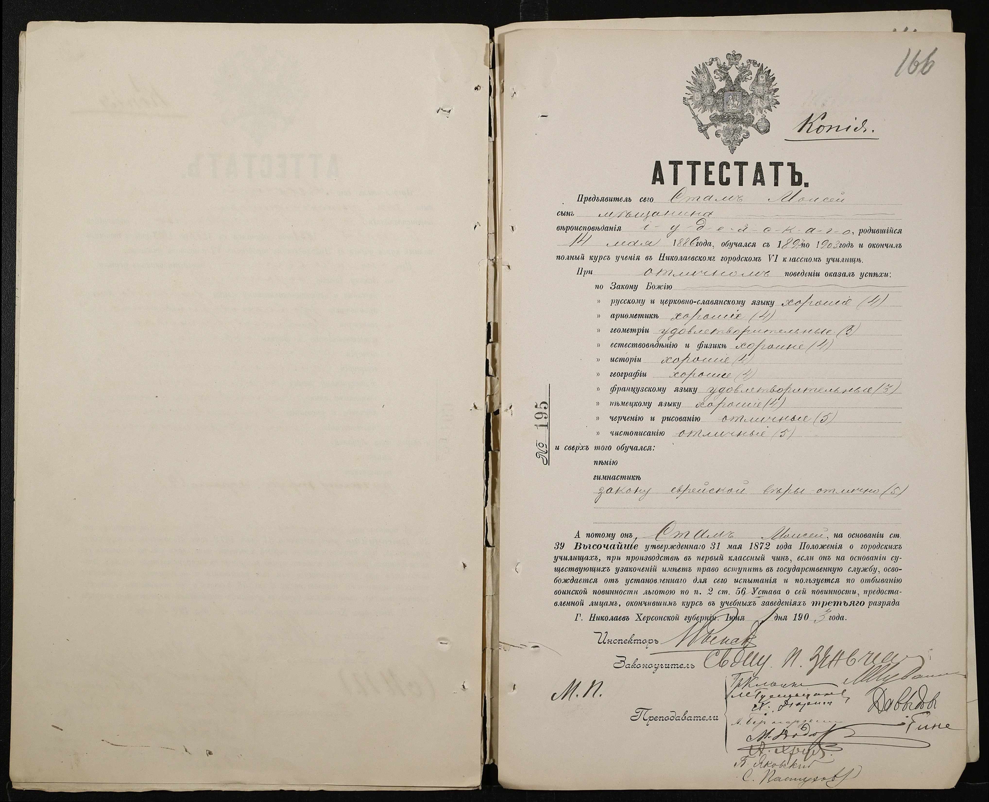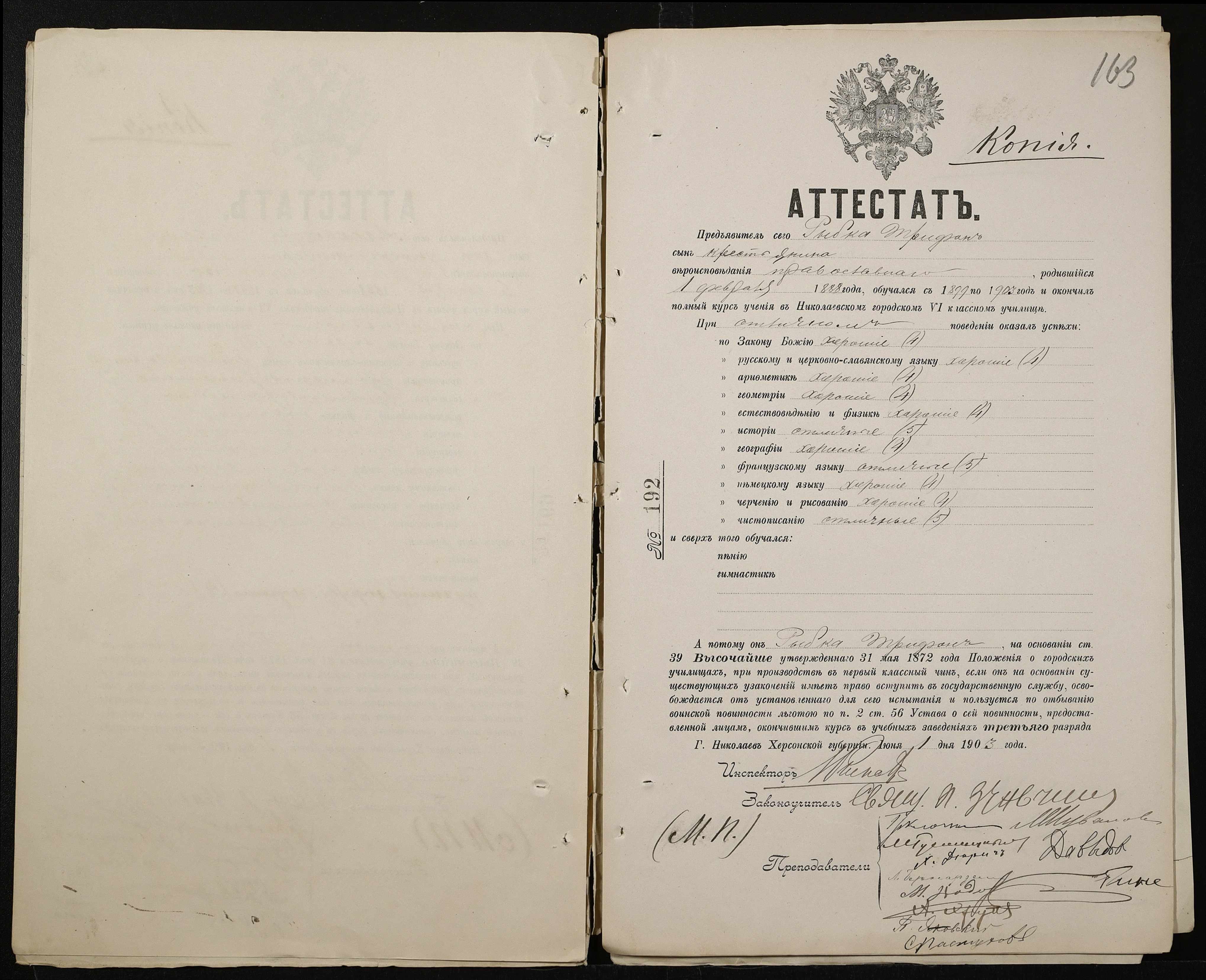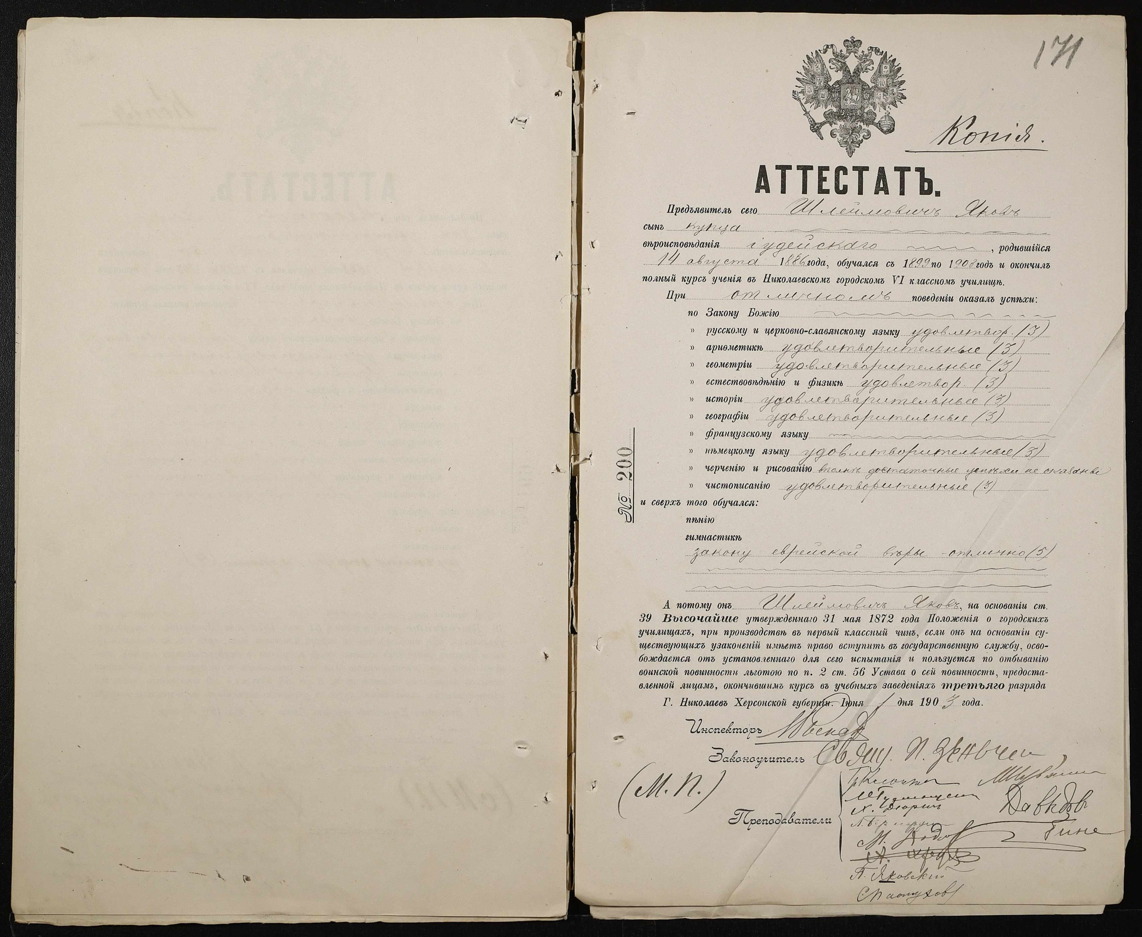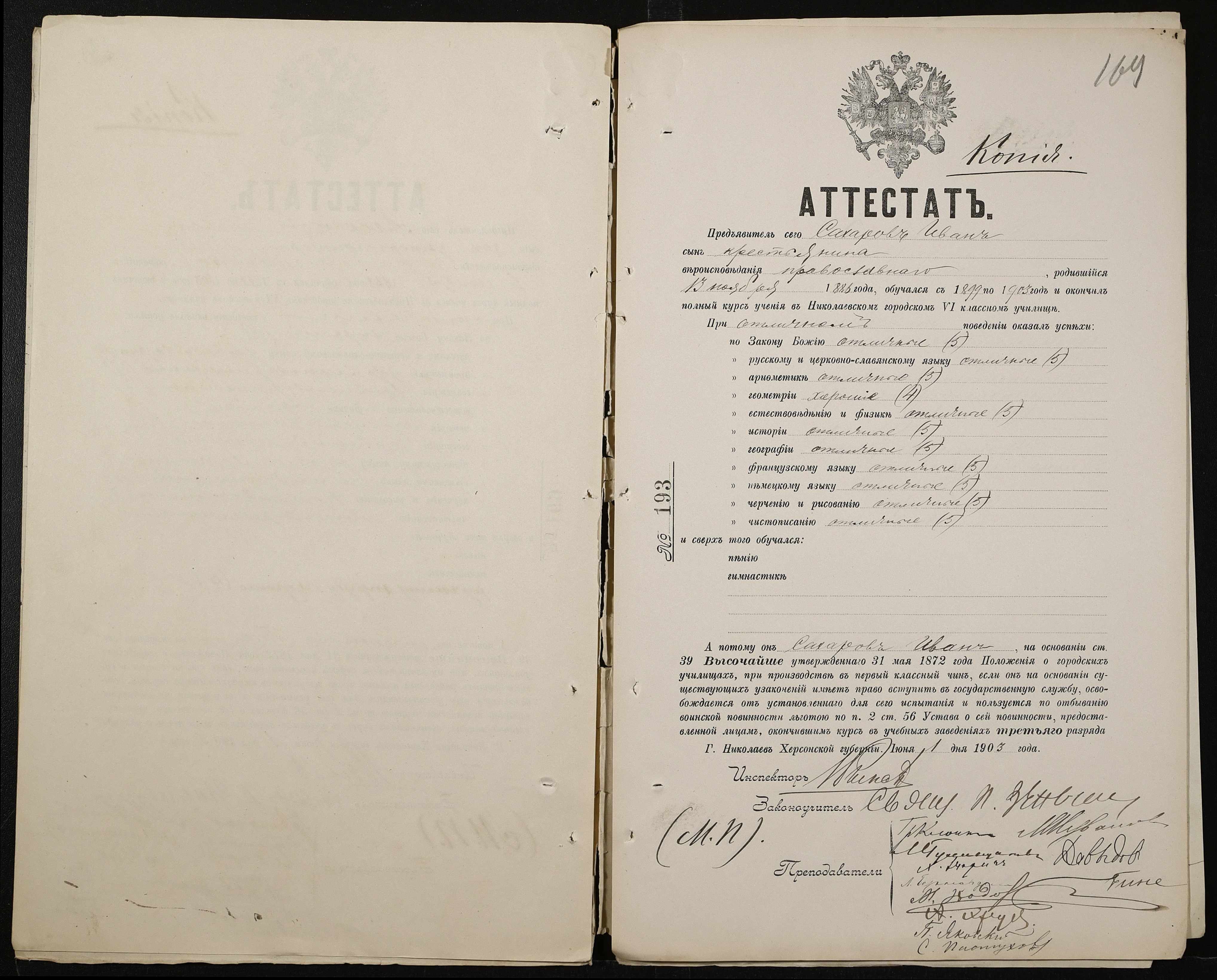 • • • • Справа № 389 “Атестати учнів про закінчення чотирикласного (шестикласного) училища (копії)”