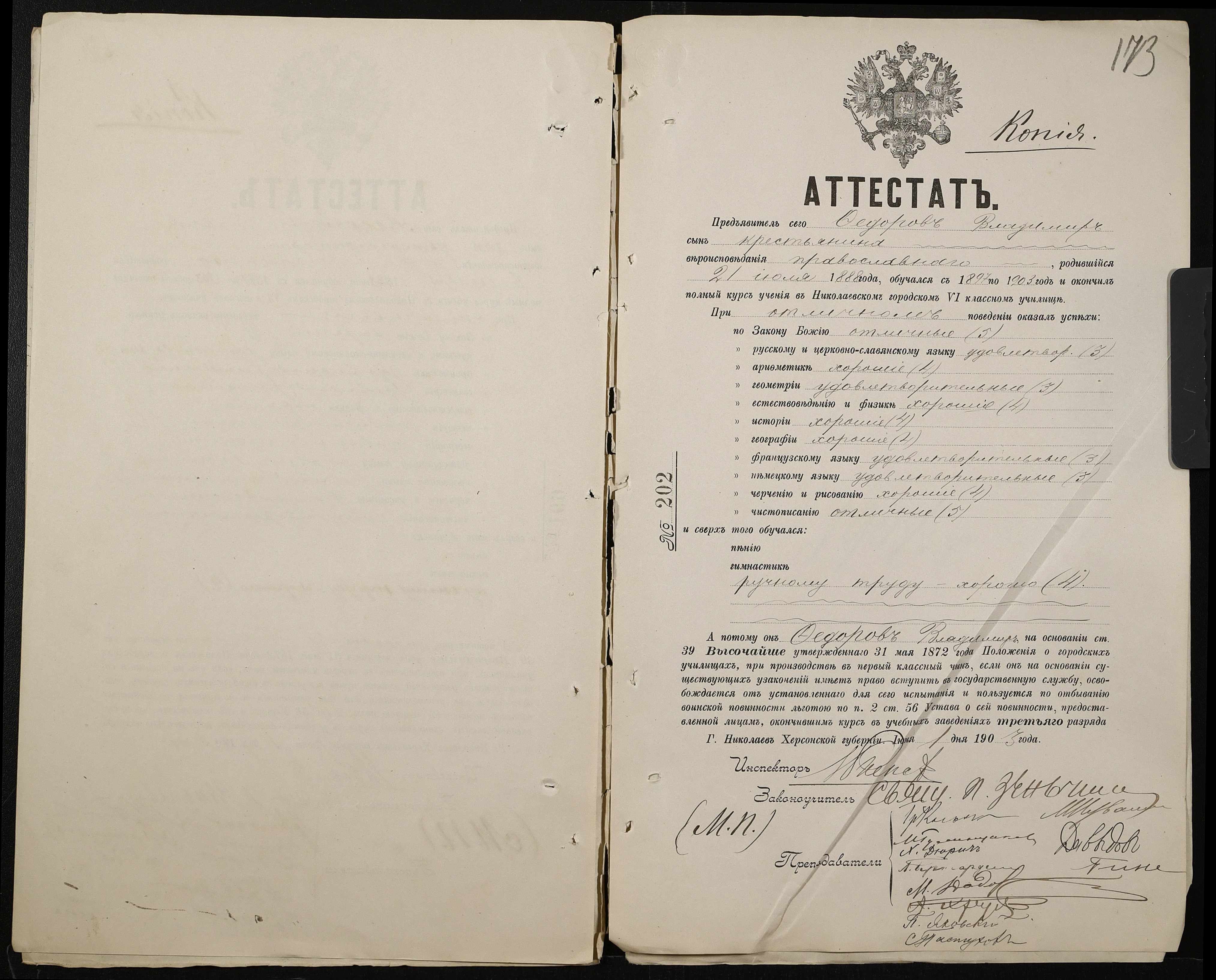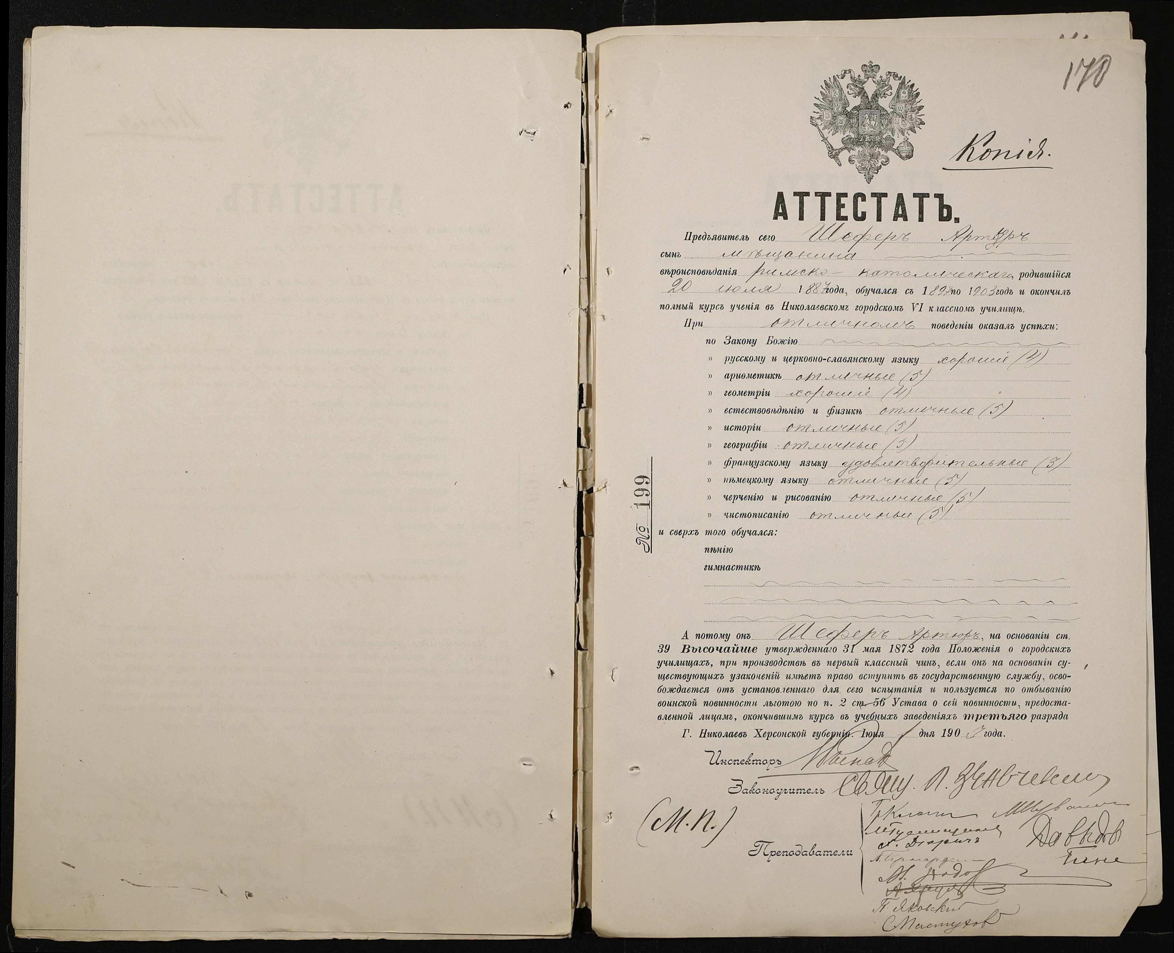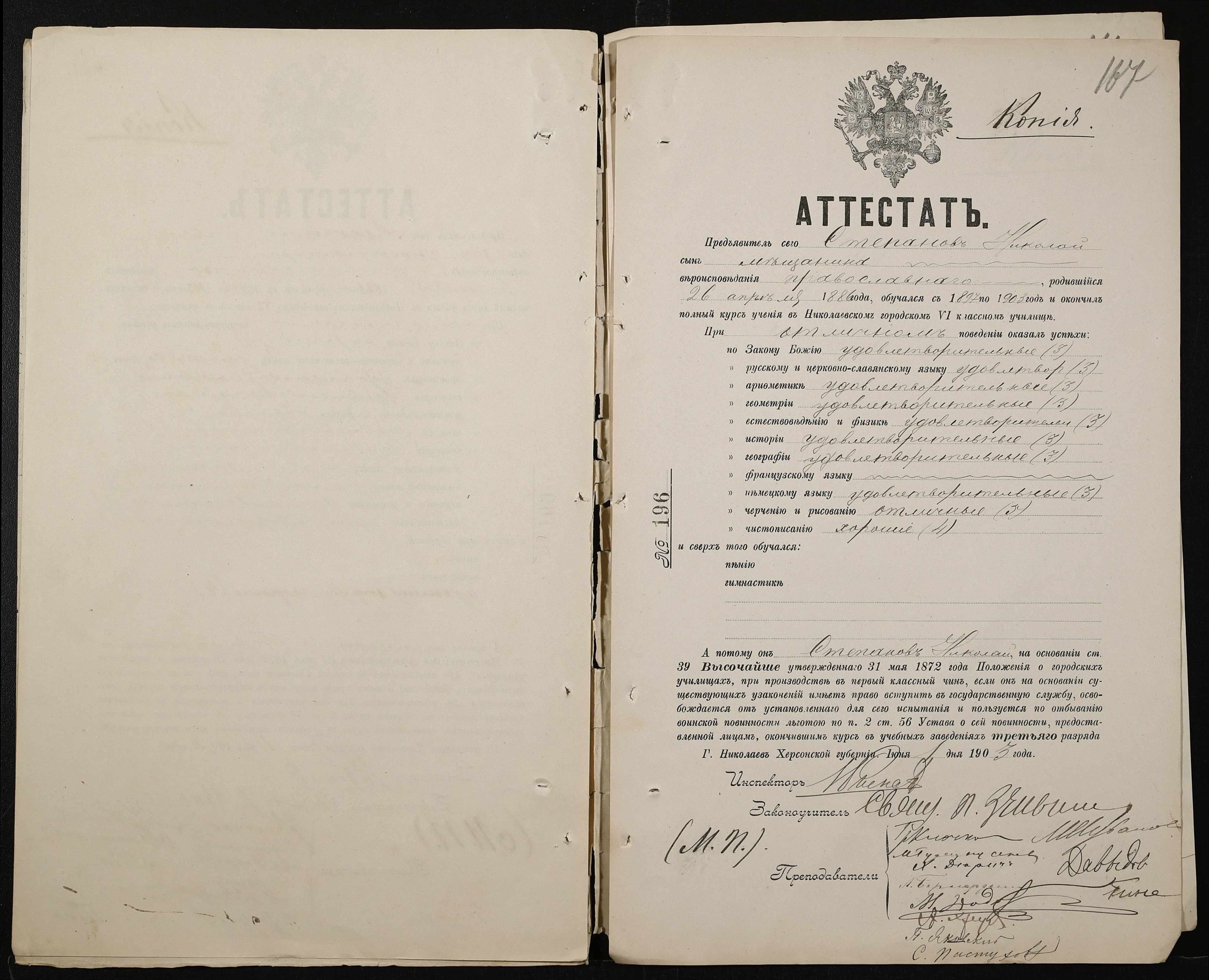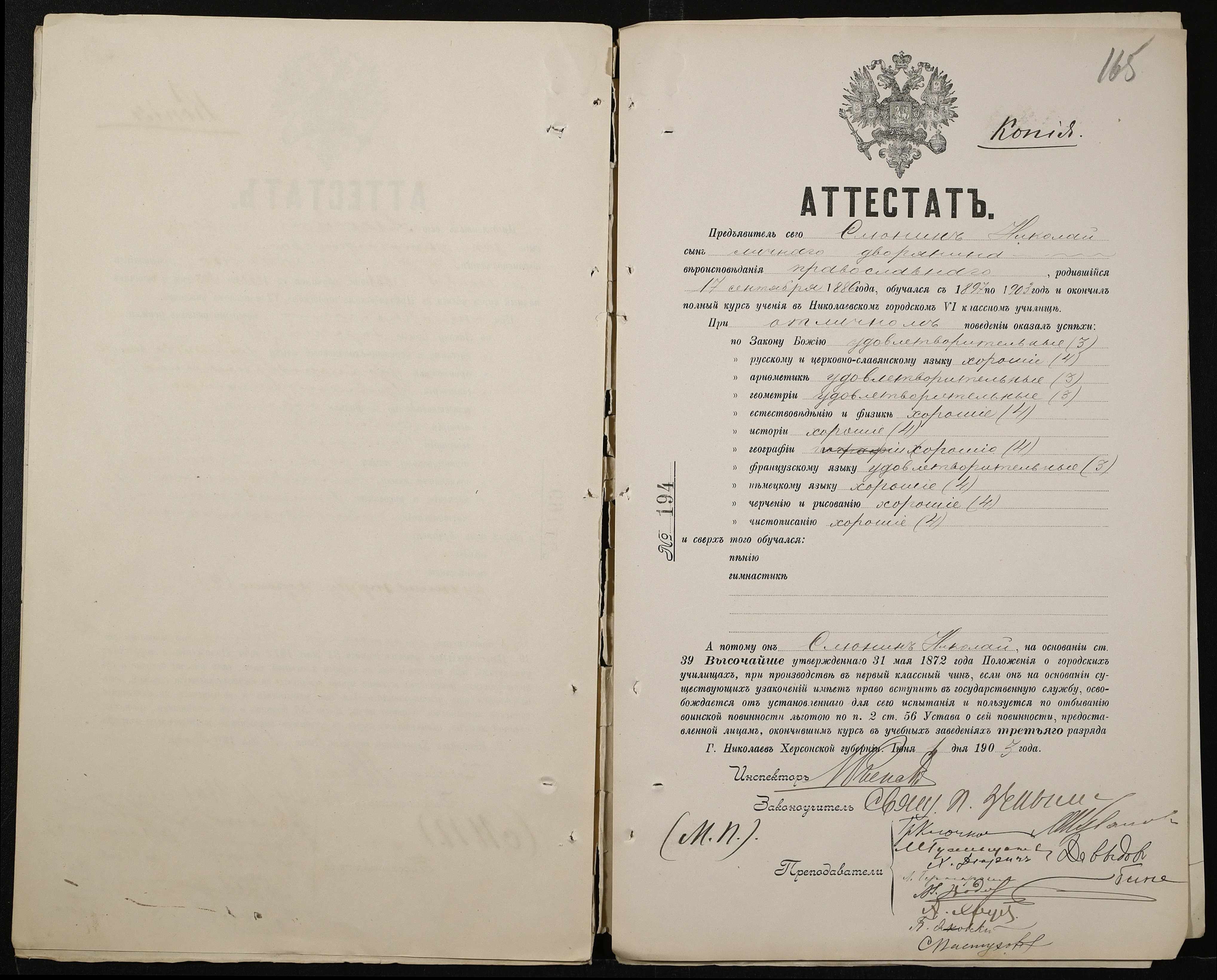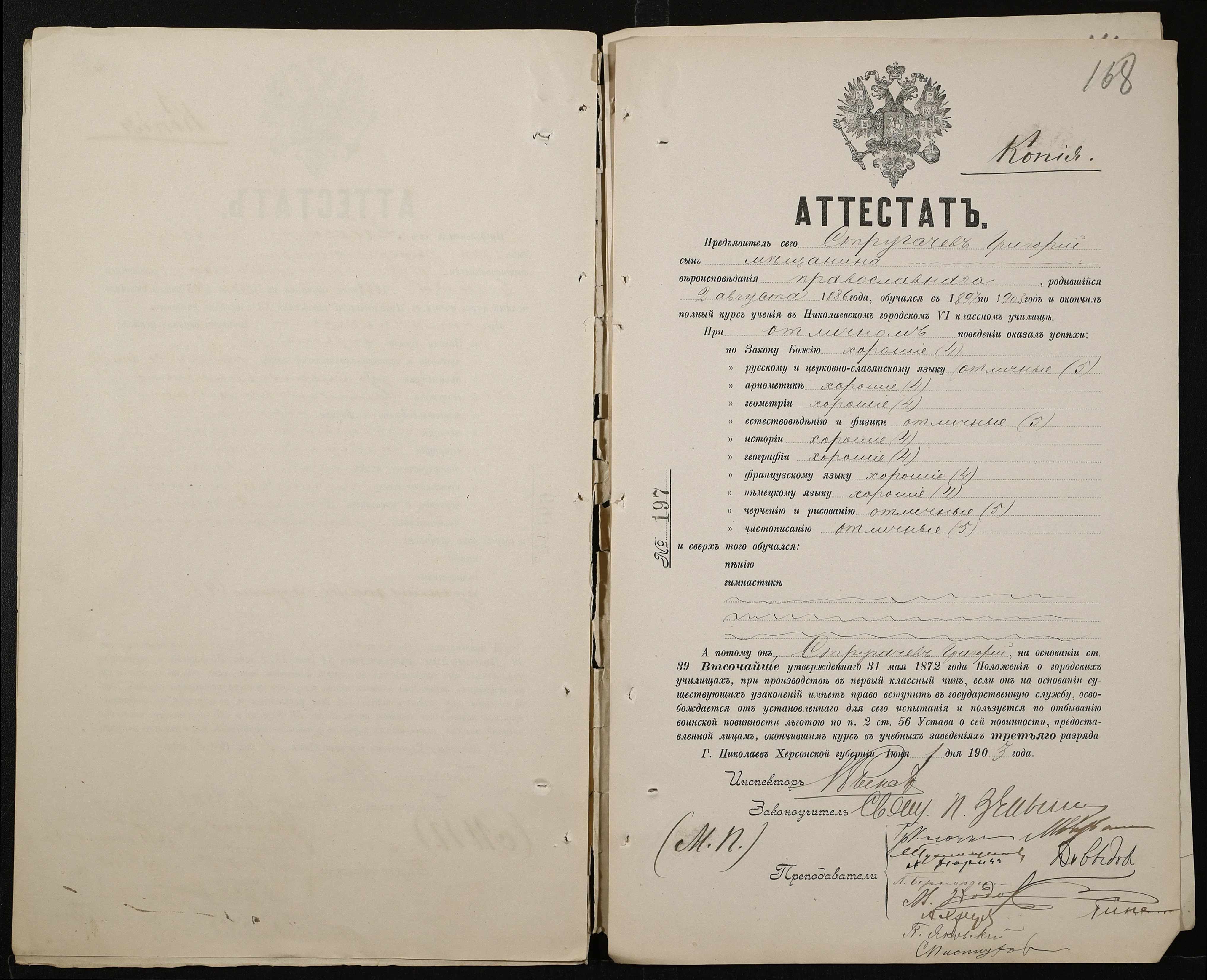 • • • • Справа № 389 “Атестати учнів про закінчення чотирикласного (шестикласного) училища (копії)”