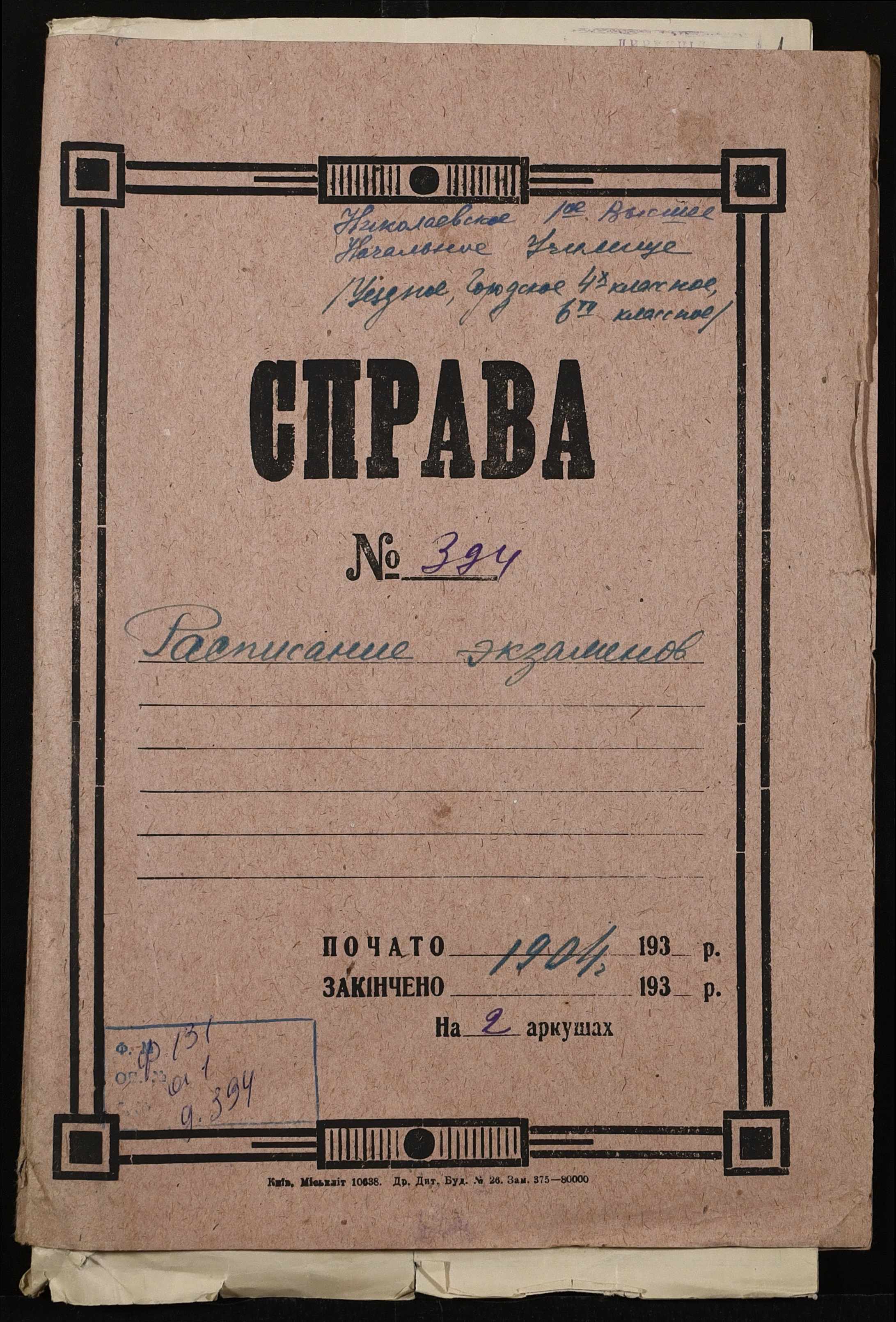 ◦ ◦ Фонд № 131 “Миколаївське перше вище початкове училище”