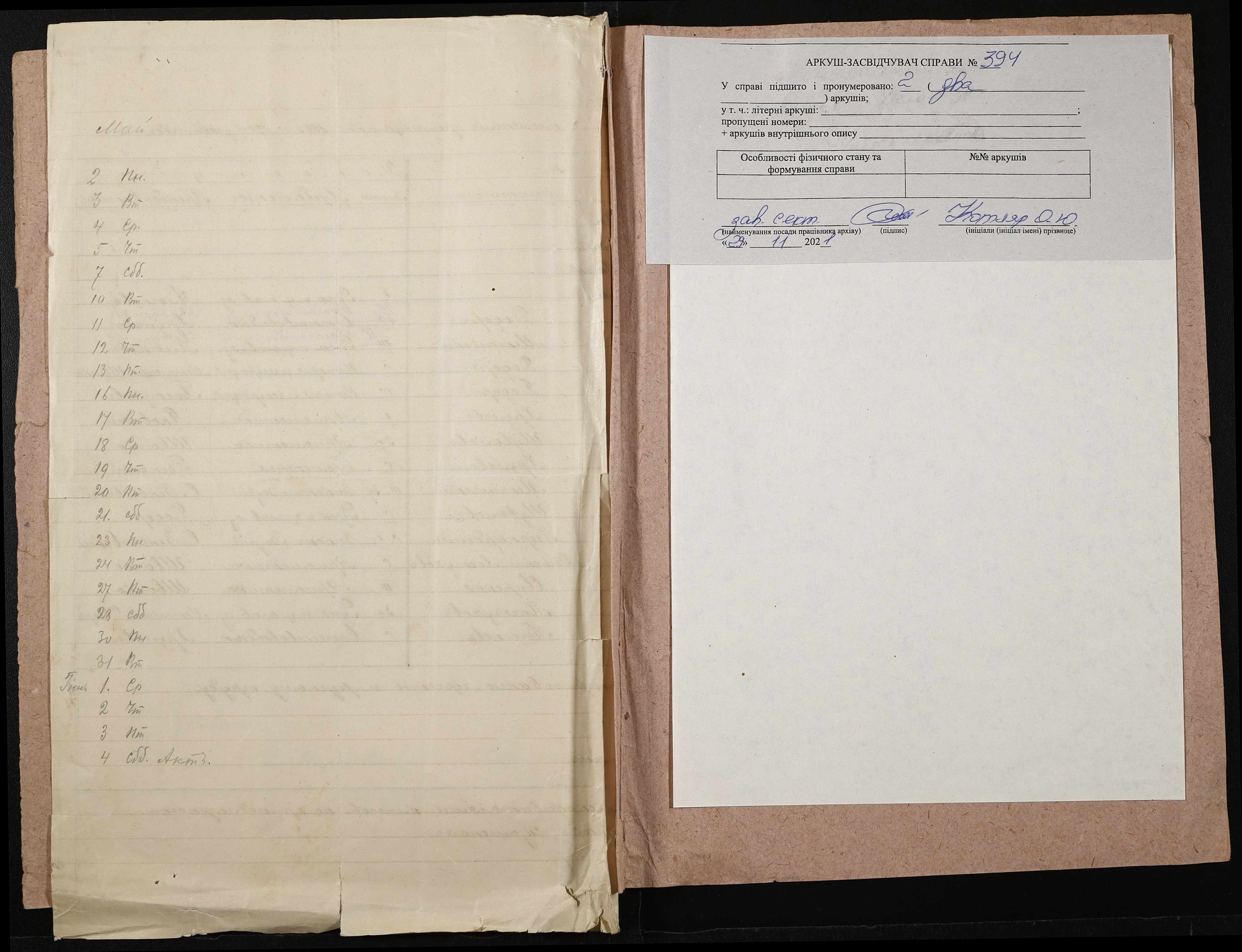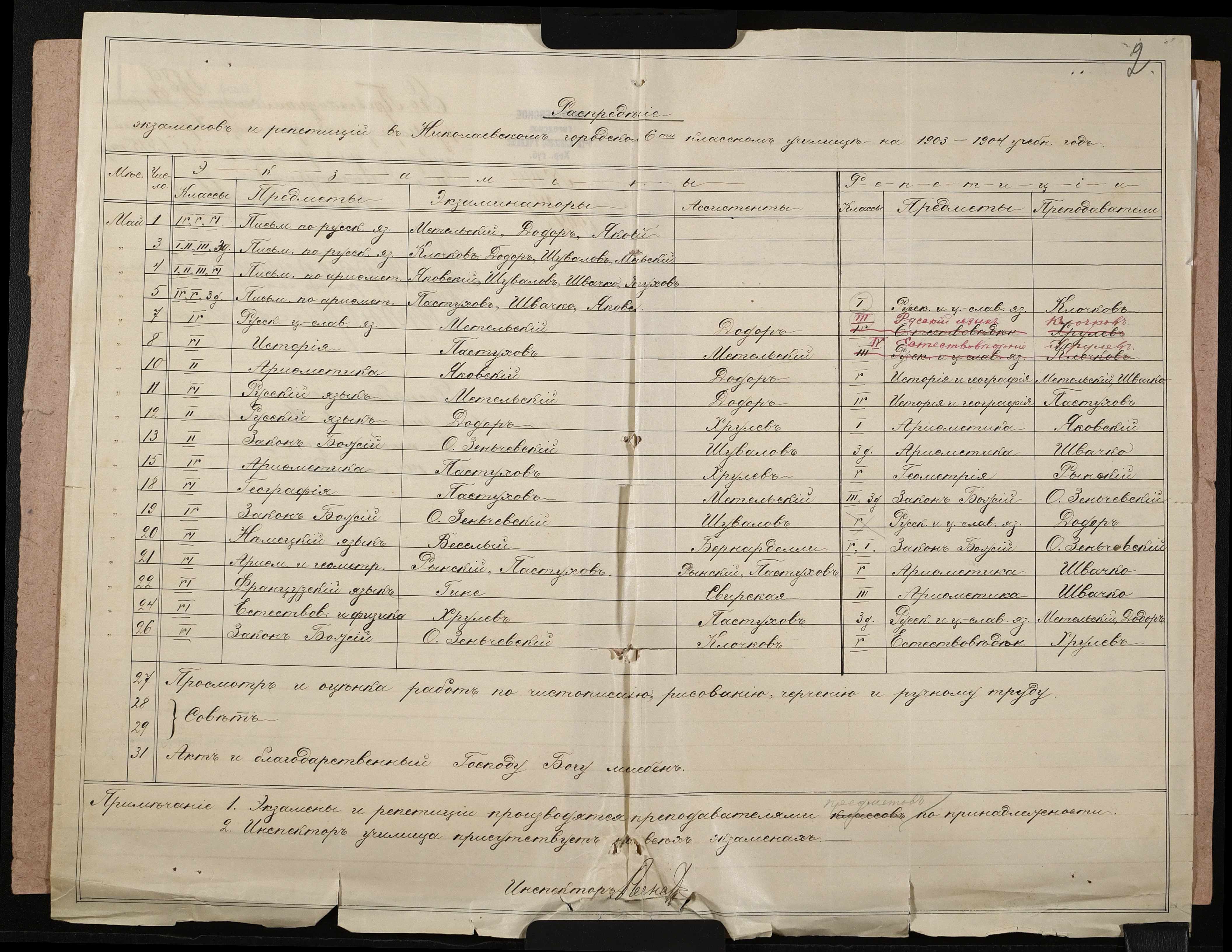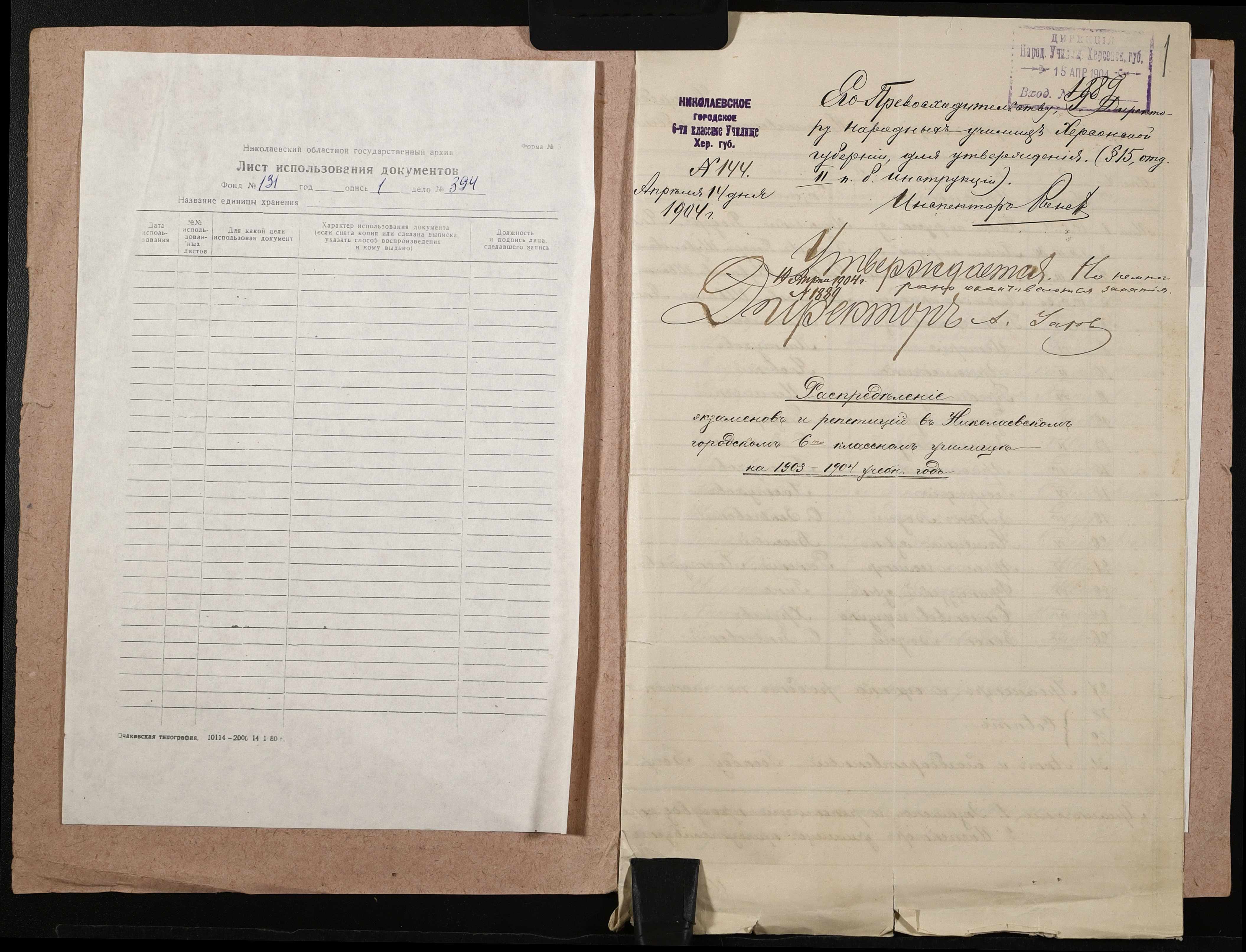 • • • • Справа № 394 “Розклад іспитів і репетицій в училищі за 1903-1904 навчальний рік”