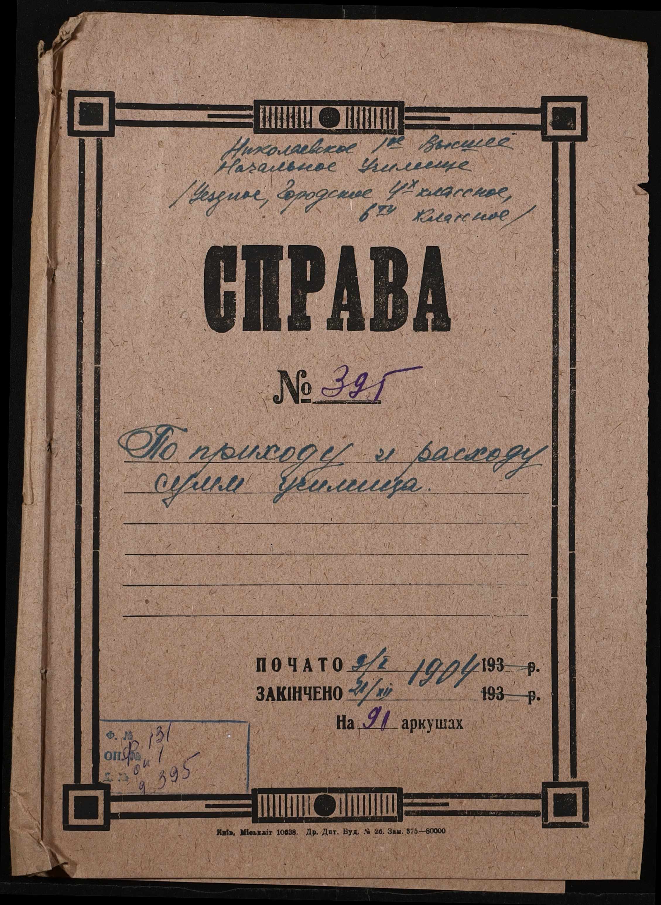 • • • • Справа № 395 “Прибутково-видаткові документи училища (квитанції, відомості та ін.)”