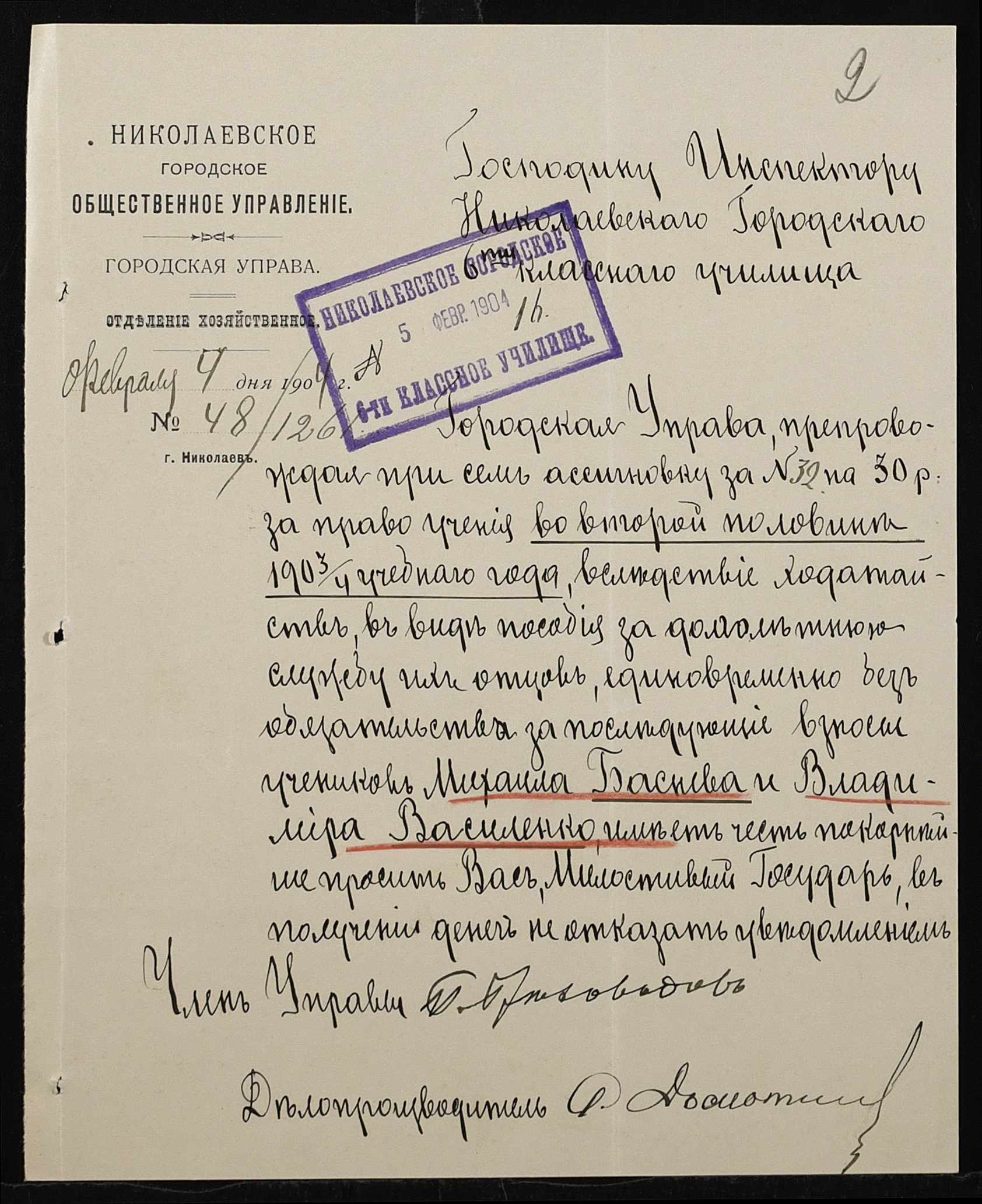 ◦ ◦ Фонд № 131 “Миколаївське перше вище початкове училище”