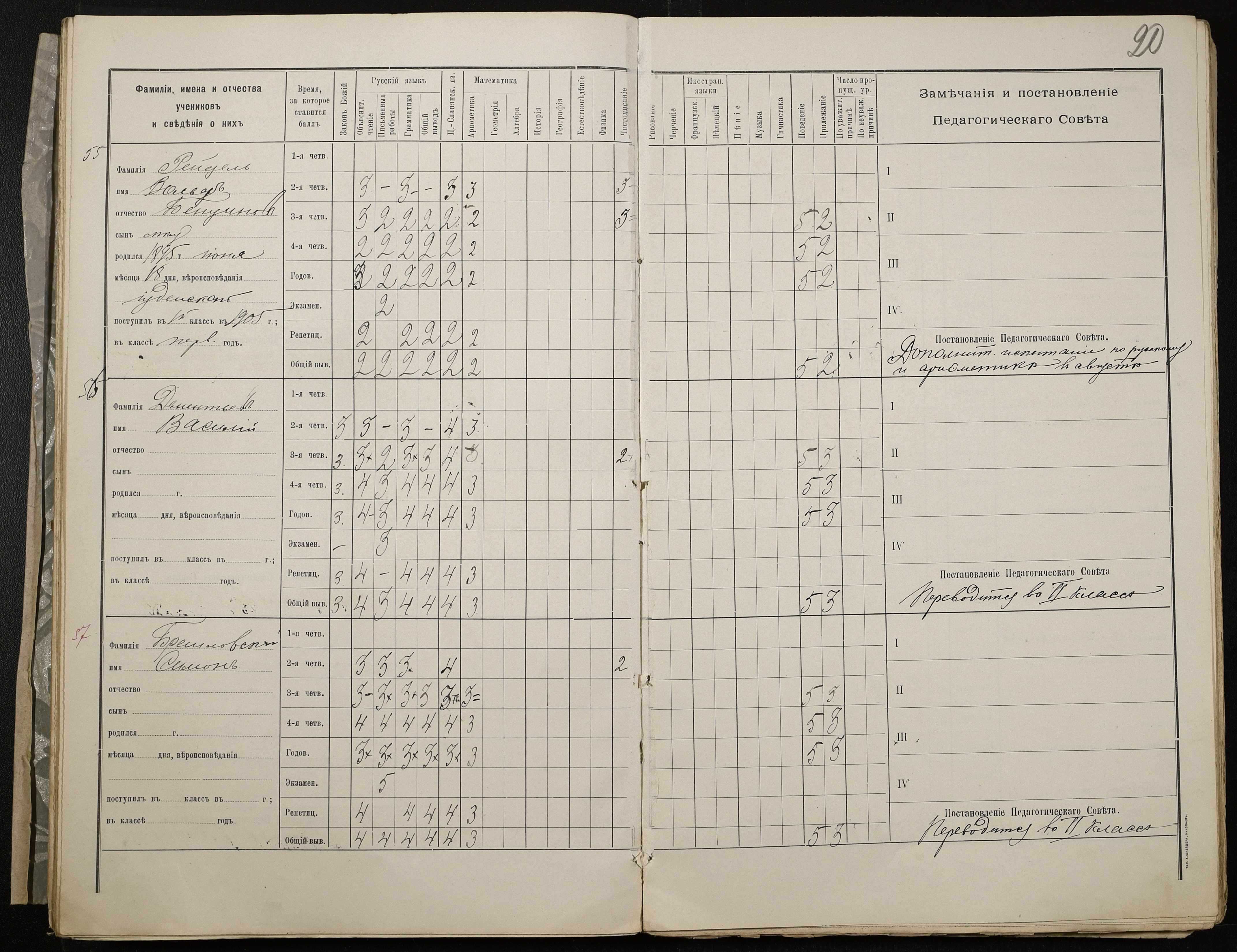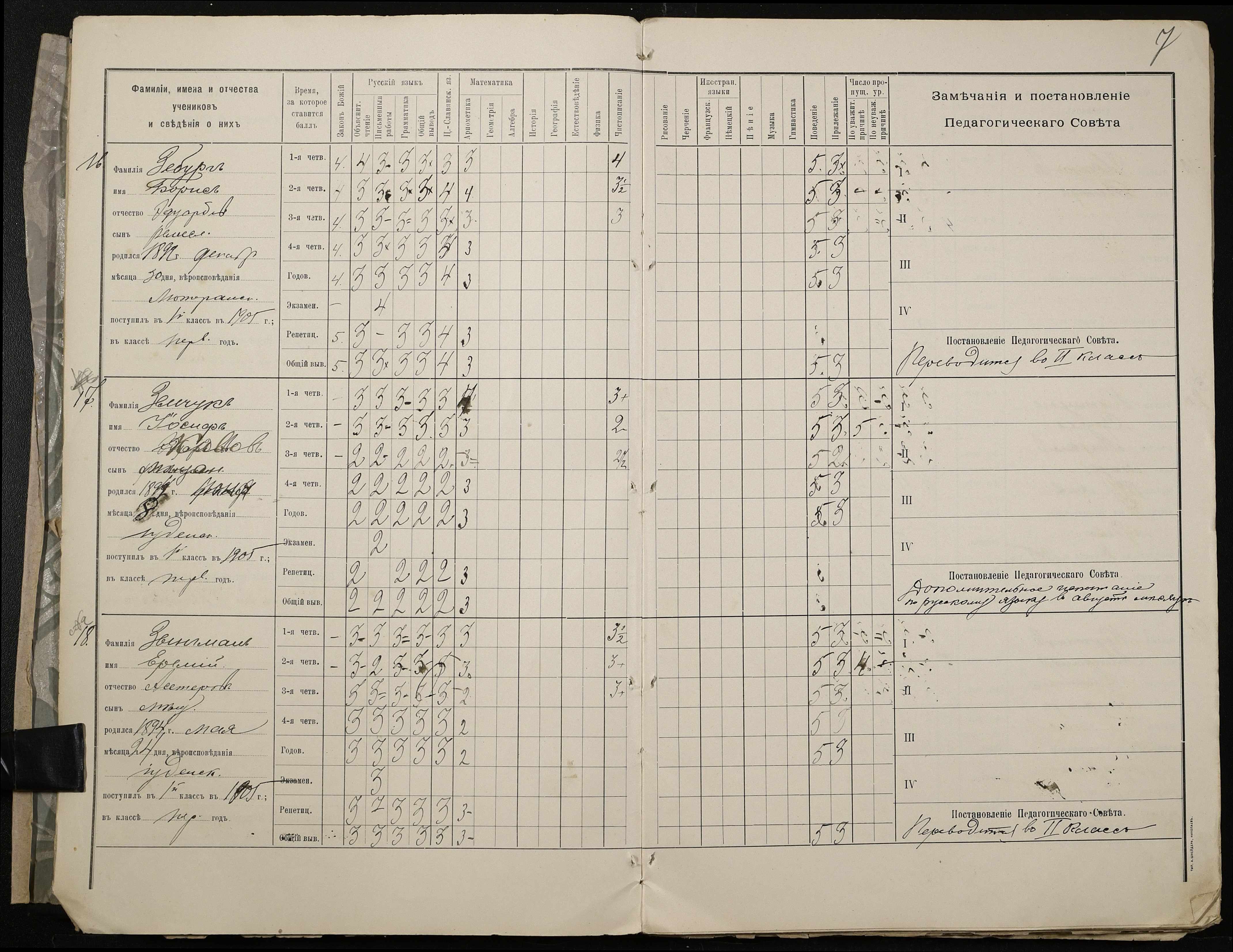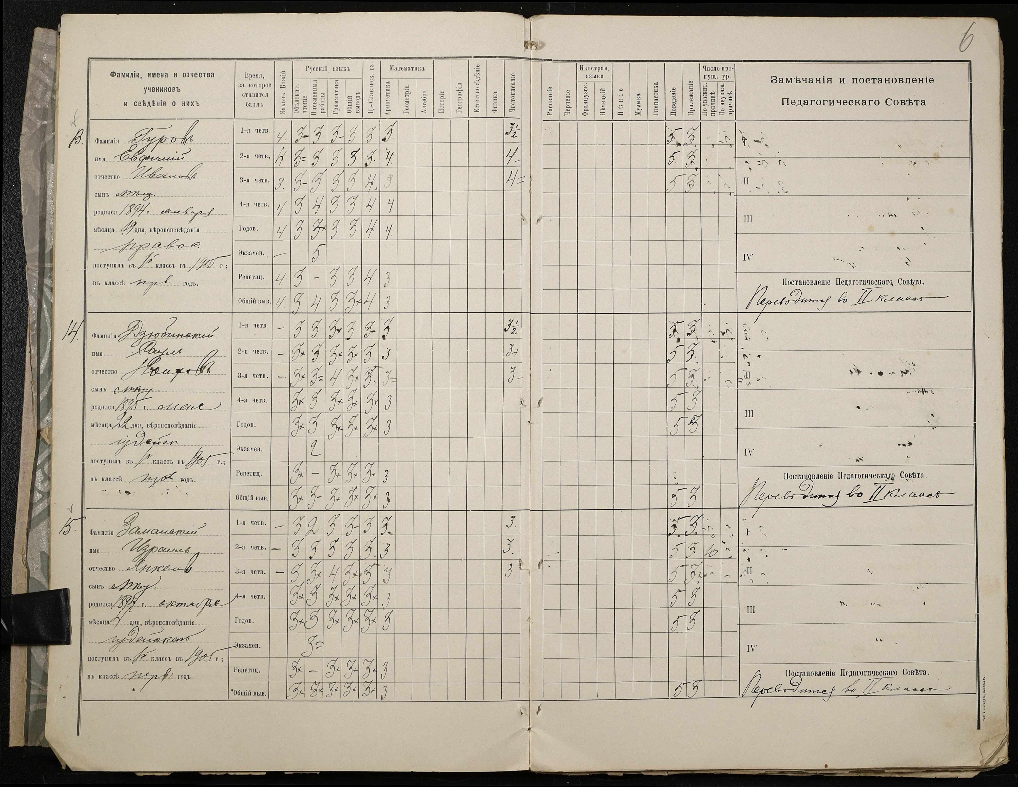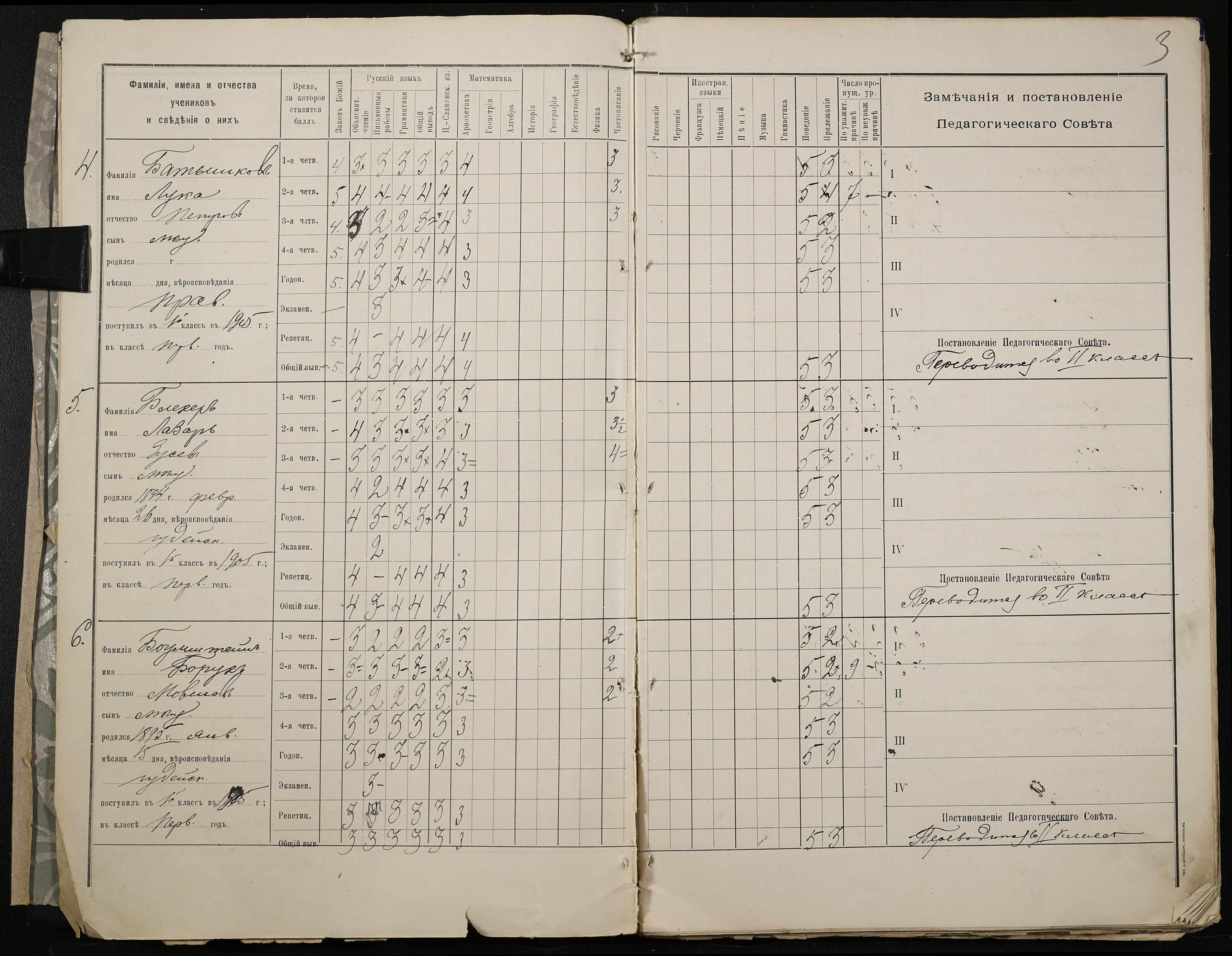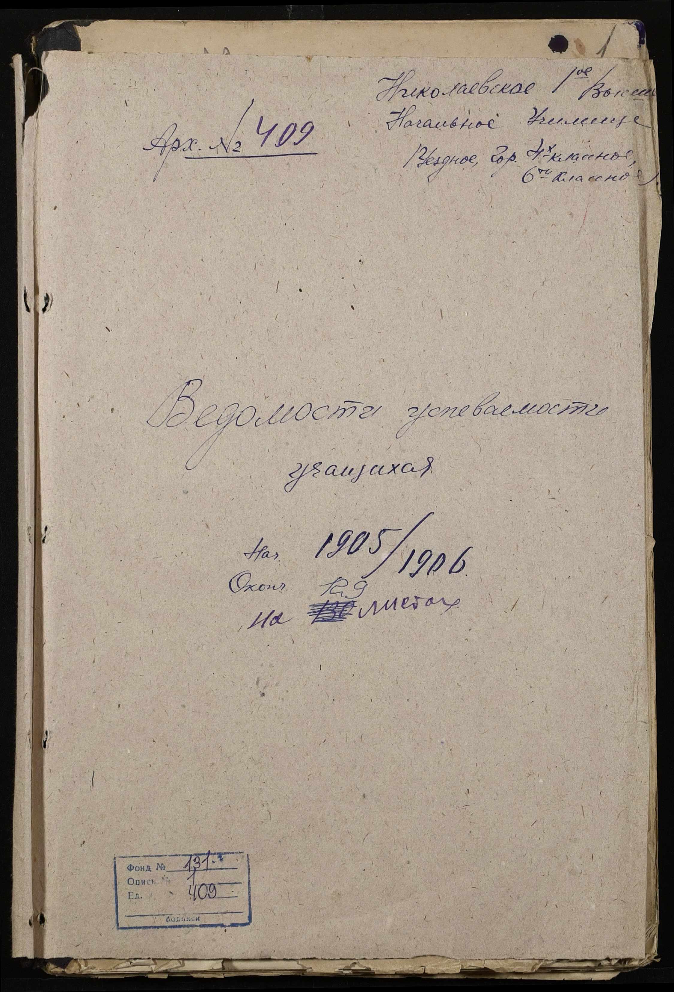 • • • • Справа № 409 “Відомості успішності та поведінки учнів першого класу за 1905-1906 навчальний рік”