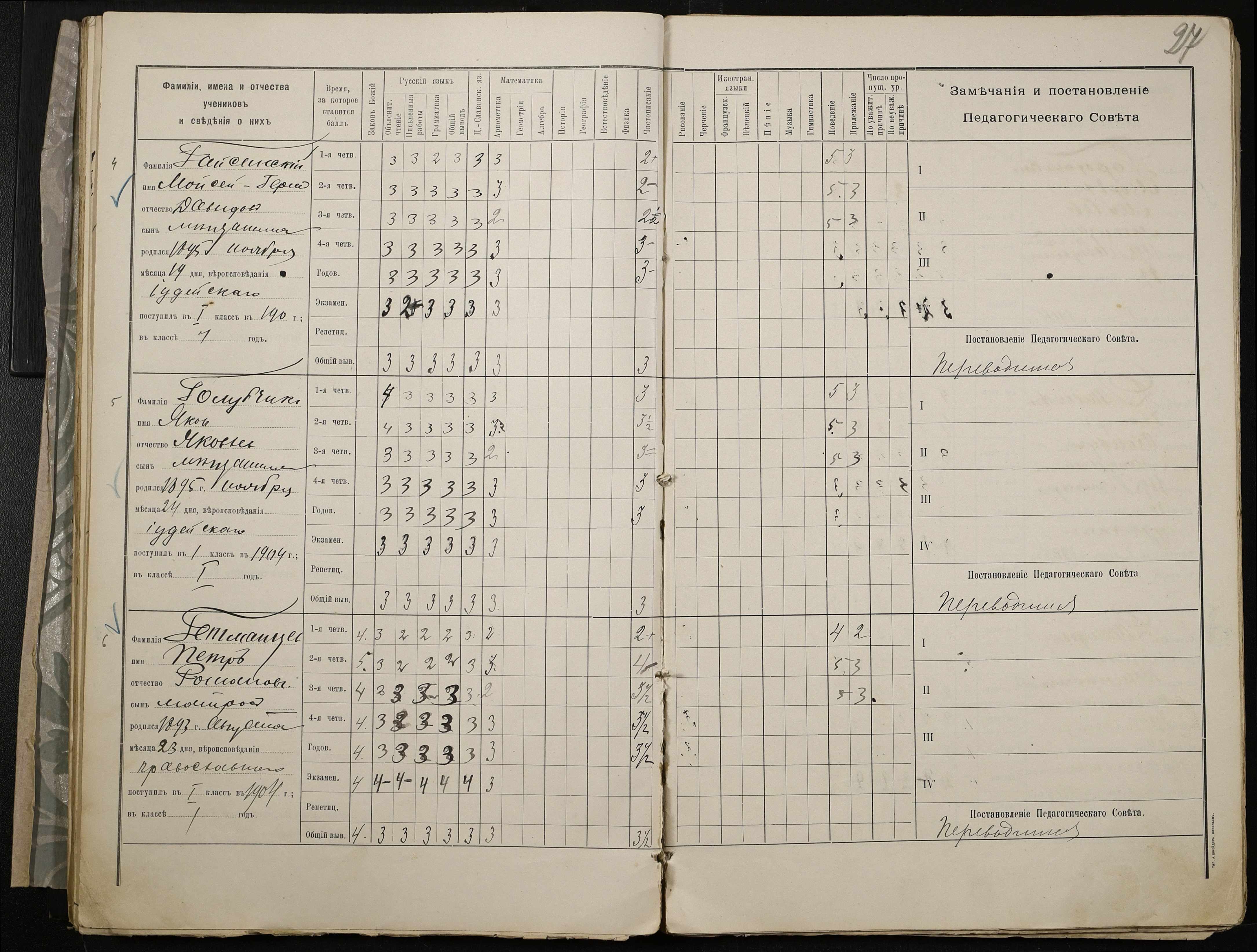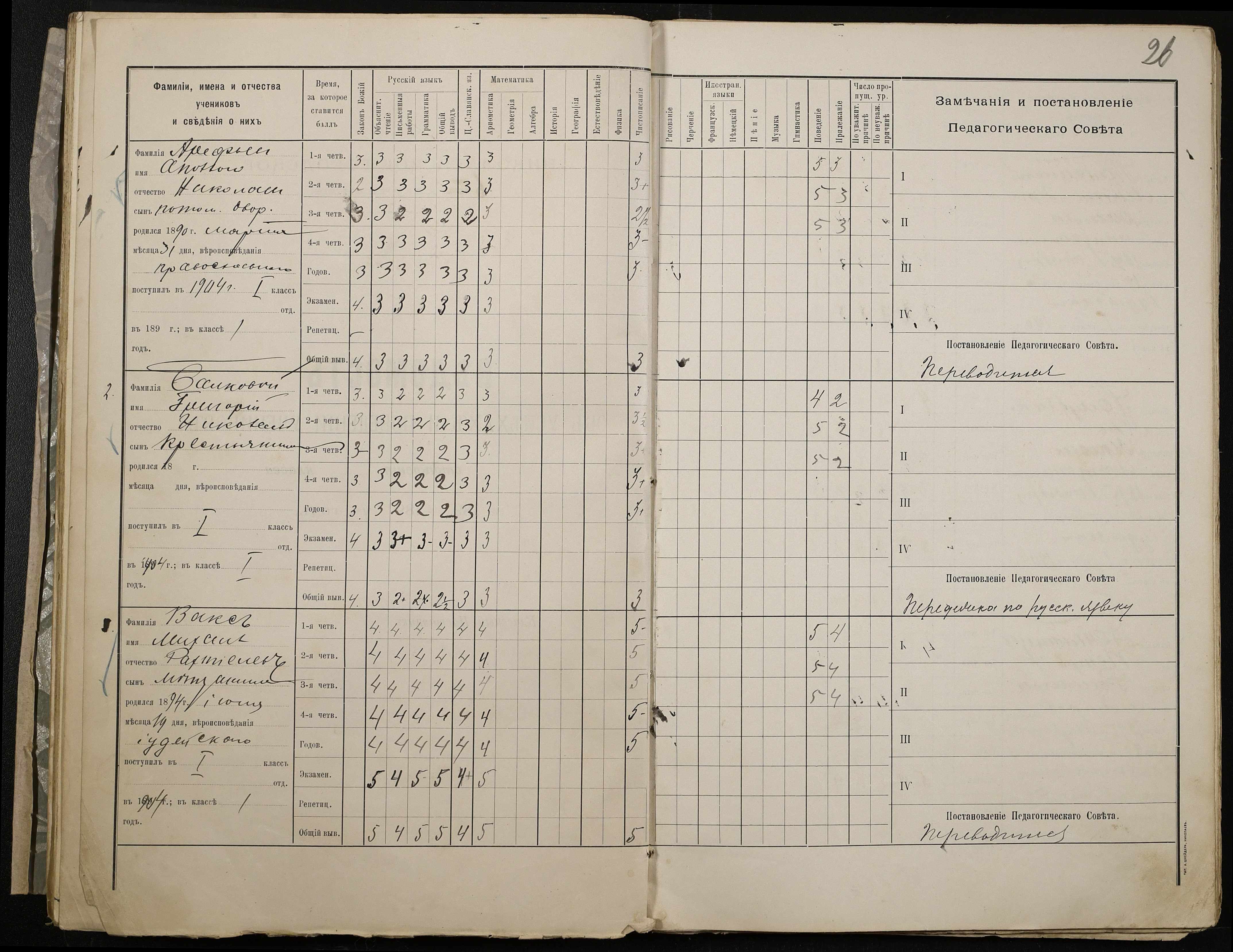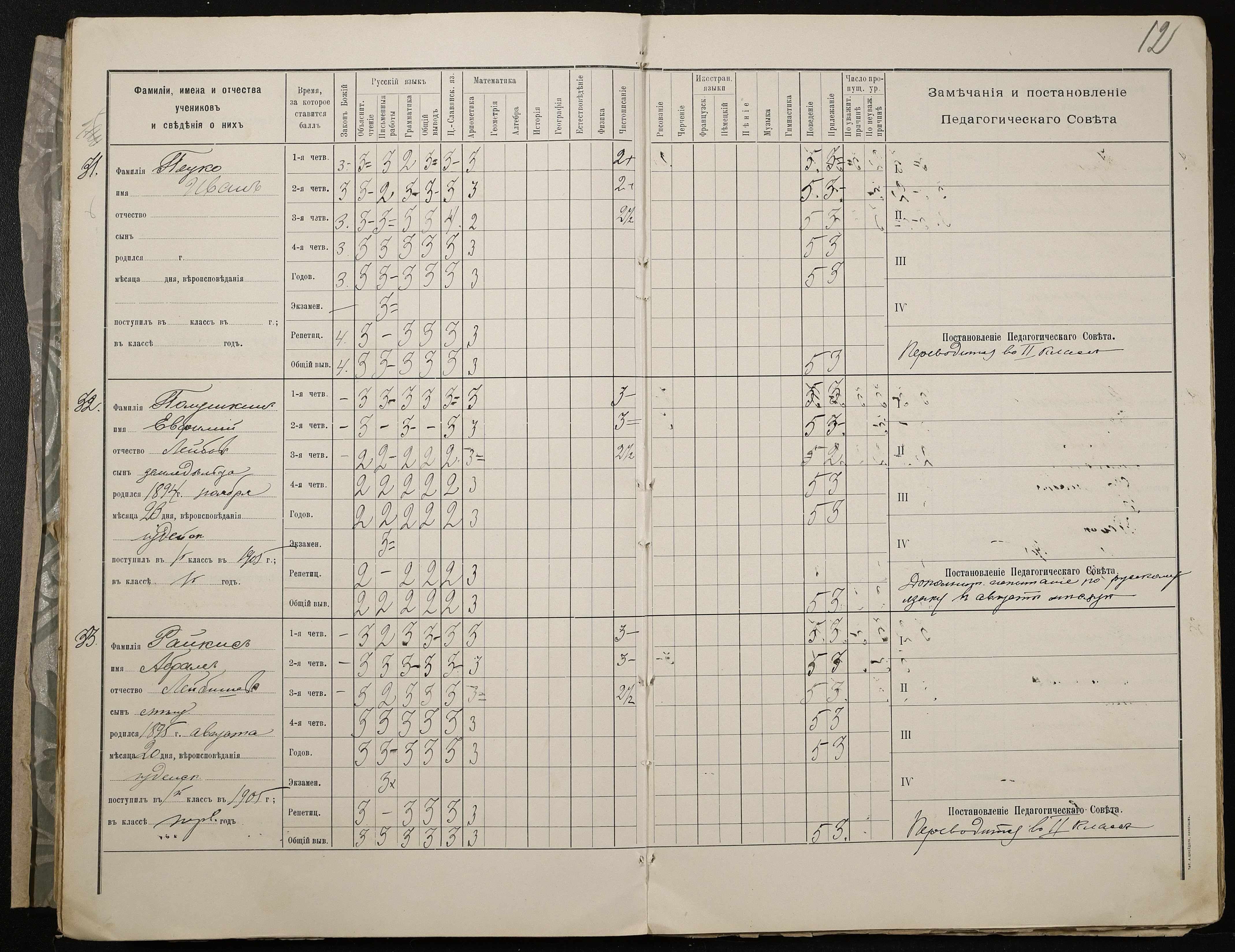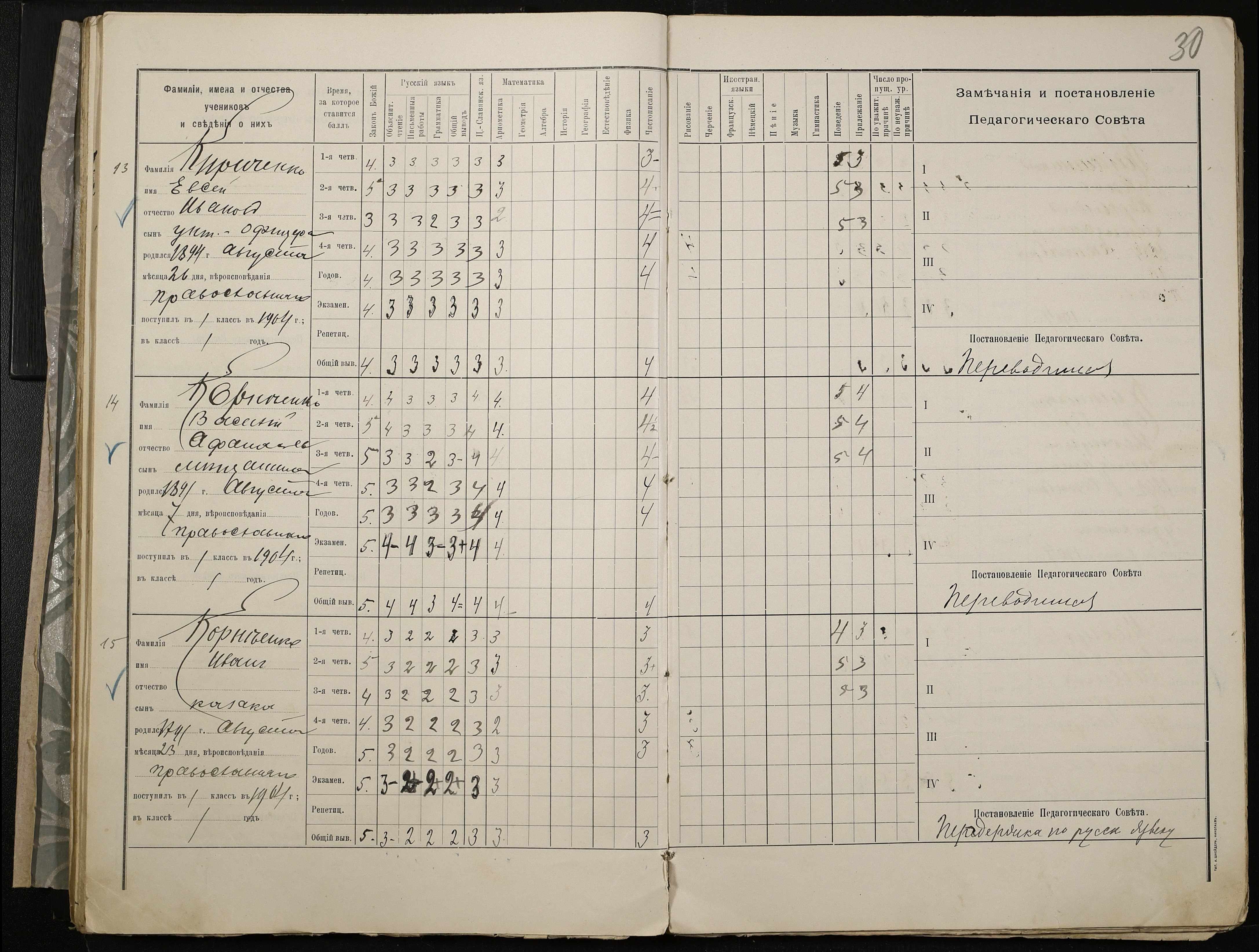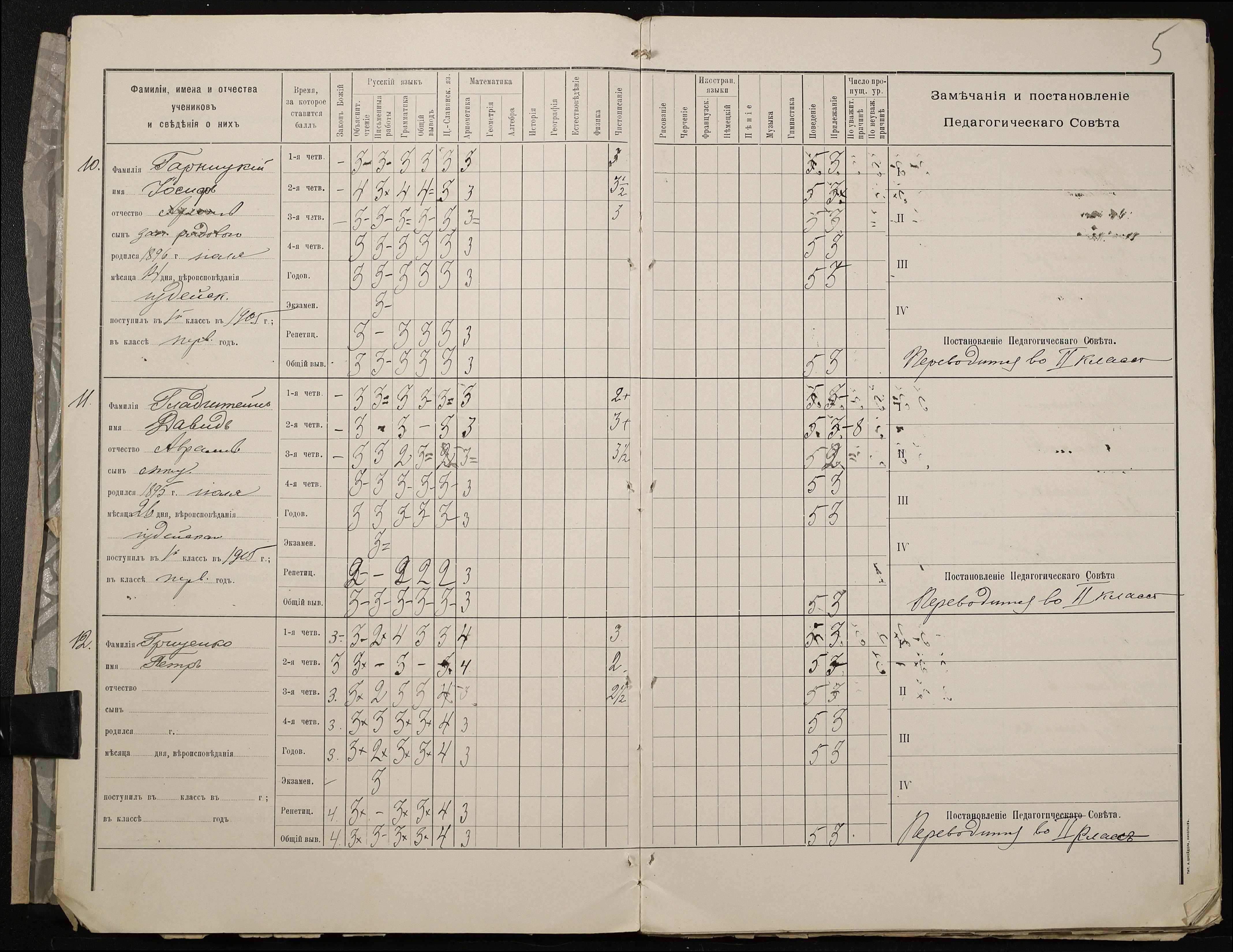 • • • • Справа № 409 “Відомості успішності та поведінки учнів першого класу за 1905-1906 навчальний рік”