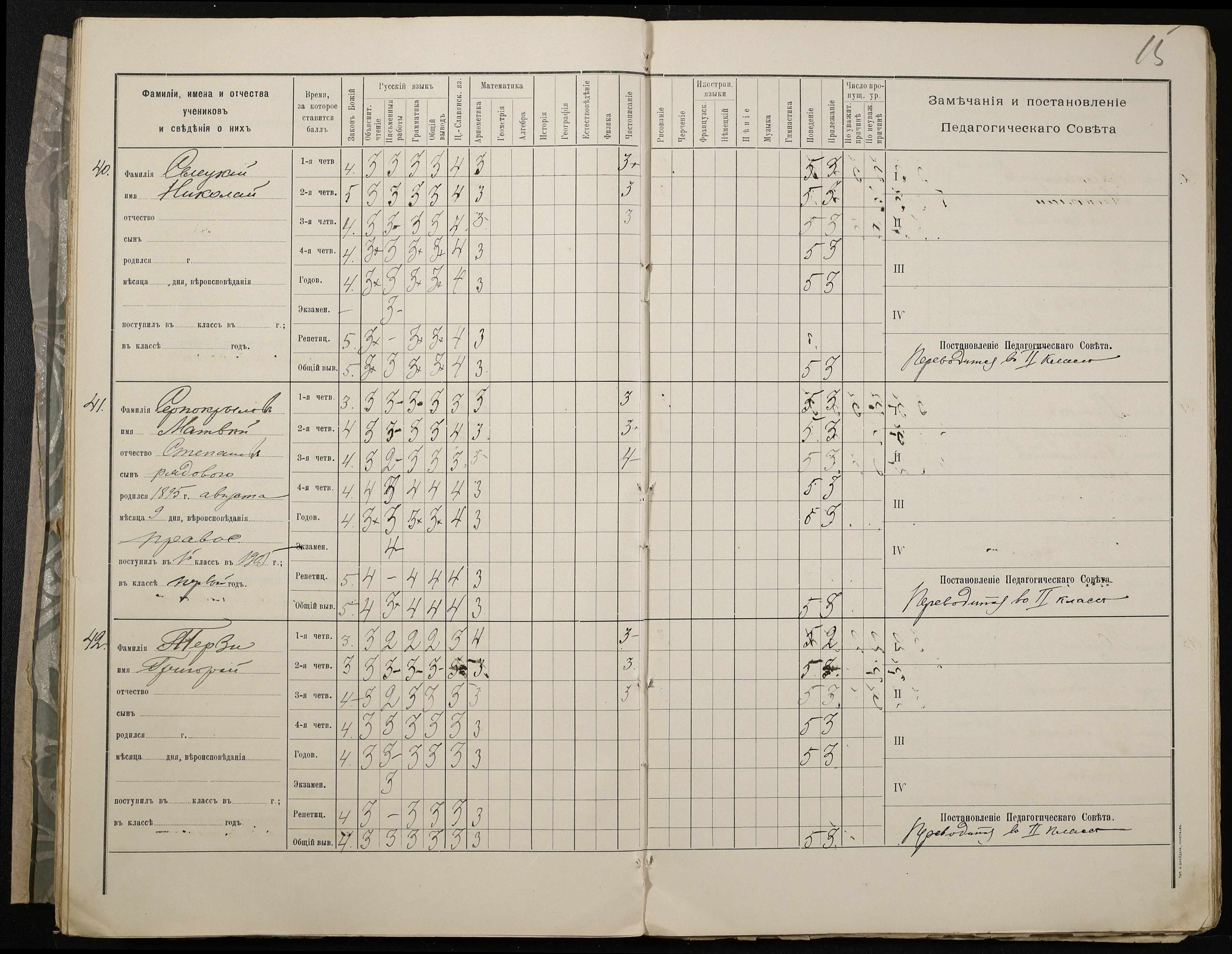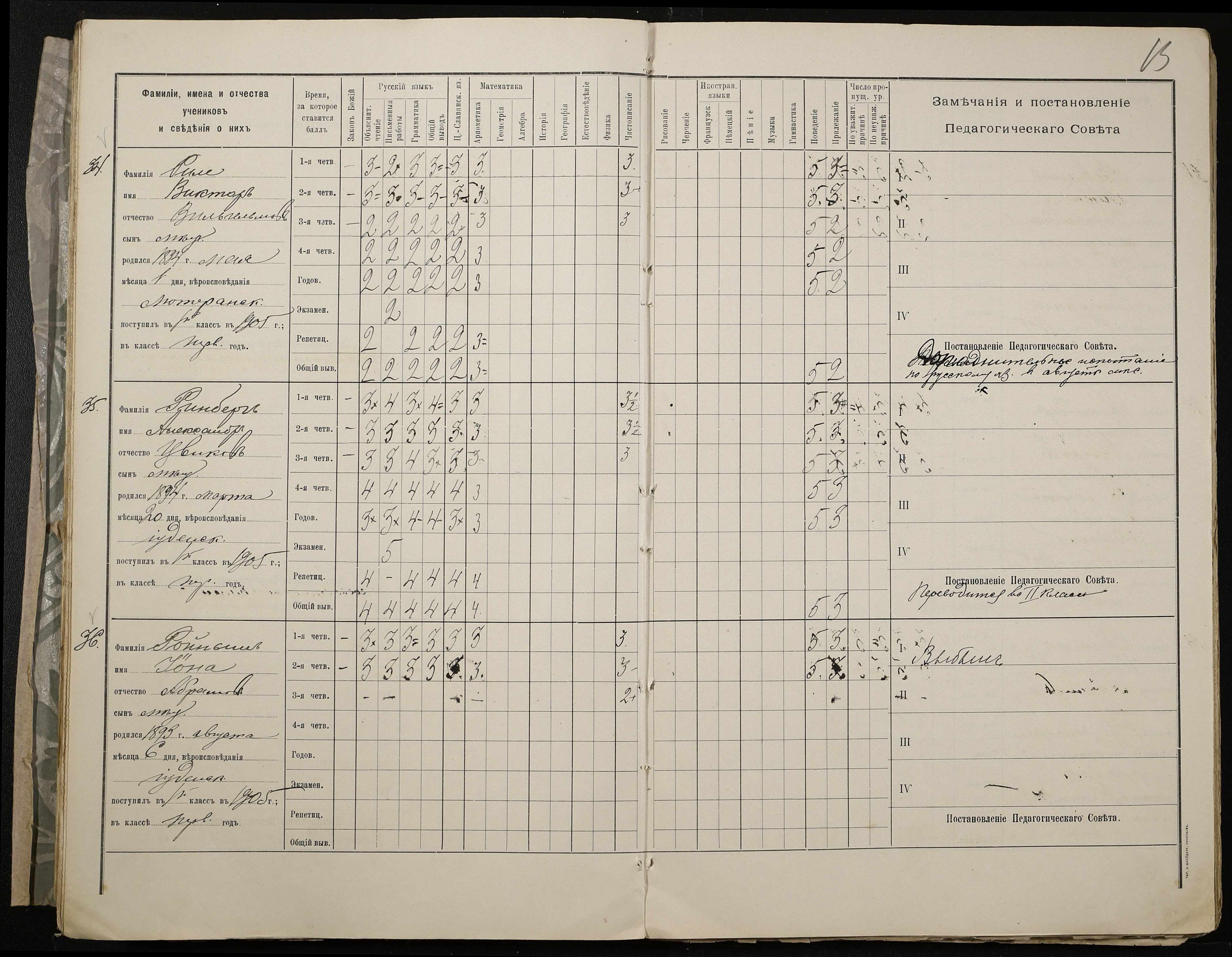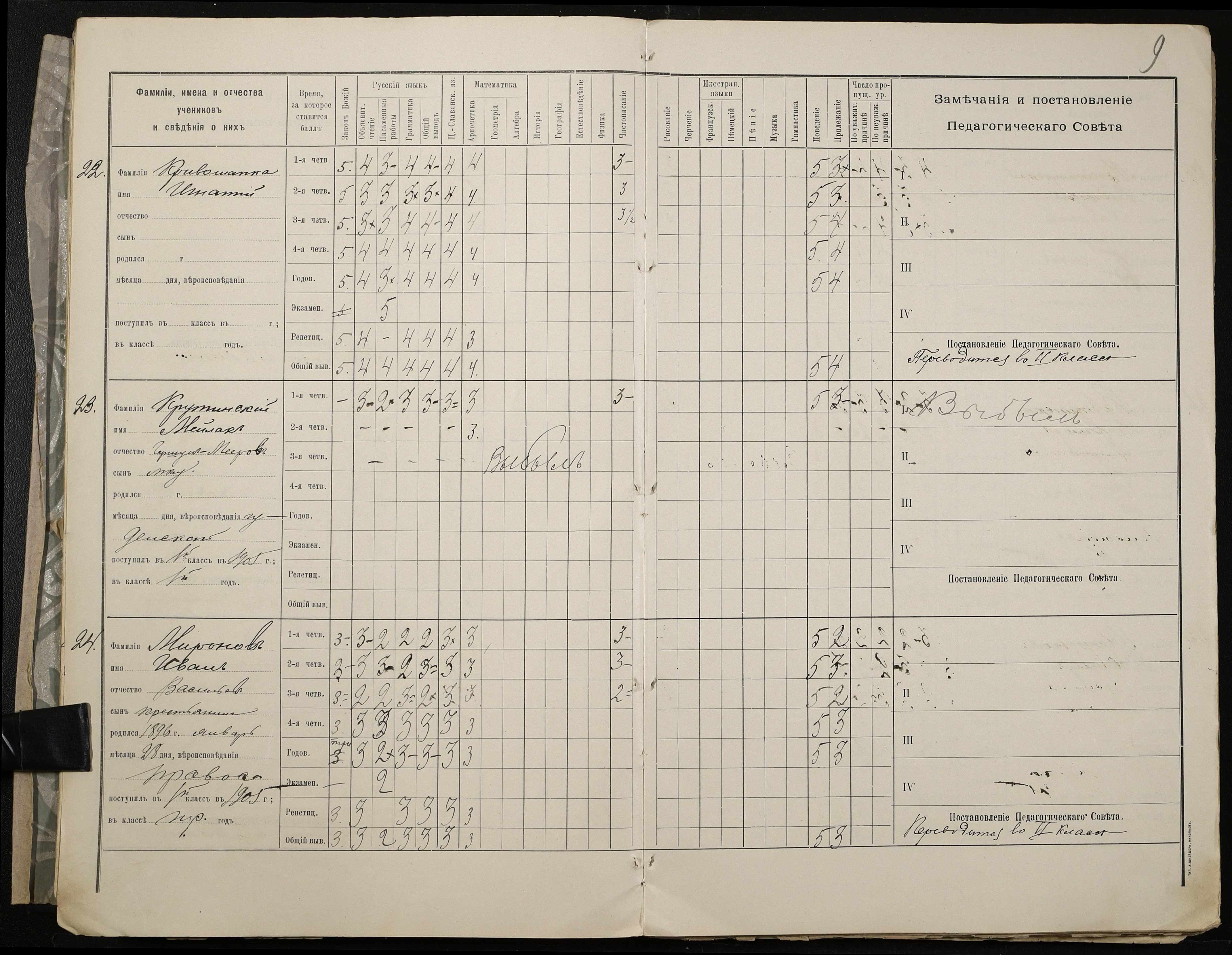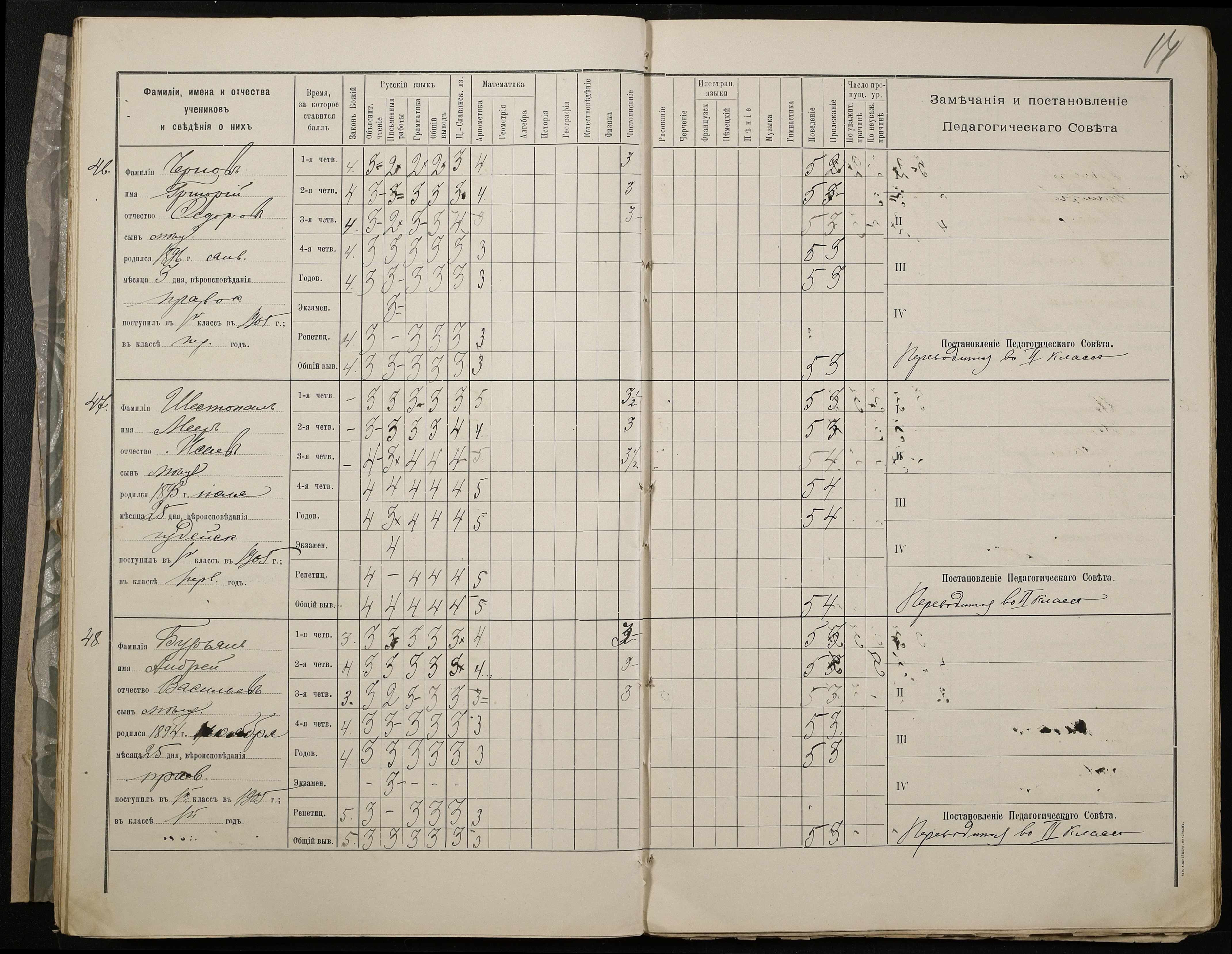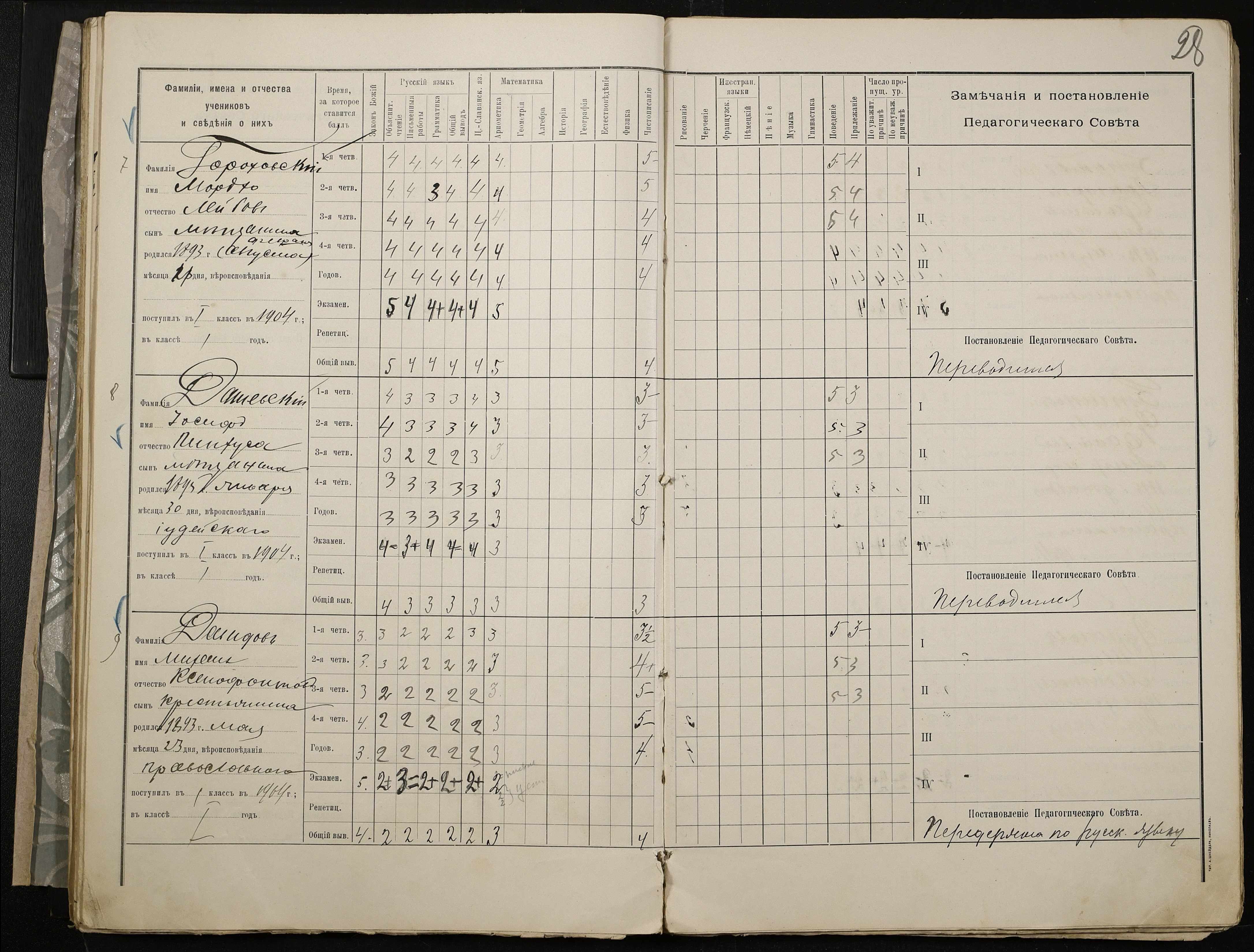 • • • • Справа № 409 “Відомості успішності та поведінки учнів першого класу за 1905-1906 навчальний рік”