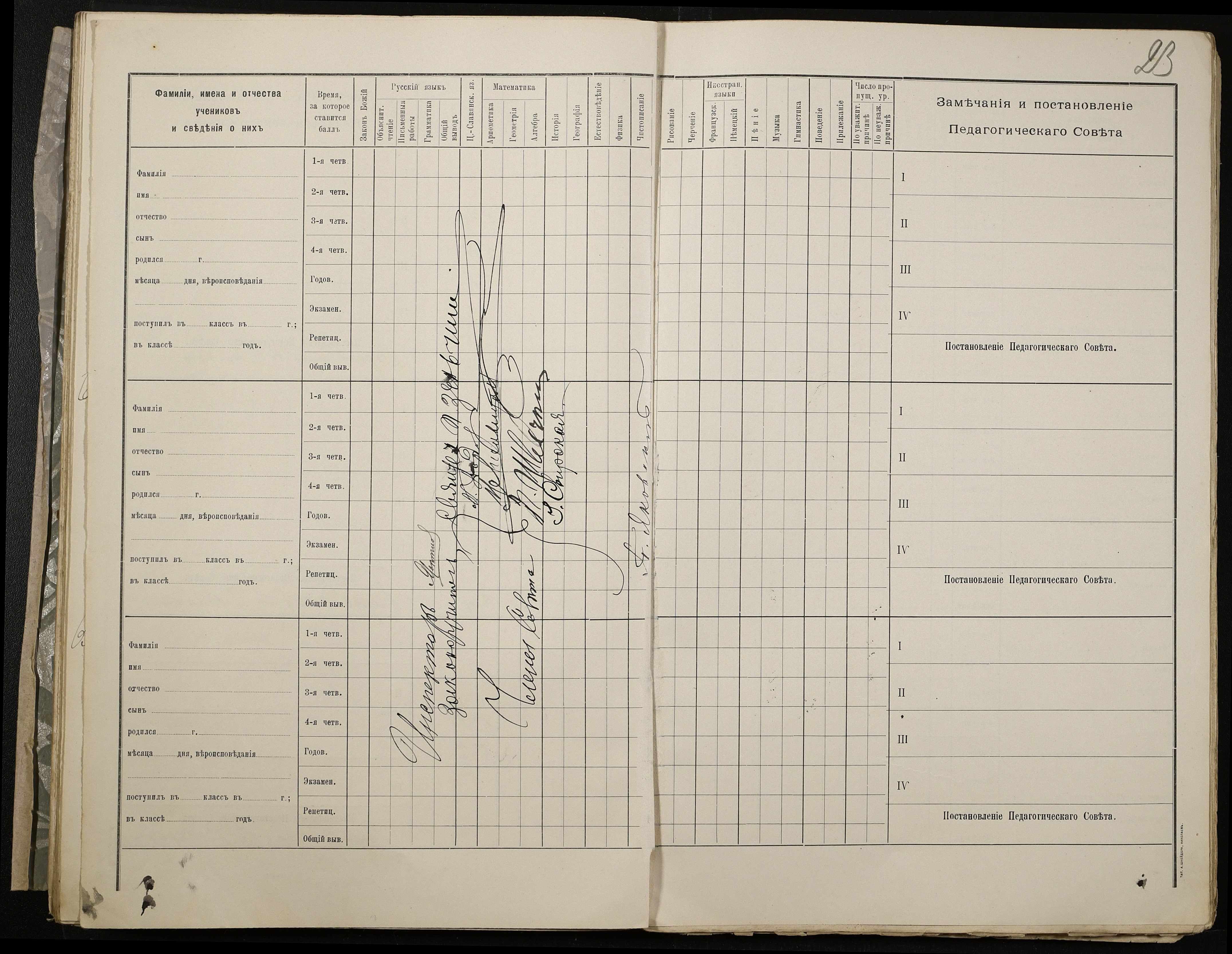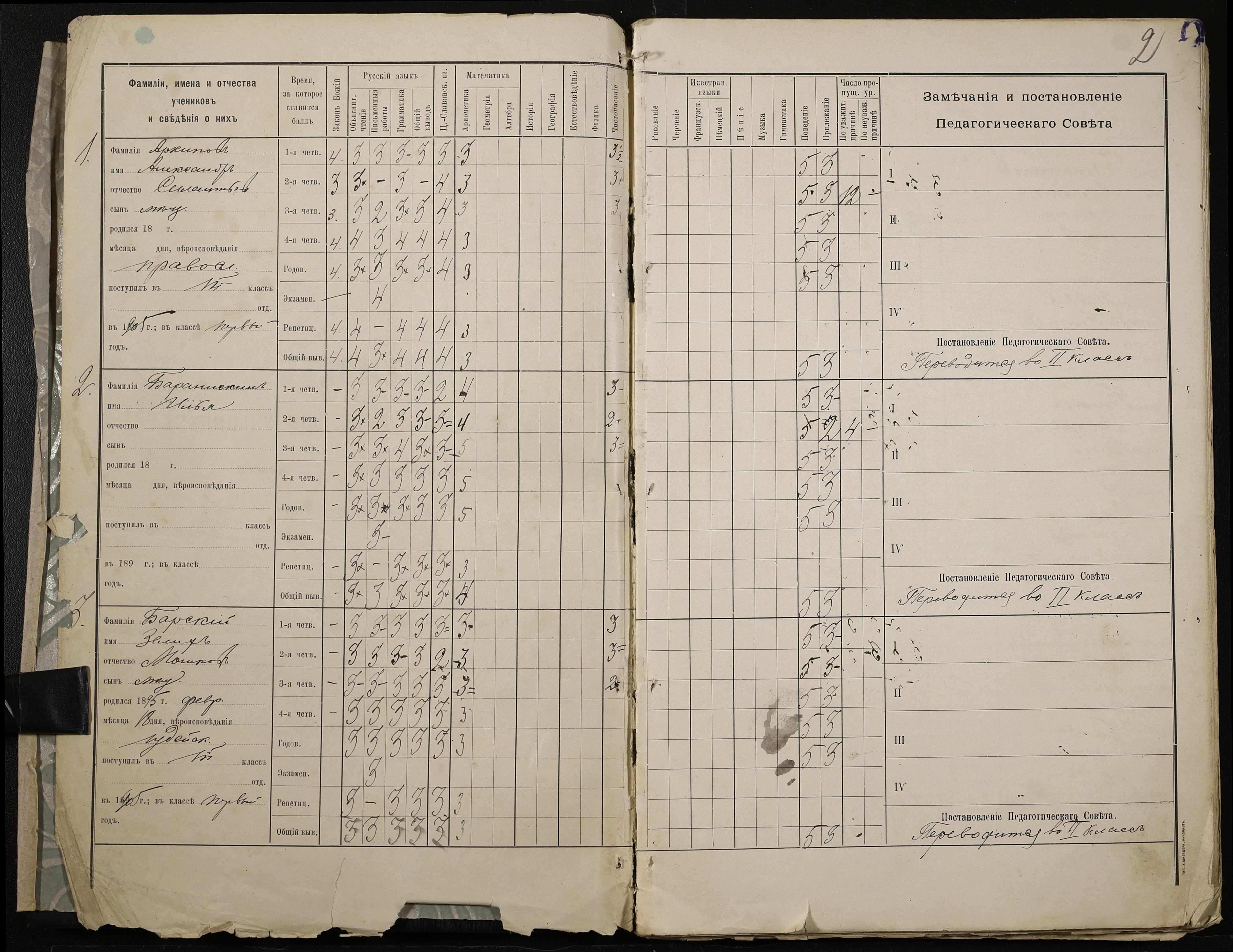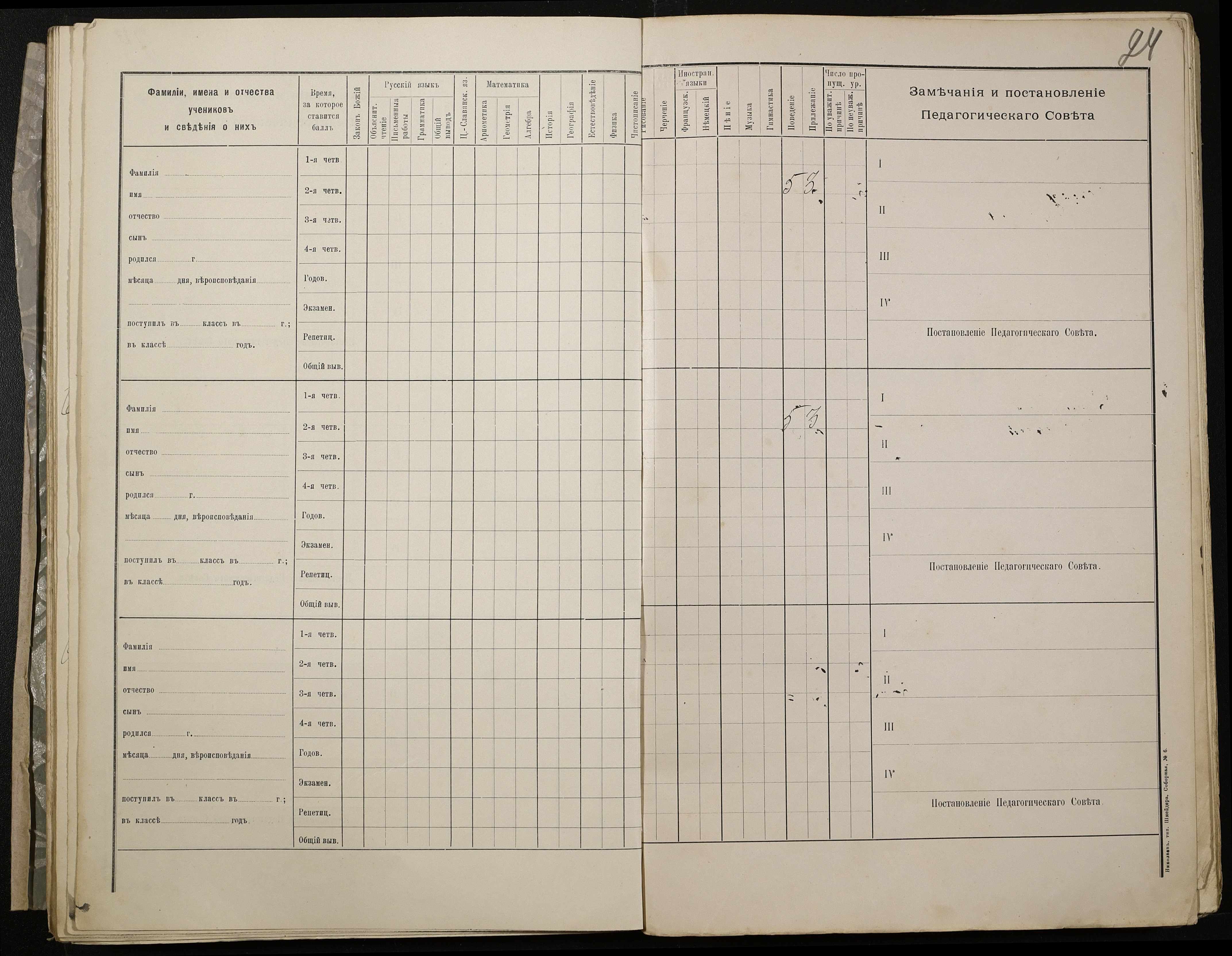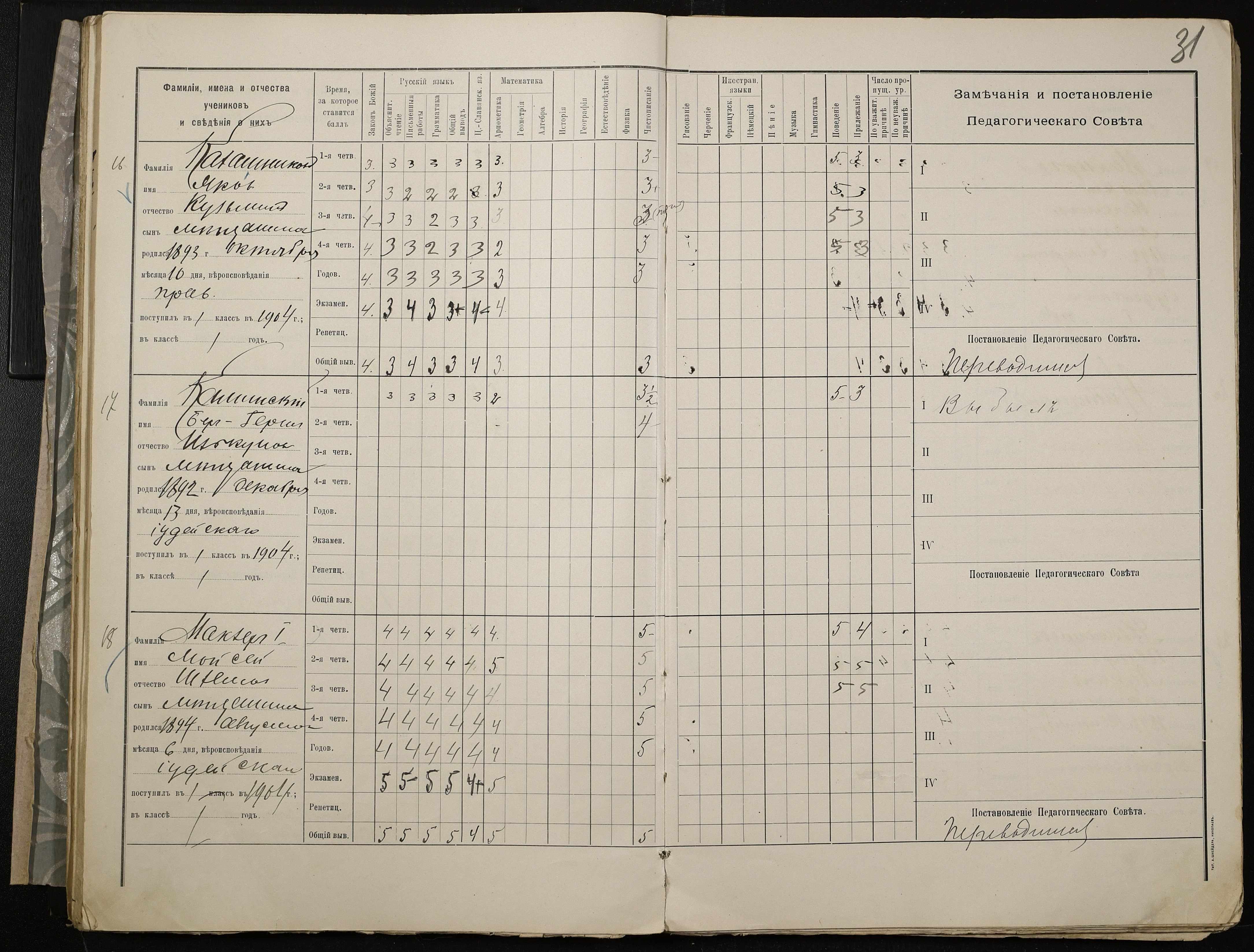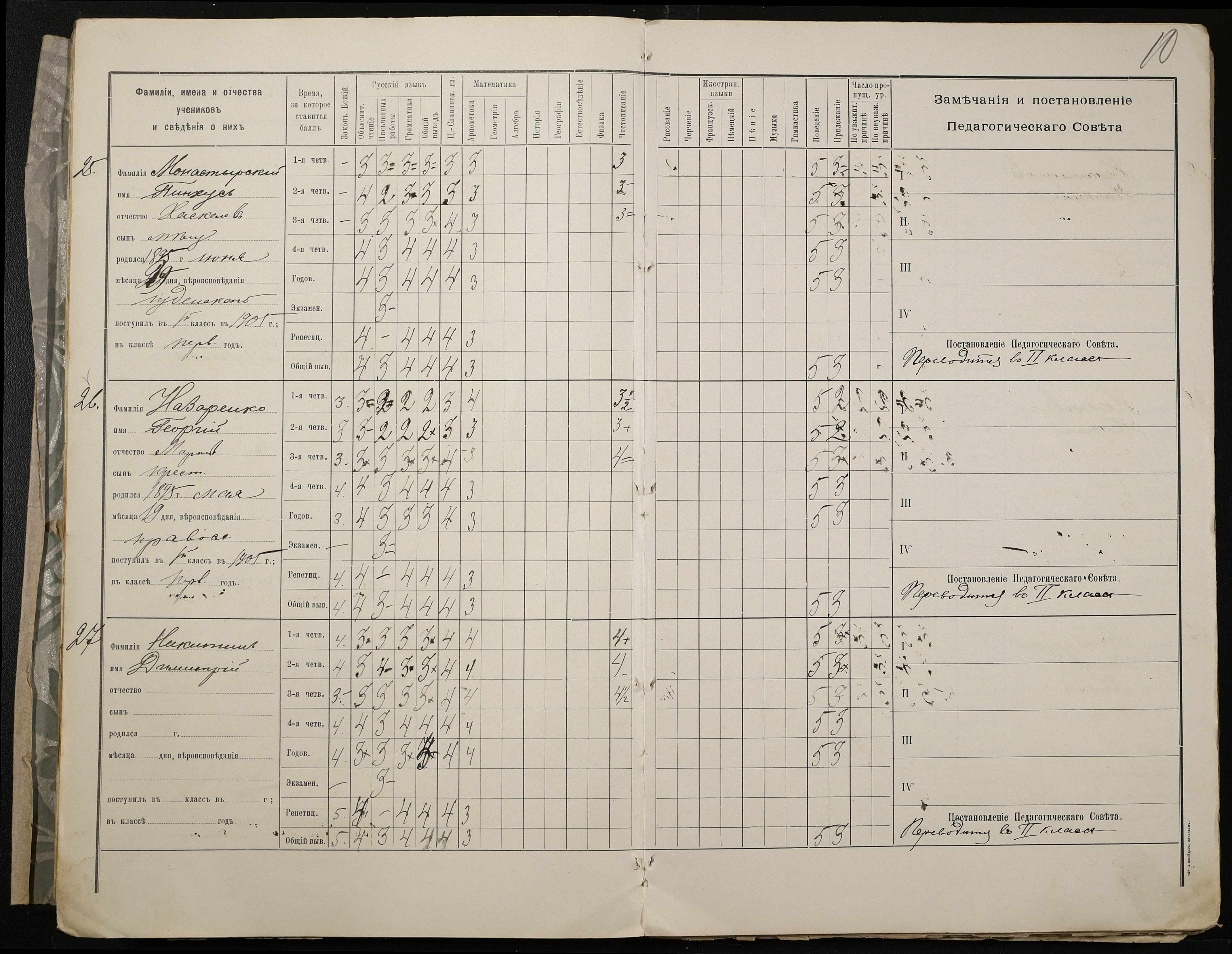 • • • • Справа № 409 “Відомості успішності та поведінки учнів першого класу за 1905-1906 навчальний рік”
