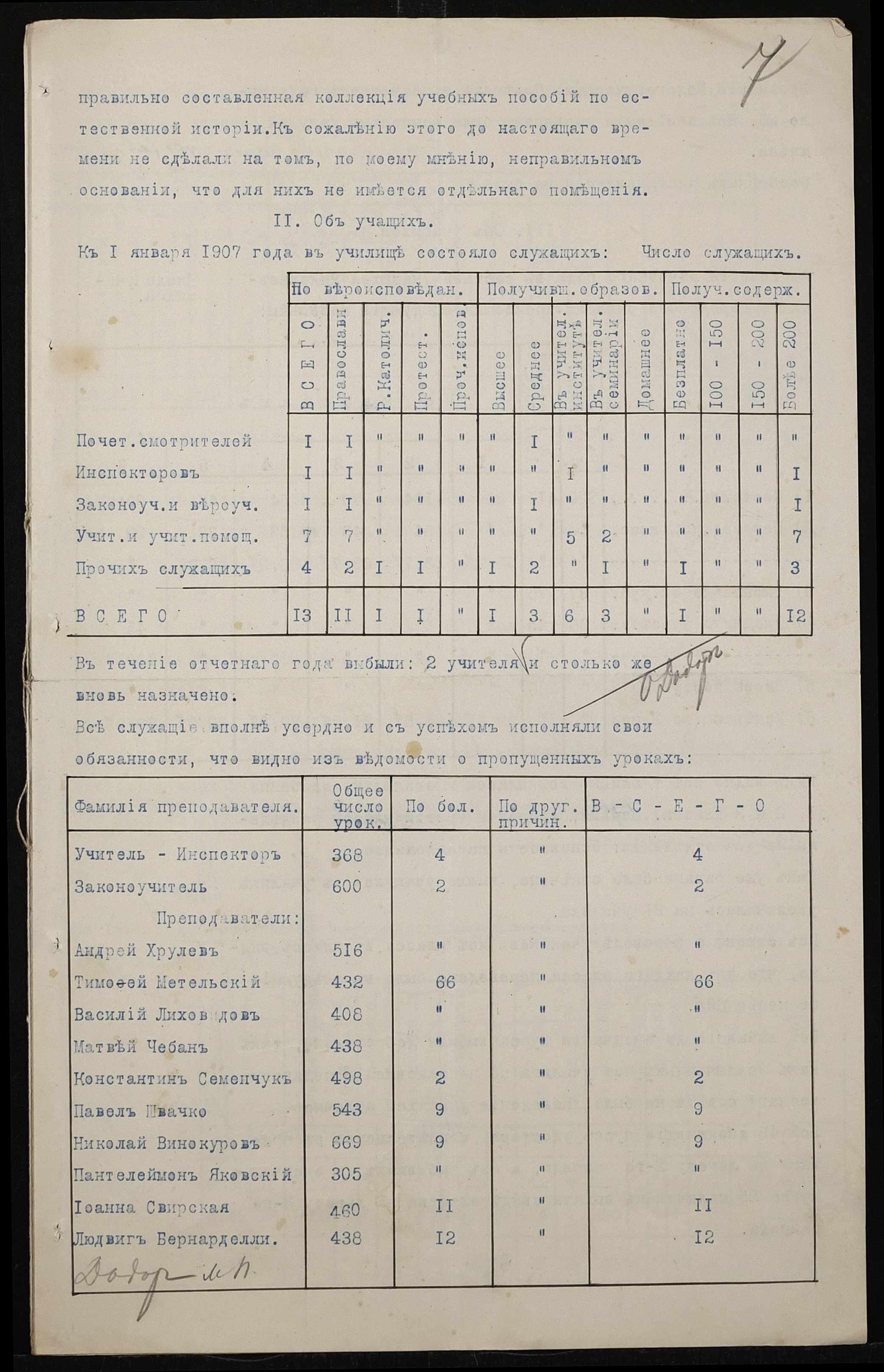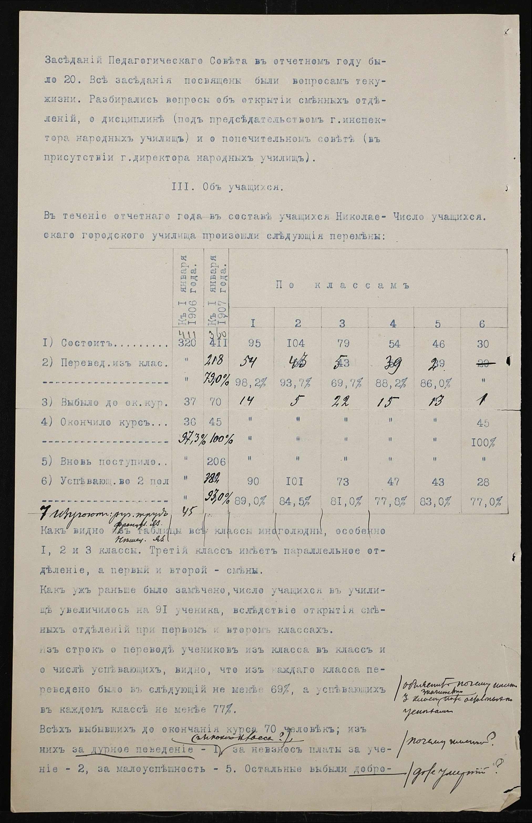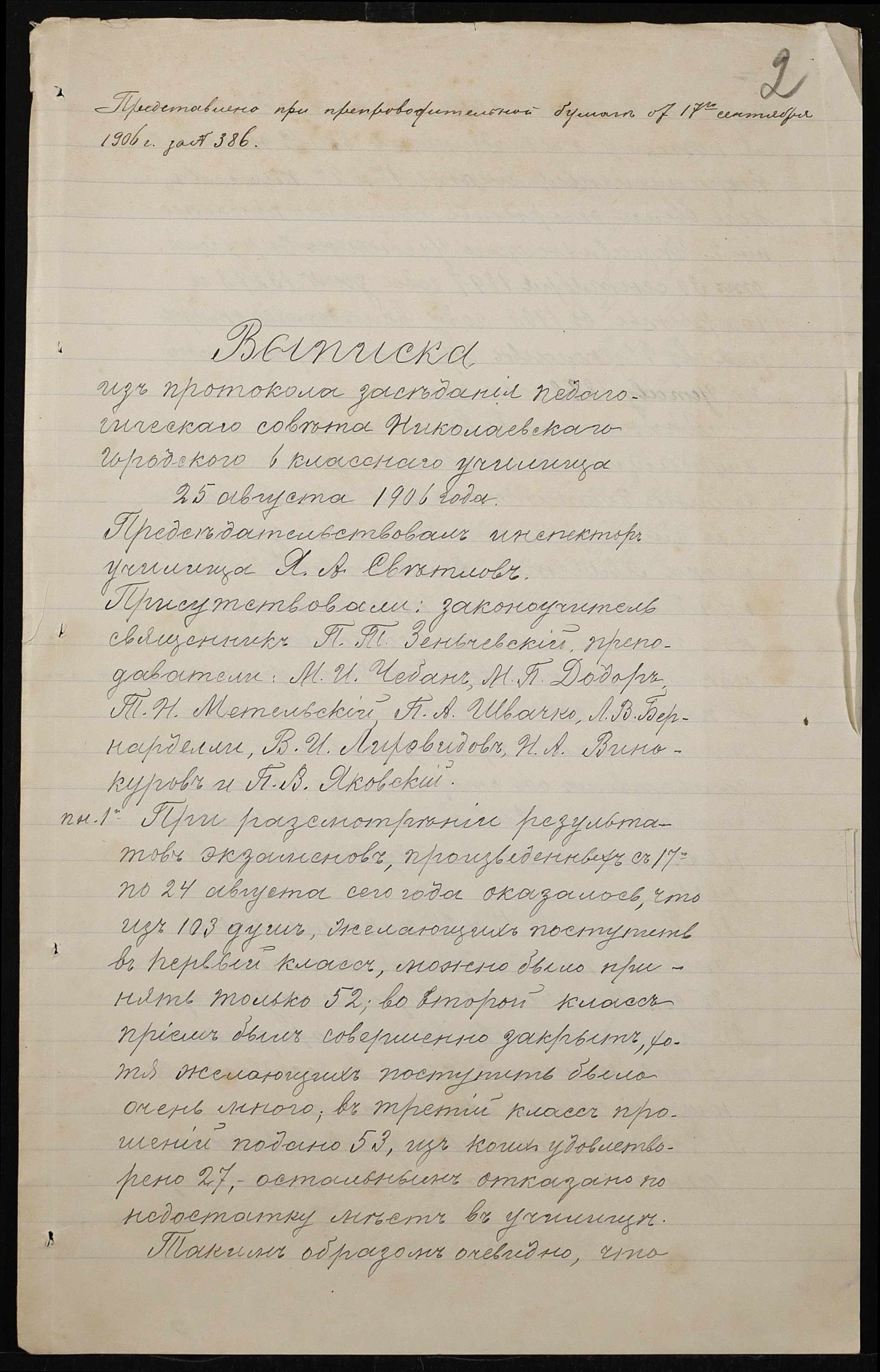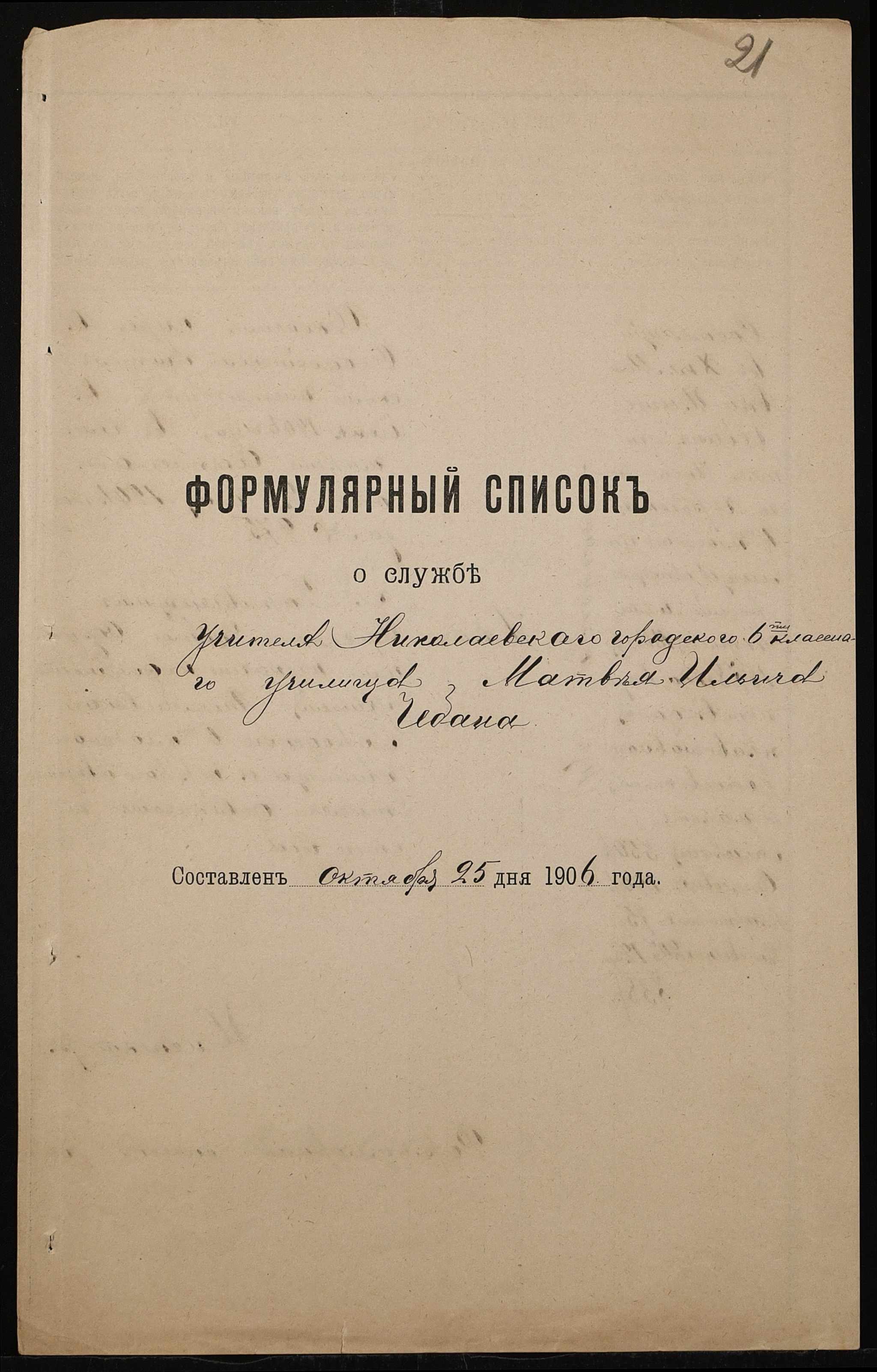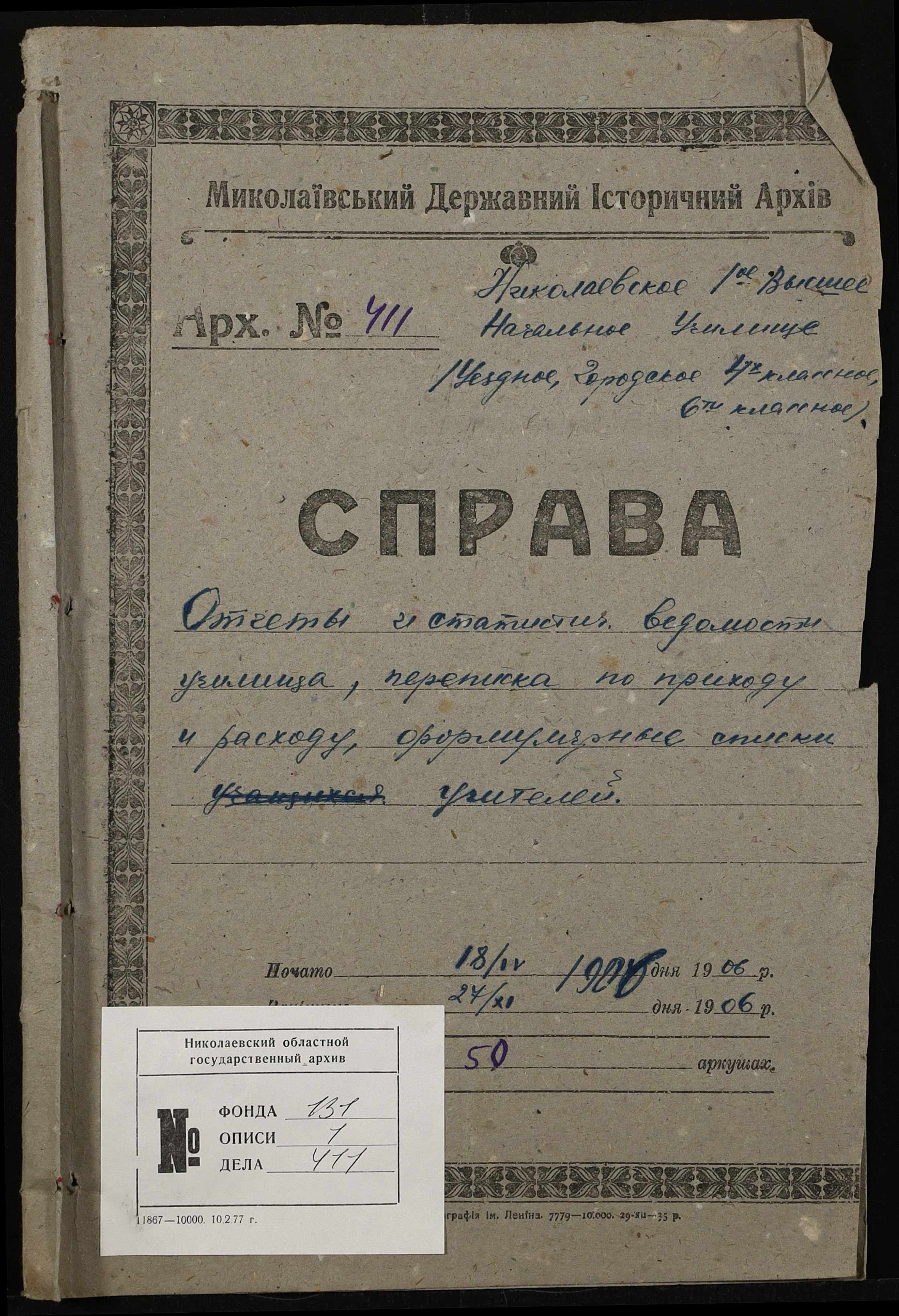 • • • • Справа № 411 “Статистичні відомості про стан училища за 1906 рік, формулярні списки викладачів, протокол засідань педагогічної ради”