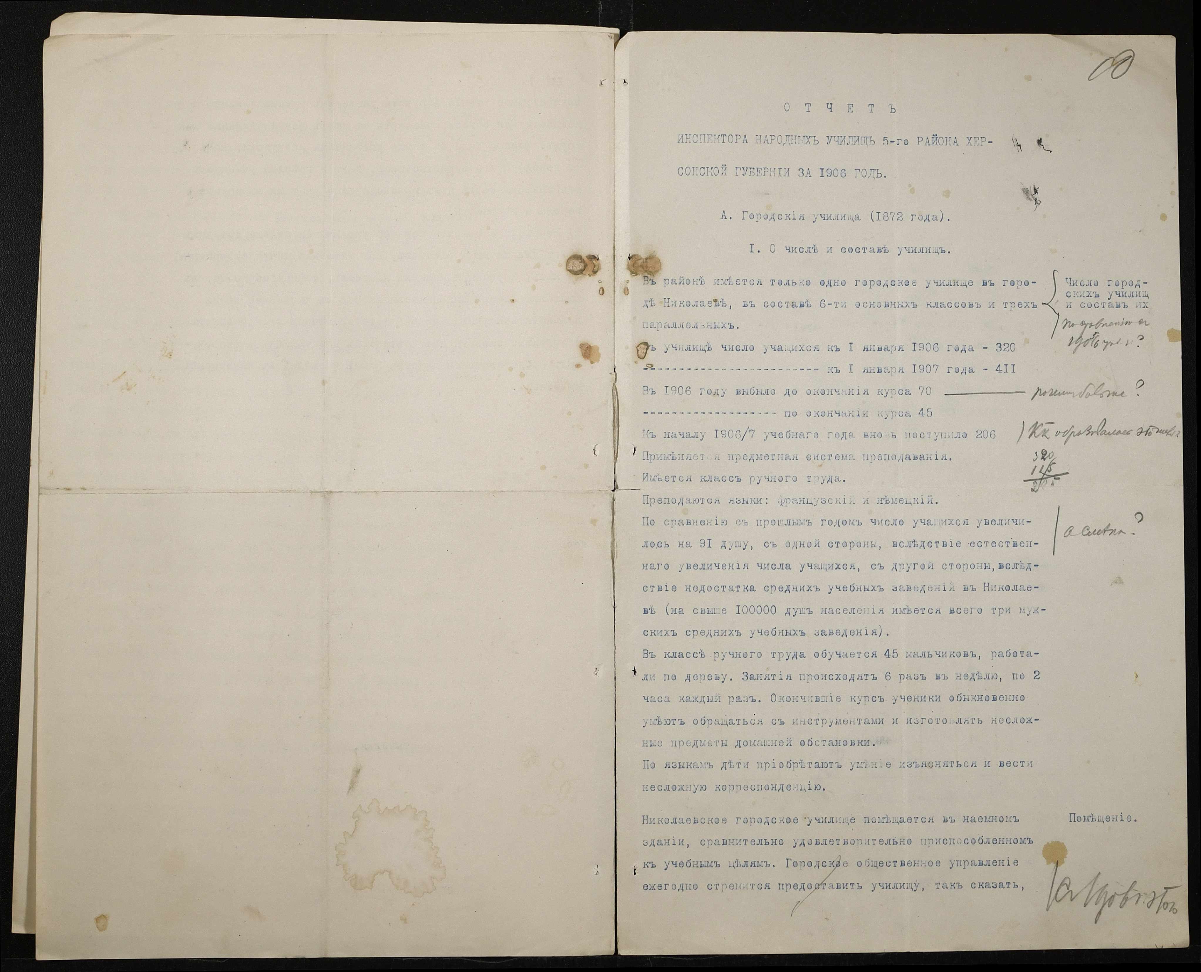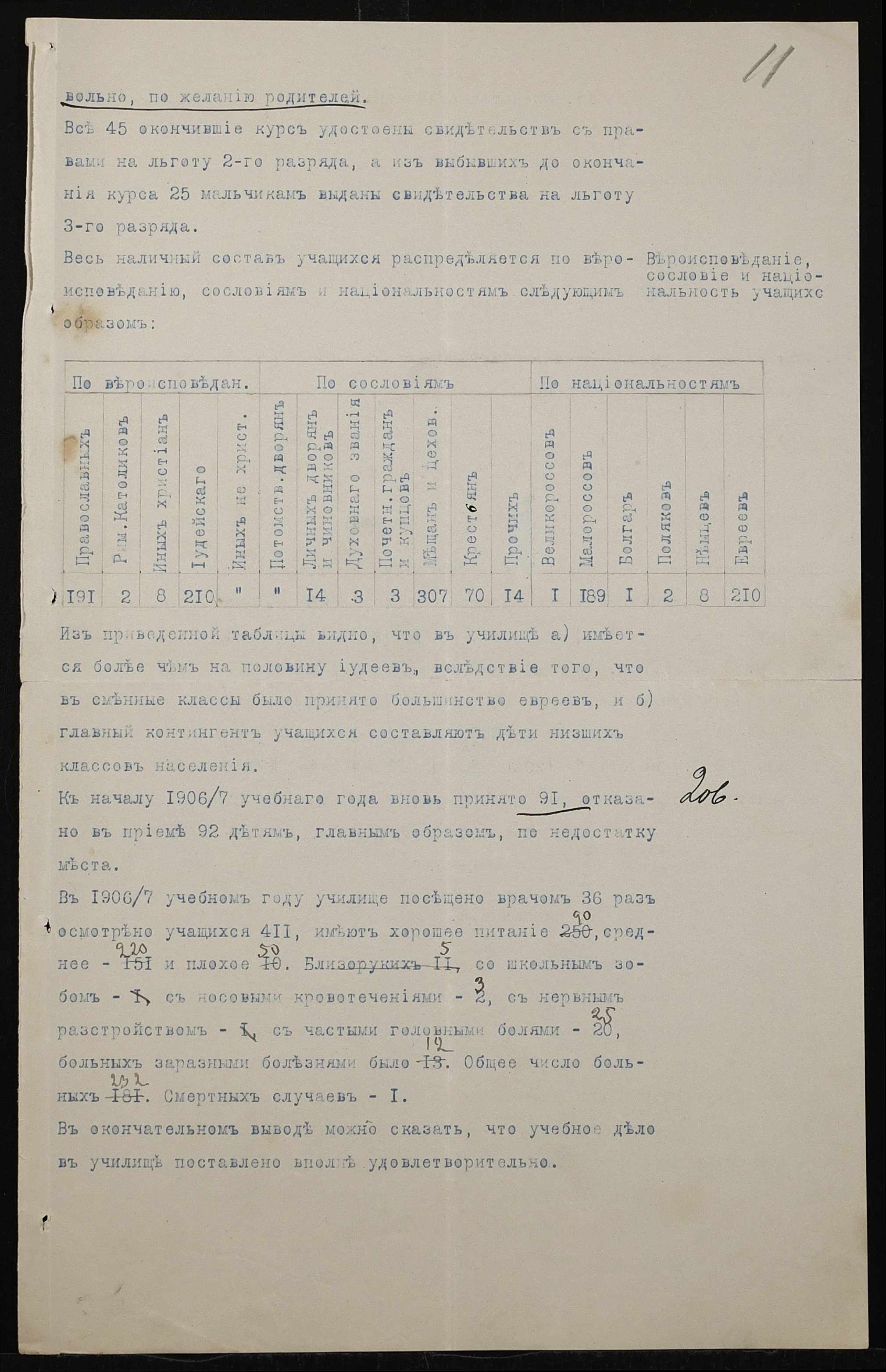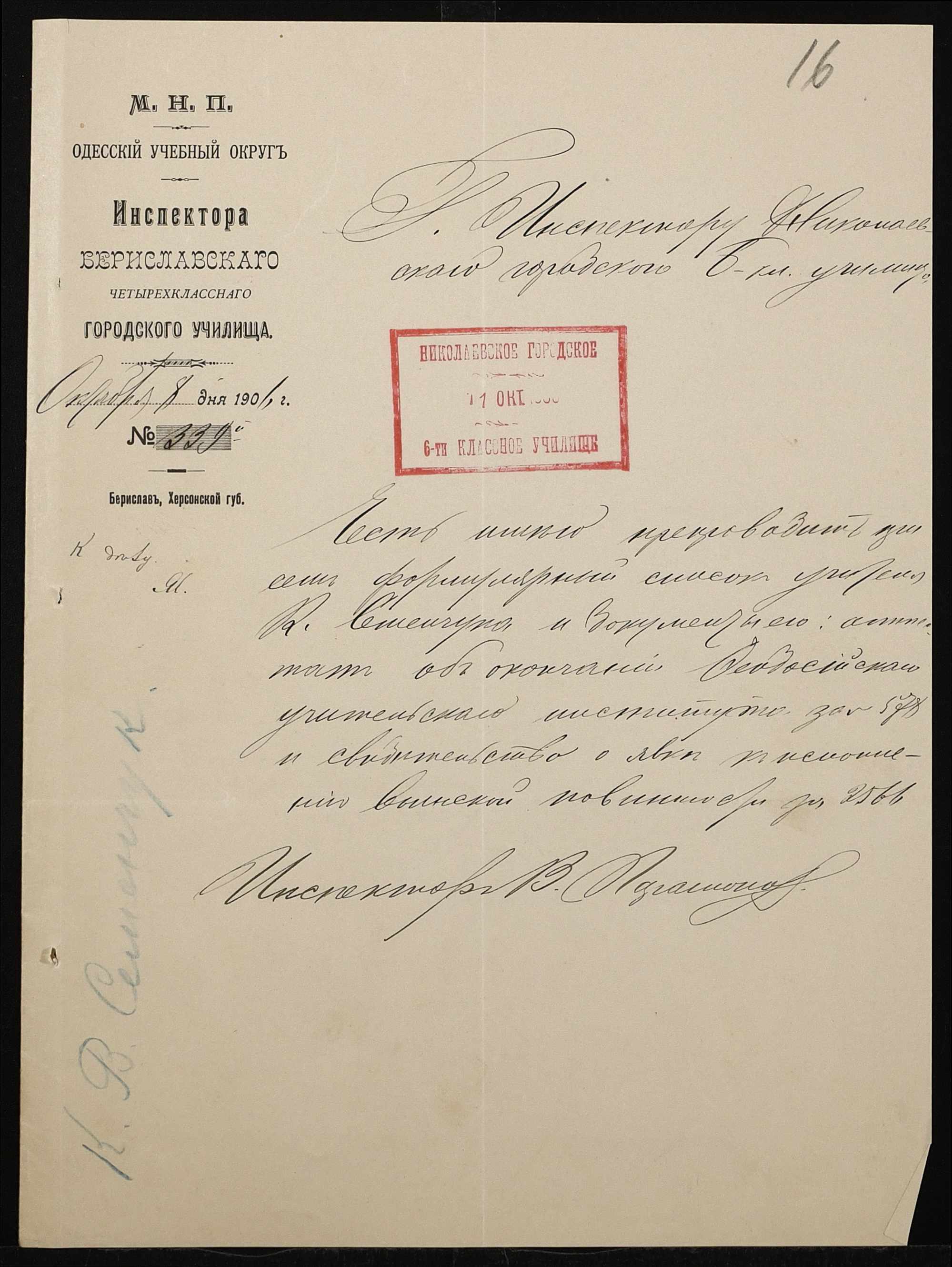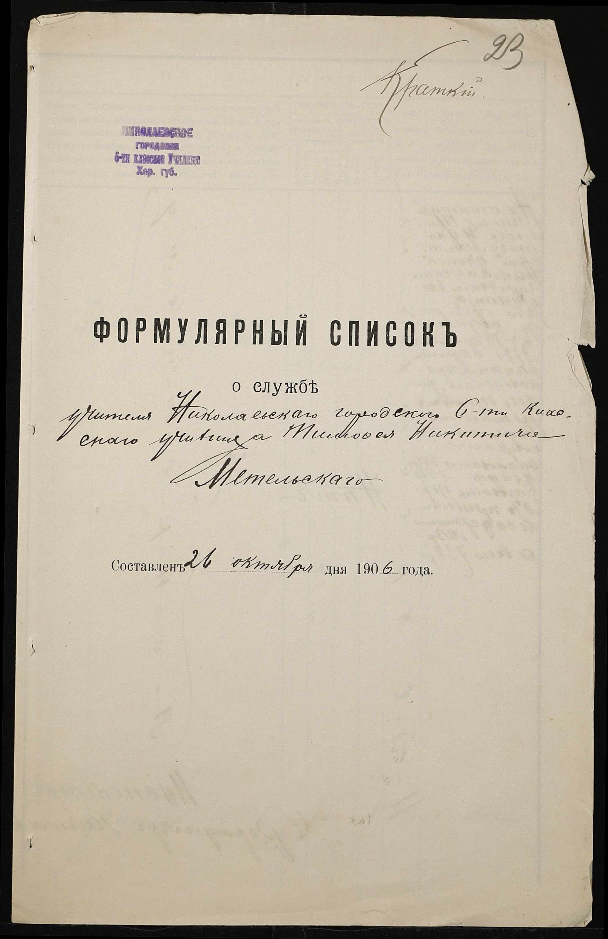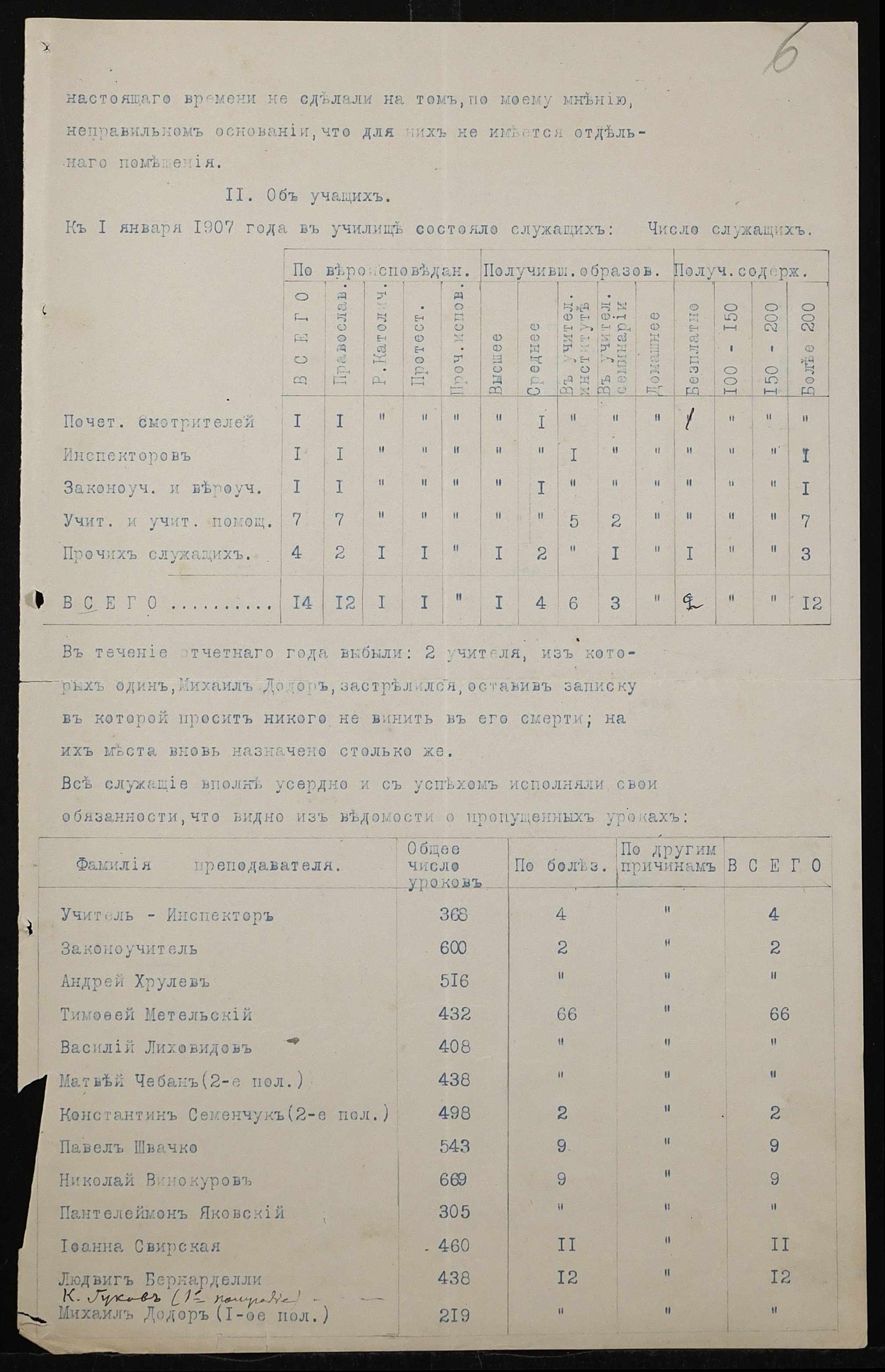 • • • • Справа № 411 “Статистичні відомості про стан училища за 1906 рік, формулярні списки викладачів, протокол засідань педагогічної ради”
