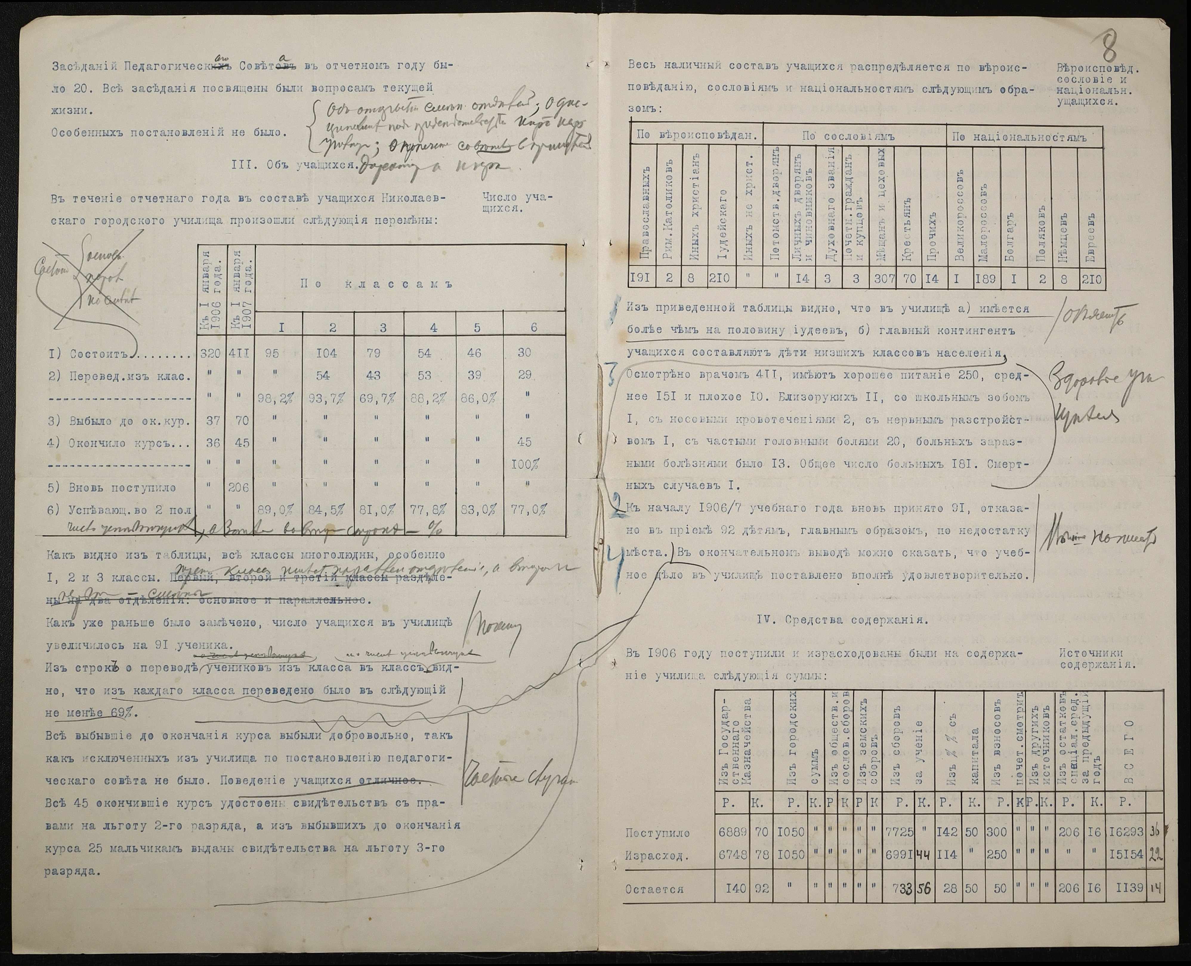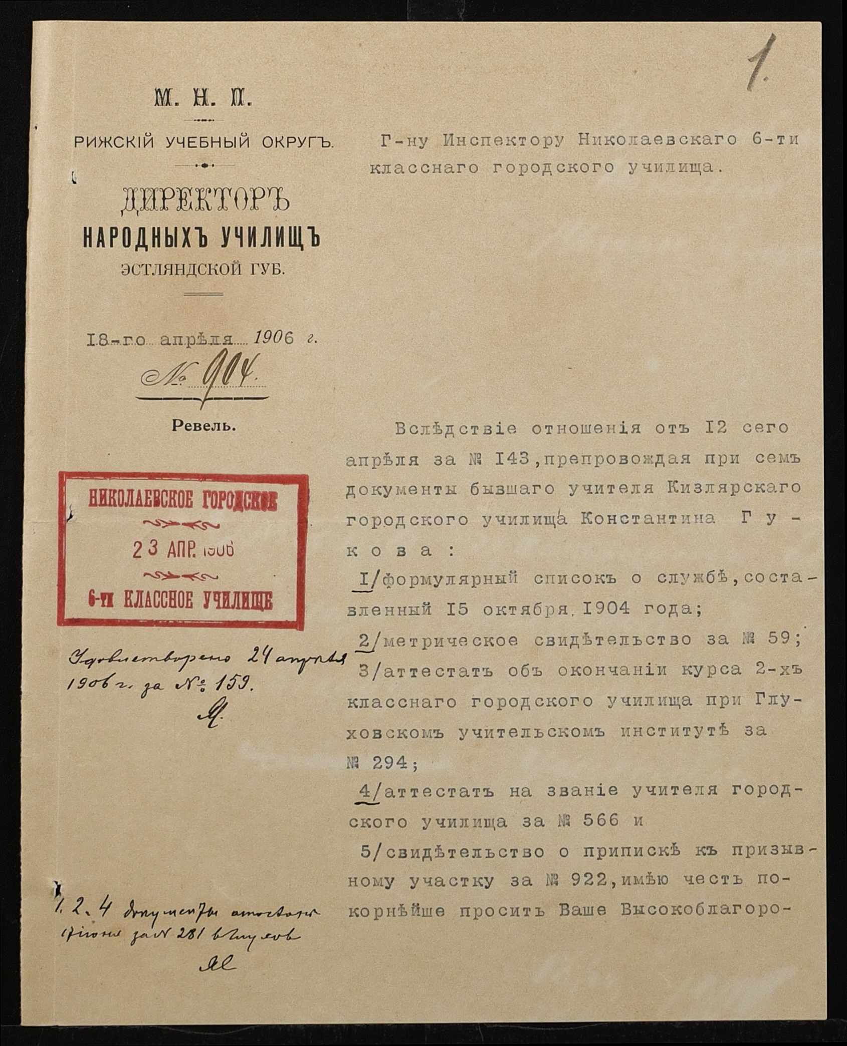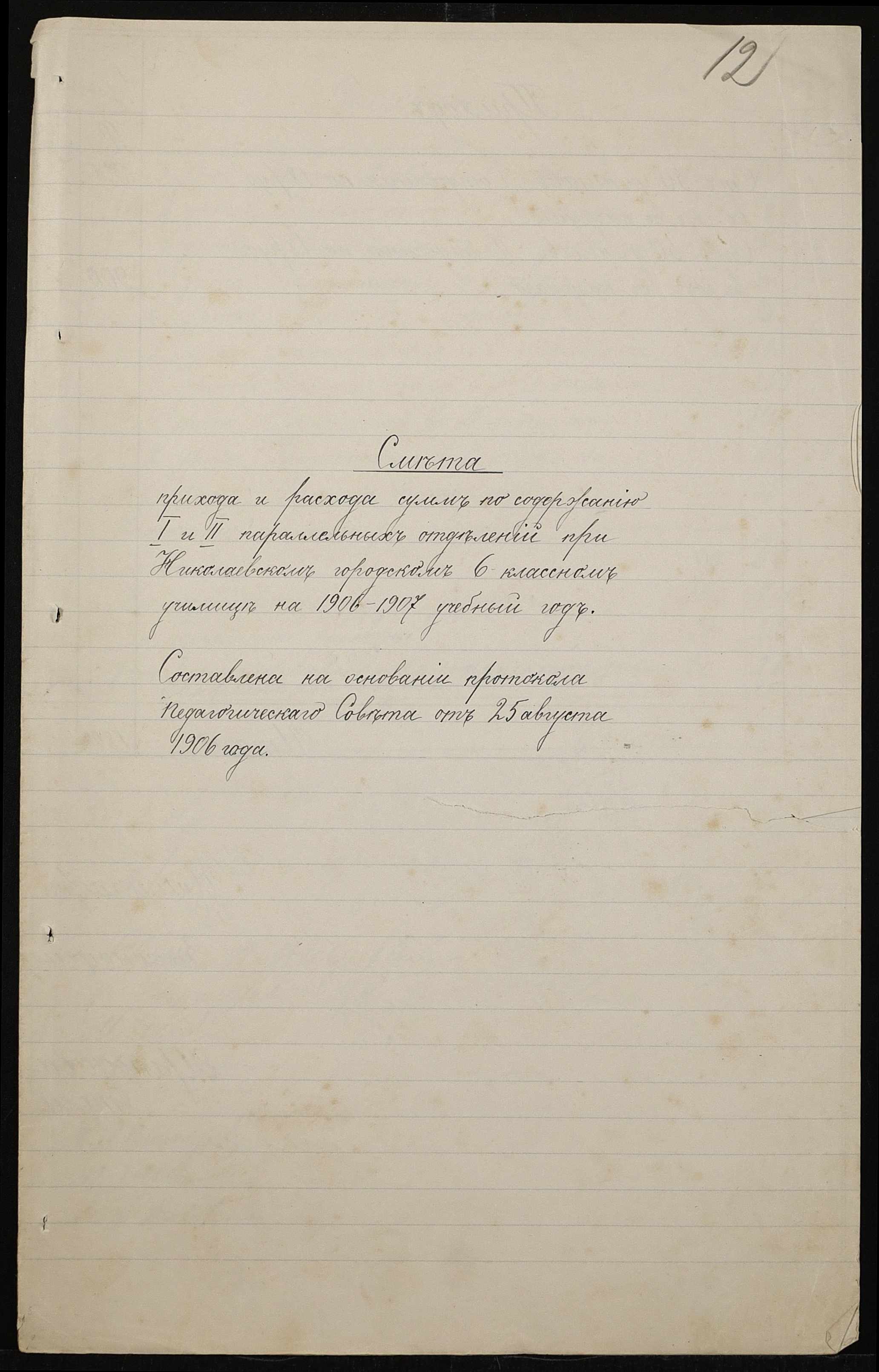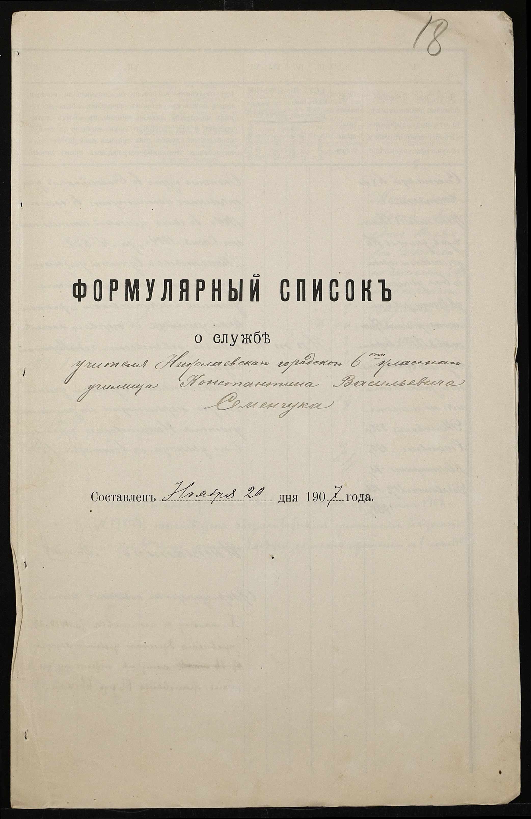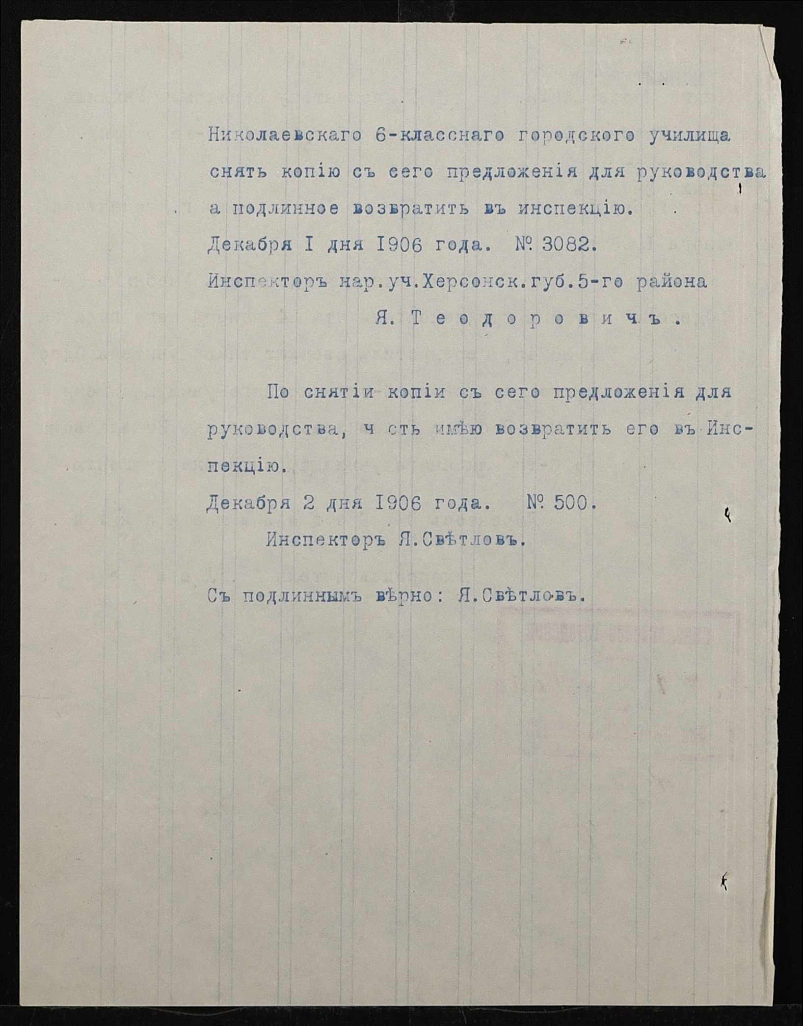 • • • • Справа № 411 “Статистичні відомості про стан училища за 1906 рік, формулярні списки викладачів, протокол засідань педагогічної ради”