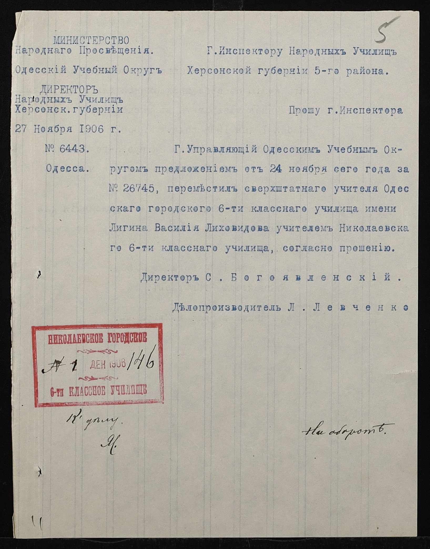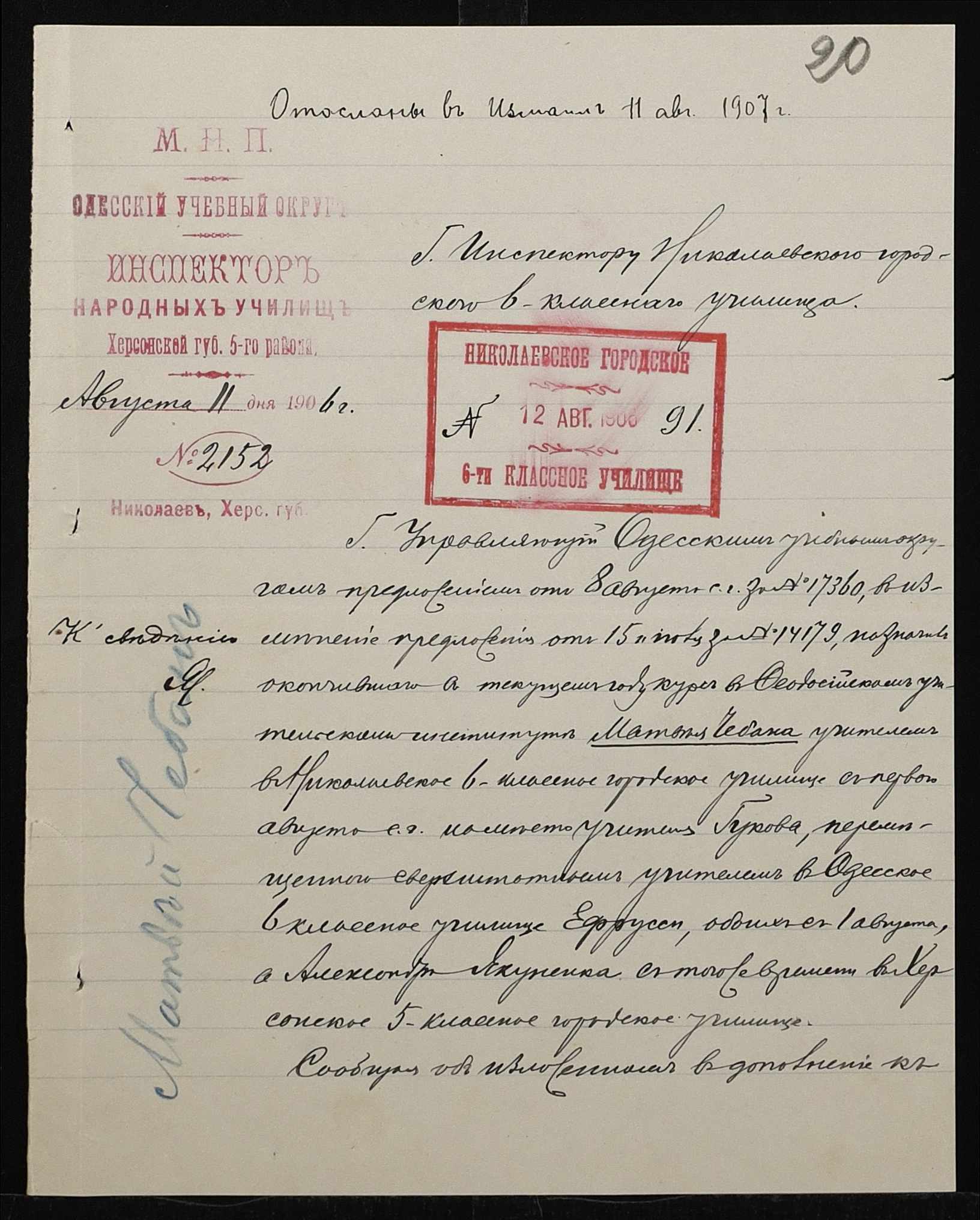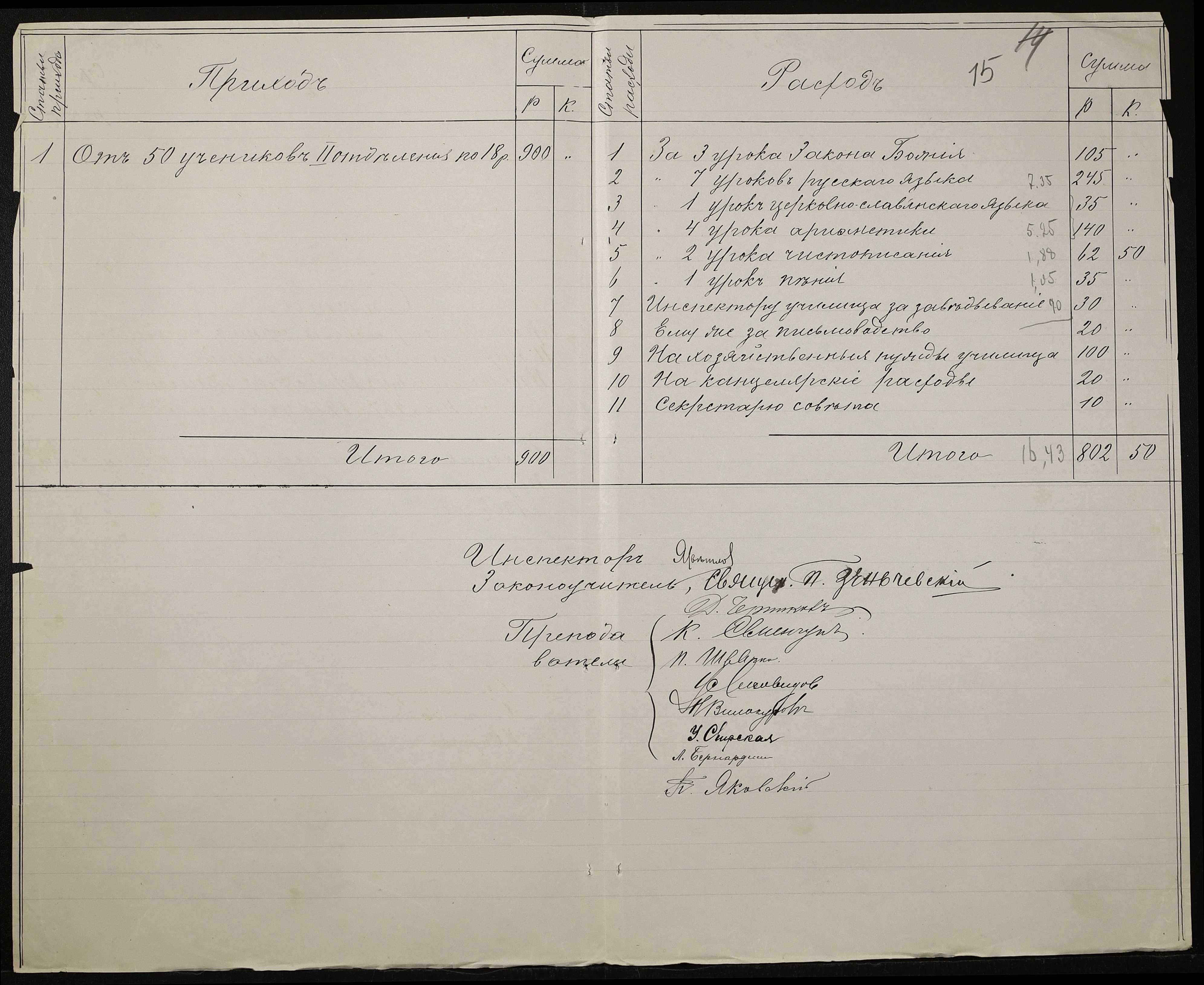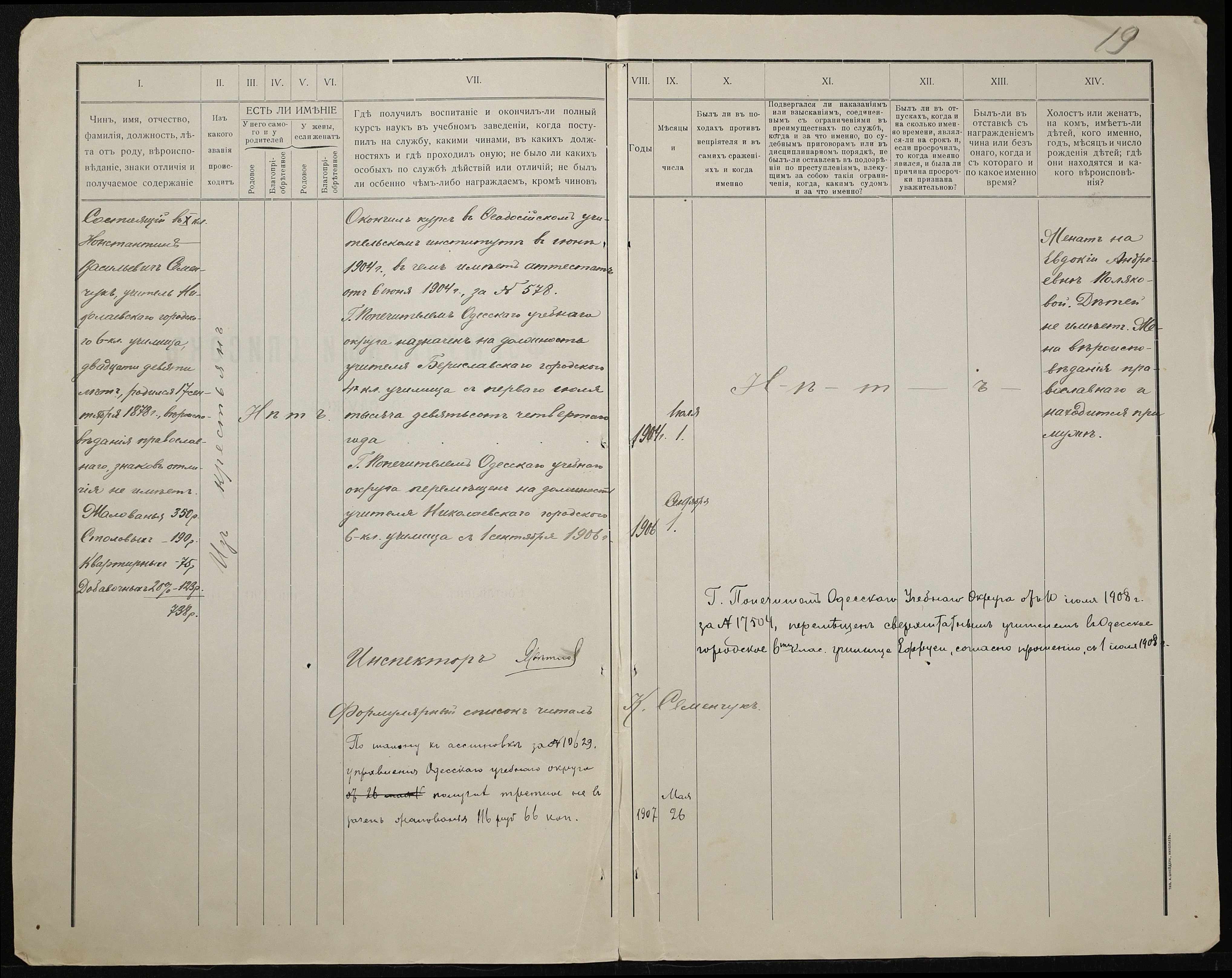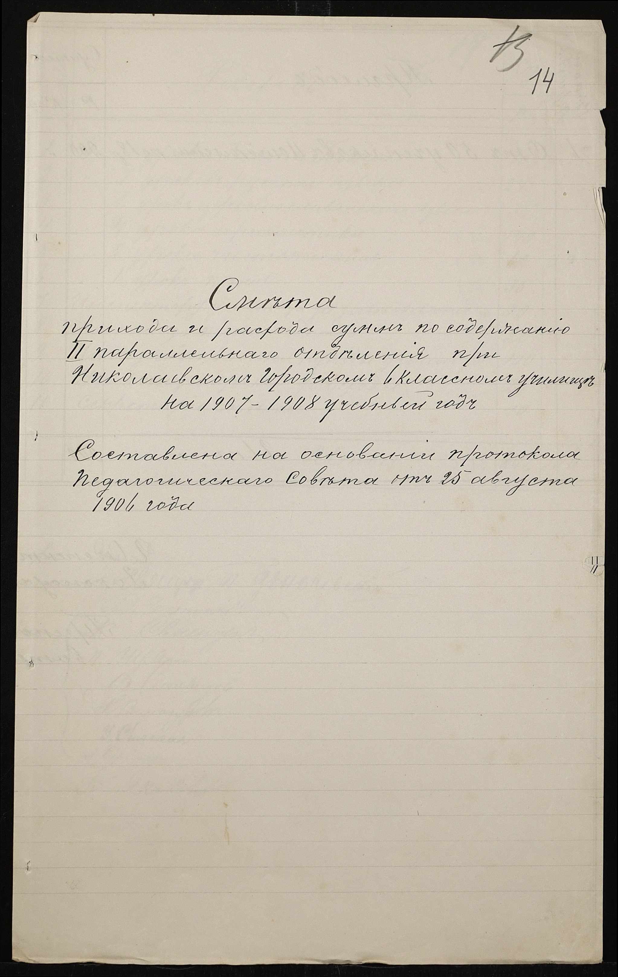 • • • • Справа № 411 “Статистичні відомості про стан училища за 1906 рік, формулярні списки викладачів, протокол засідань педагогічної ради”