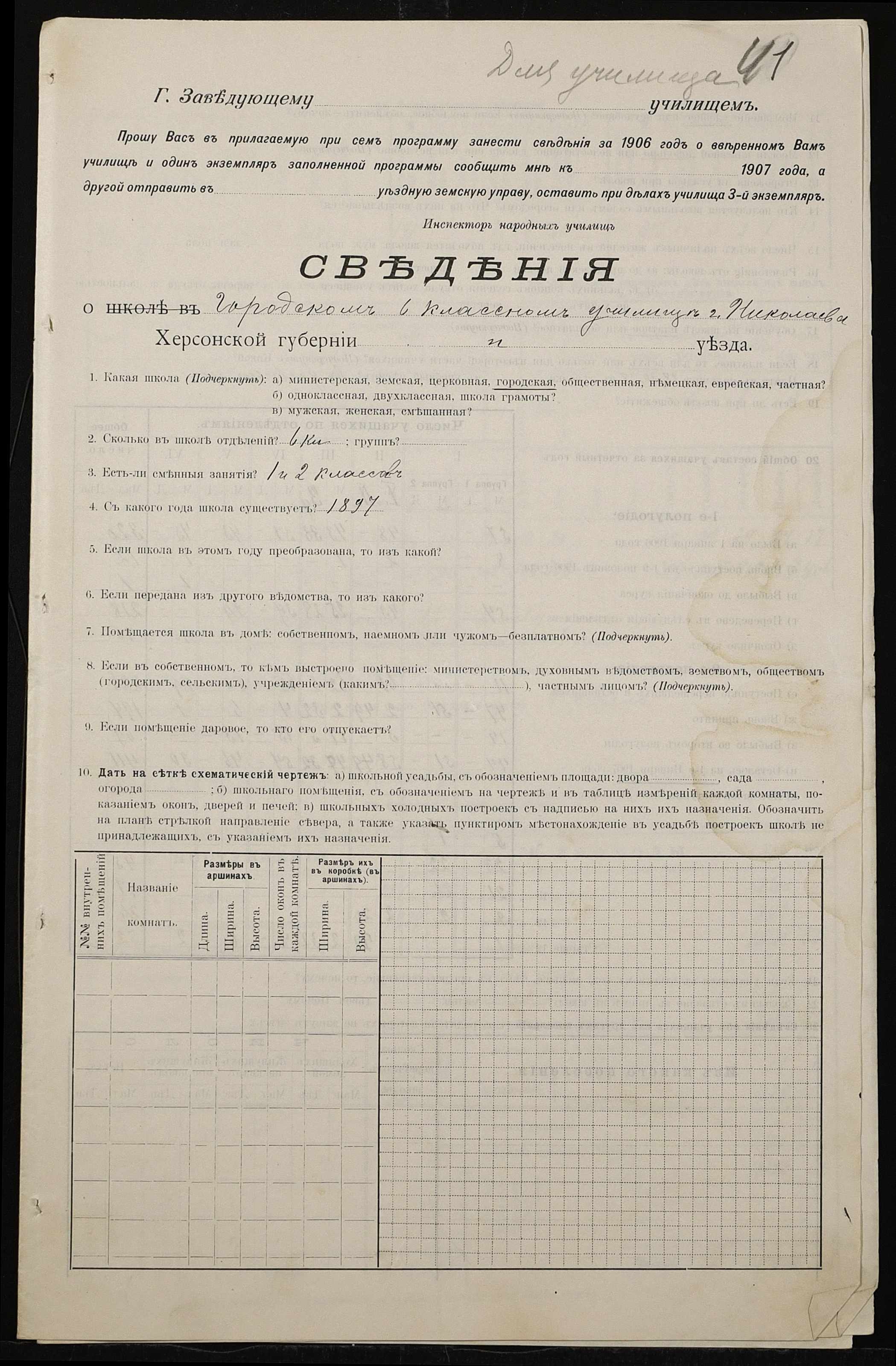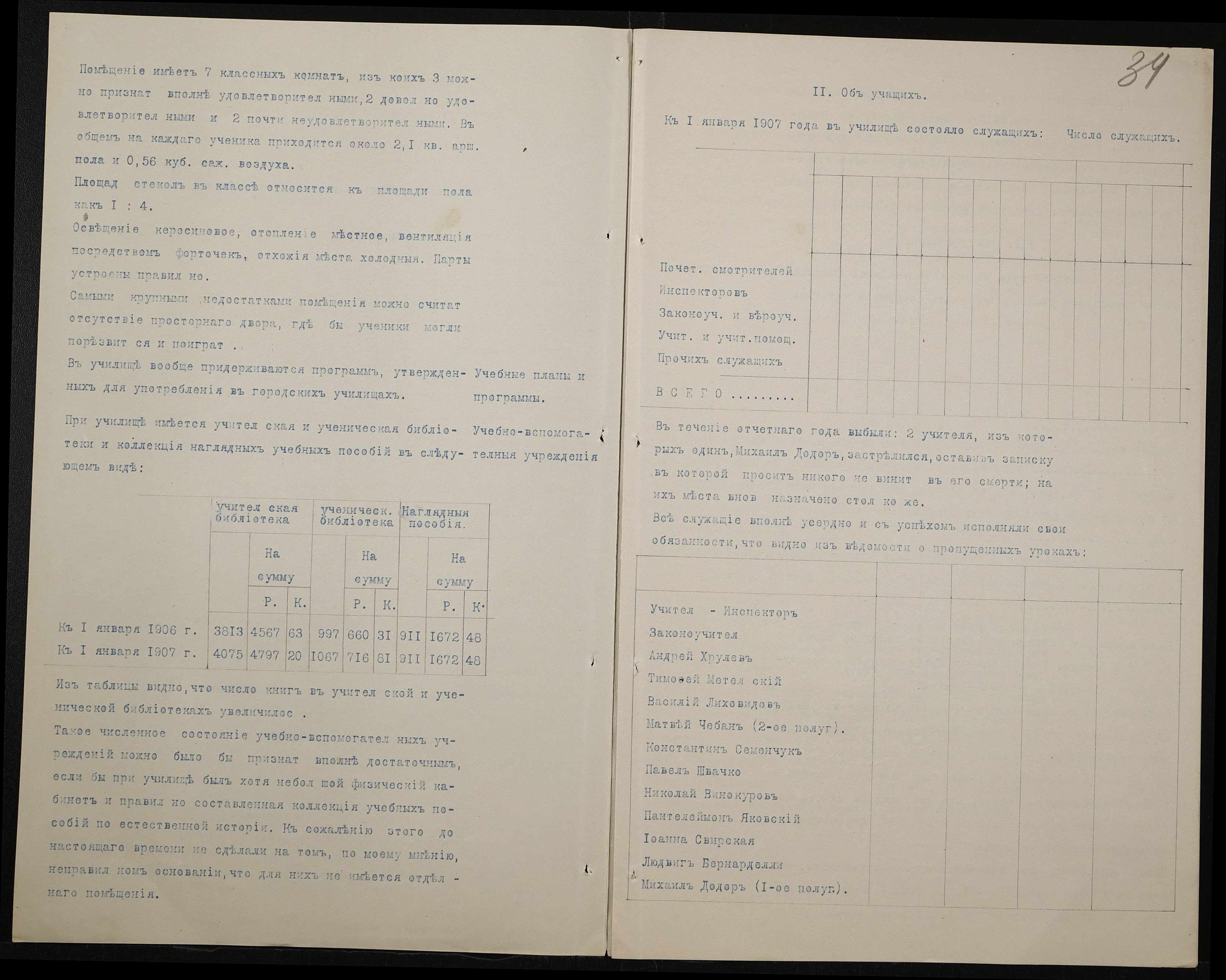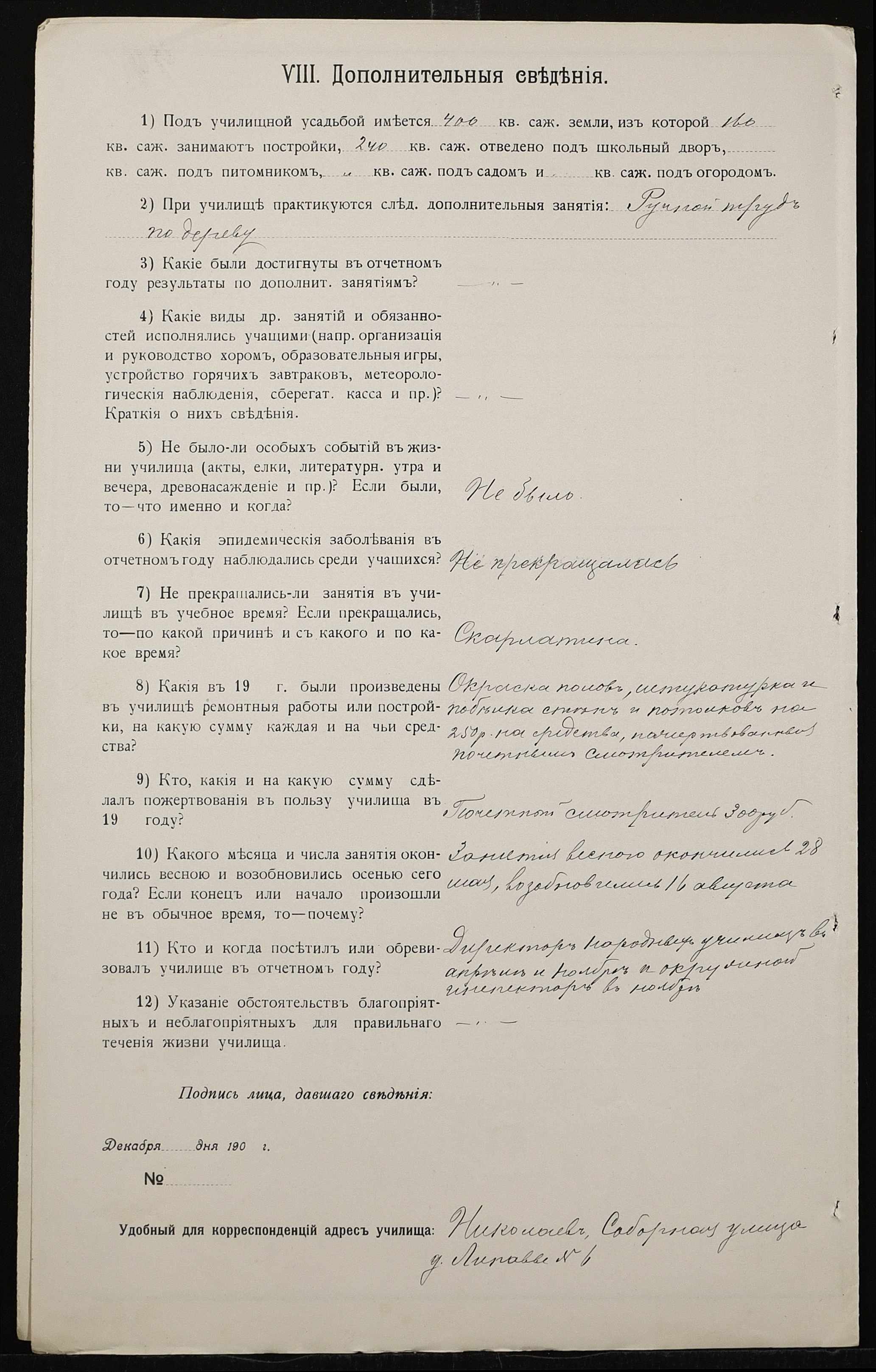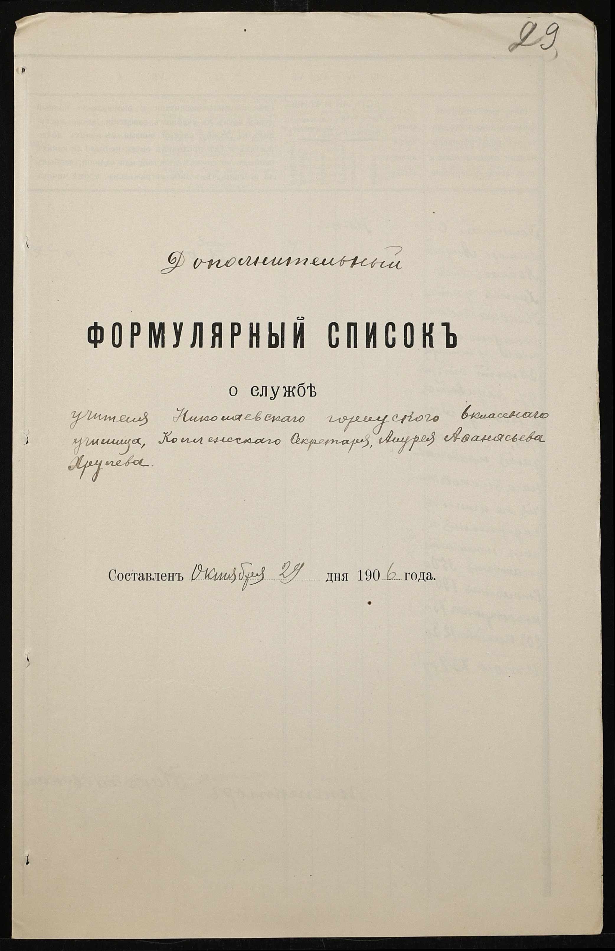 • • • • Справа № 411 “Статистичні відомості про стан училища за 1906 рік, формулярні списки викладачів, протокол засідань педагогічної ради”