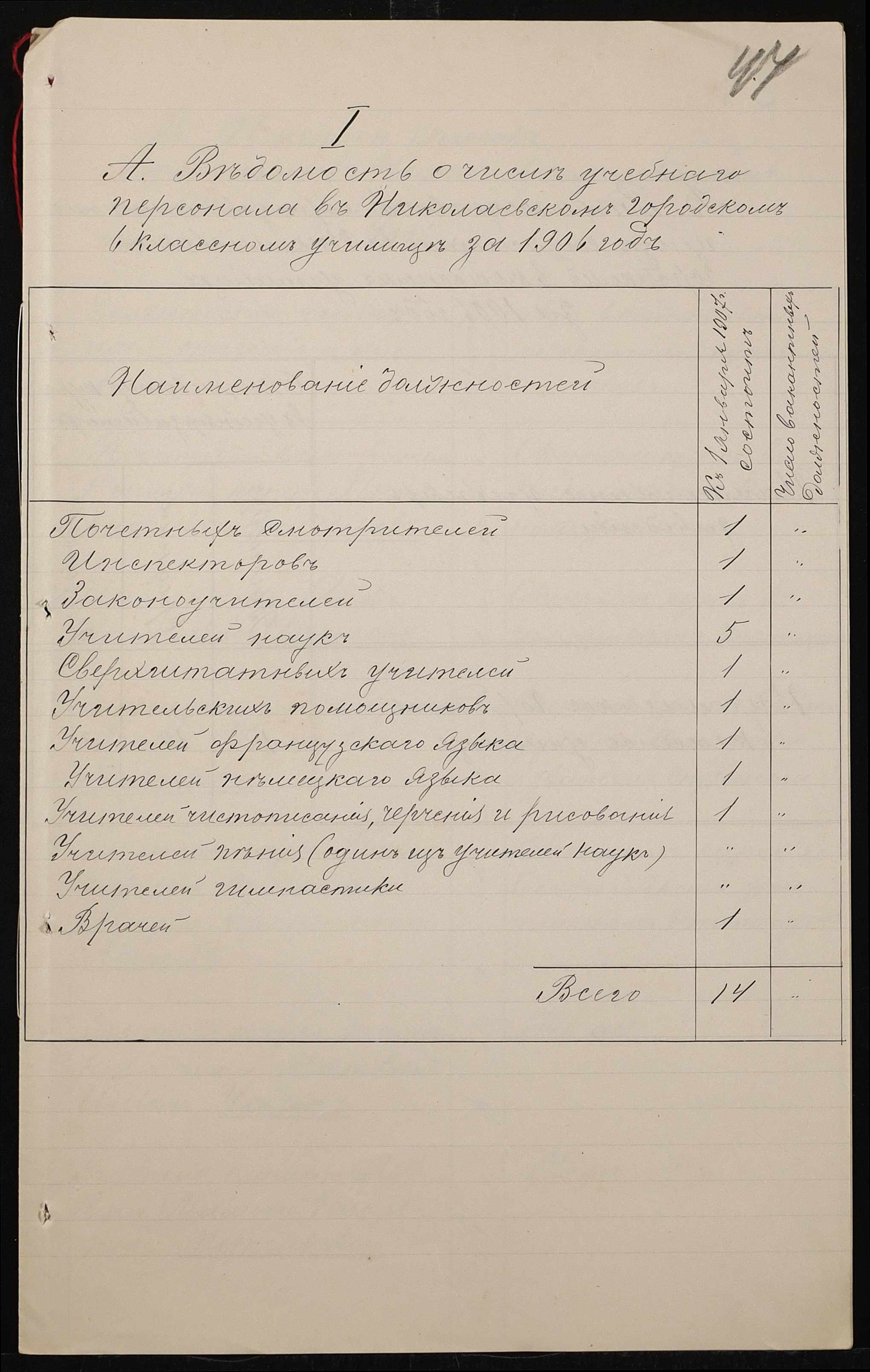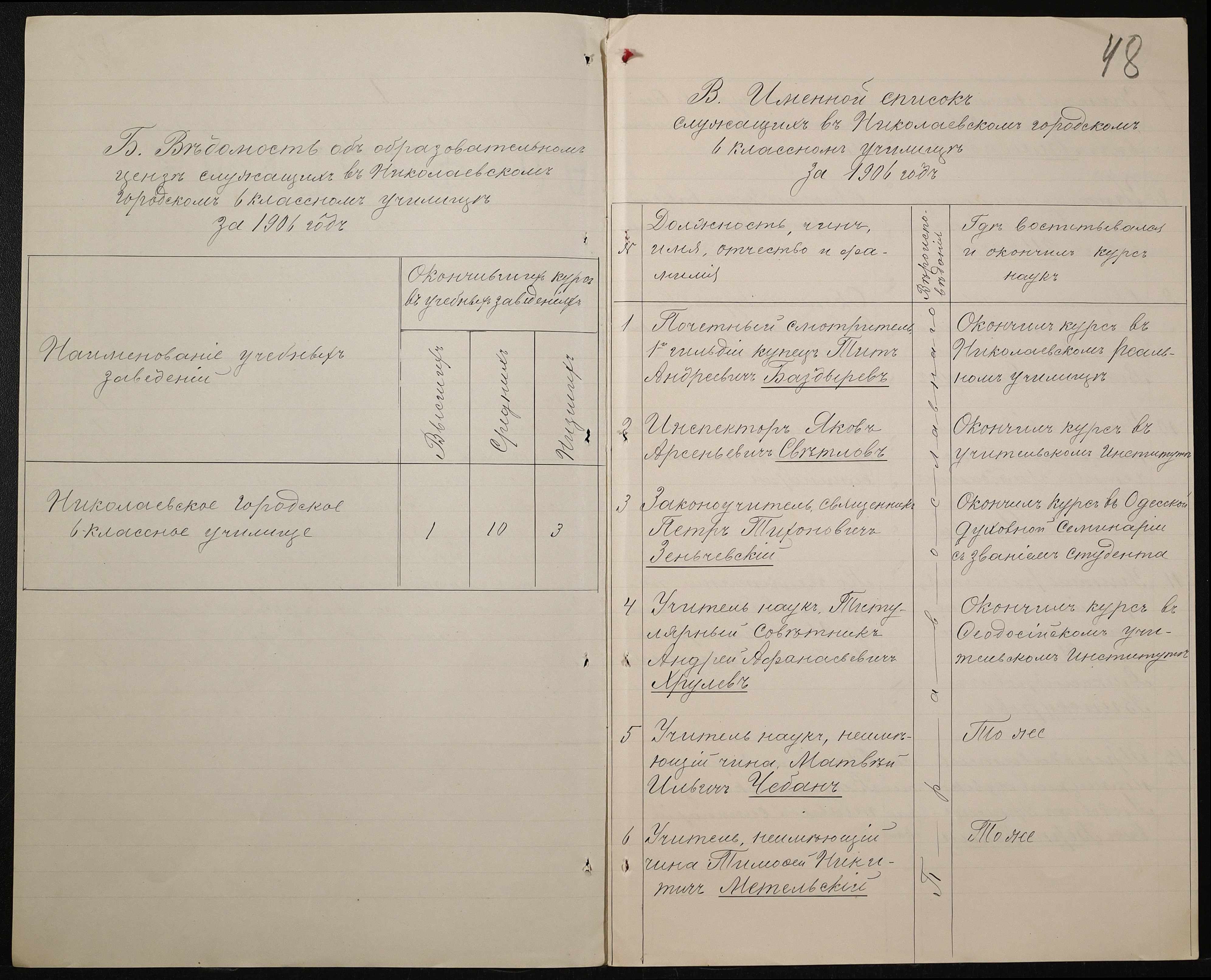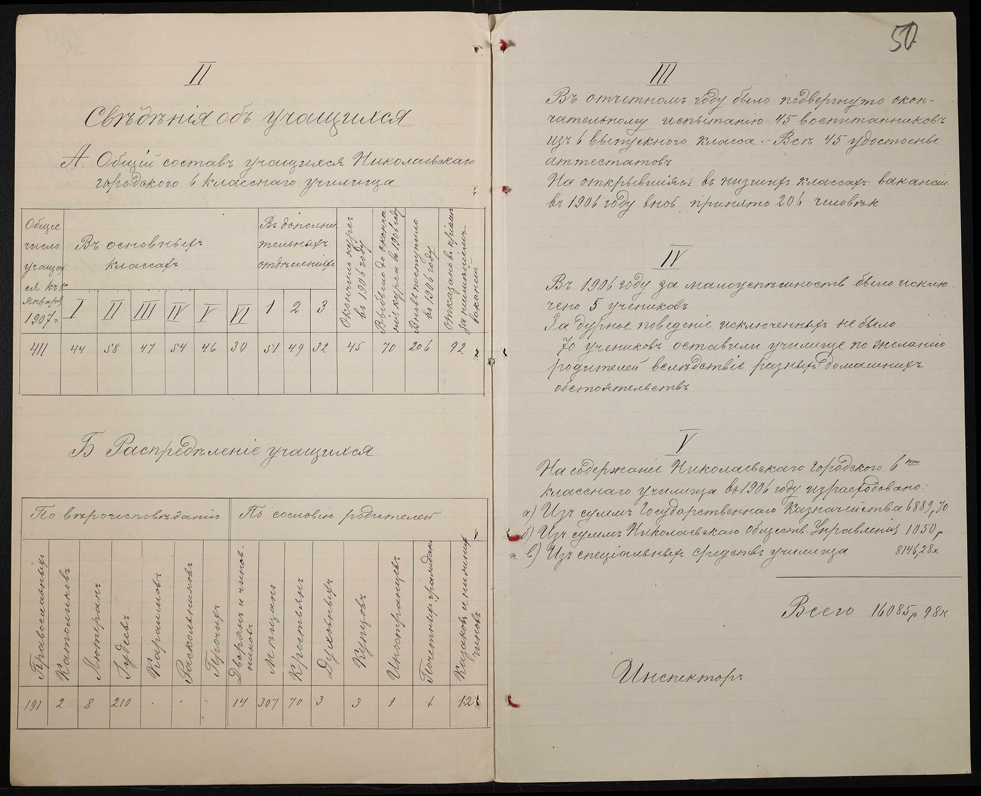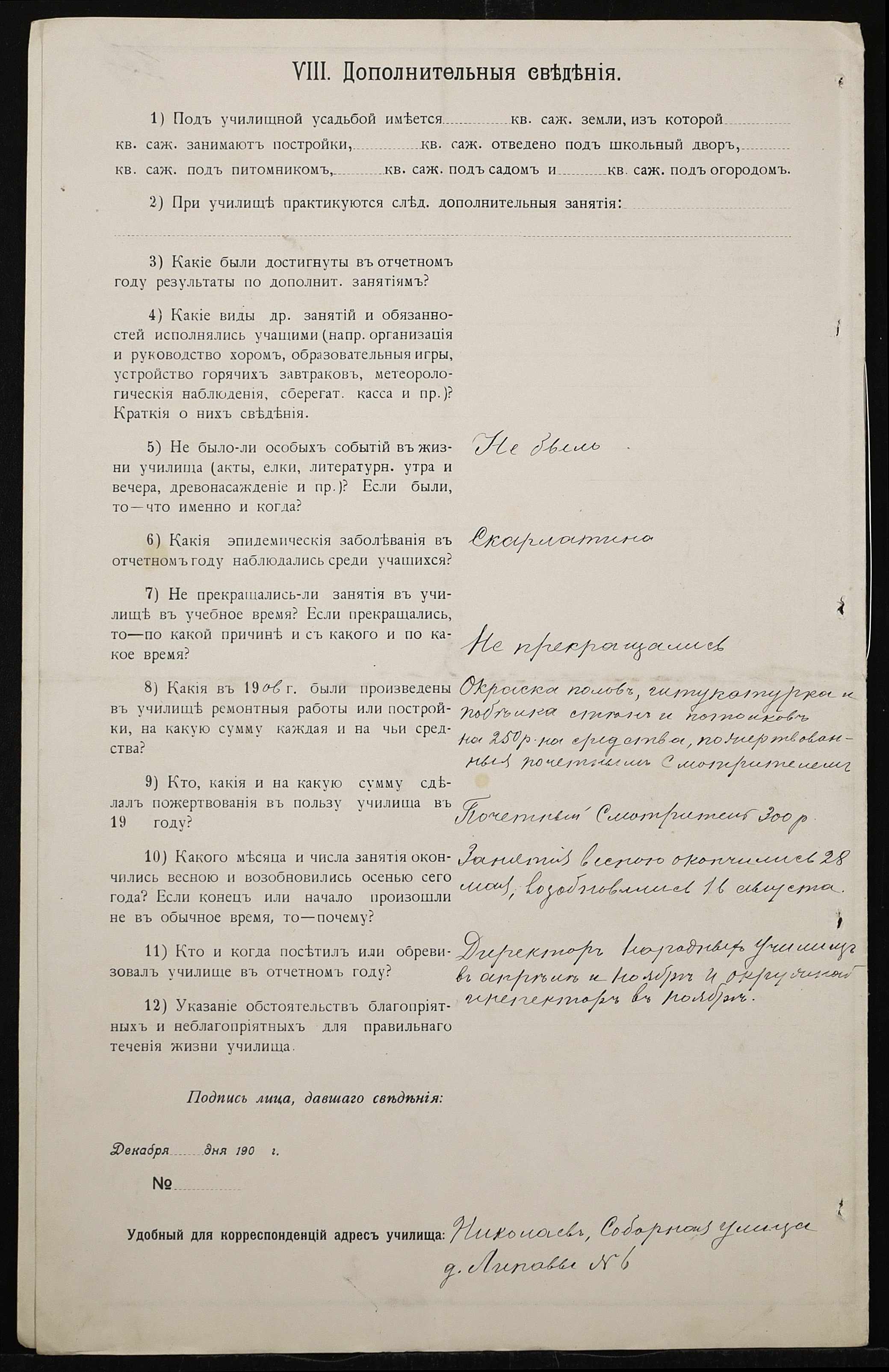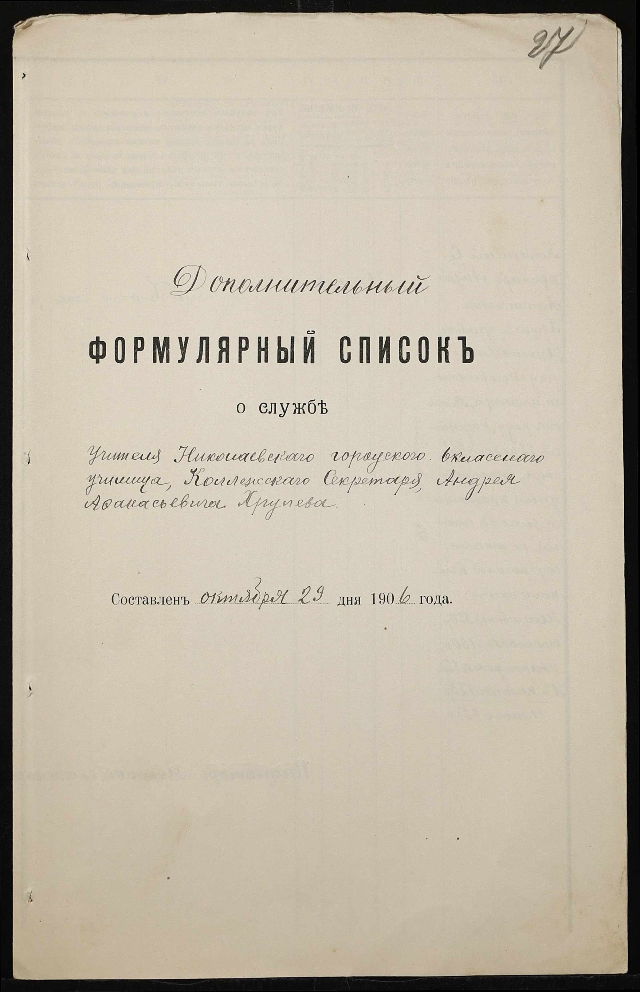 • • • • Справа № 411 “Статистичні відомості про стан училища за 1906 рік, формулярні списки викладачів, протокол засідань педагогічної ради”