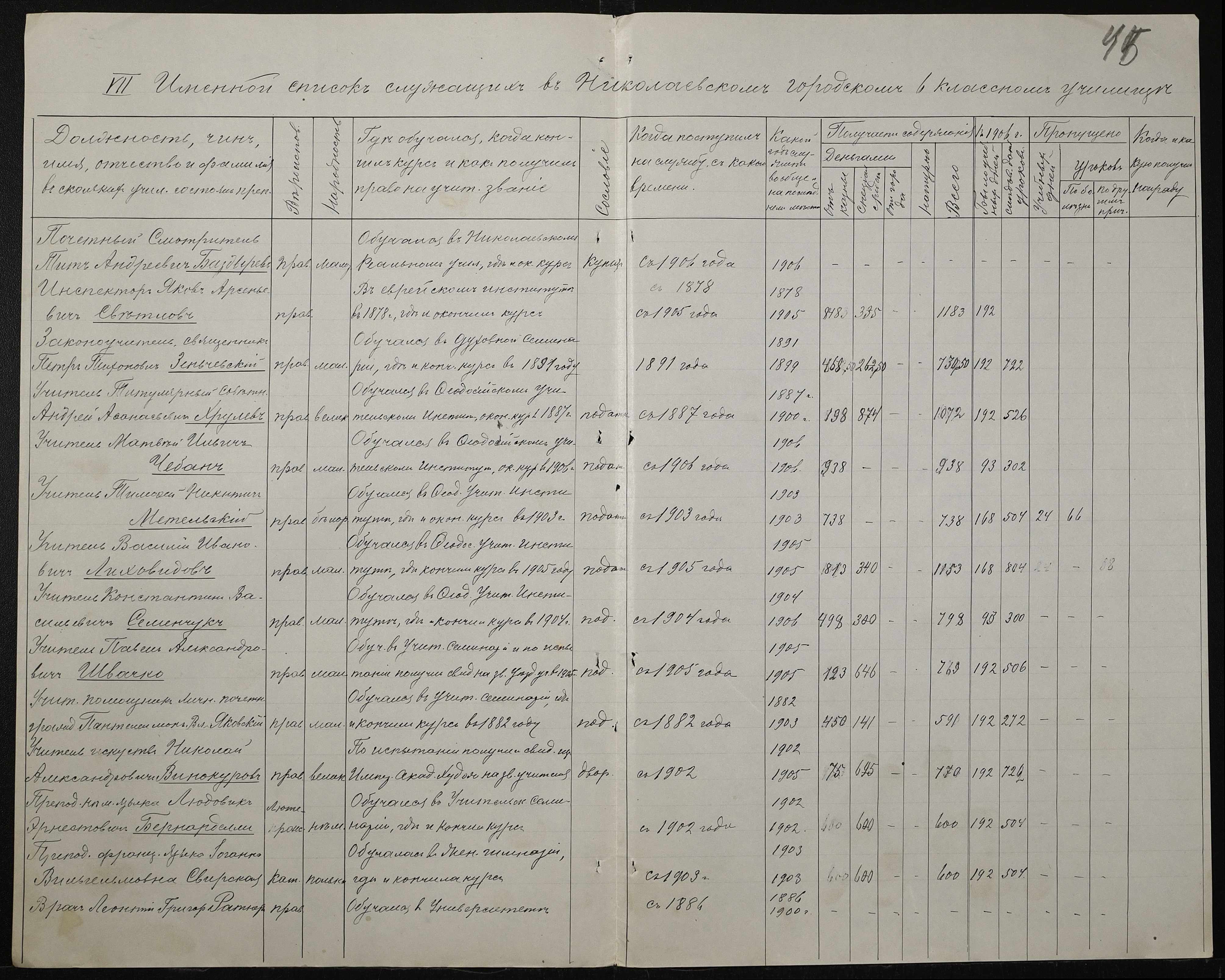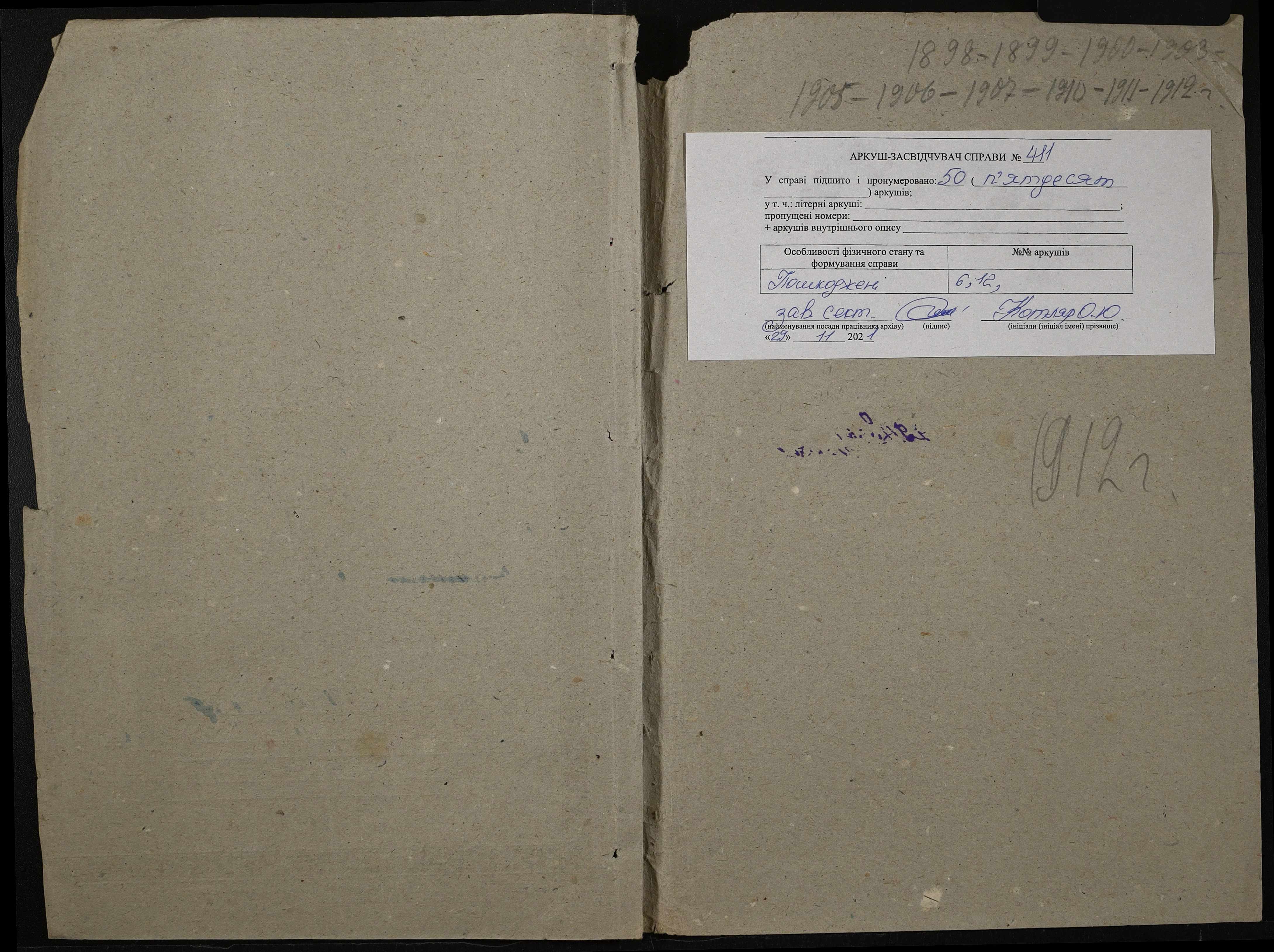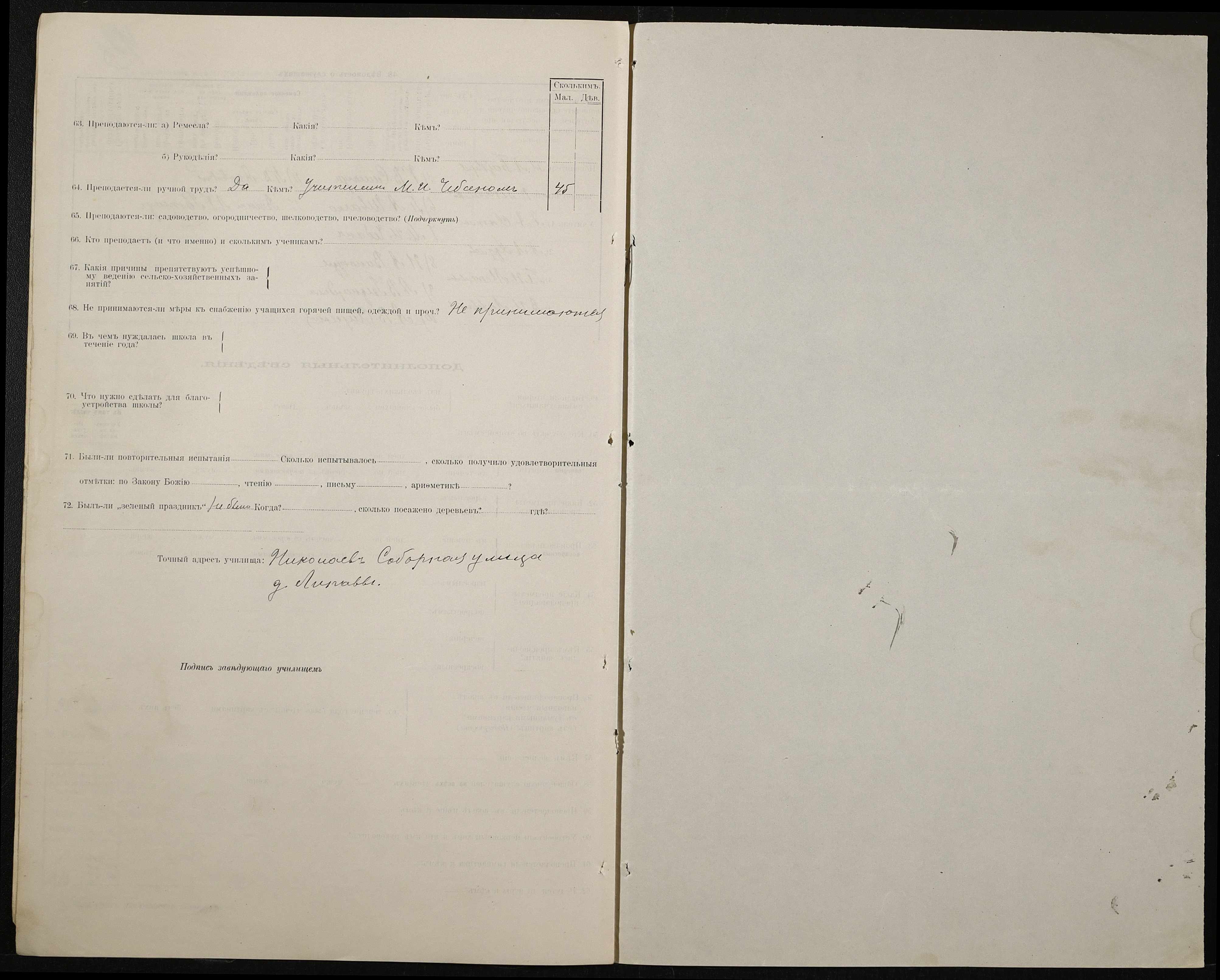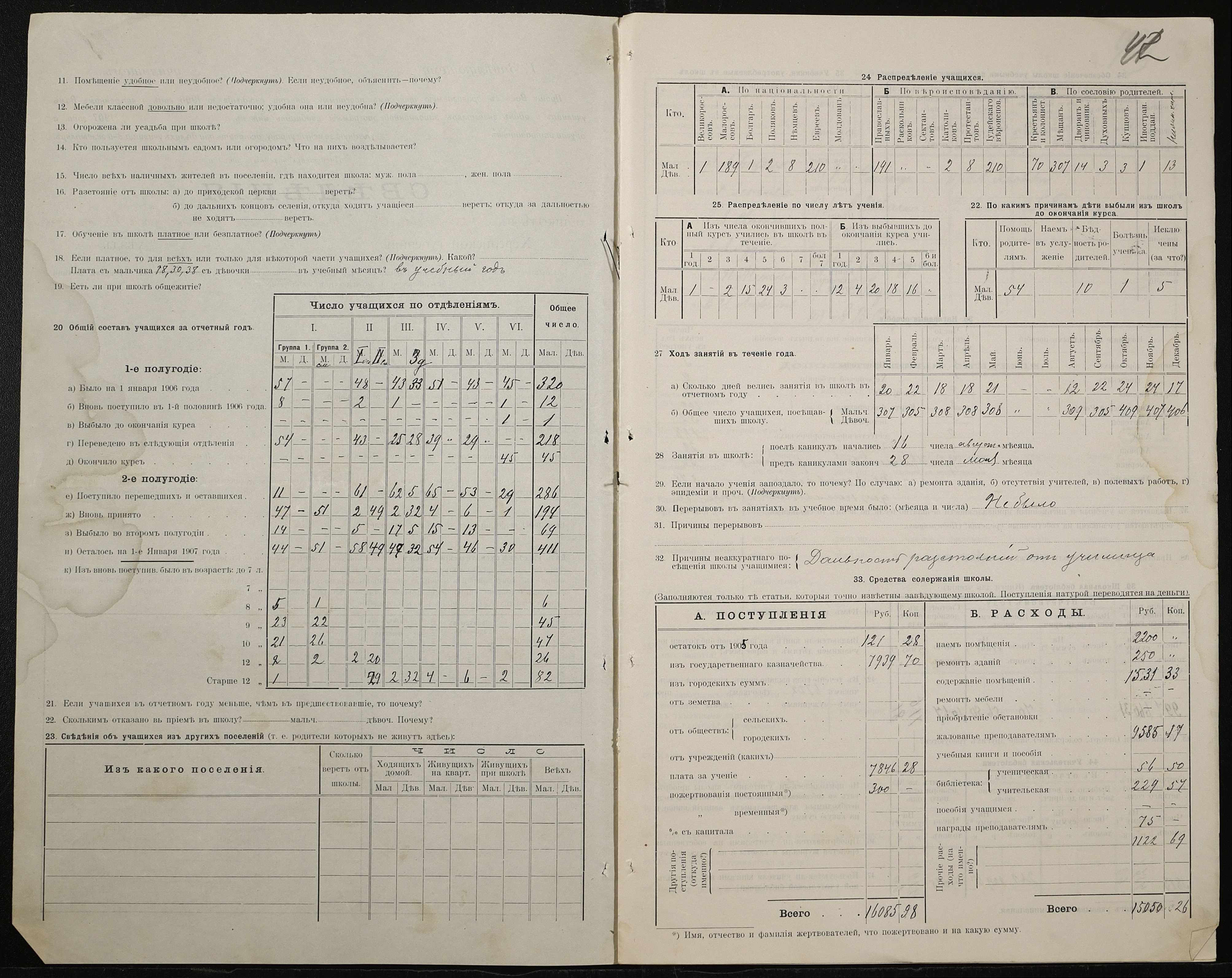 • • • • Справа № 411 “Статистичні відомості про стан училища за 1906 рік, формулярні списки викладачів, протокол засідань педагогічної ради”
