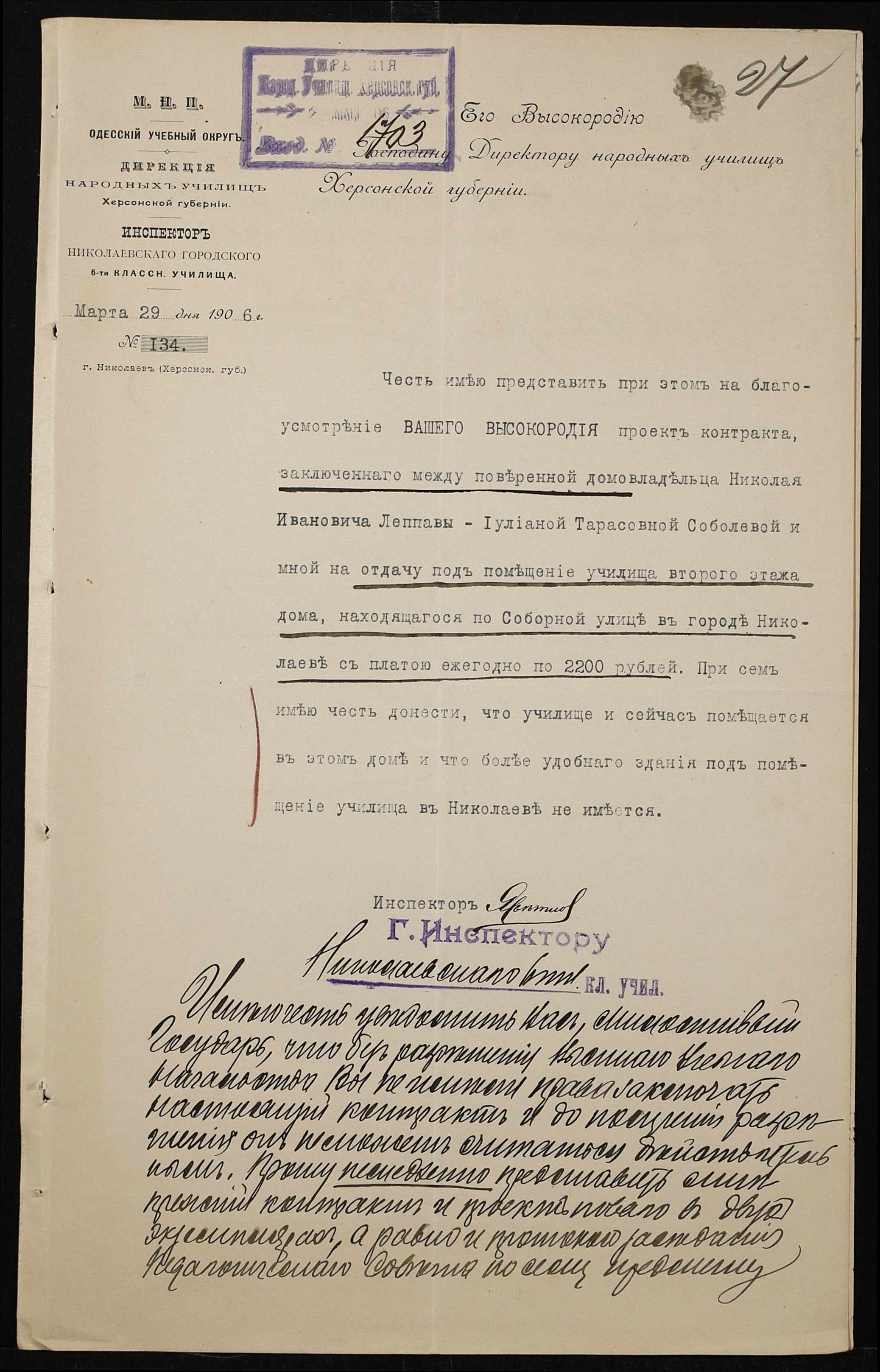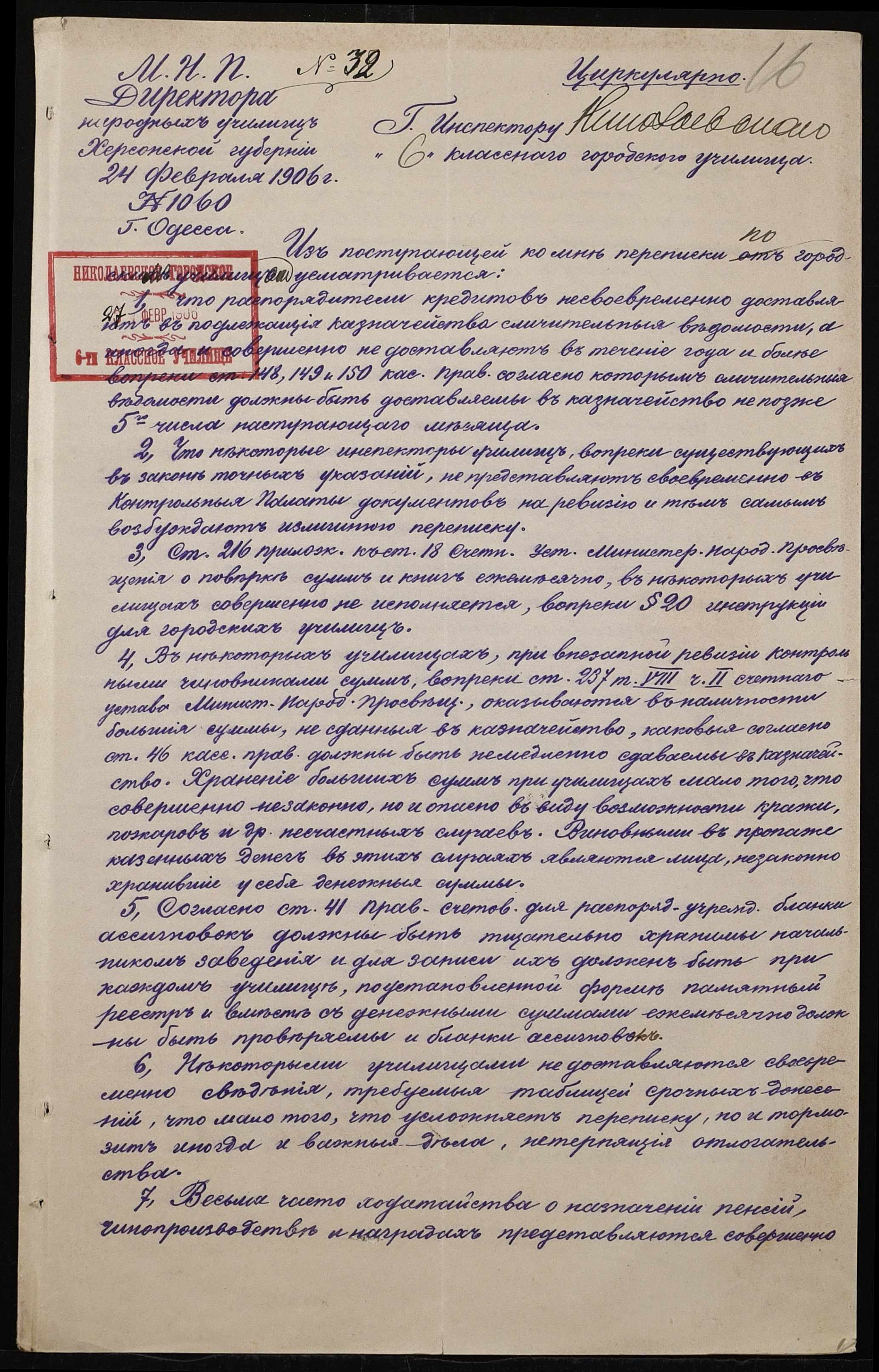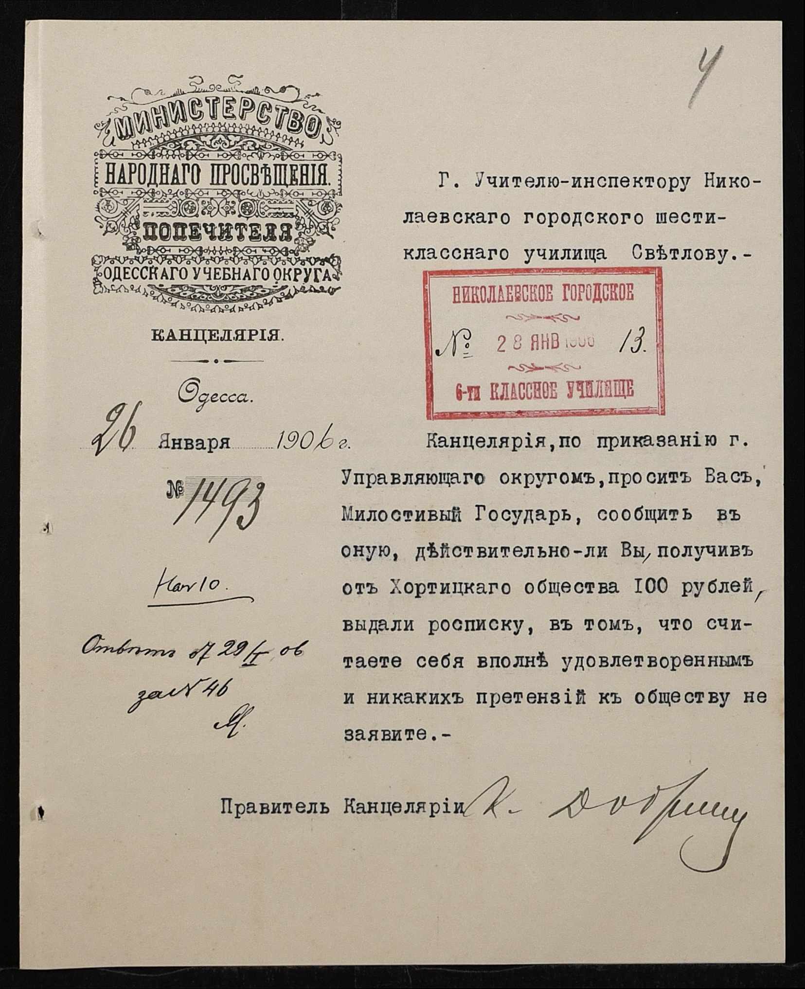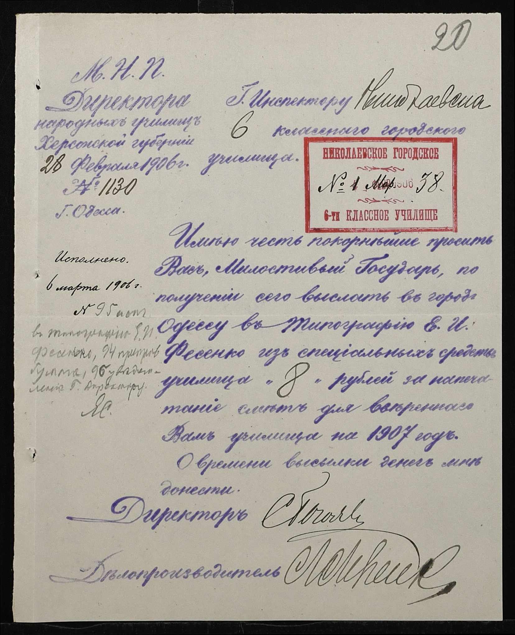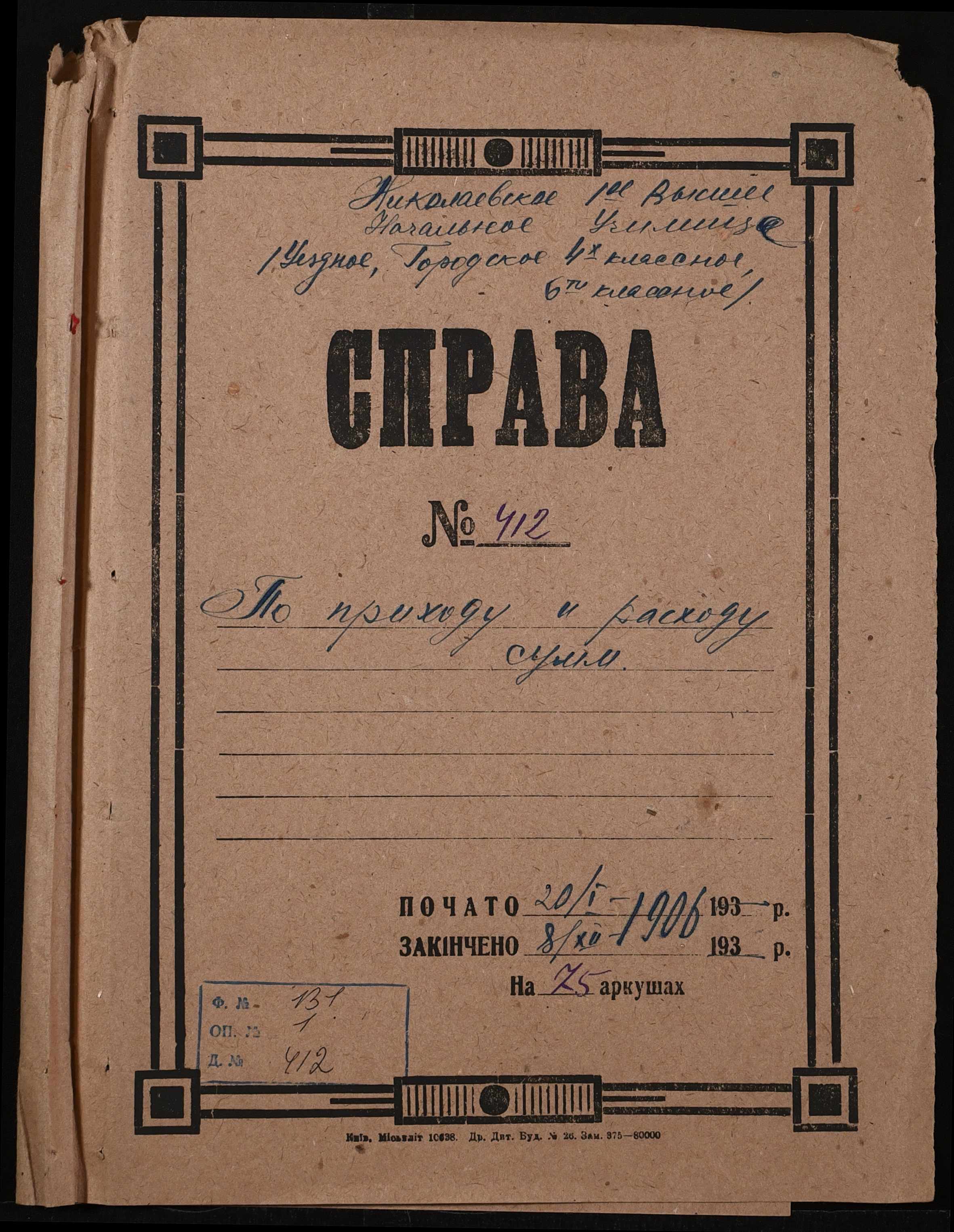 • • • • Справа № 412 “Листування з інспектором народних училищ Херсонської губернії”