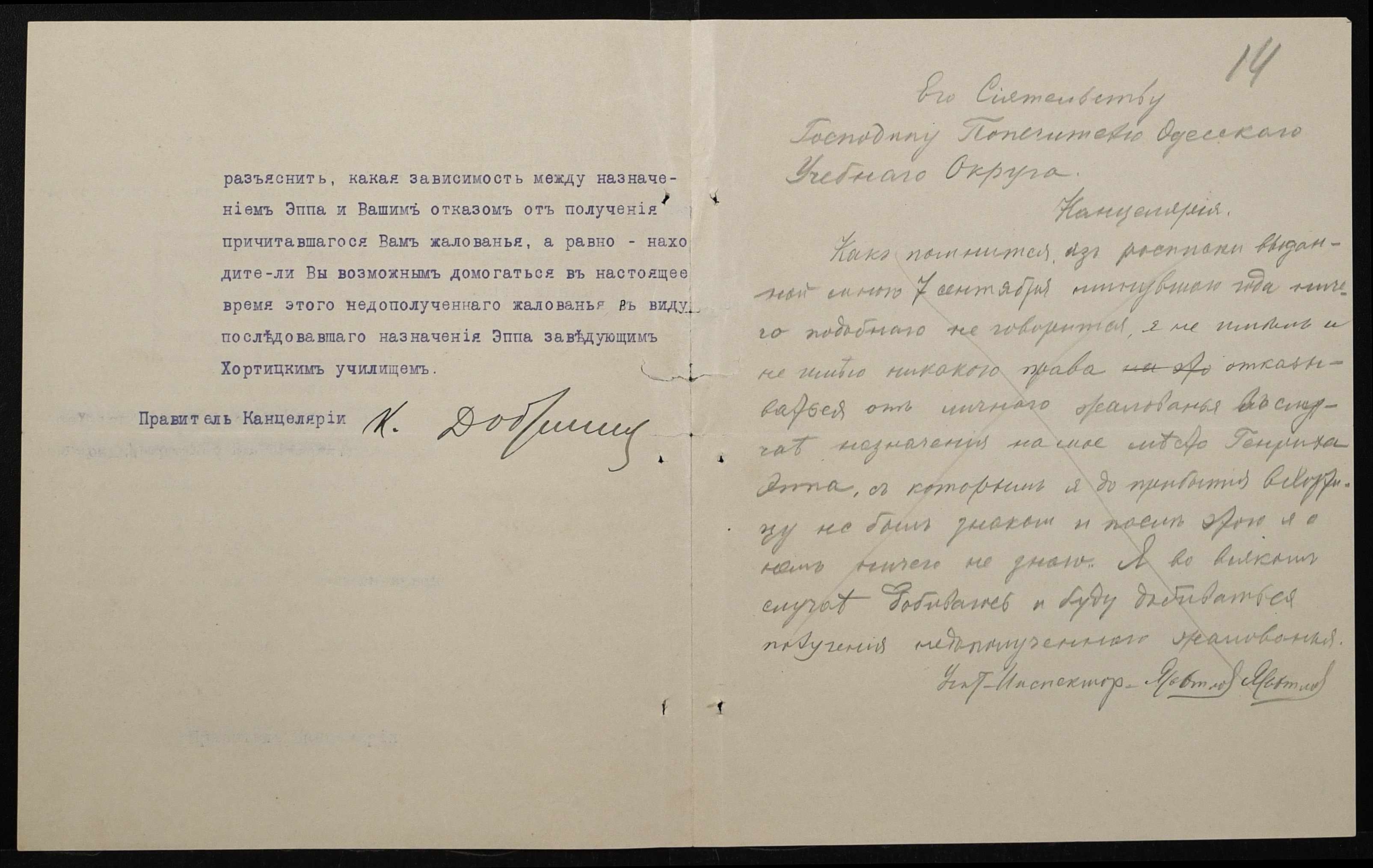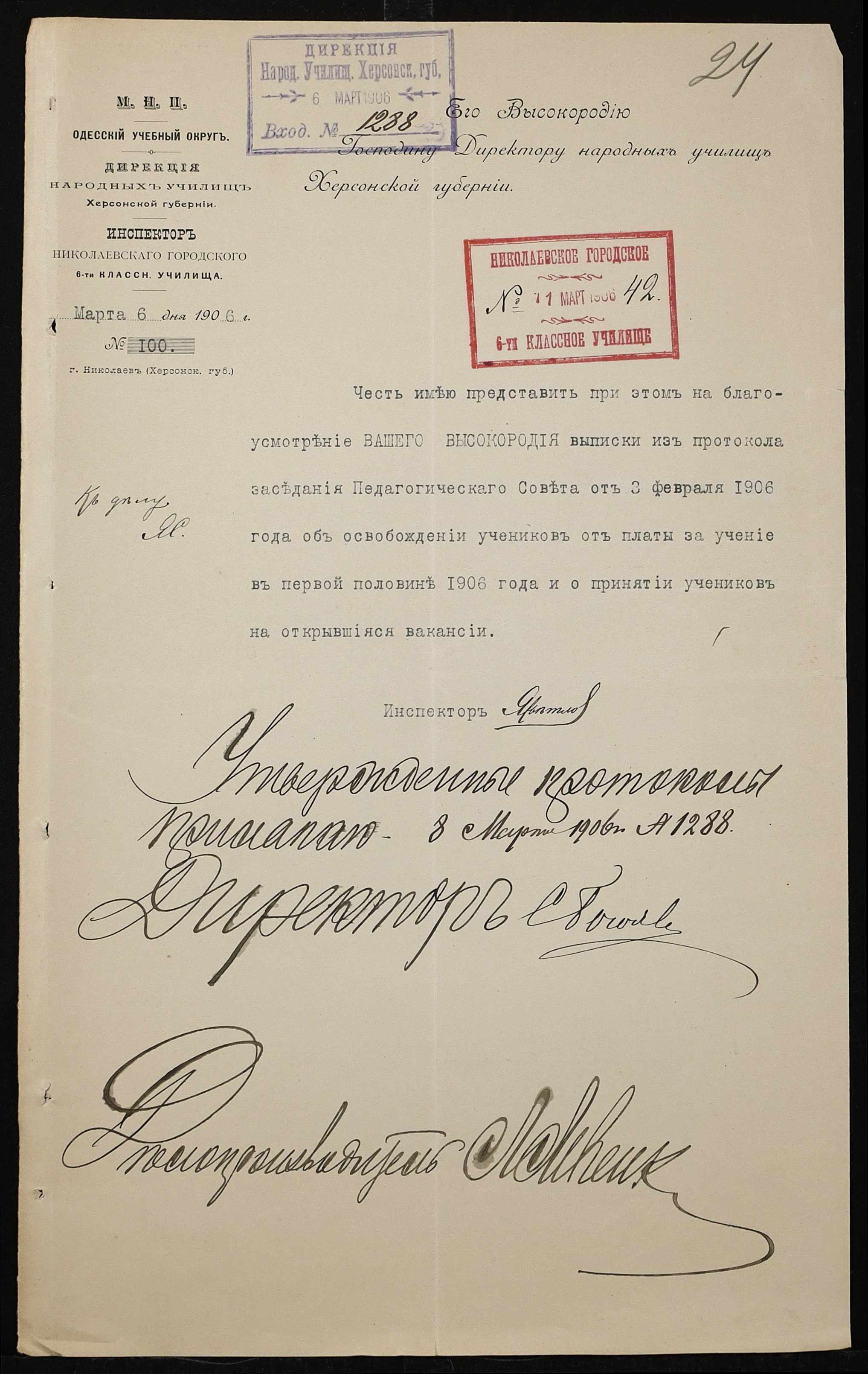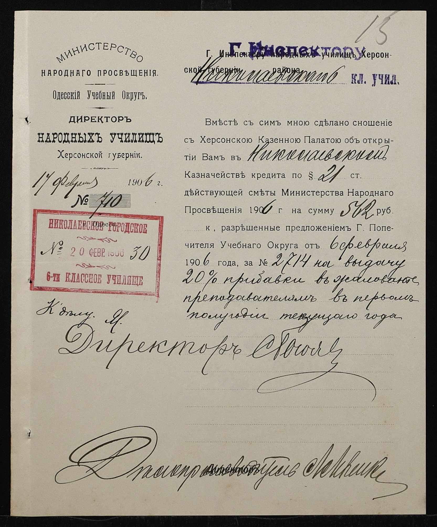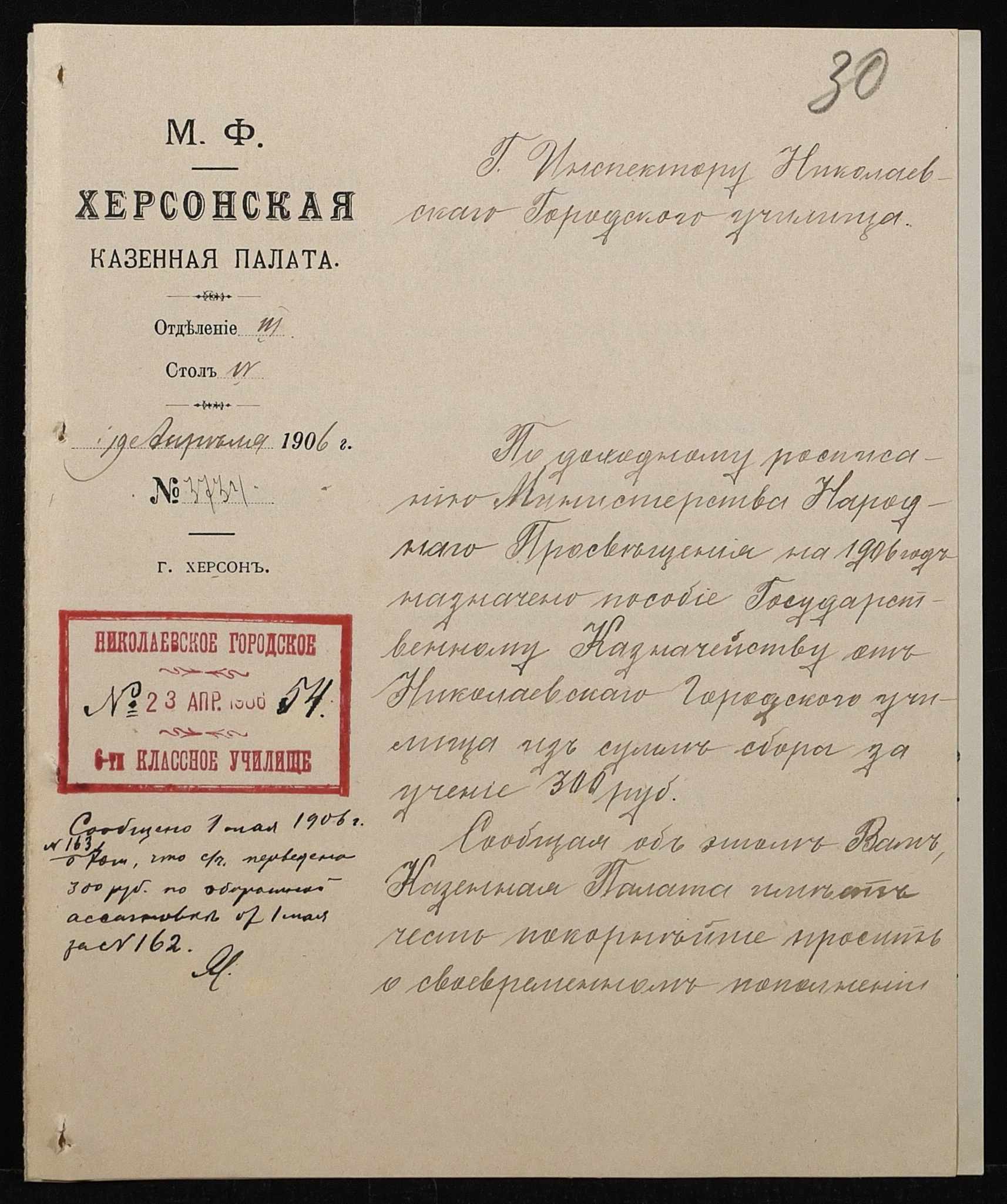 • • • • Справа № 412 “Листування з інспектором народних училищ Херсонської губернії”