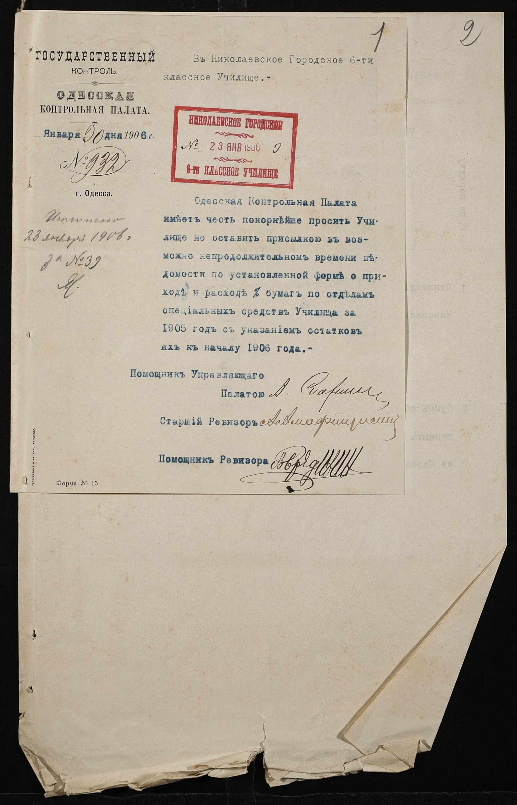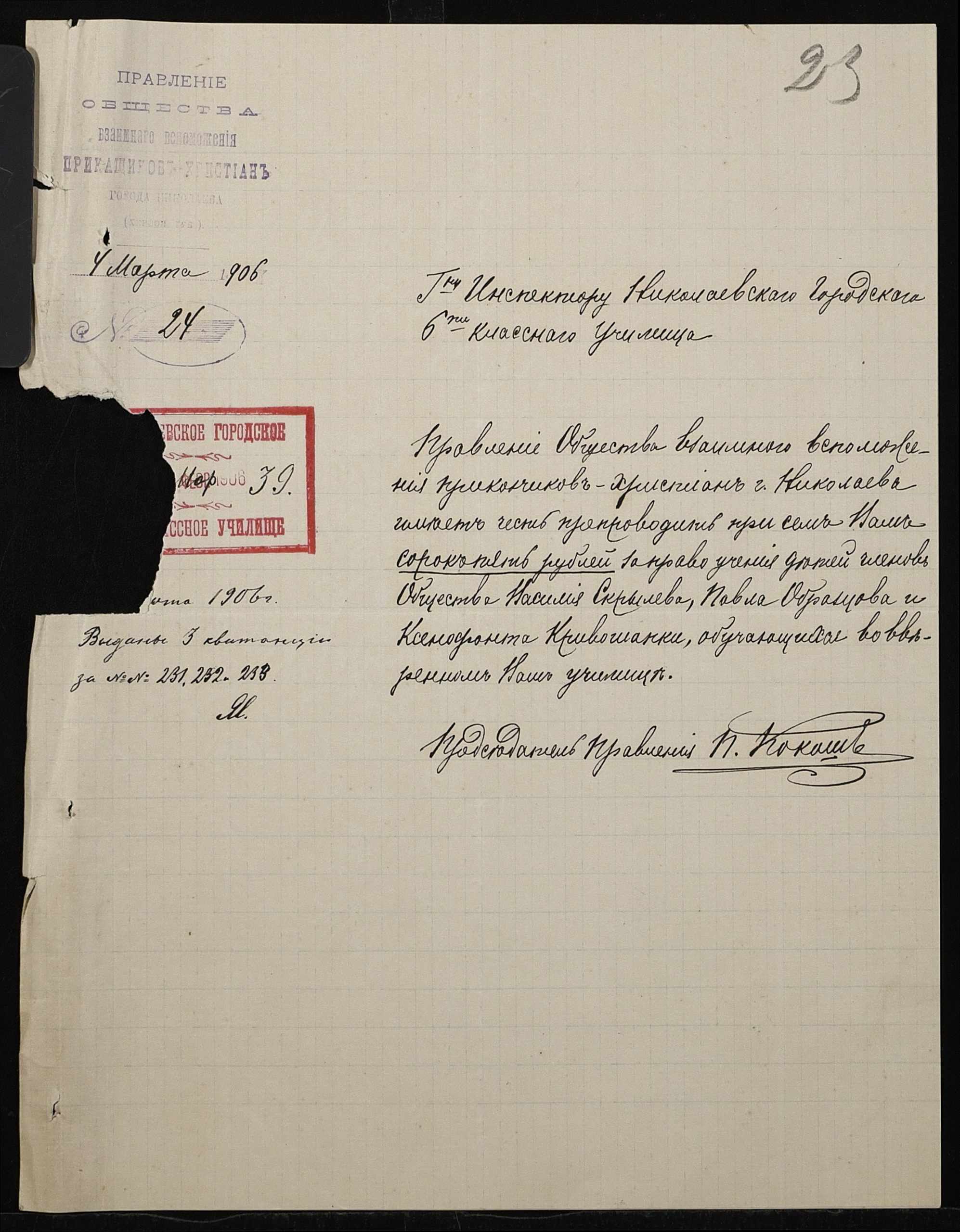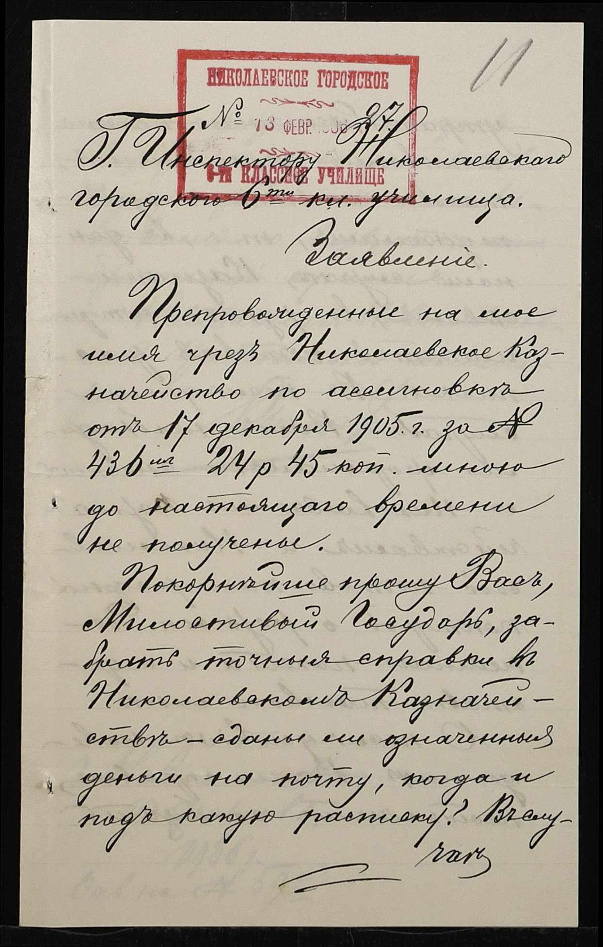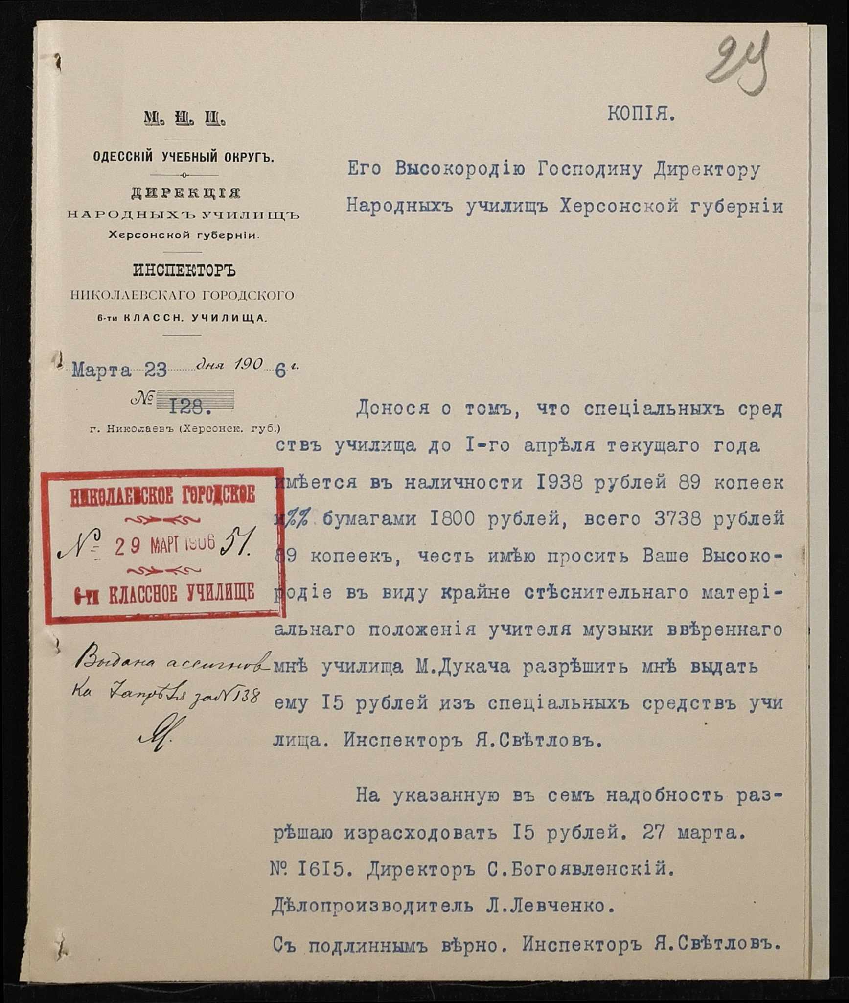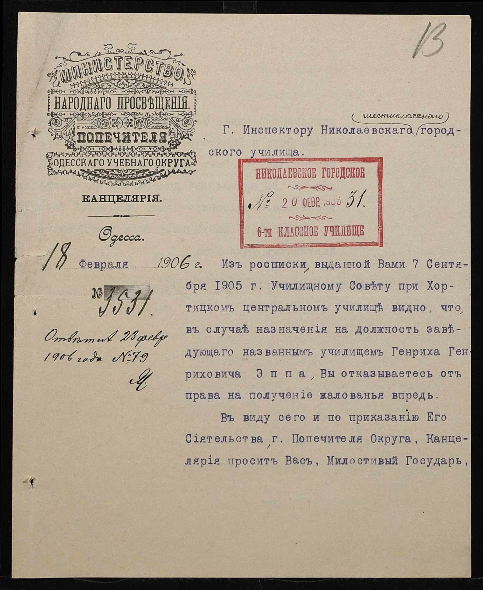 • • • • Справа № 412 “Листування з інспектором народних училищ Херсонської губернії”