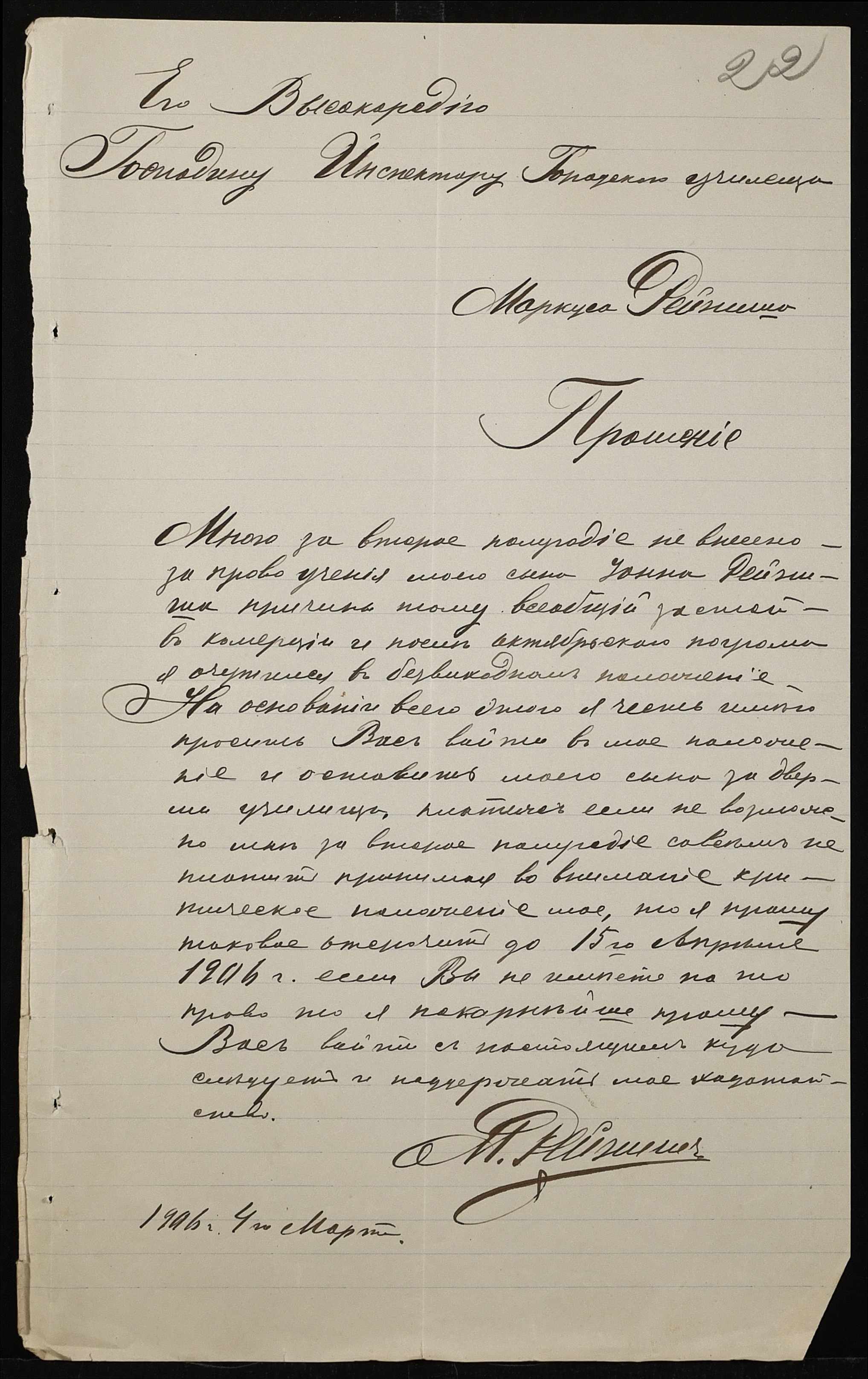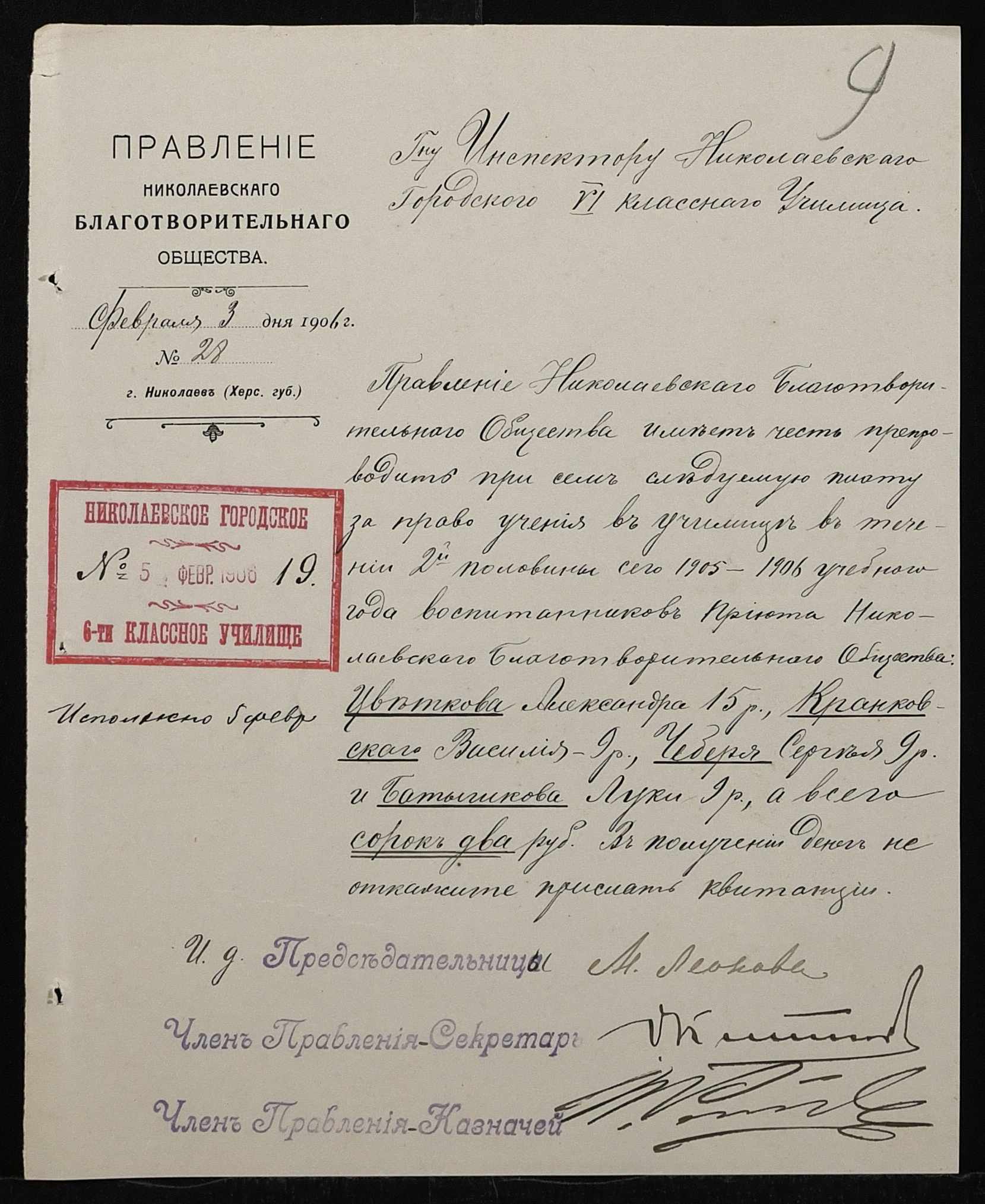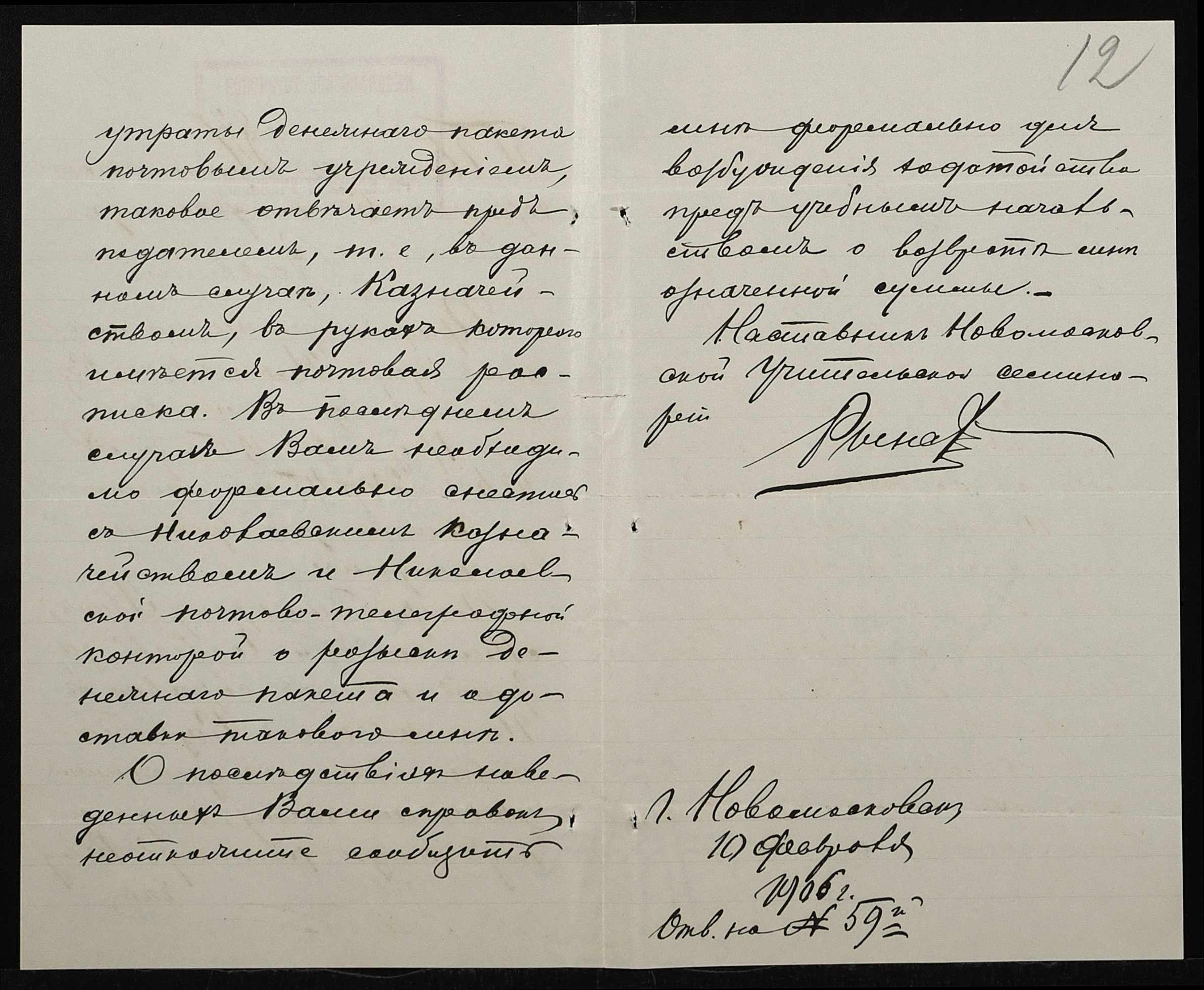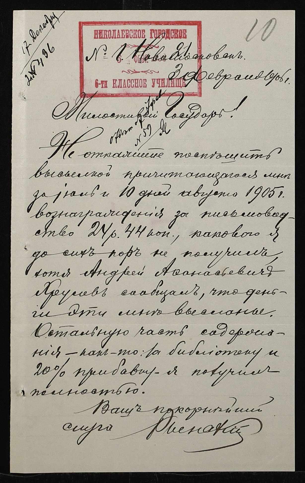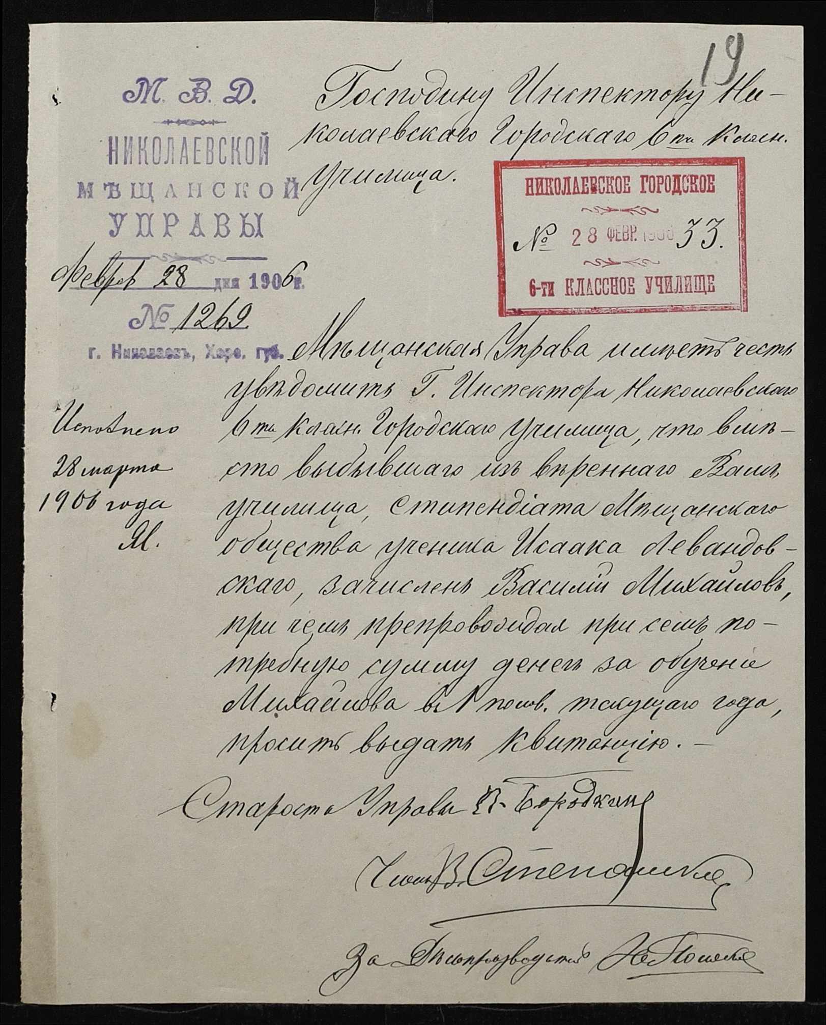 • • • • Справа № 412 “Листування з інспектором народних училищ Херсонської губернії”