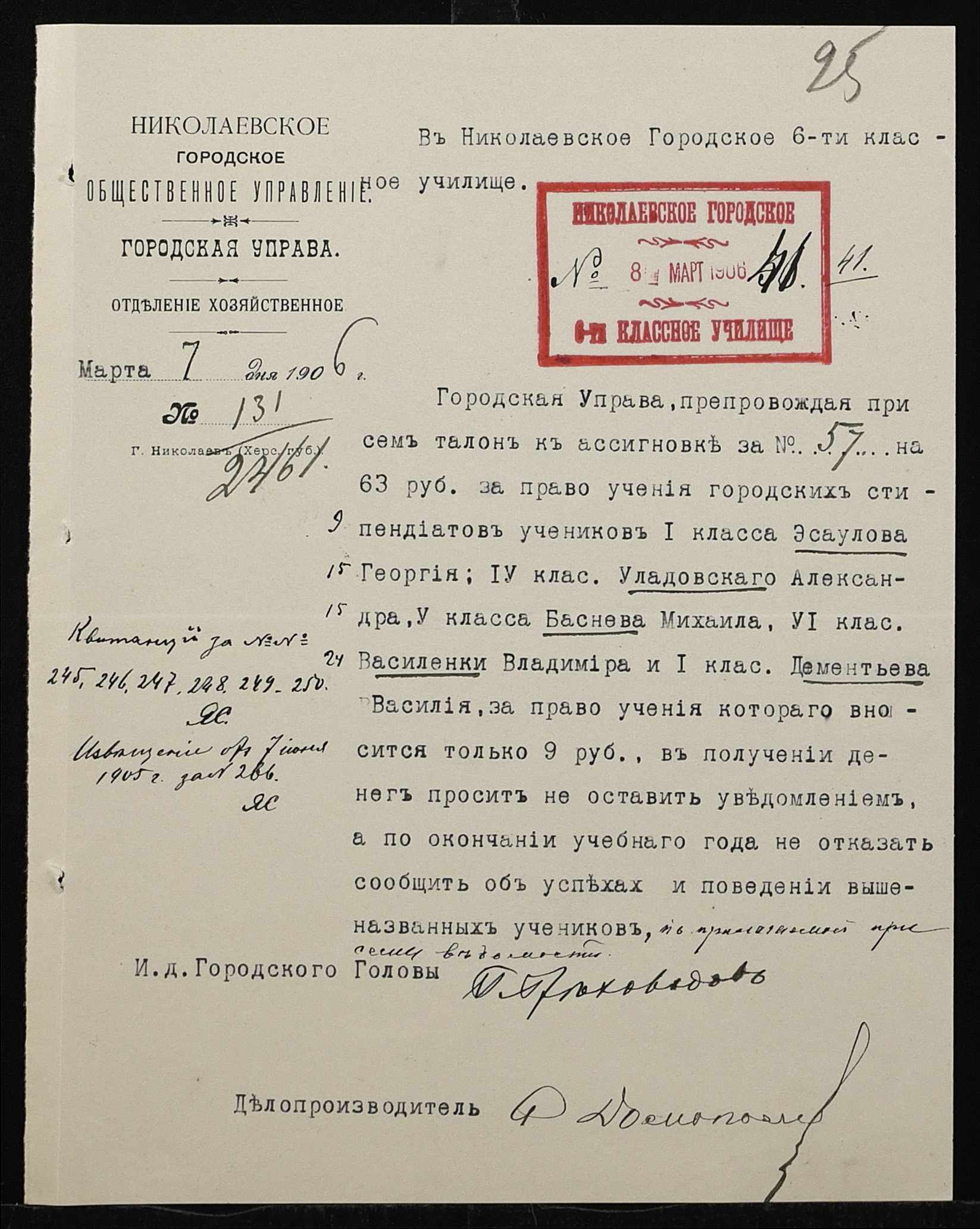 ◦ ◦ Фонд № 131 “Миколаївське перше вище початкове училище”