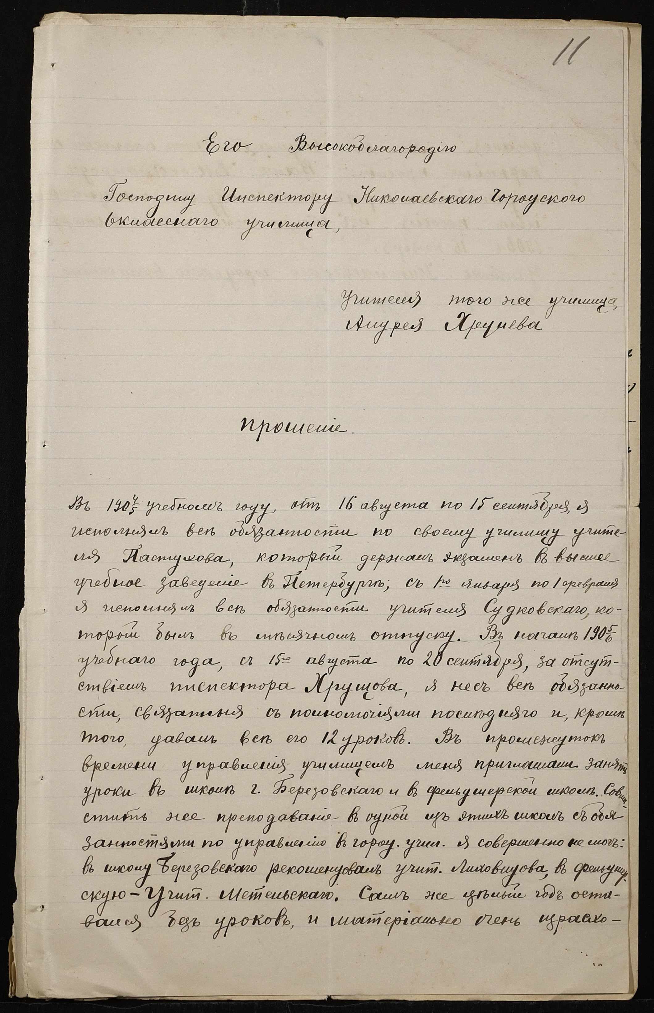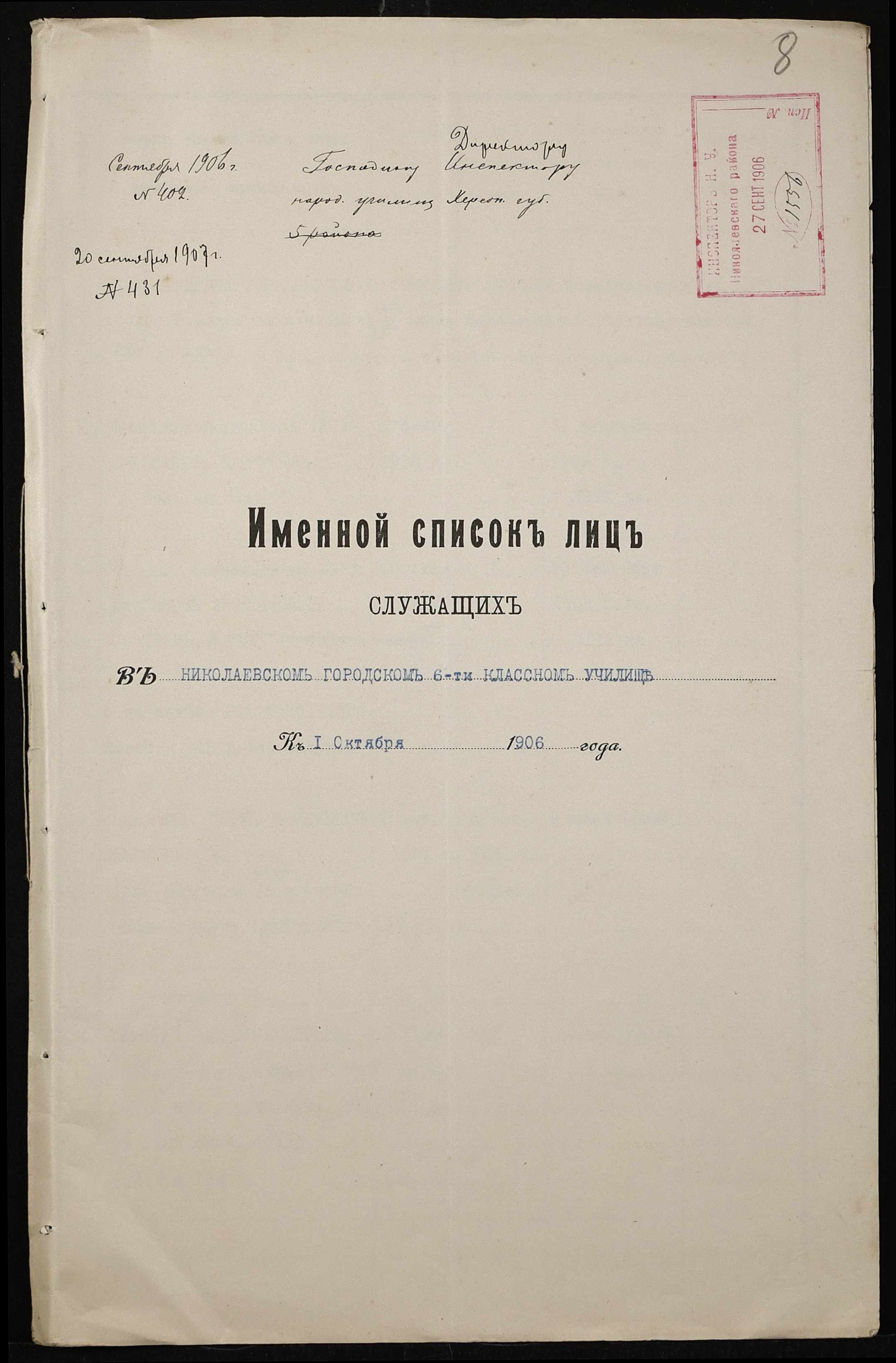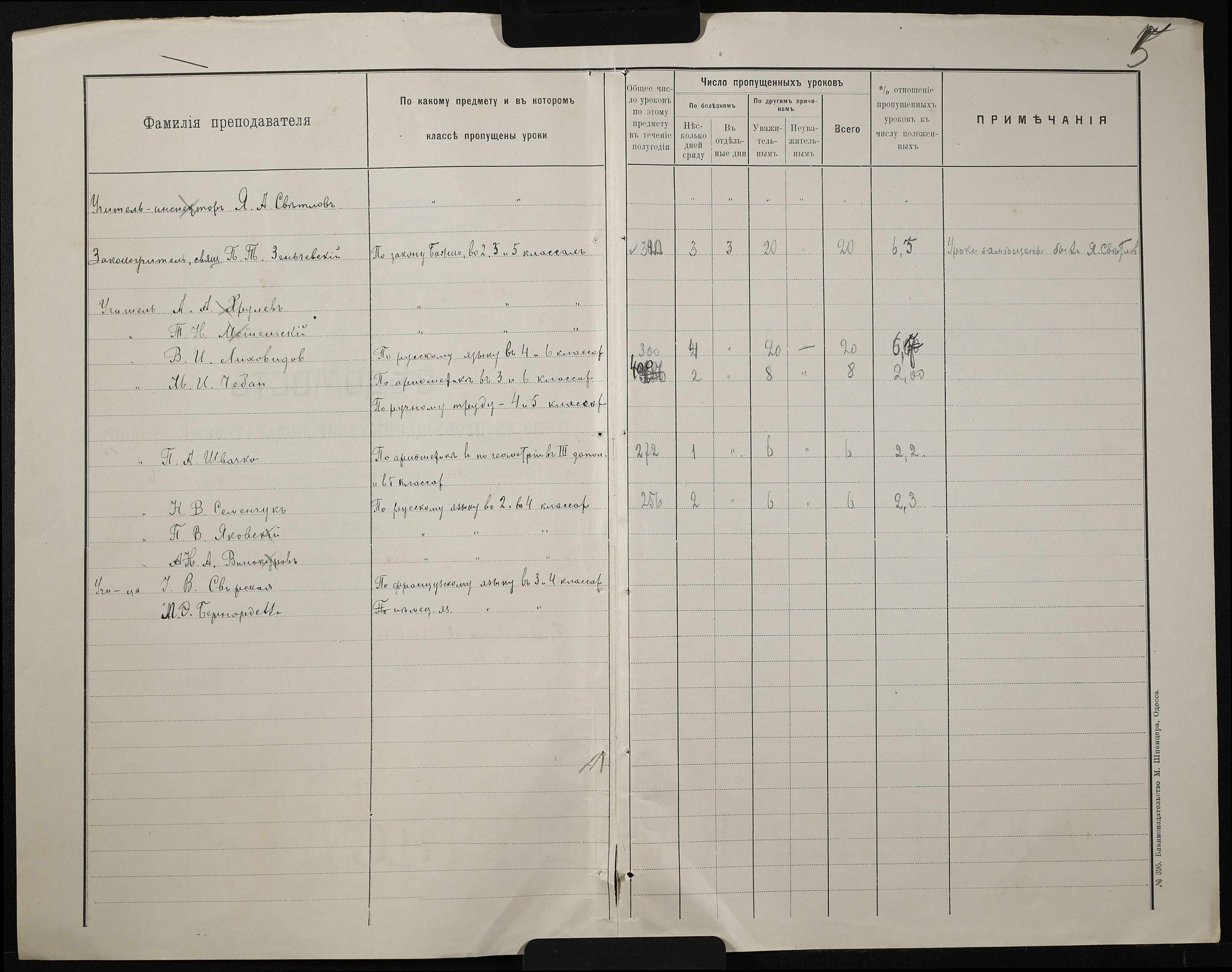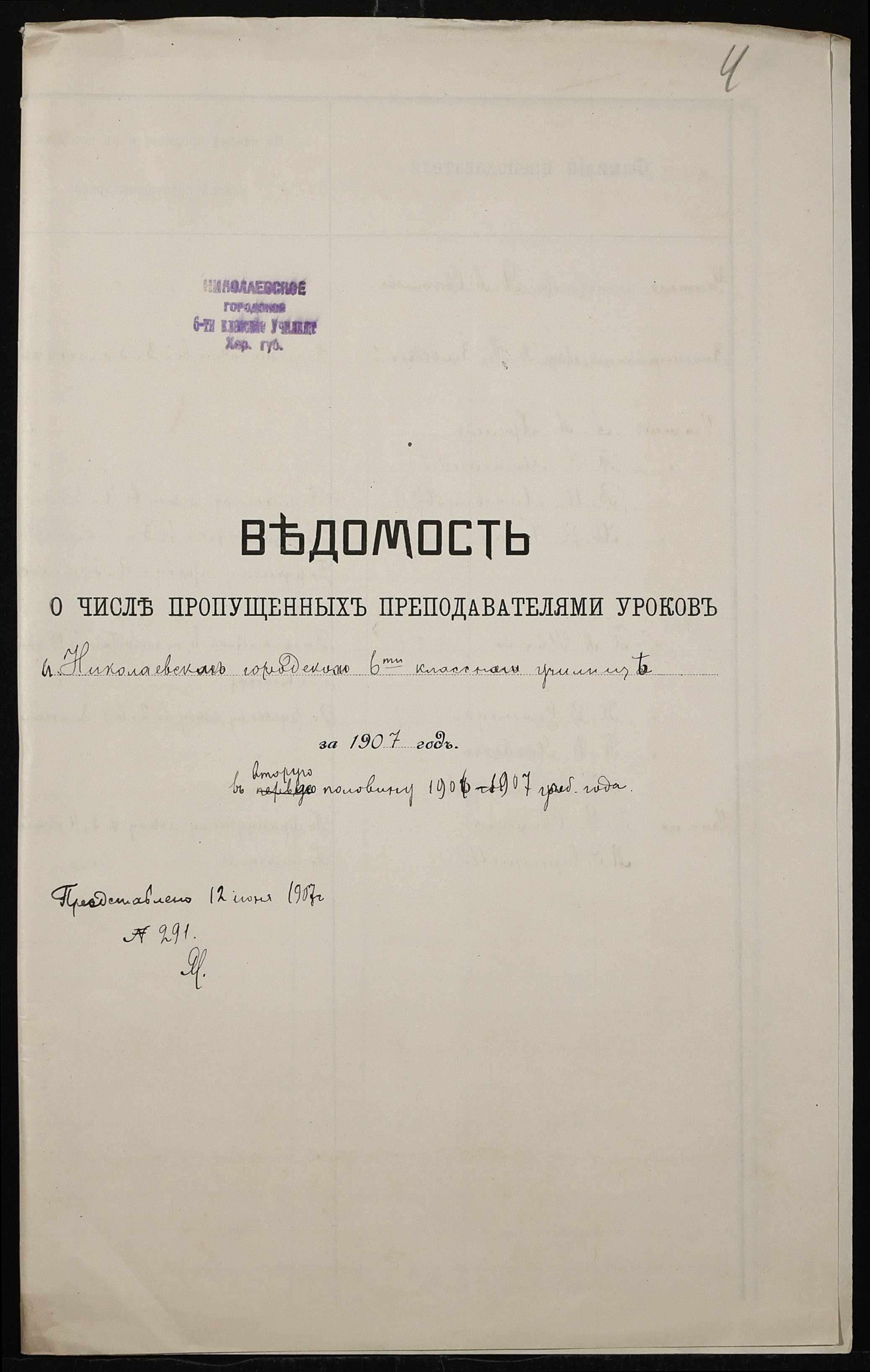 • • • • Справа № 413 “Поіменний список службовців, відомість обліку уроків, на яких були відсутні викладачі за II півріччя 1906-1907 навчального року”