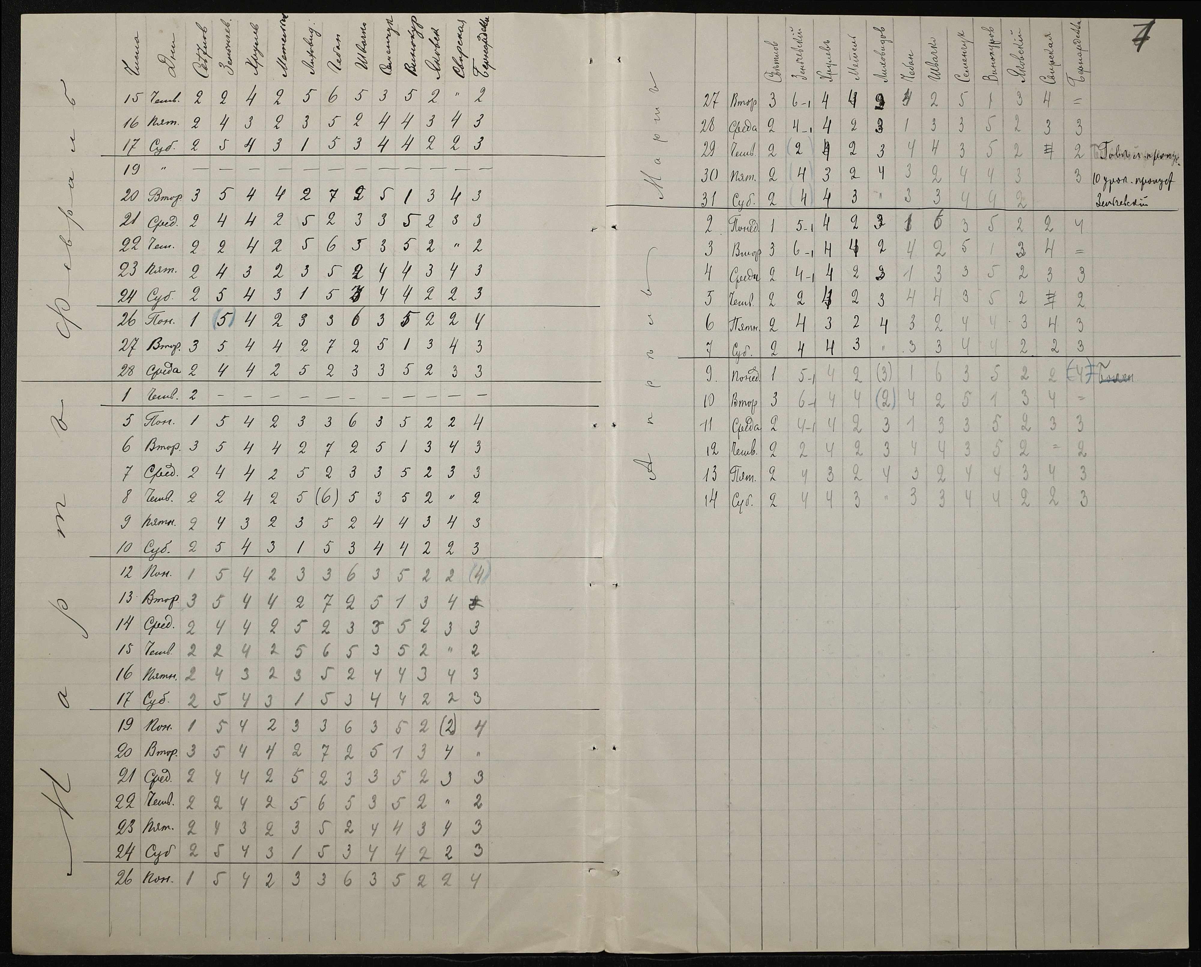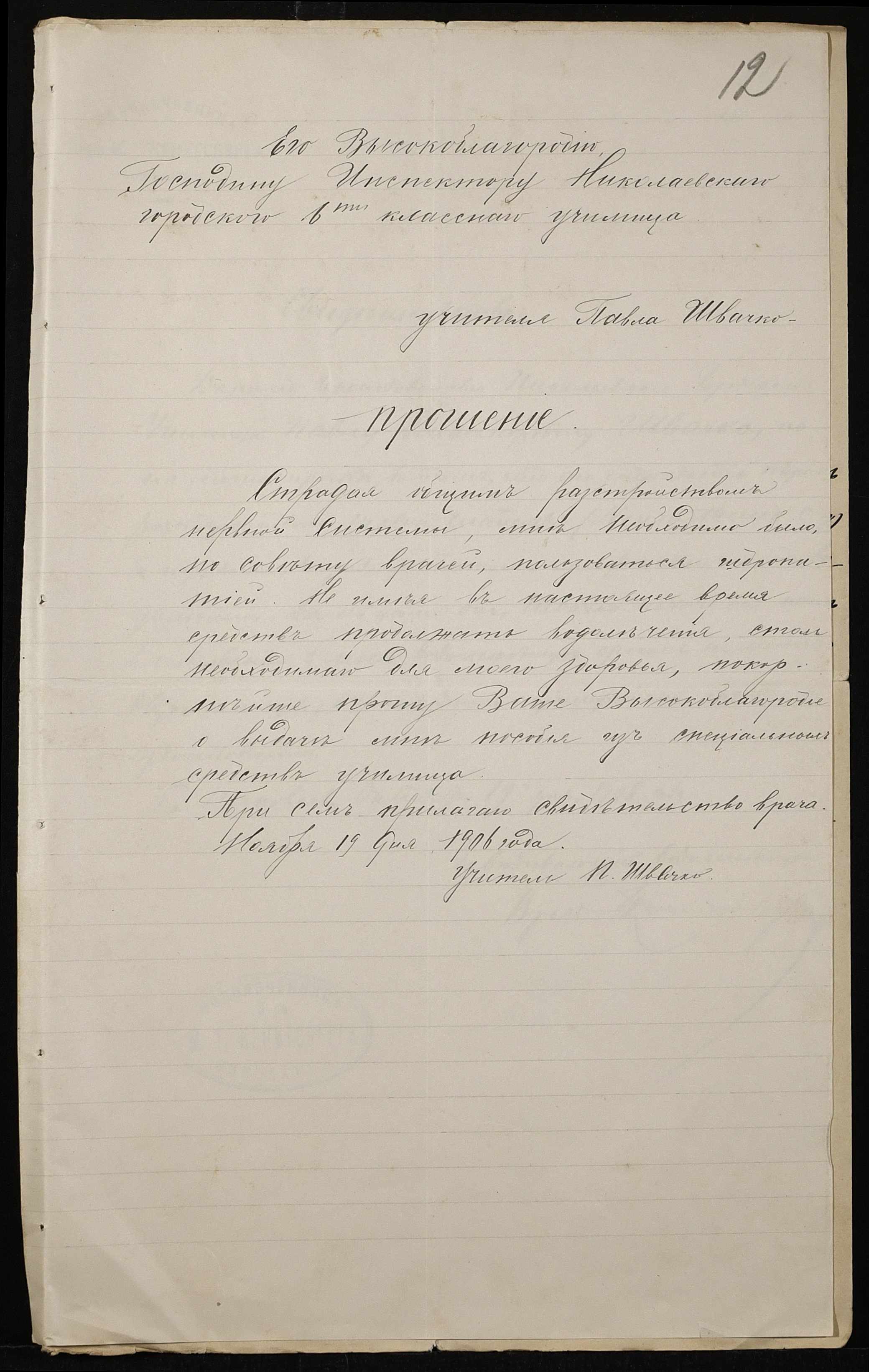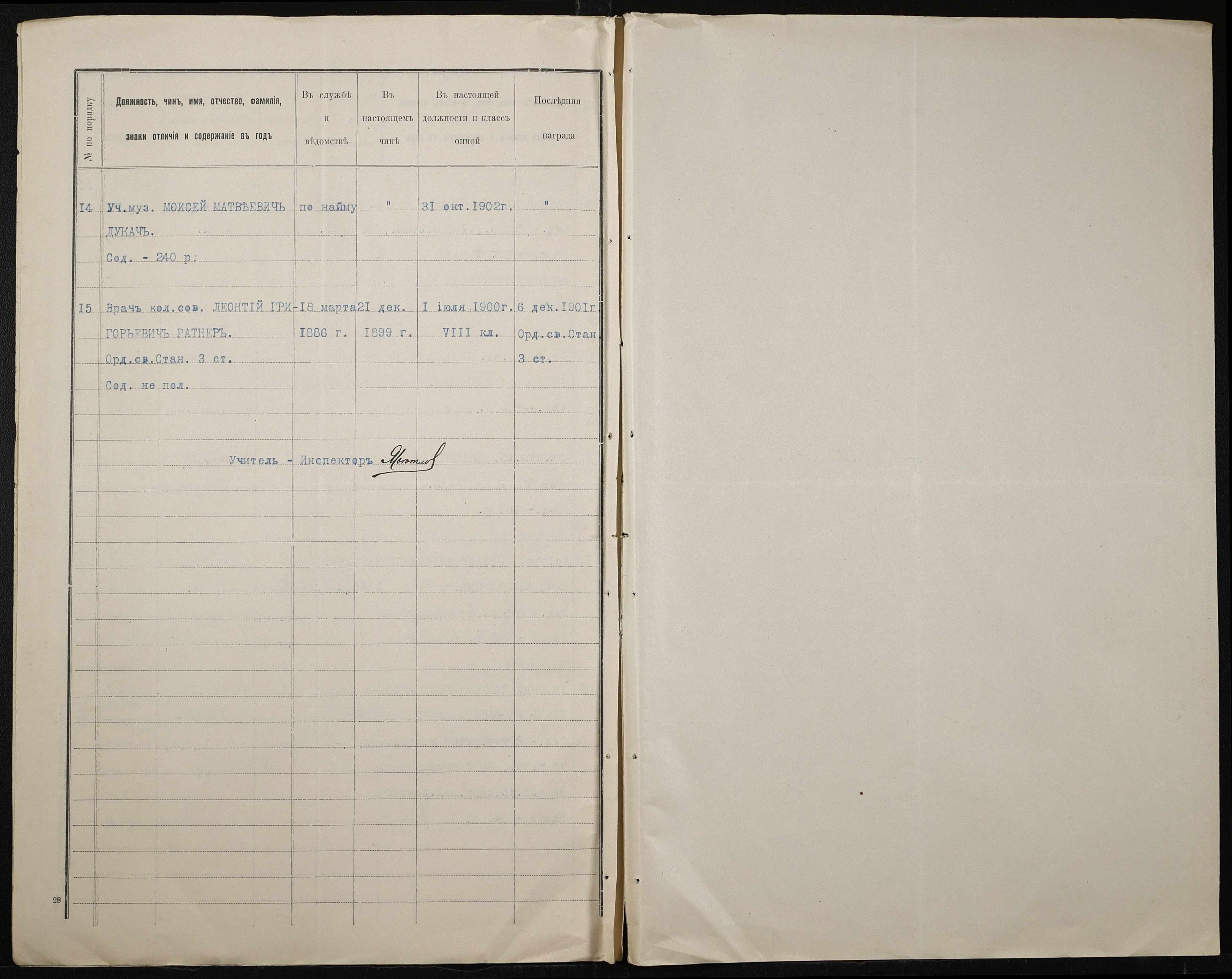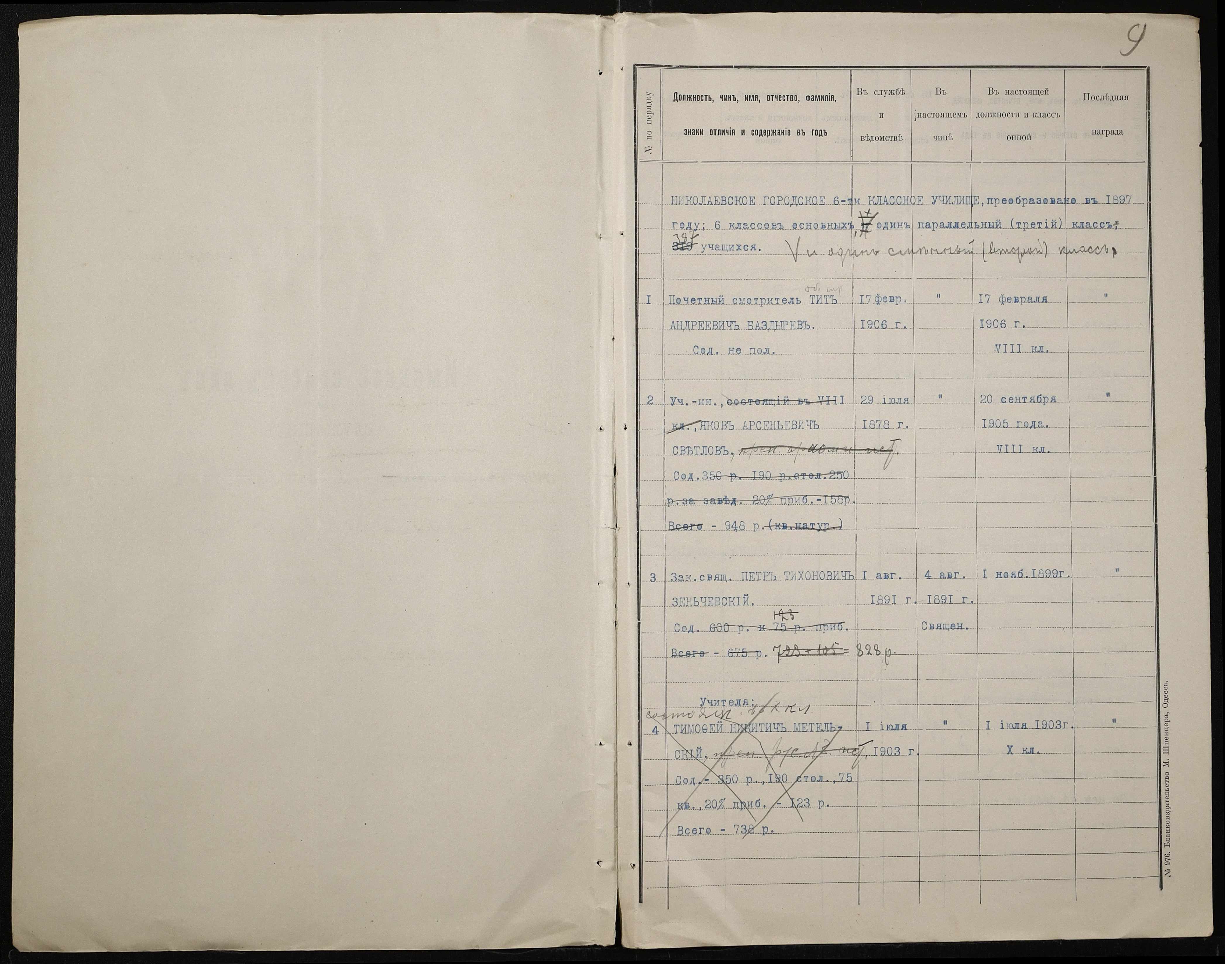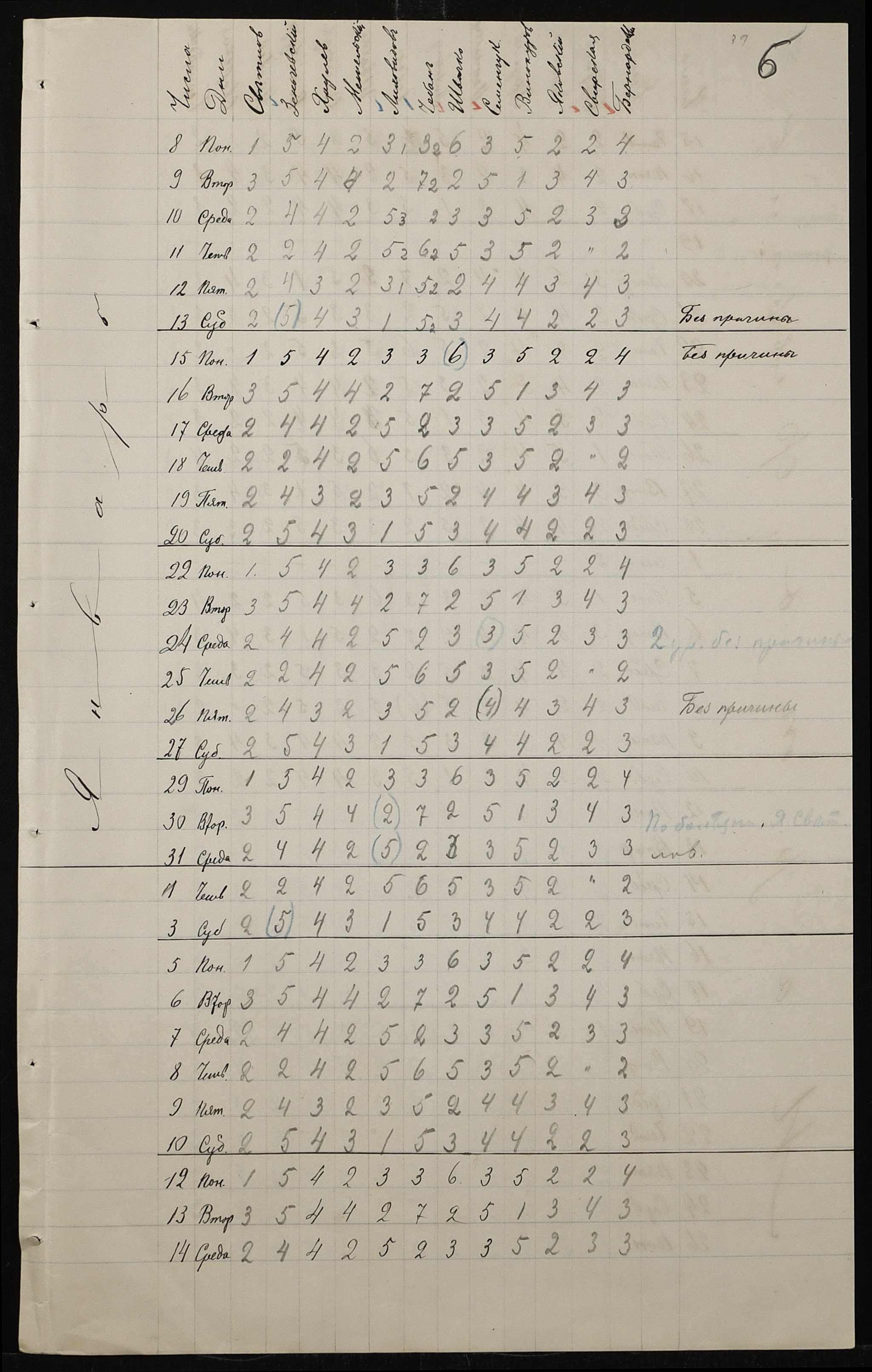 • • • • Справа № 413 “Поіменний список службовців, відомість обліку уроків, на яких були відсутні викладачі за II півріччя 1906-1907 навчального року”