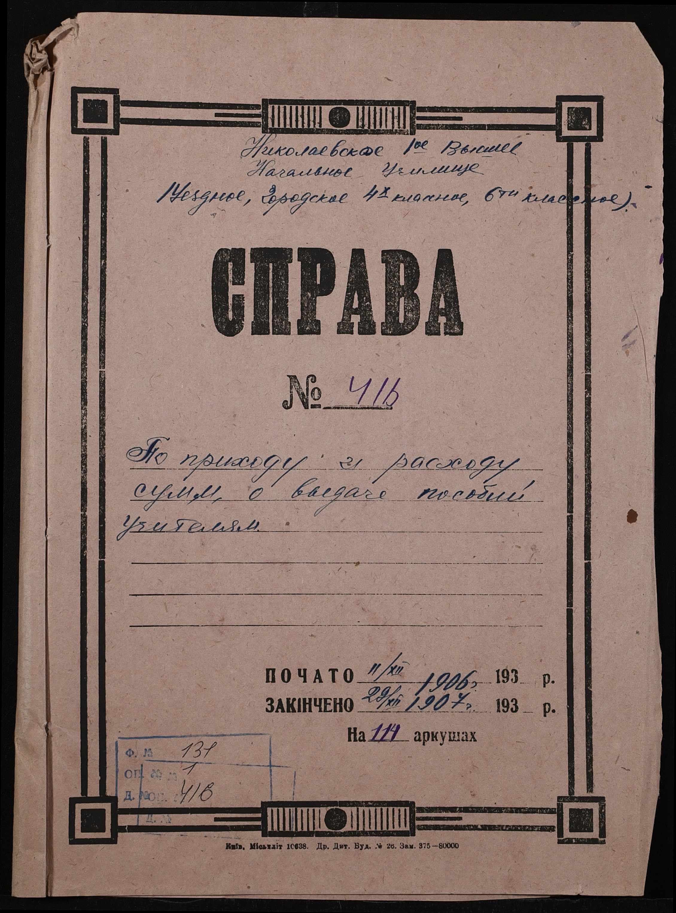 • • • • Справа № 416 “Прибутково-видаткові документи училища (квитанції, відомості)”