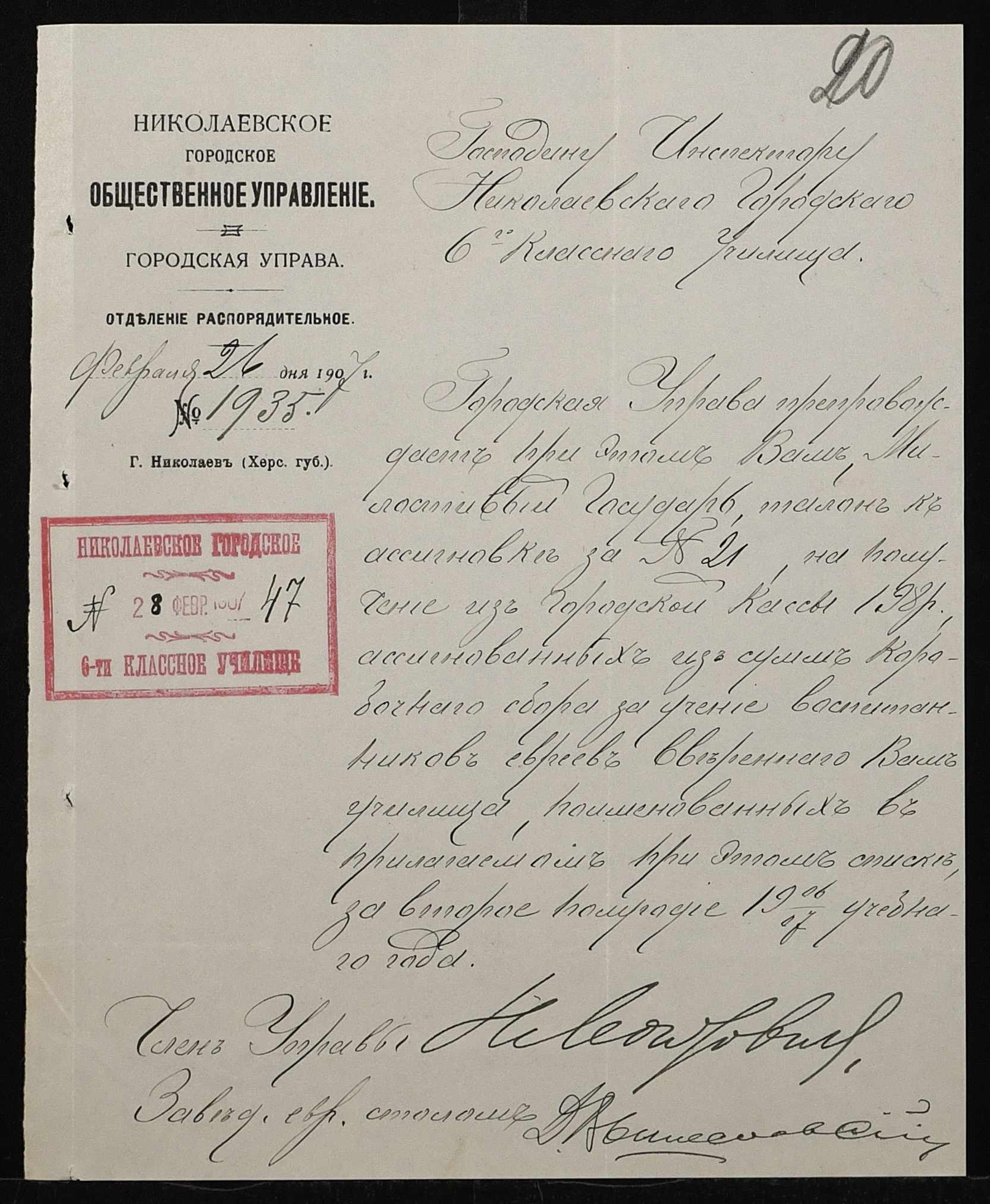 ◦ ◦ Фонд № 131 “Миколаївське перше вище початкове училище”