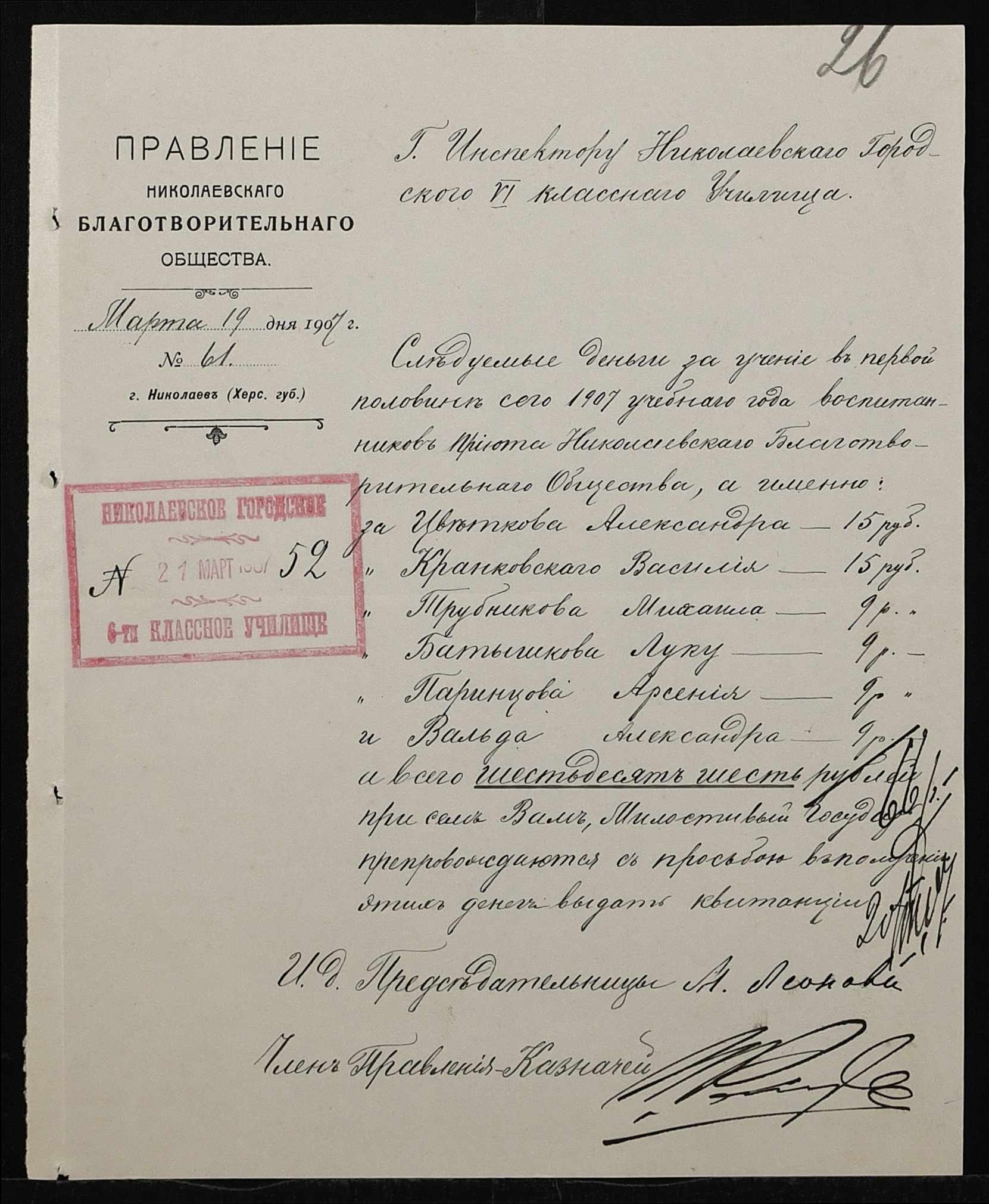 ◦ ◦ Фонд № 131 “Миколаївське перше вище початкове училище”