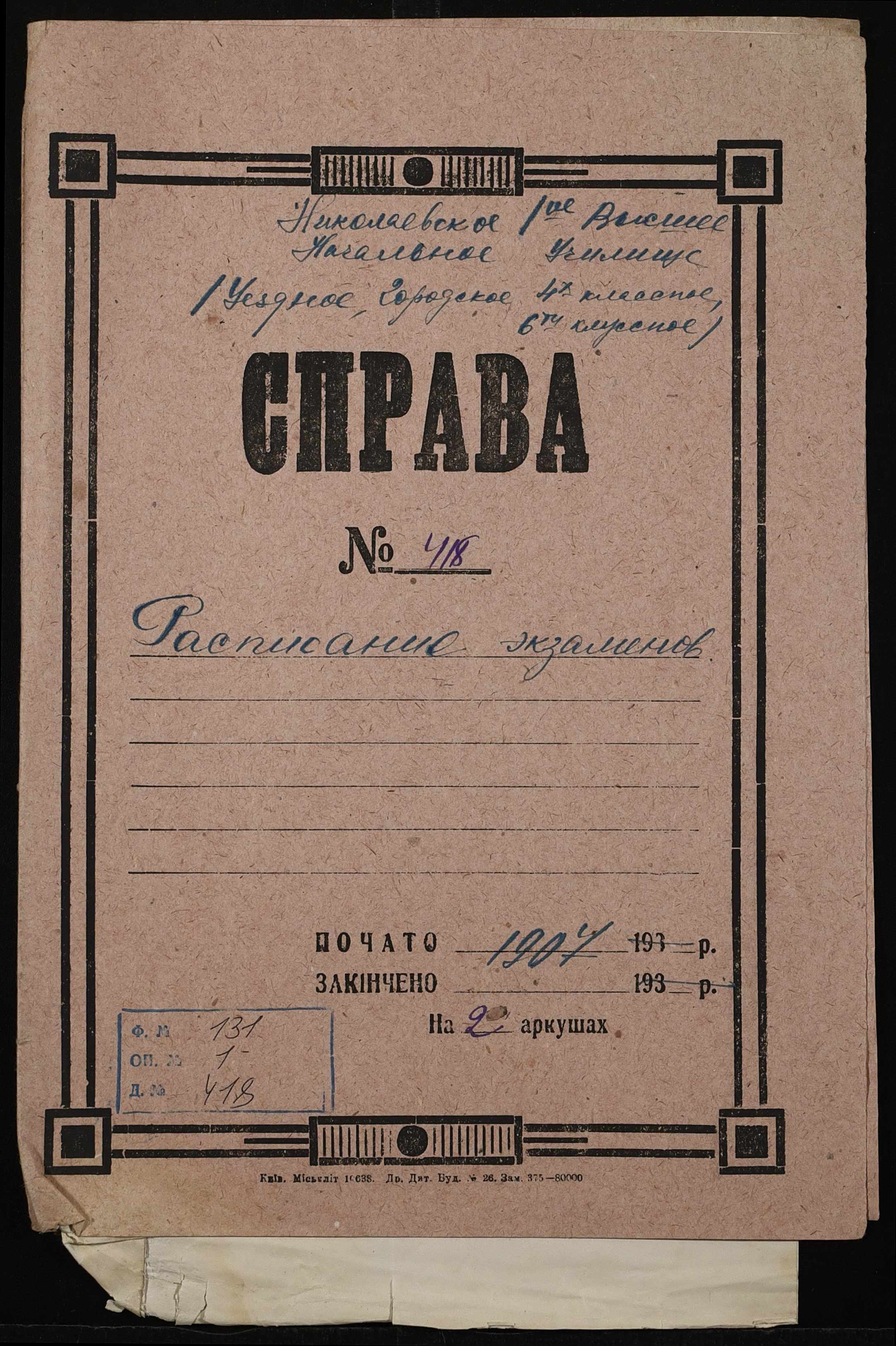 Фонд 131 / Опис 1 / Справа 418