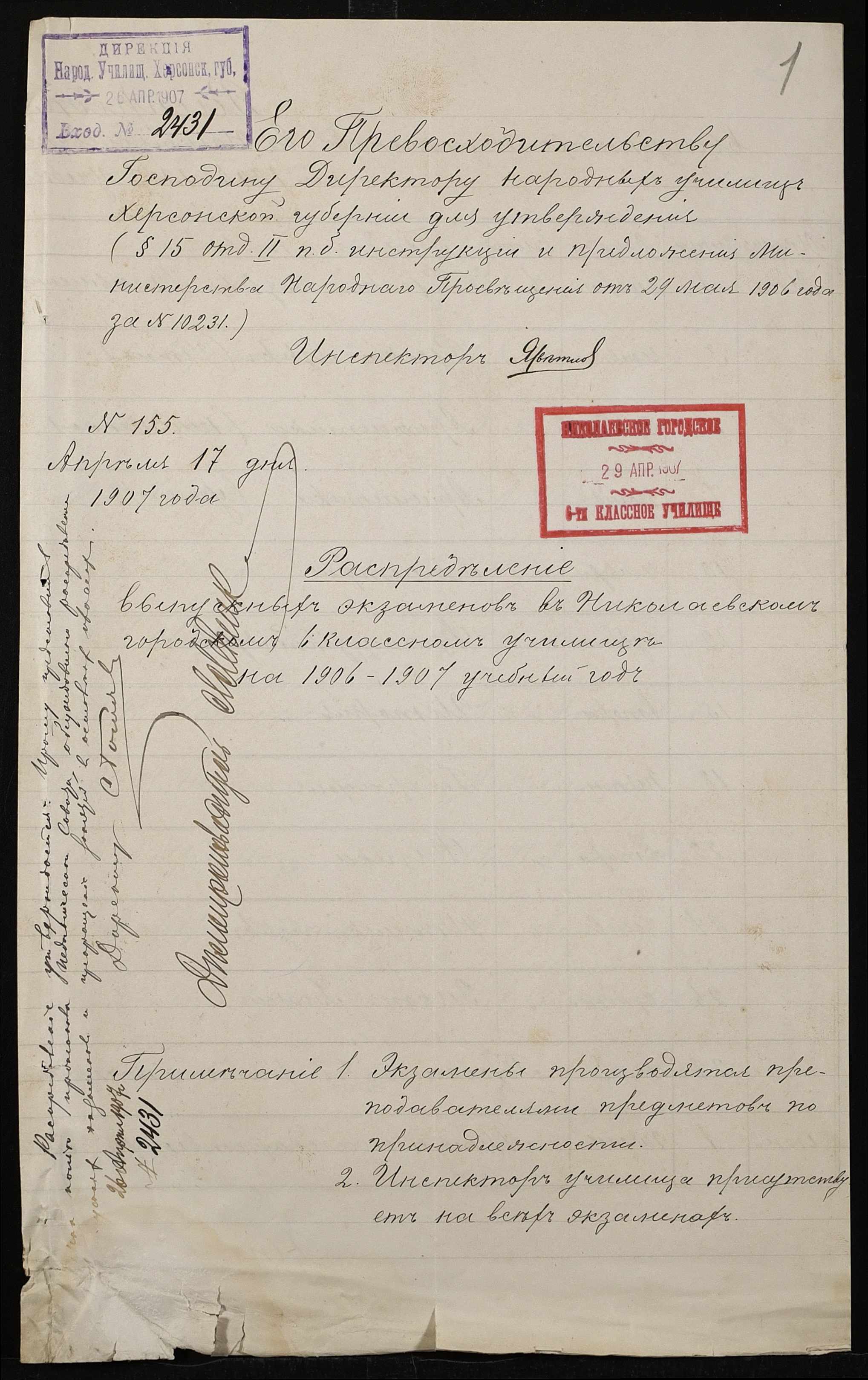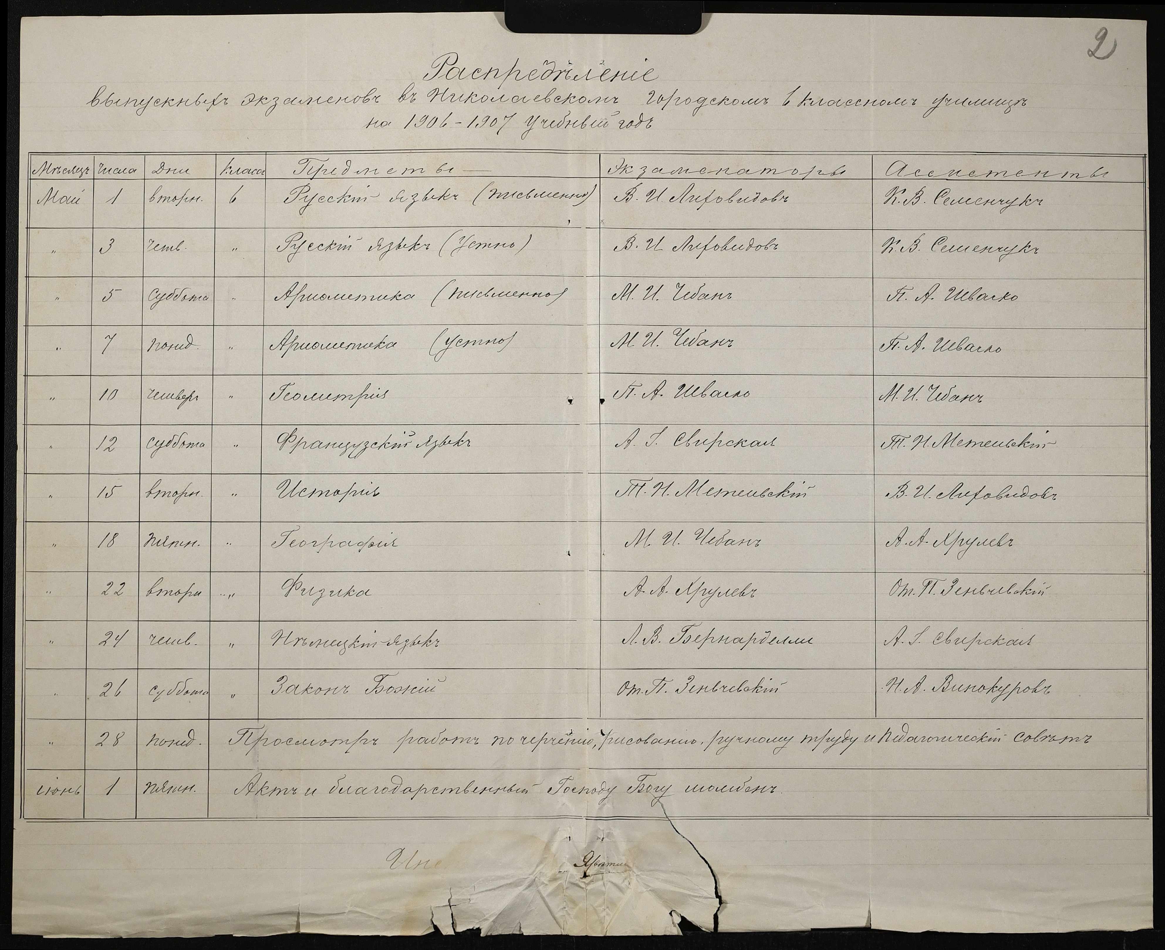 • • • • Справа № 418 “Розклад випускних іспитів за 1906-1907 роки”