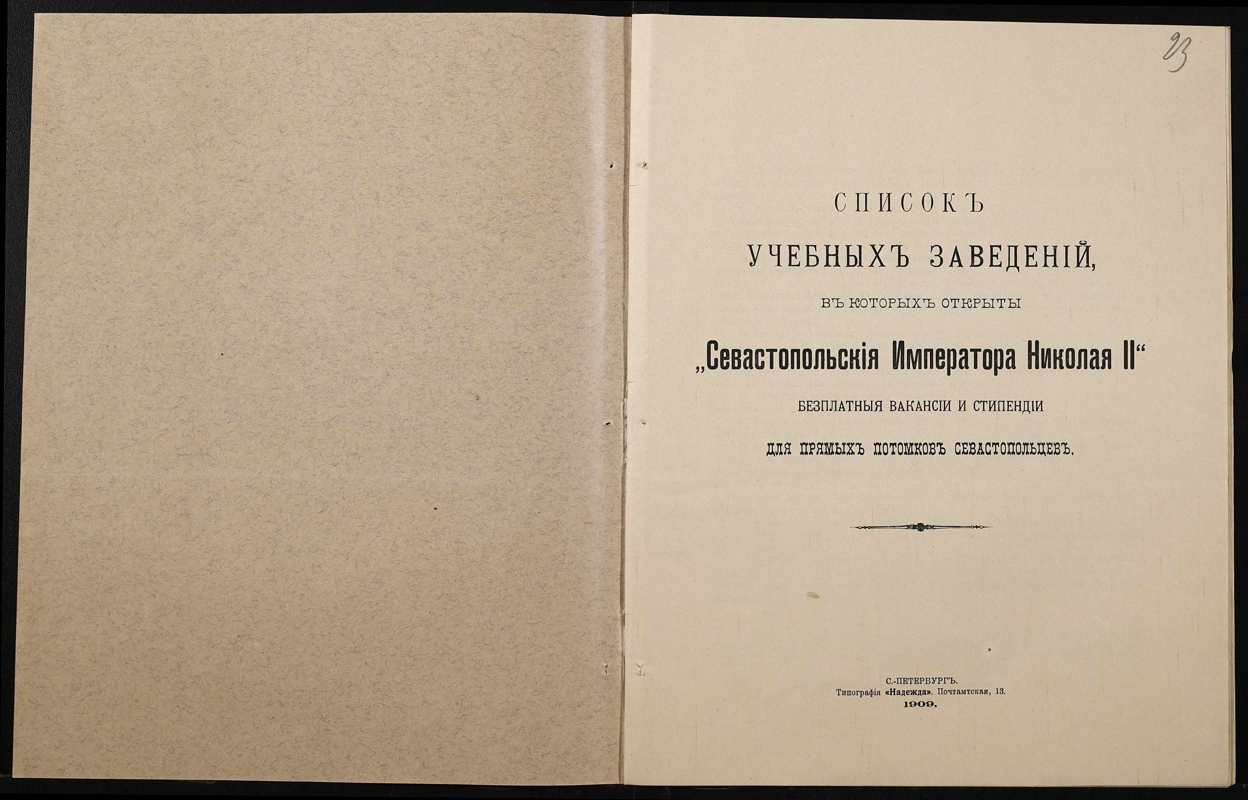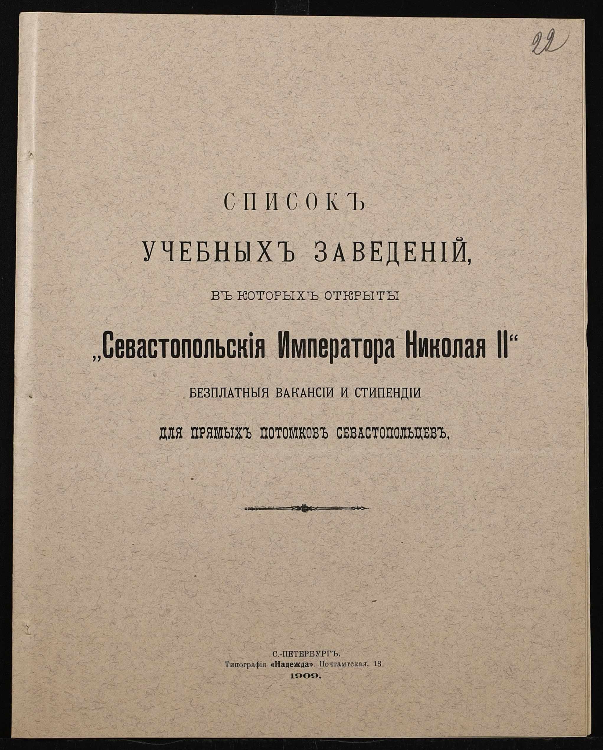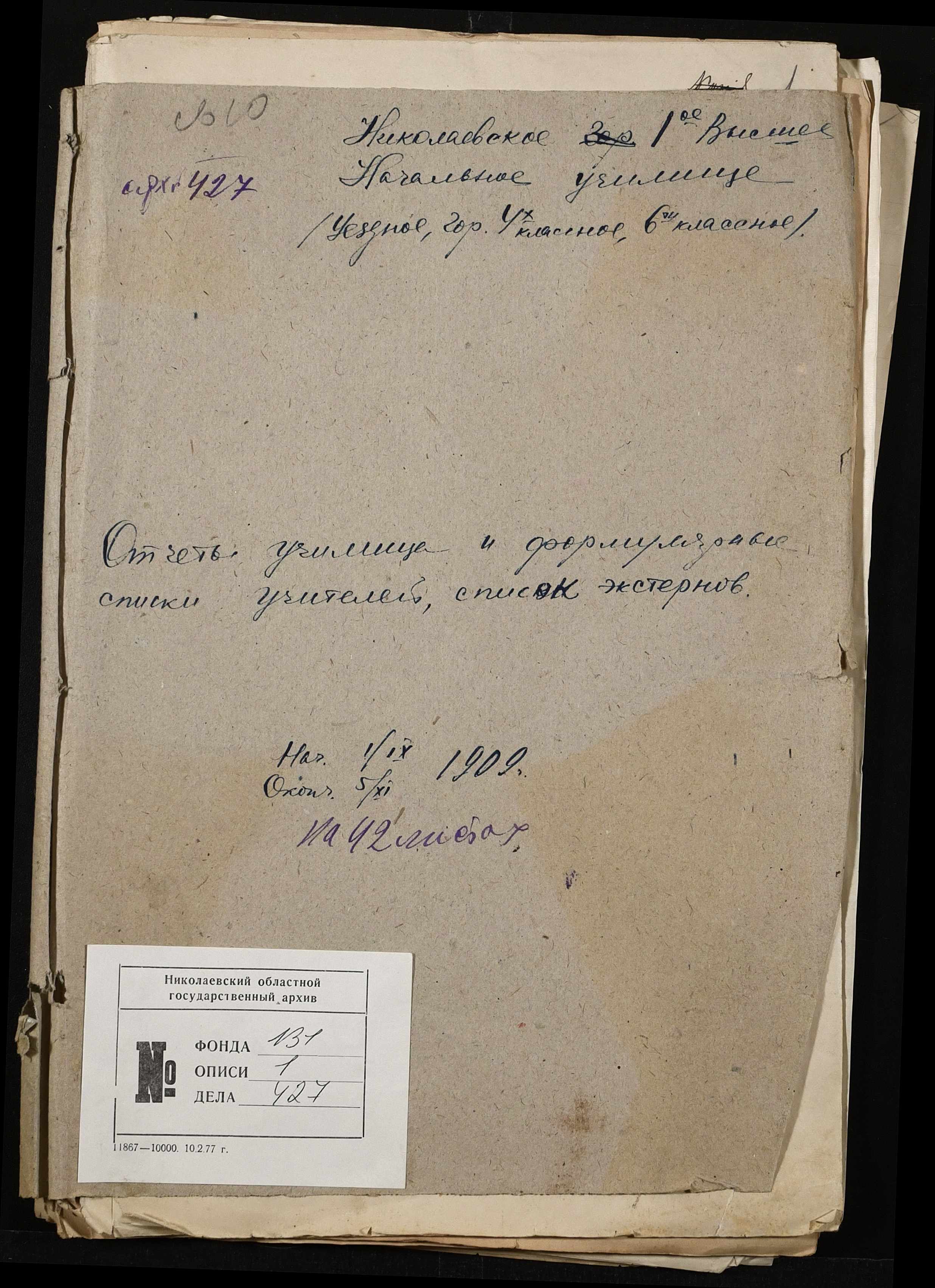 • • • • Справа № 427 “Статистичний звіт про стан училища за 1909 рік, формулярні списки викладачів, списки учнів, які здали екзамен екстерном, списки навчальних закладів, де безкоштовно навчаються і отримують стипендії нащадки уродженців м. Севастополь”