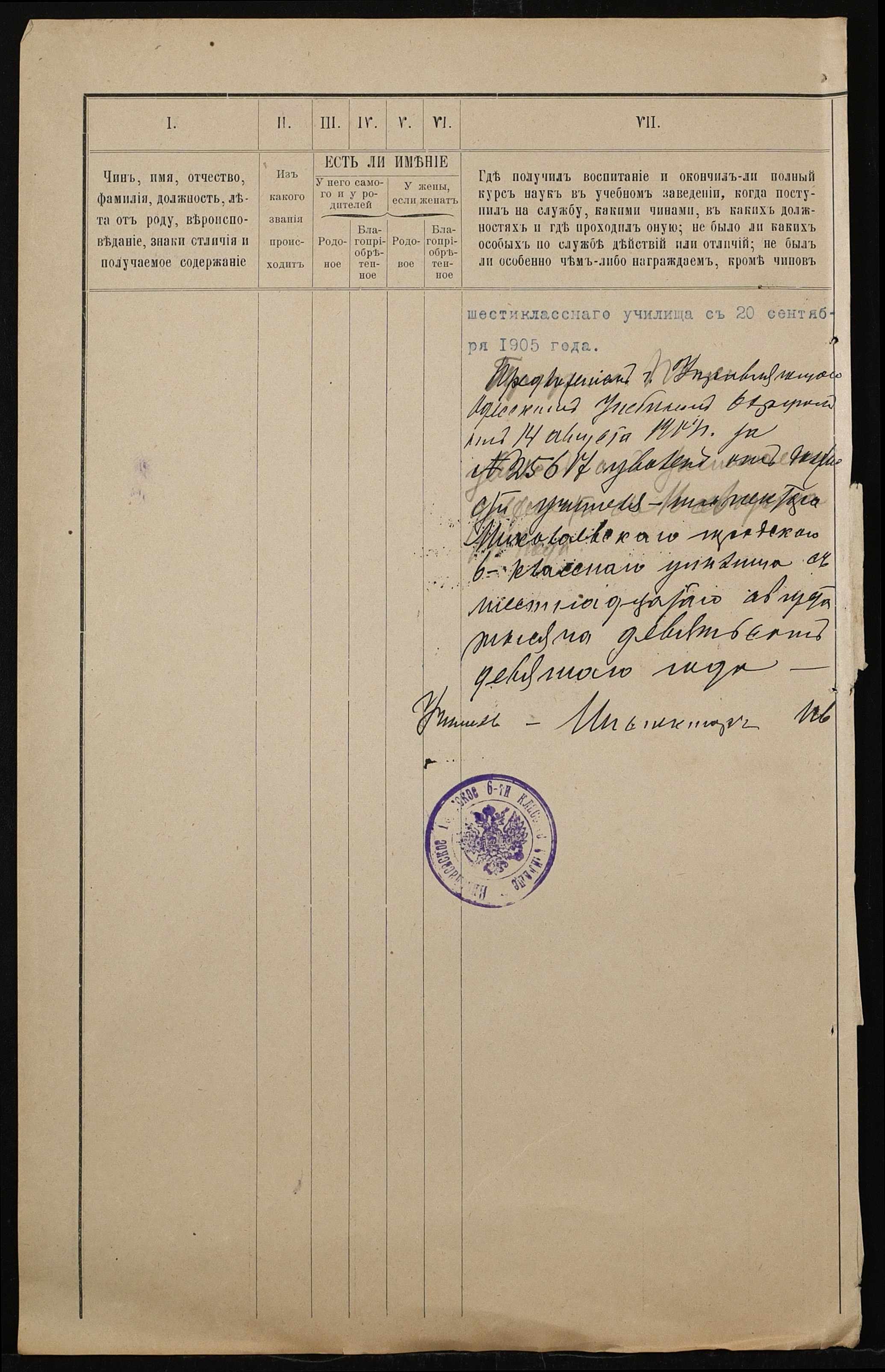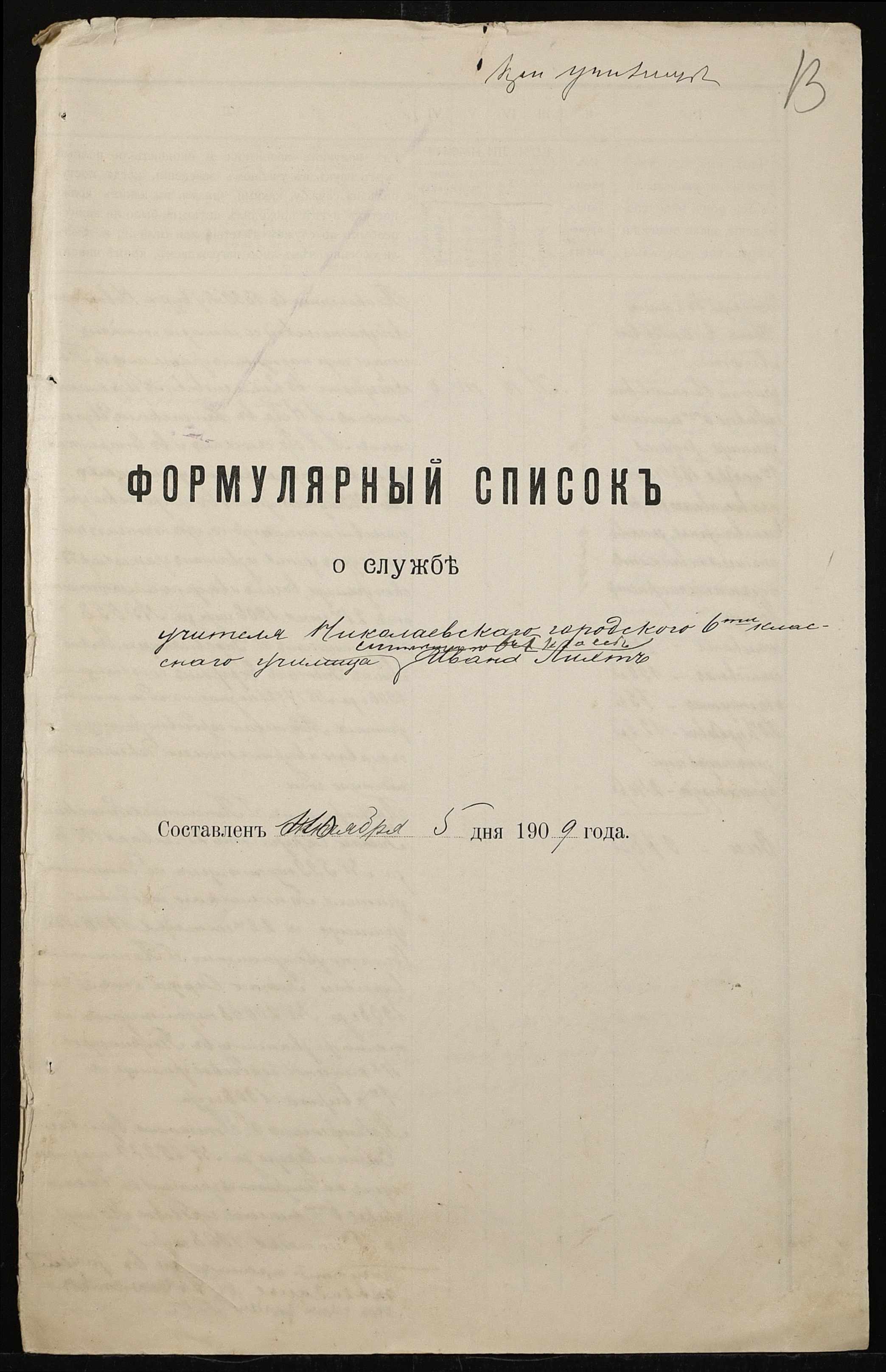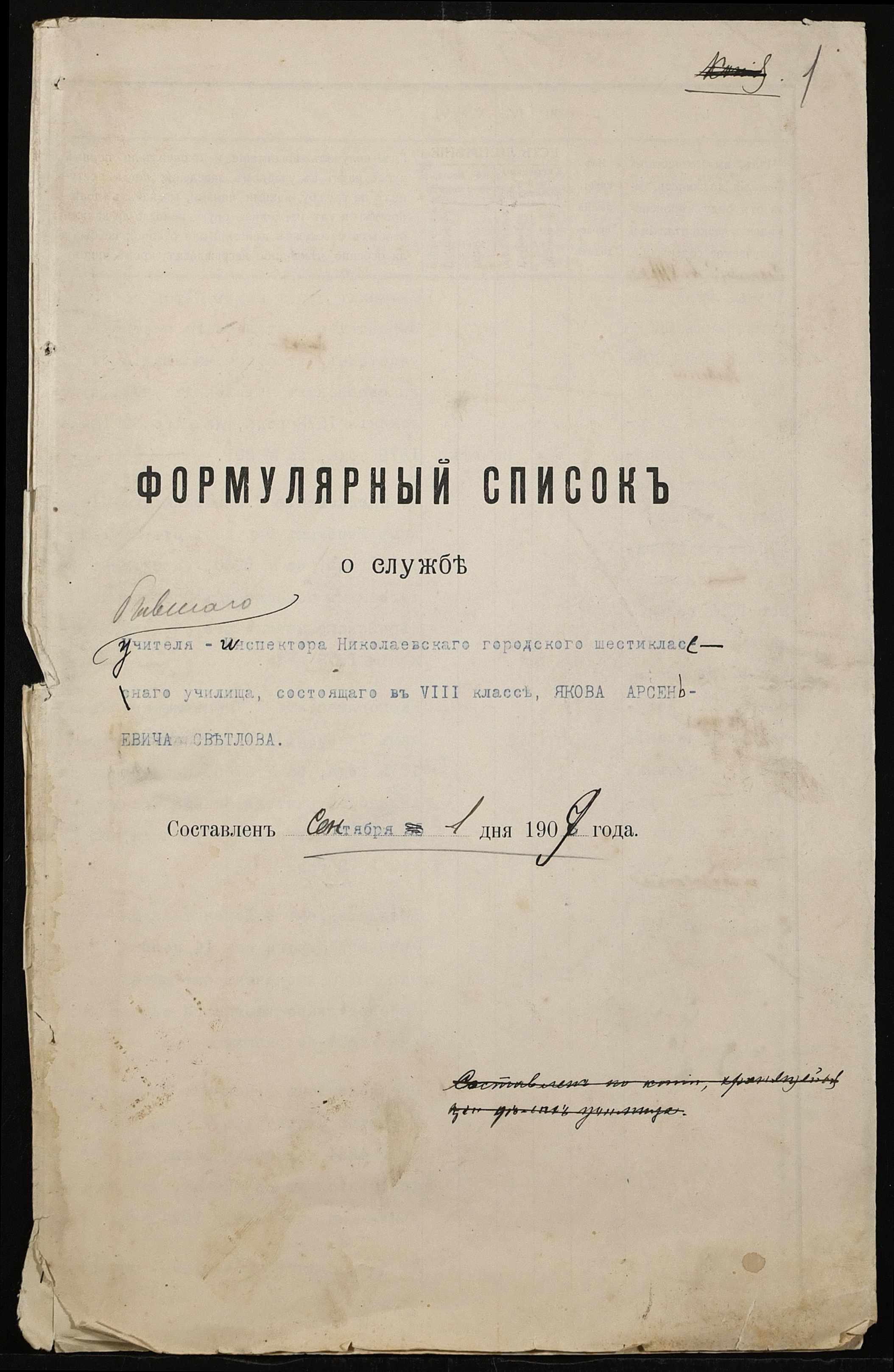 • • • • Справа № 427 “Статистичний звіт про стан училища за 1909 рік, формулярні списки викладачів, списки учнів, які здали екзамен екстерном, списки навчальних закладів, де безкоштовно навчаються і отримують стипендії нащадки уродженців м. Севастополь”
