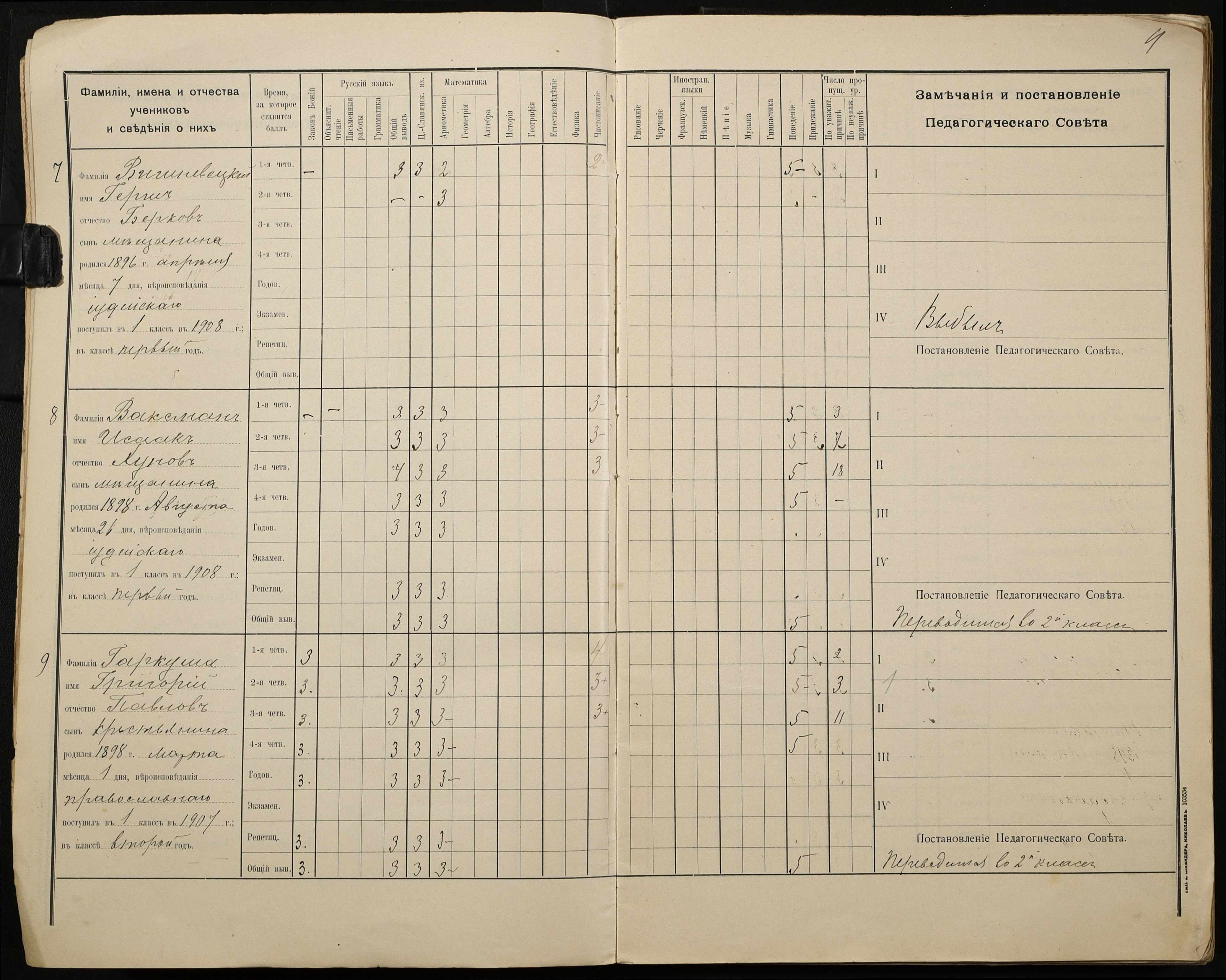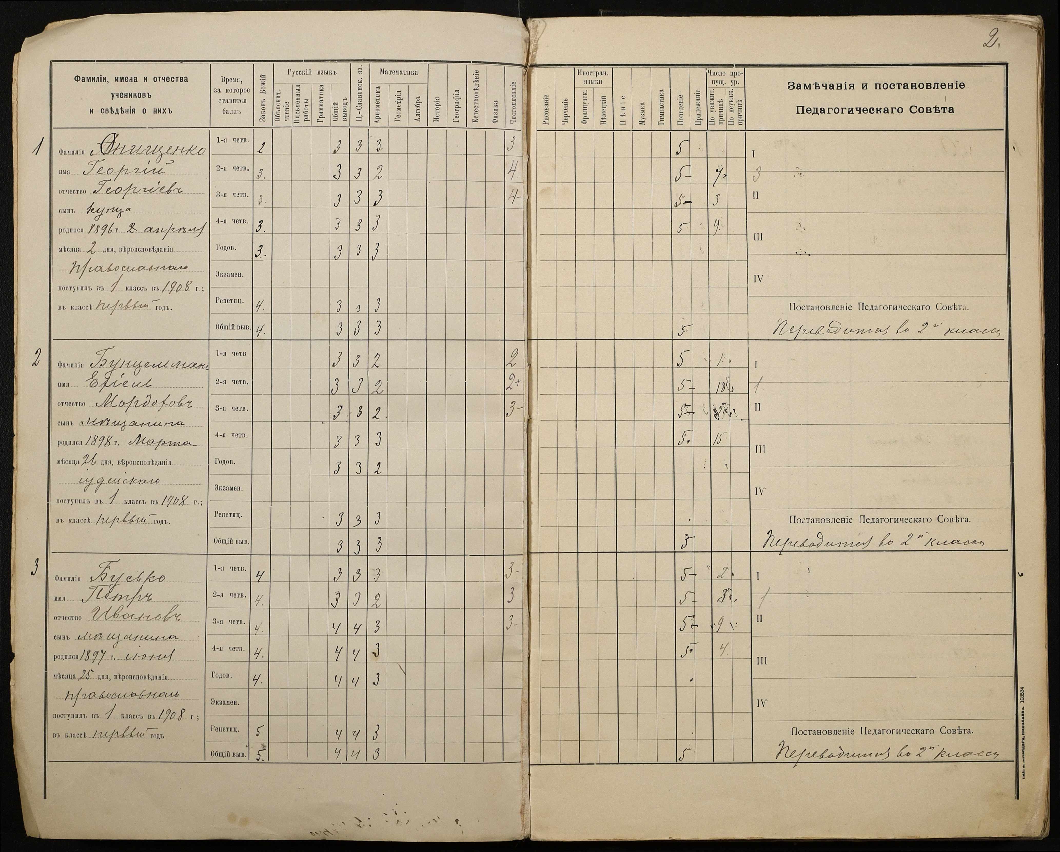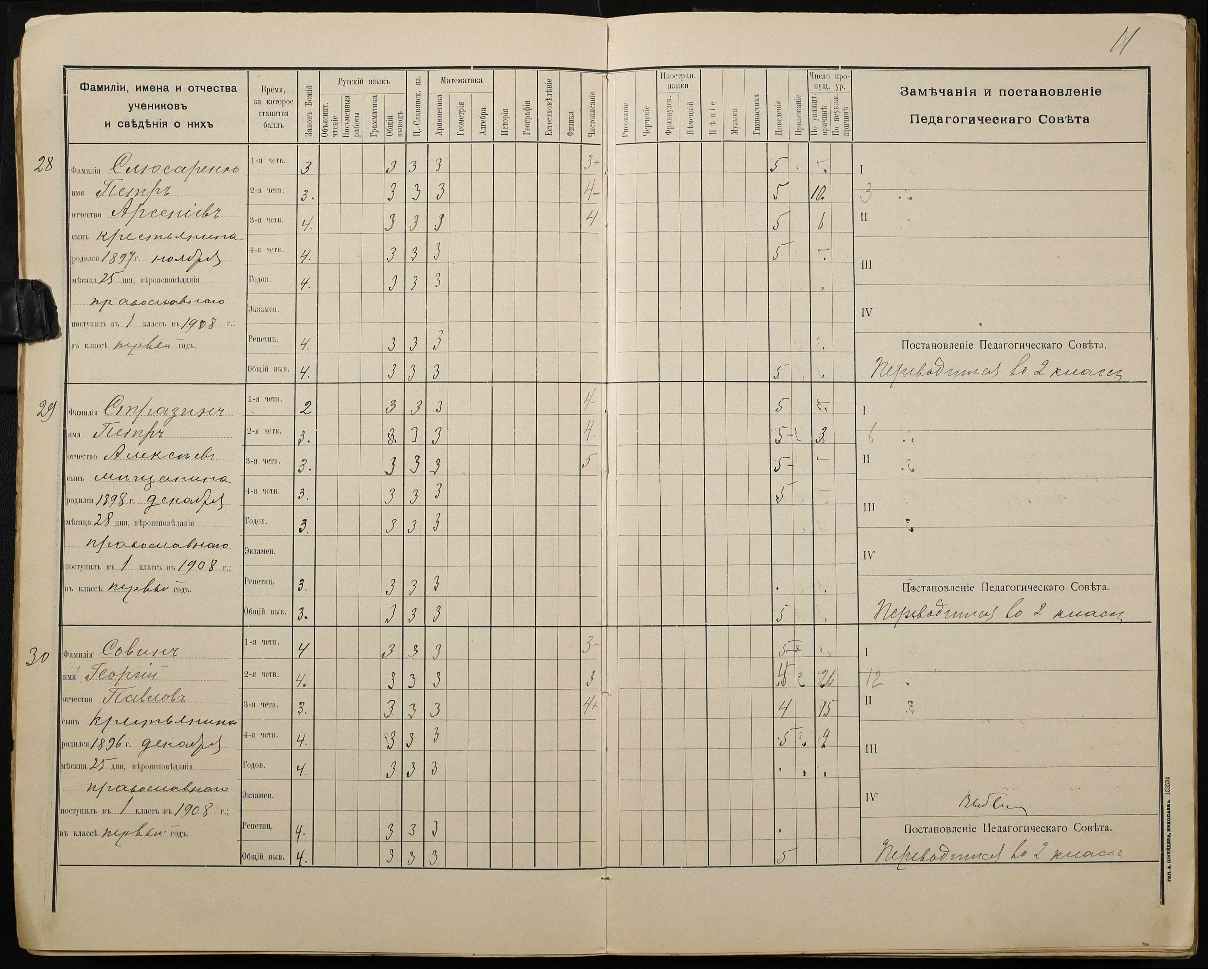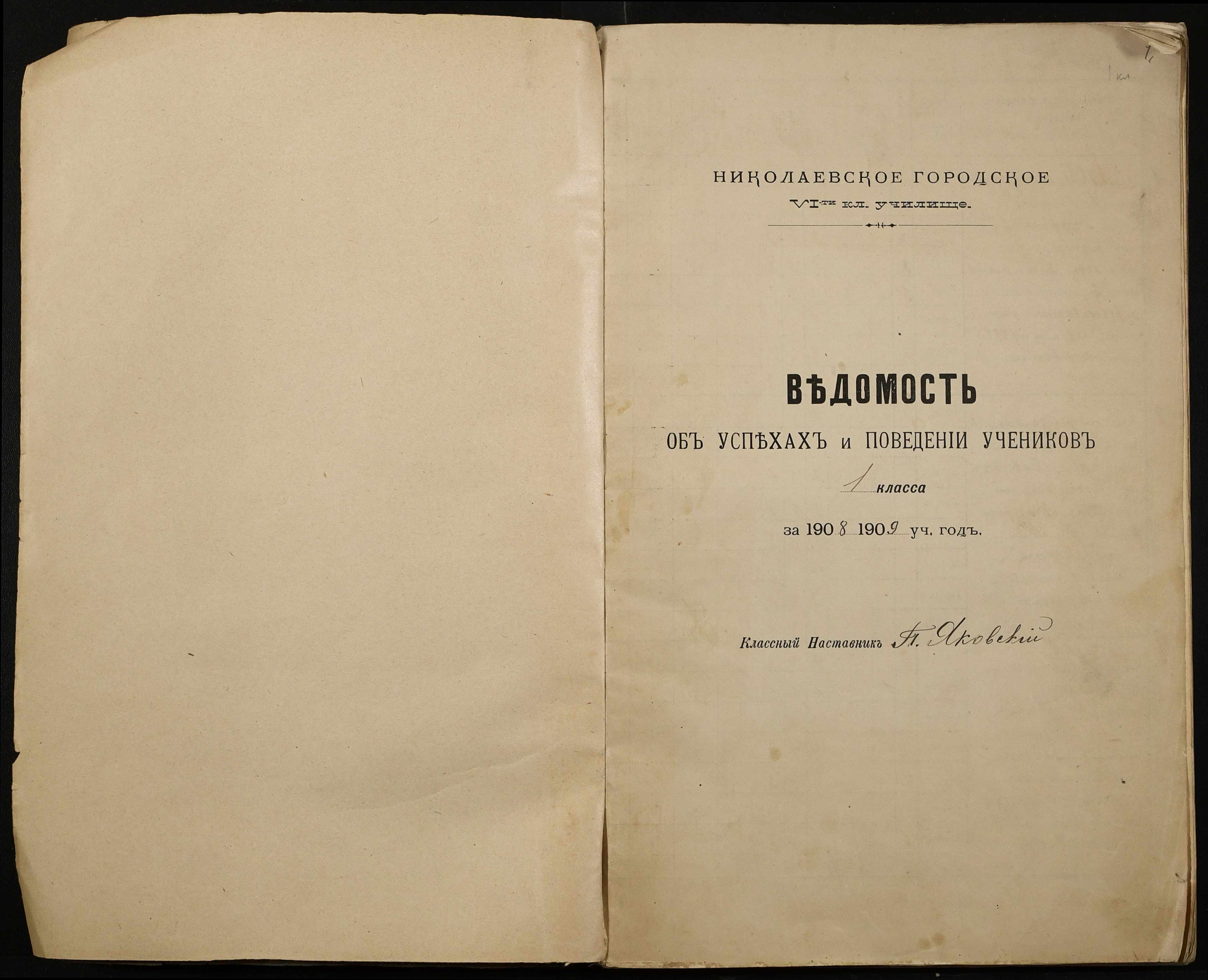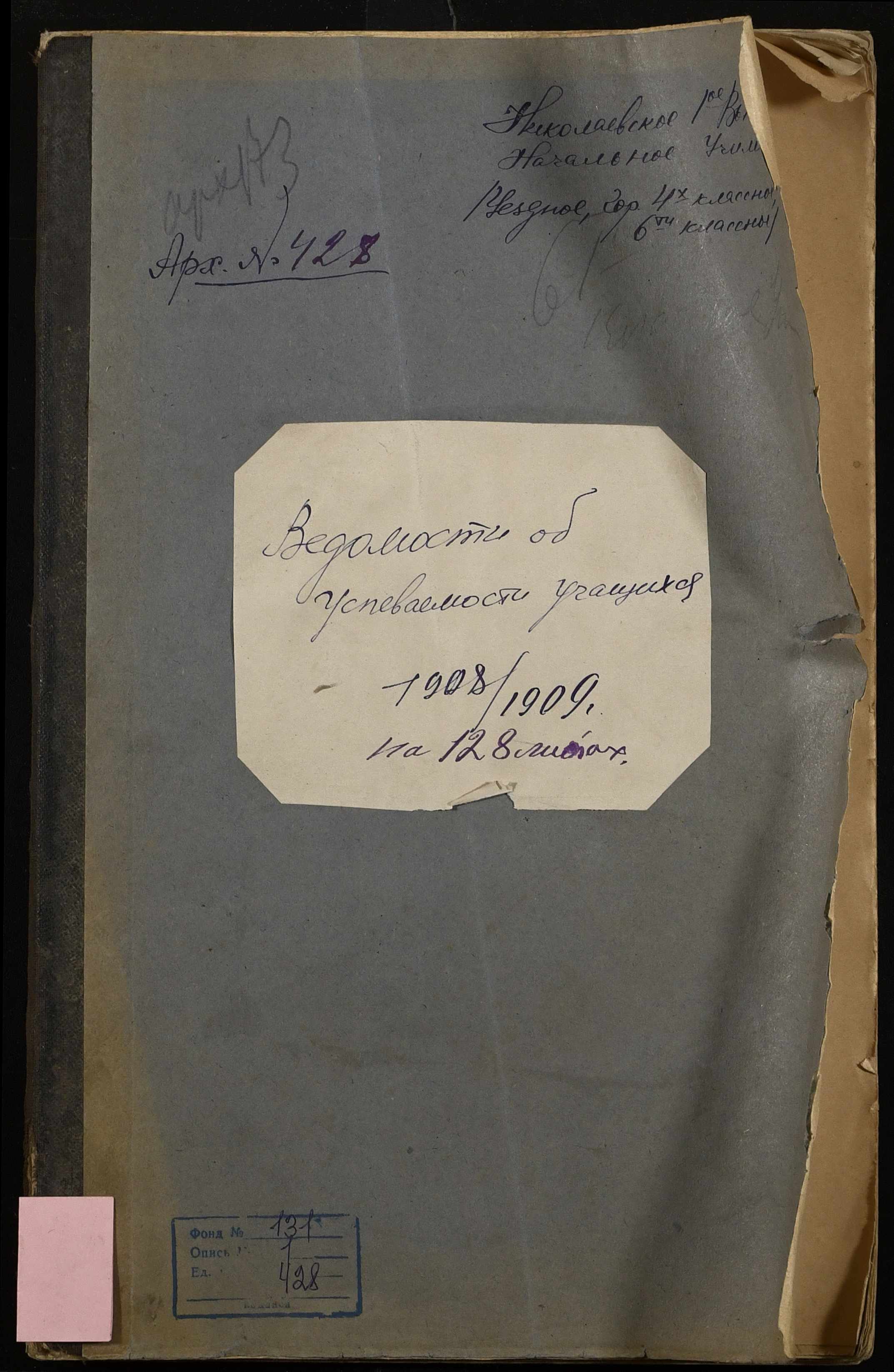 • • • • Справа № 428 “Відомості успішності і поведінки учнів першого класу за 1908-1909 навчальний рік”