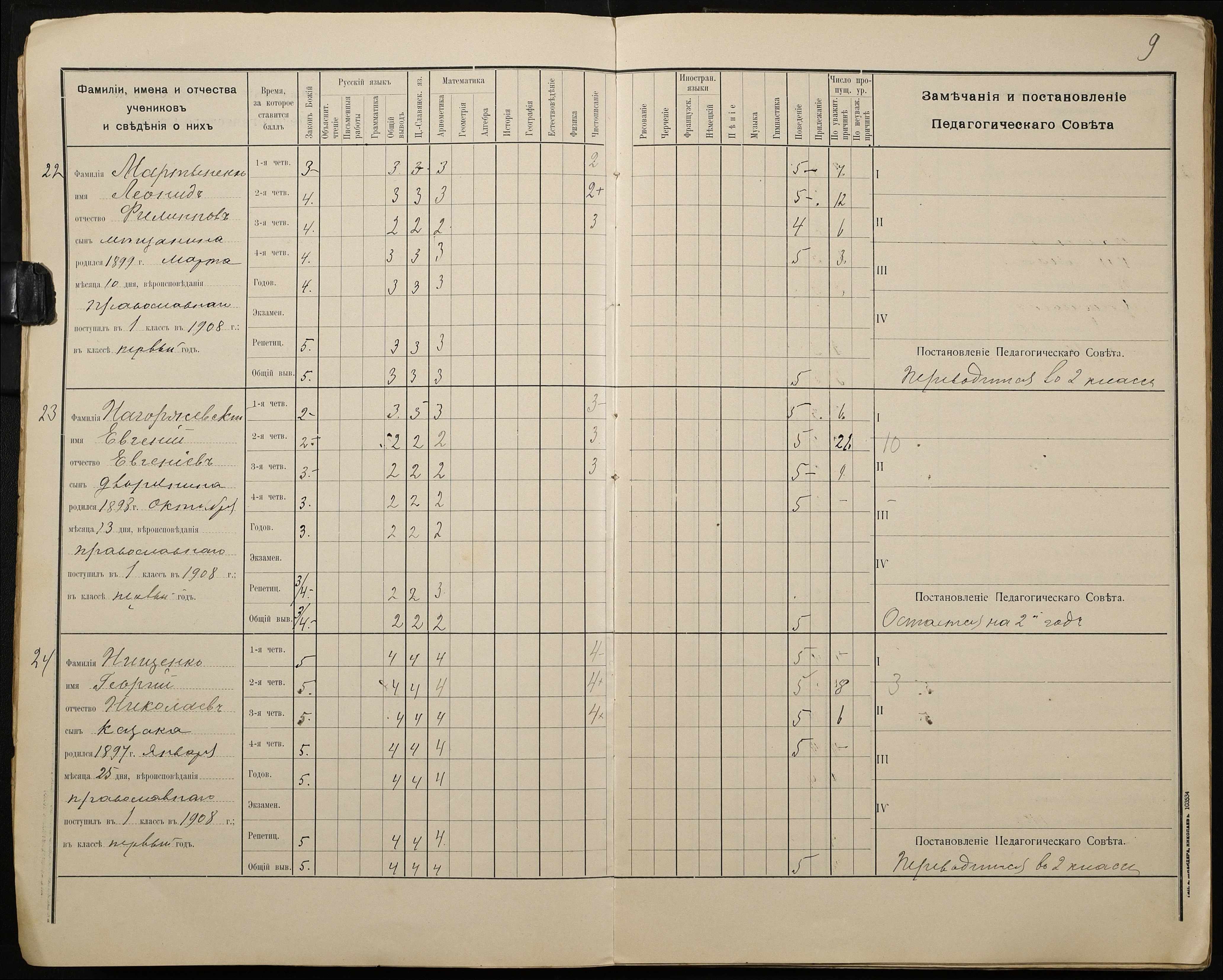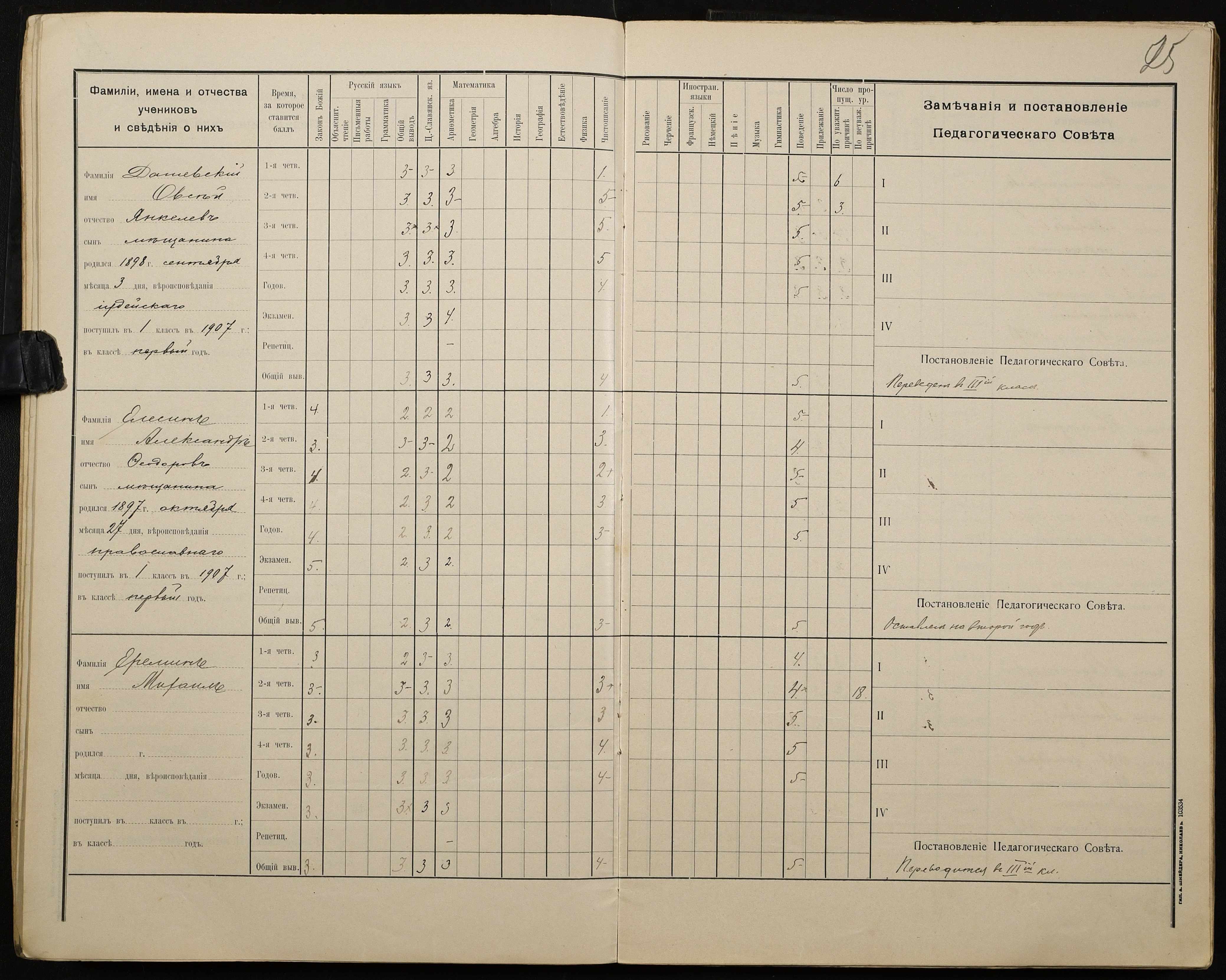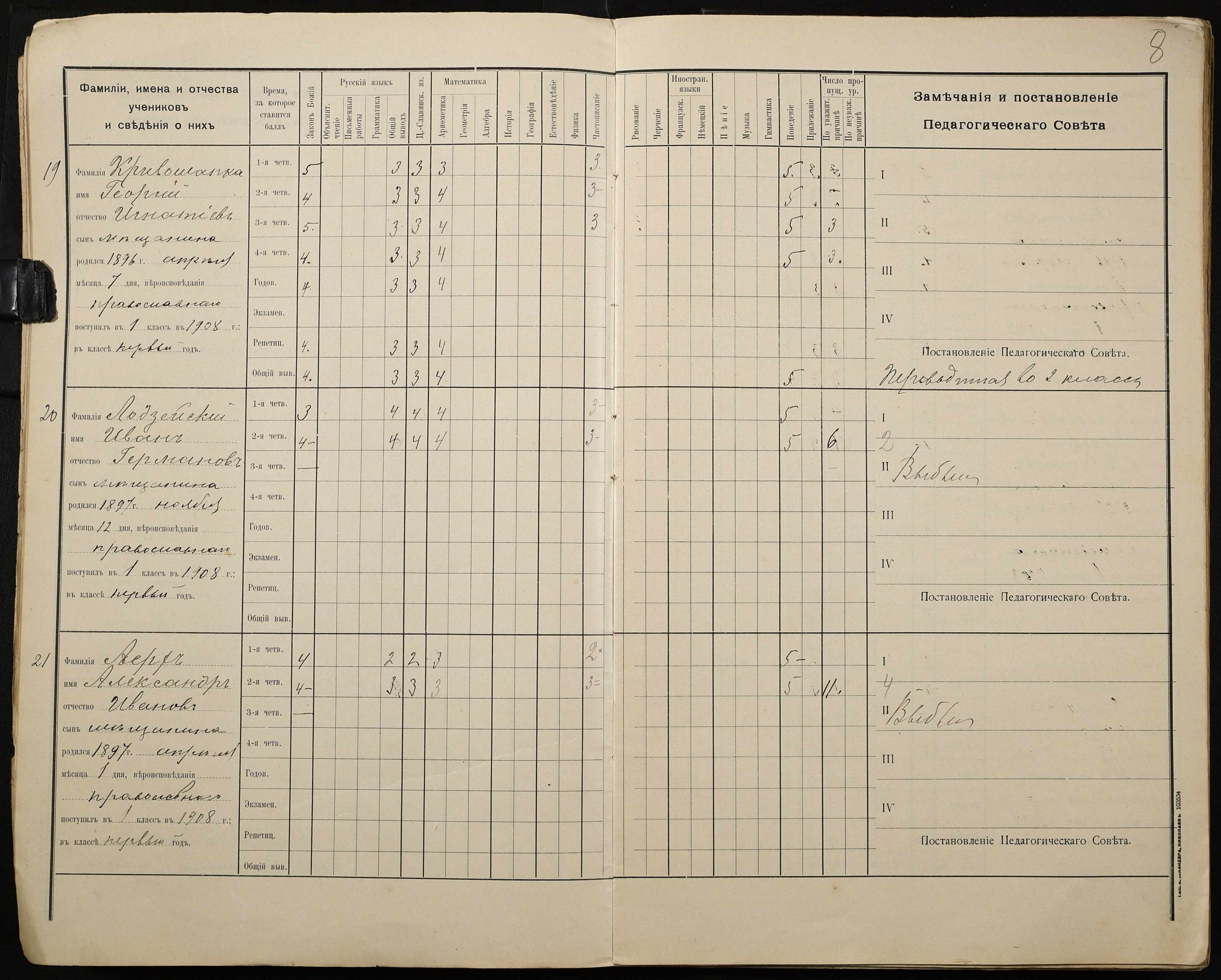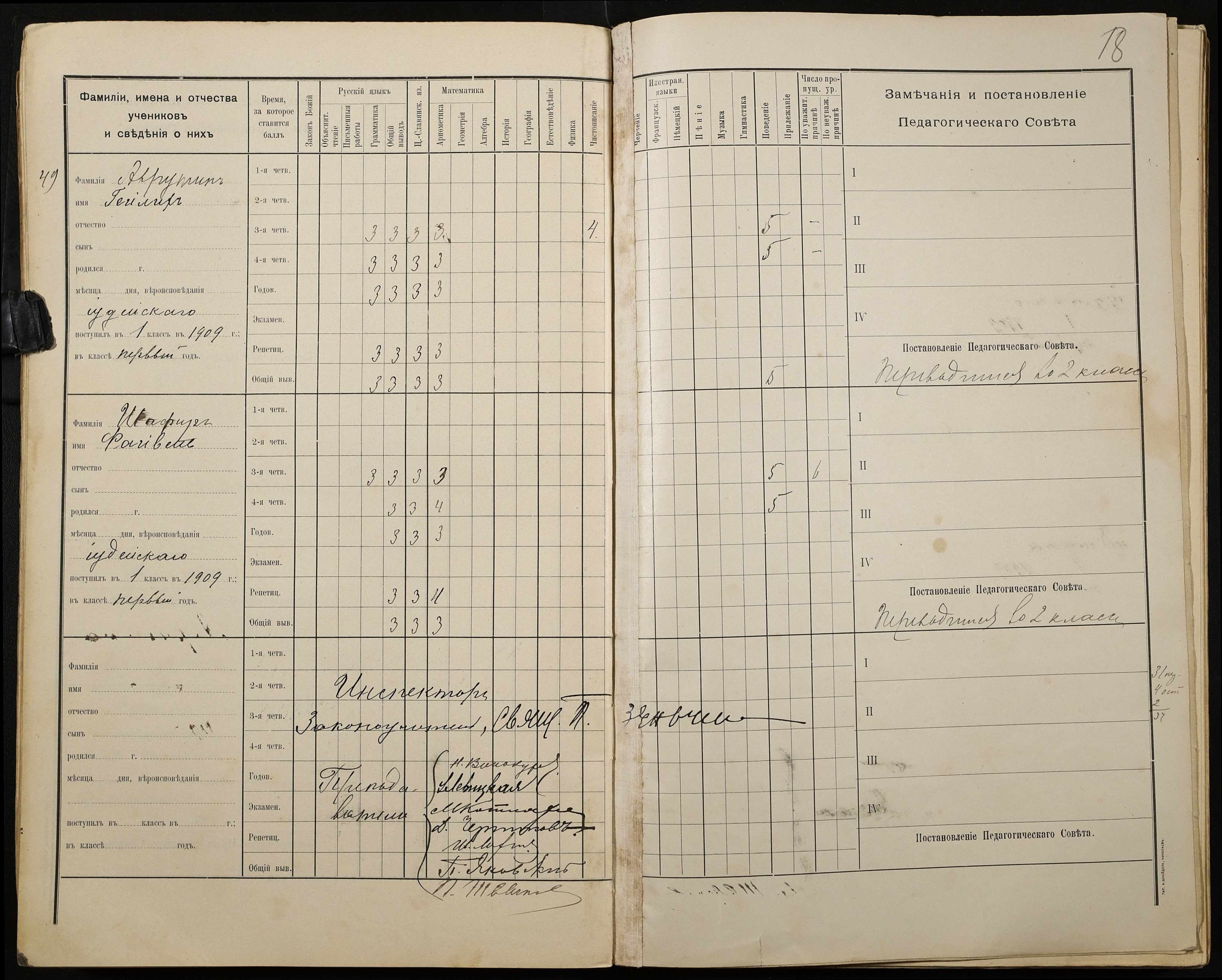 • • • • Справа № 428 “Відомості успішності і поведінки учнів першого класу за 1908-1909 навчальний рік”