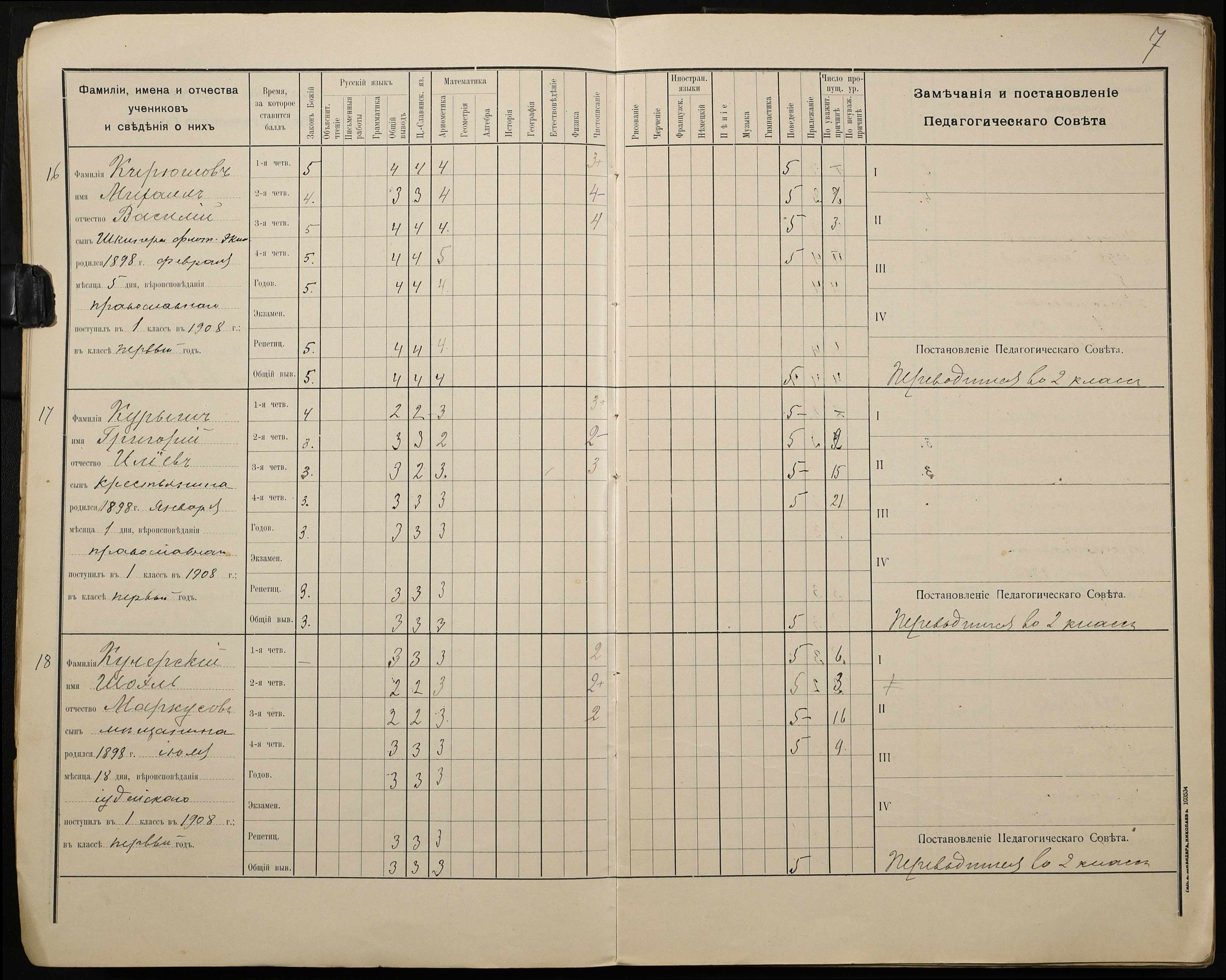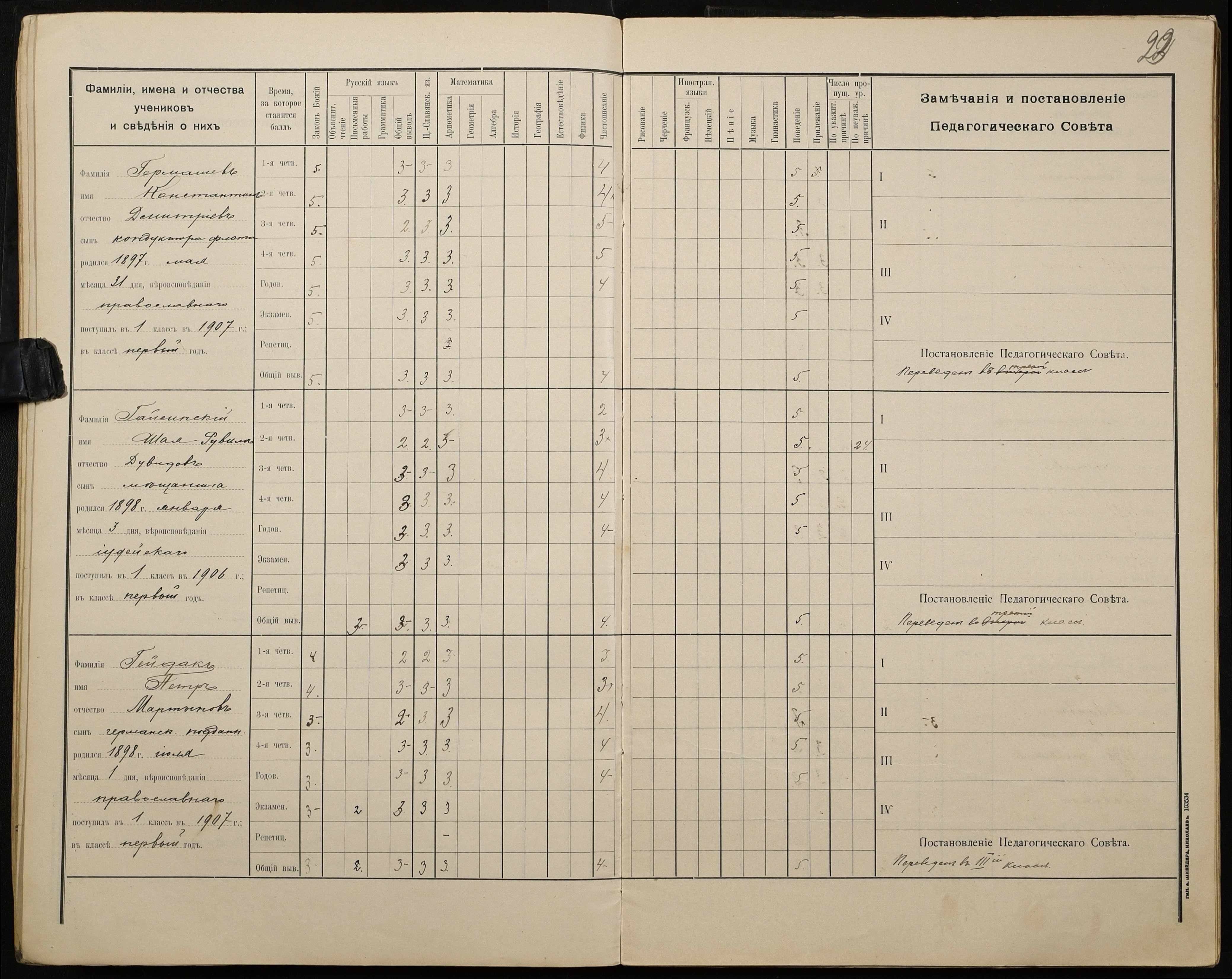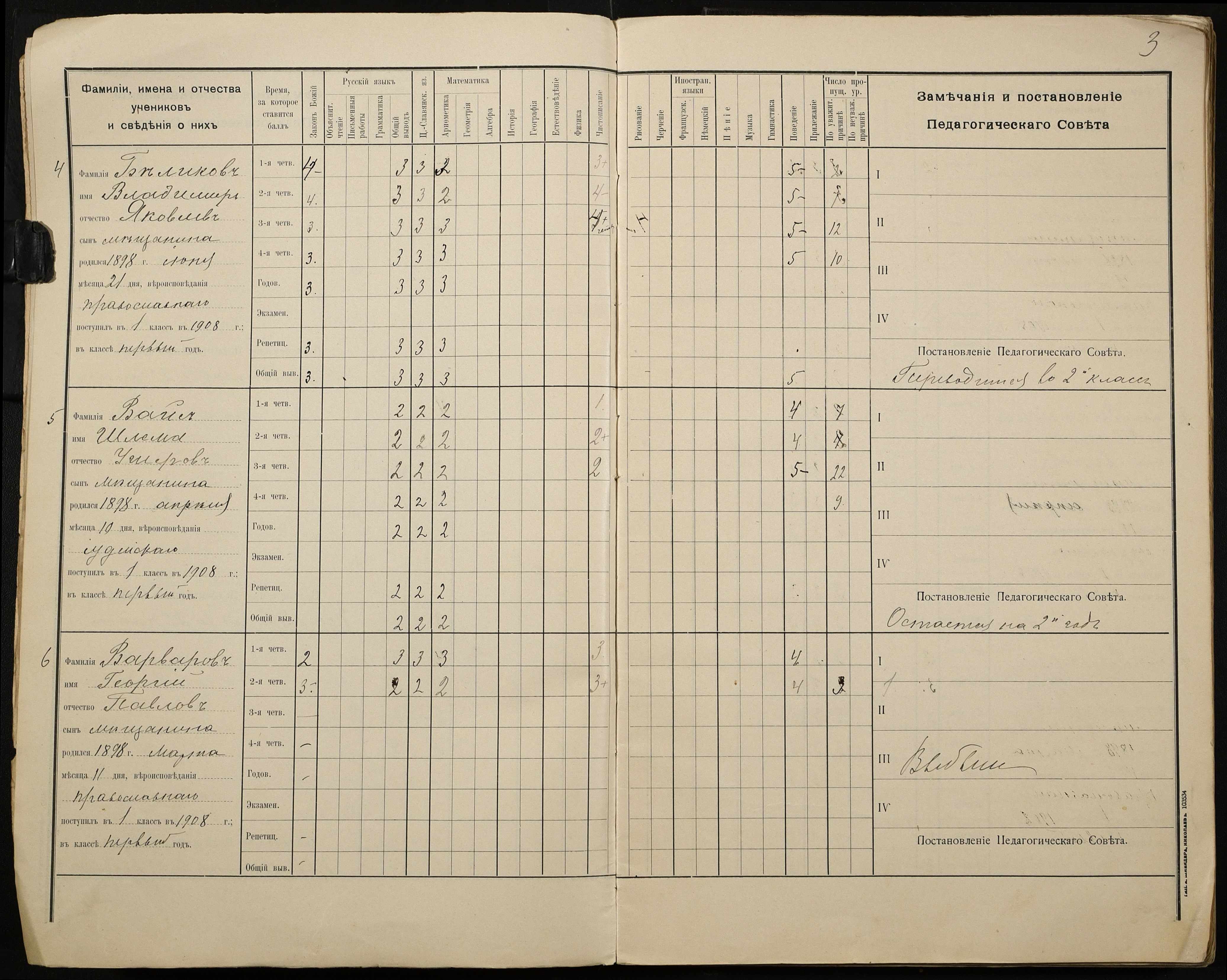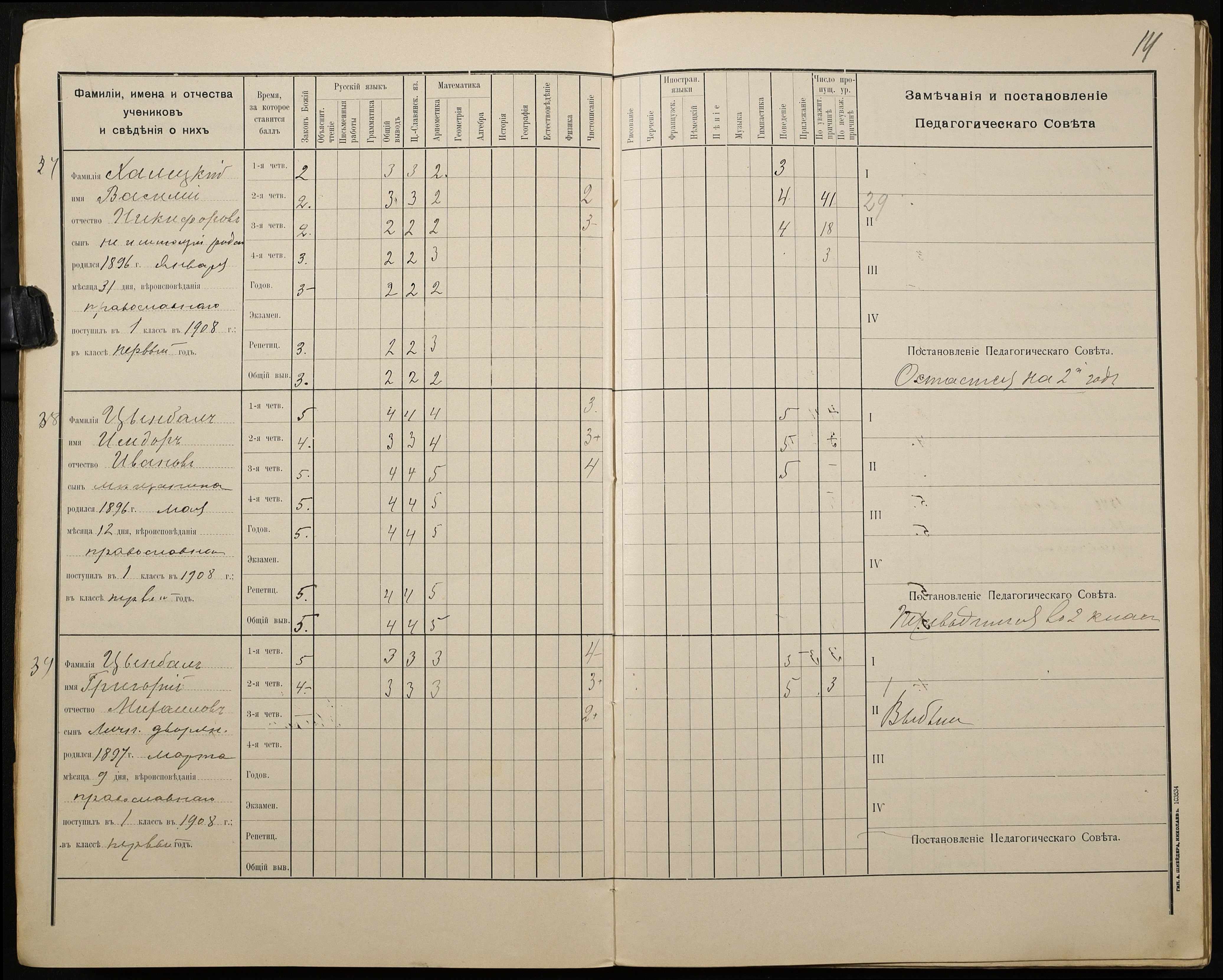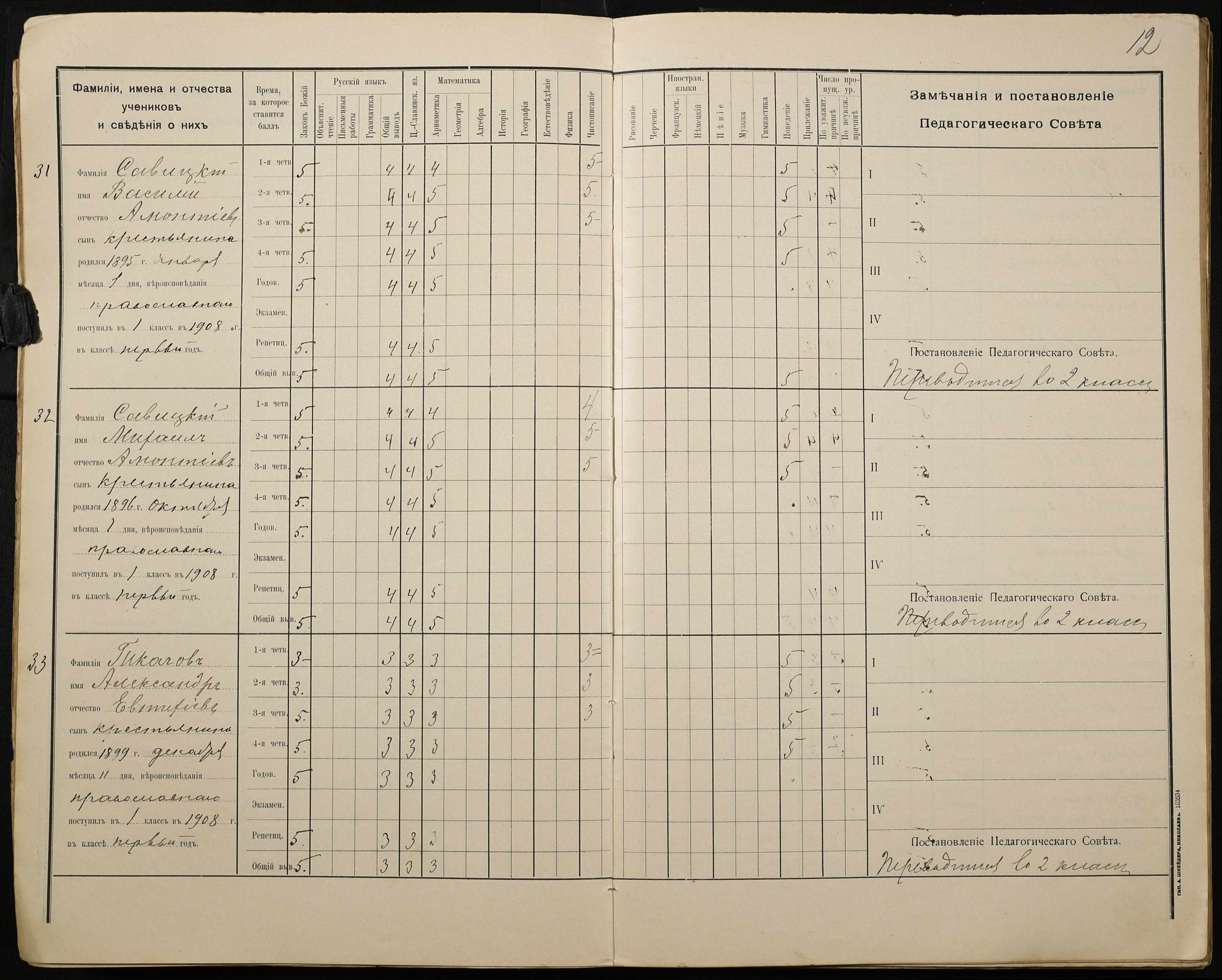 • • • • Справа № 428 “Відомості успішності і поведінки учнів першого класу за 1908-1909 навчальний рік”