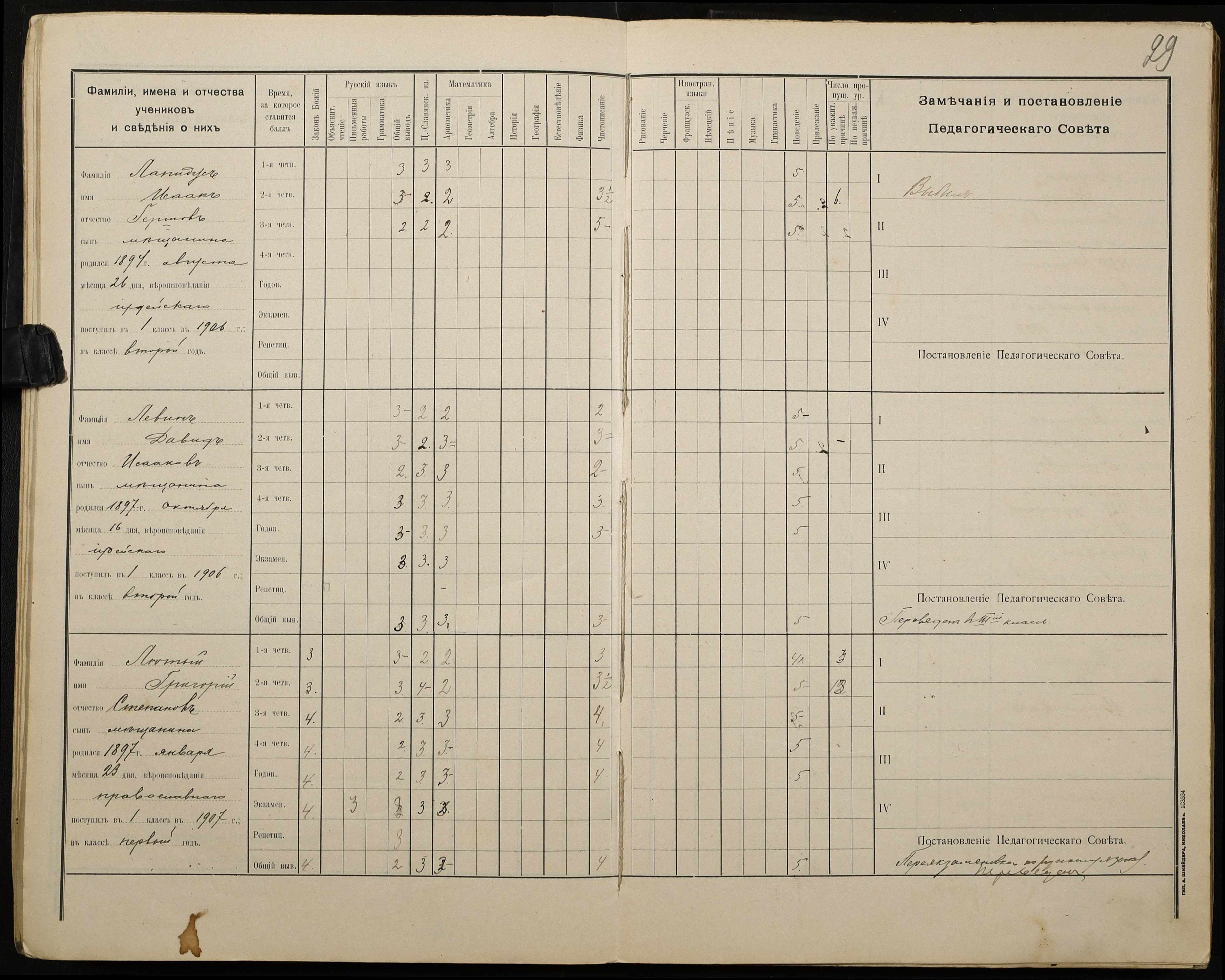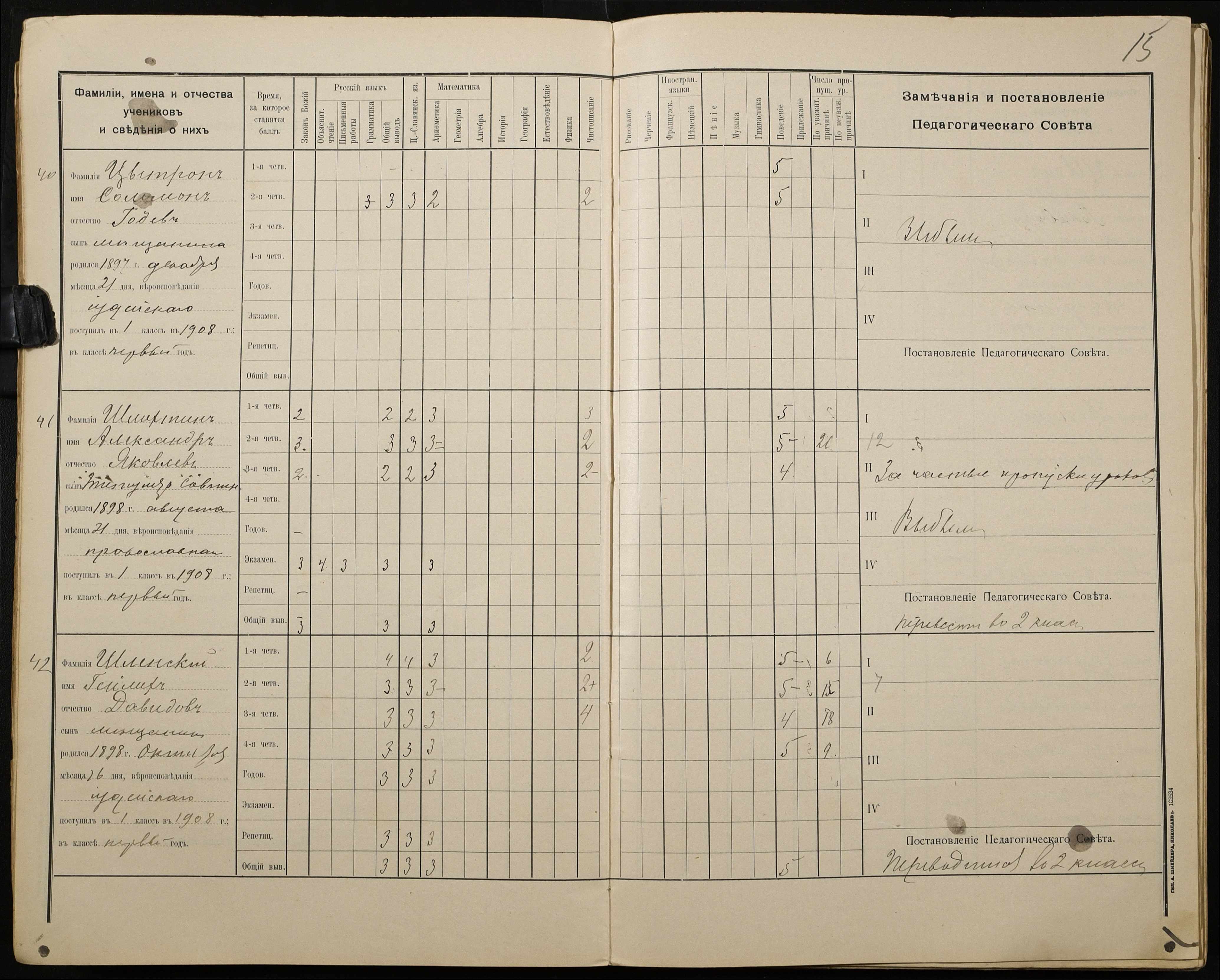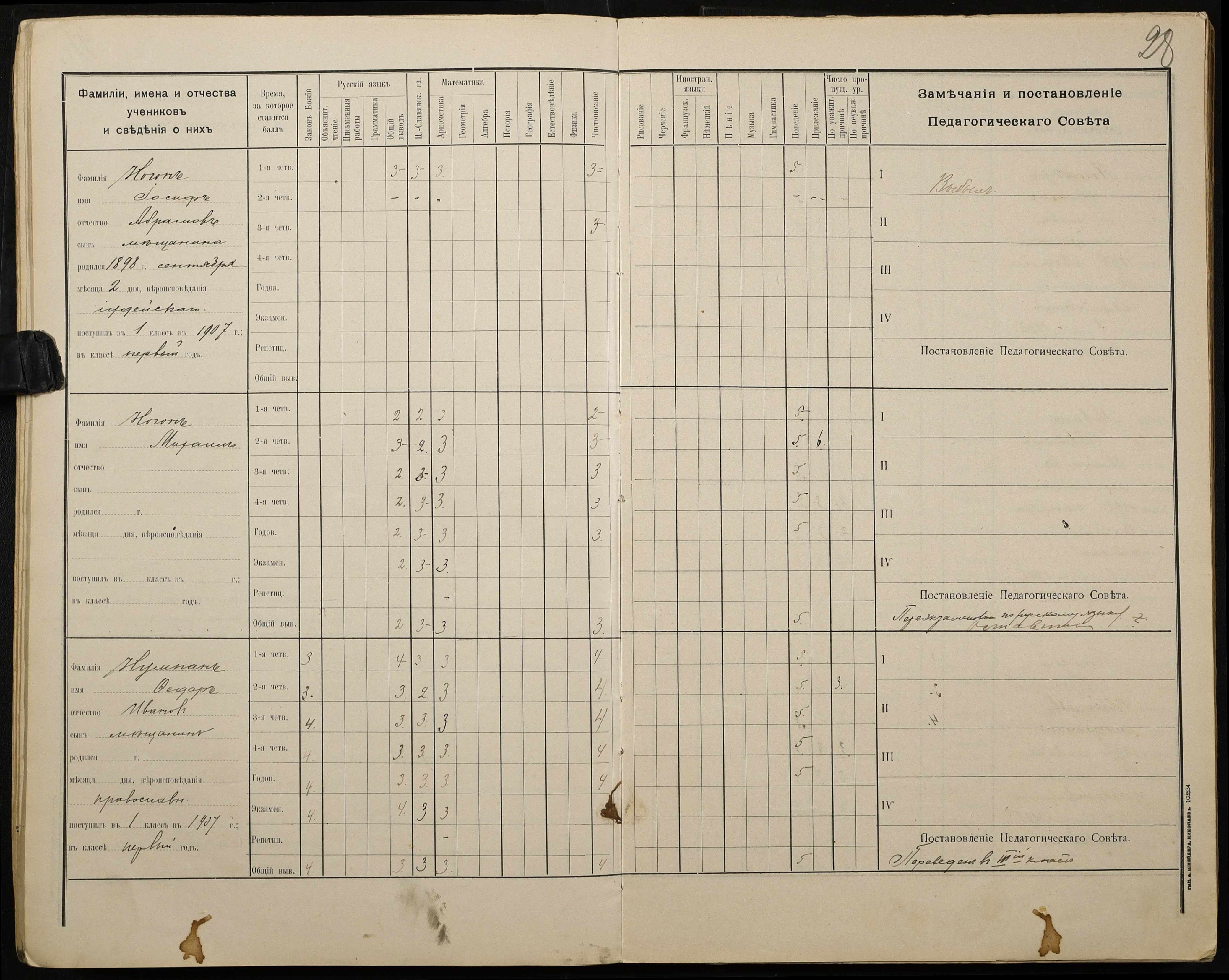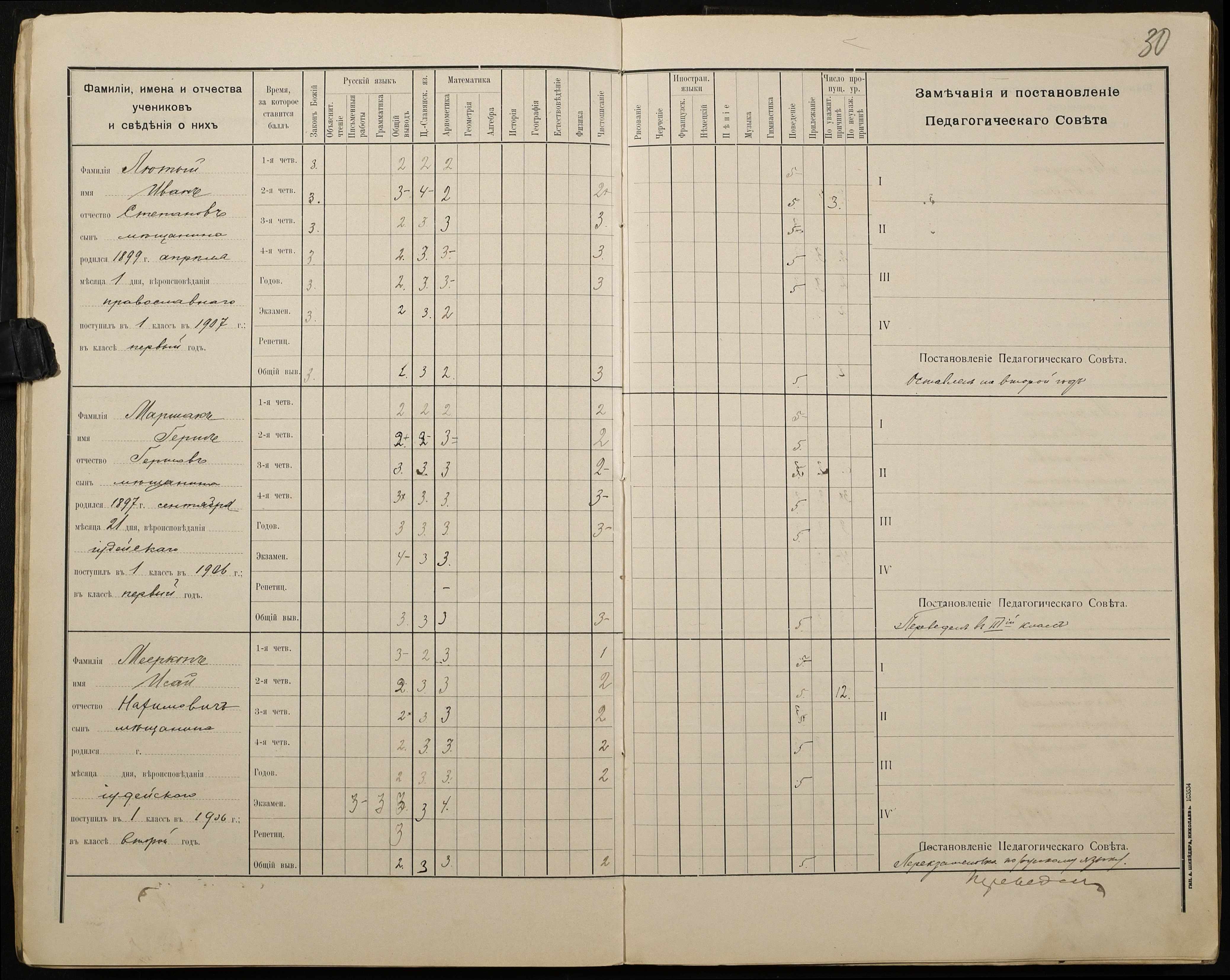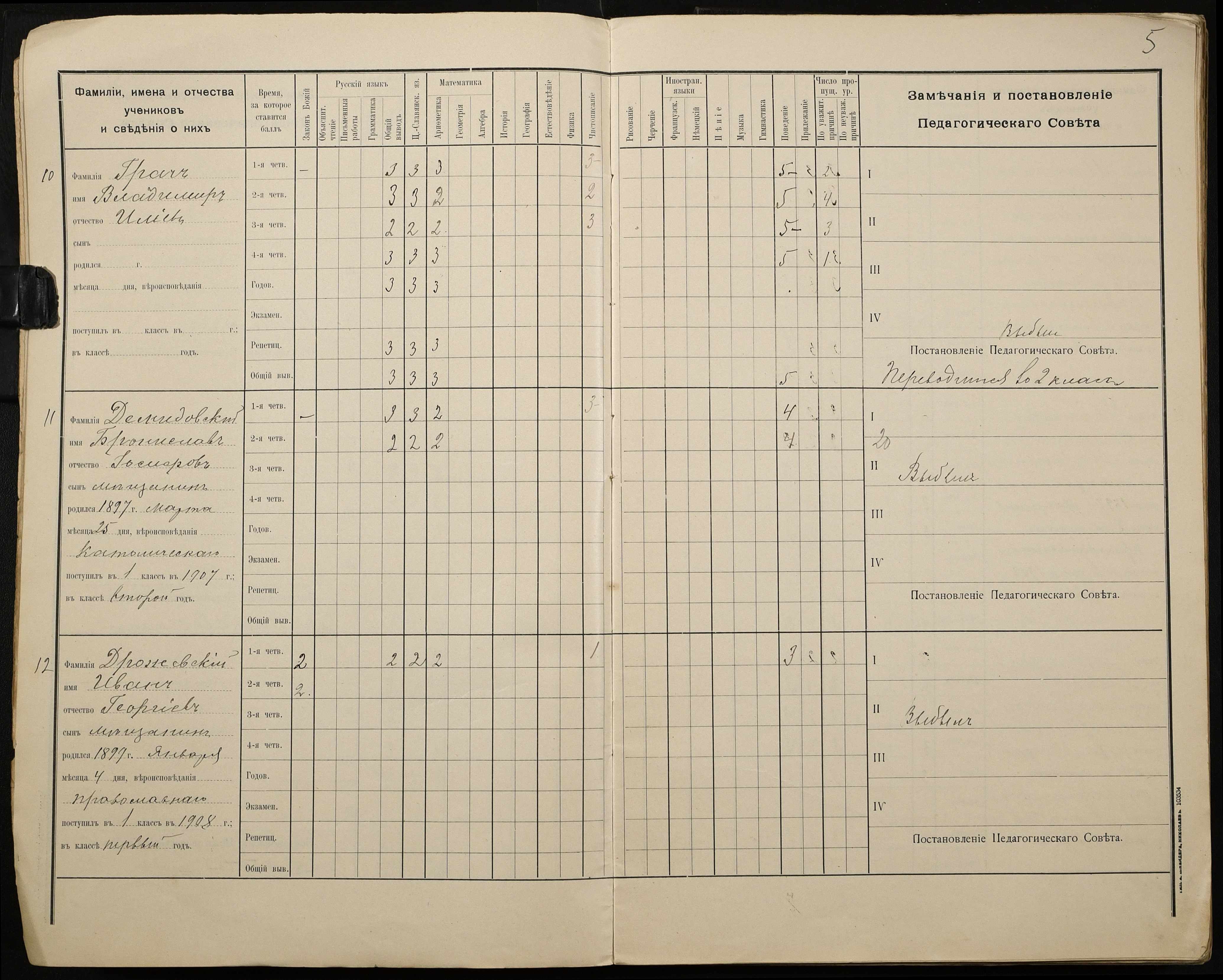 • • • • Справа № 428 “Відомості успішності і поведінки учнів першого класу за 1908-1909 навчальний рік”