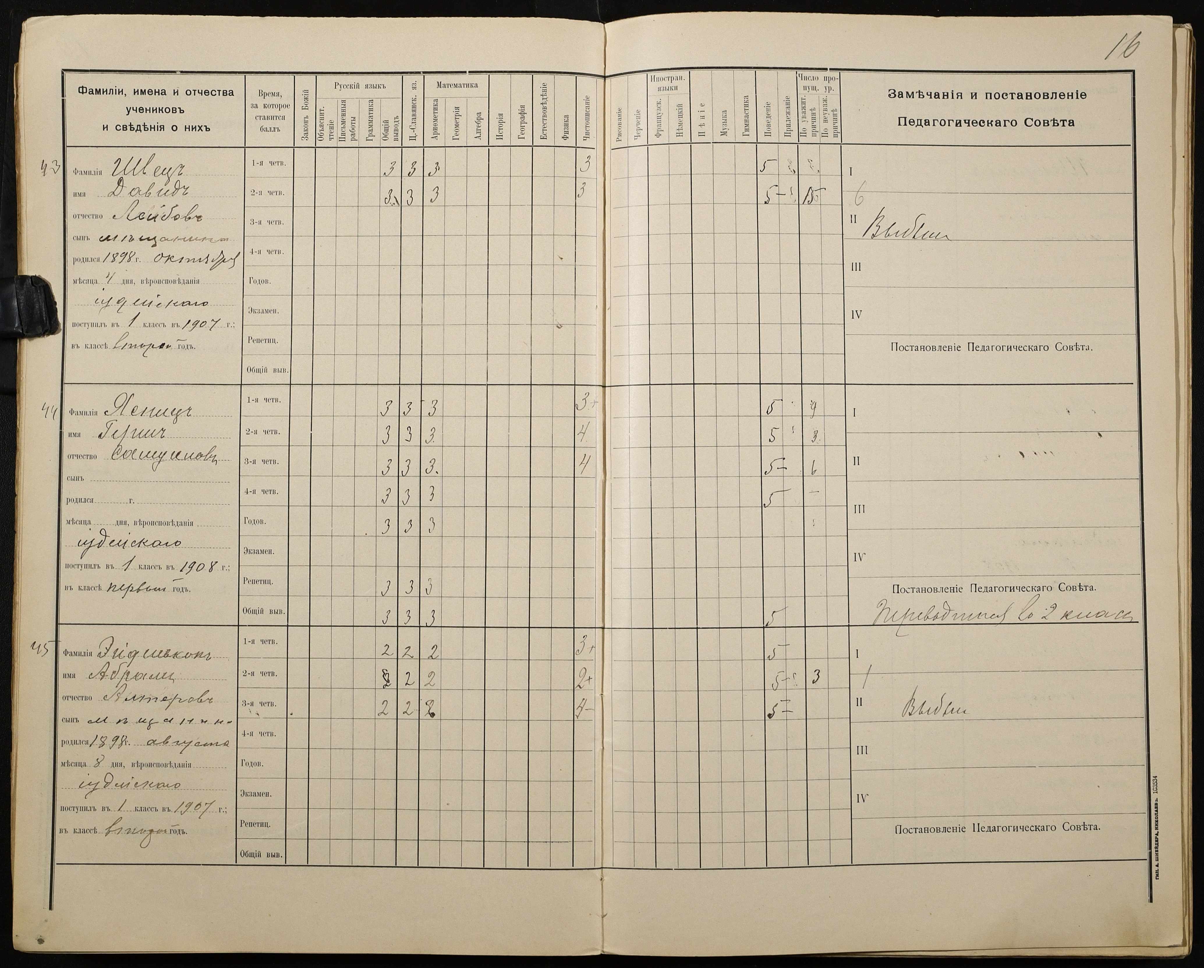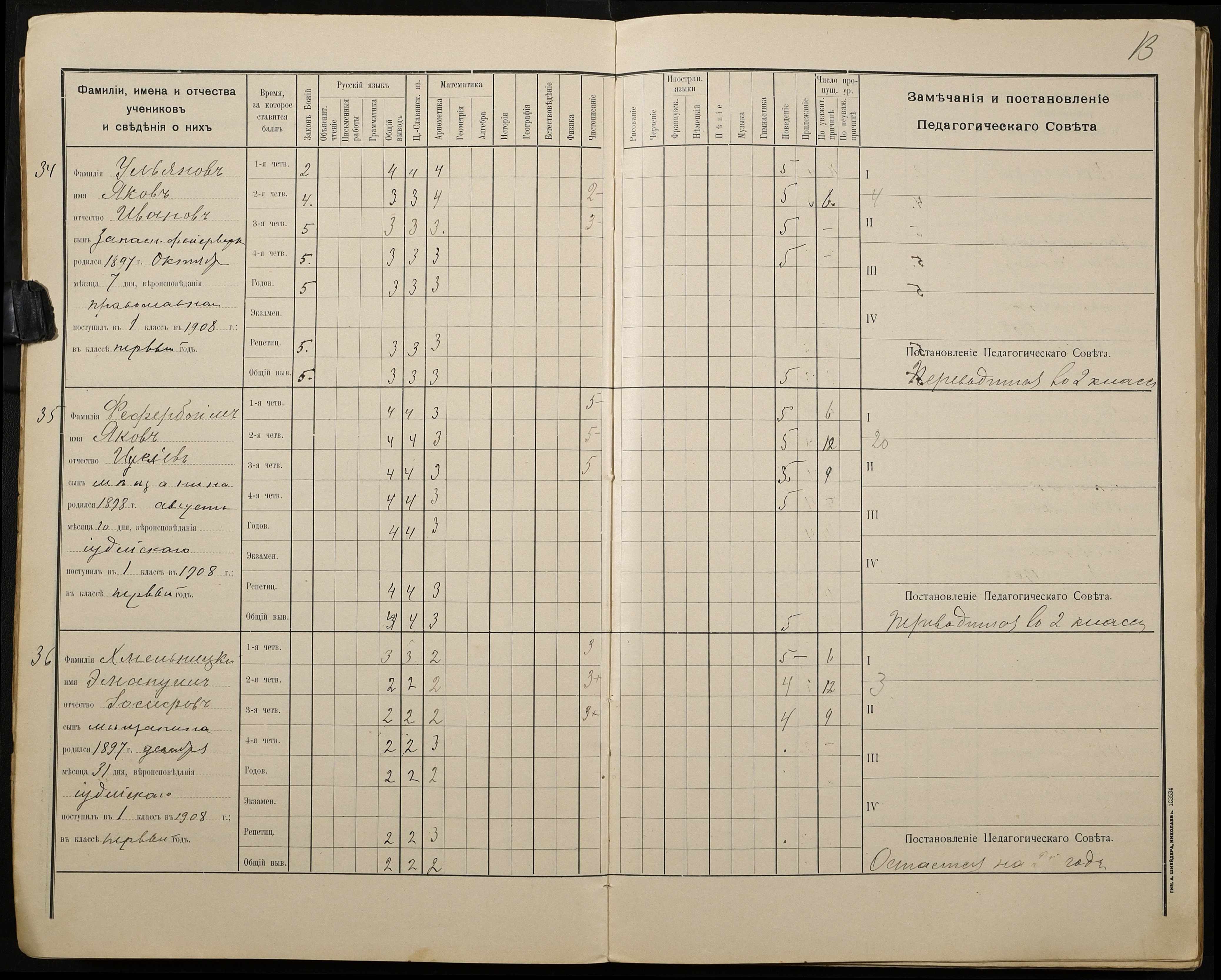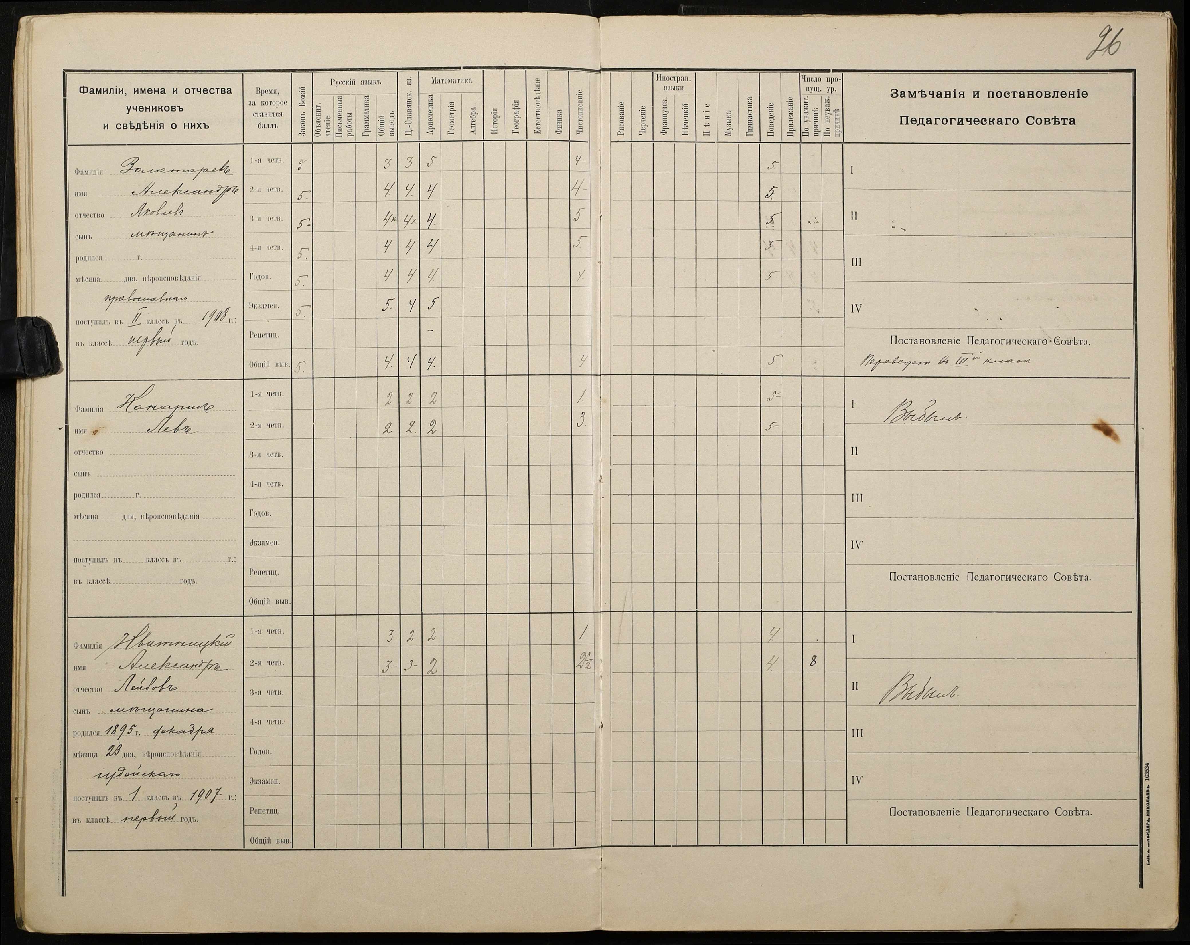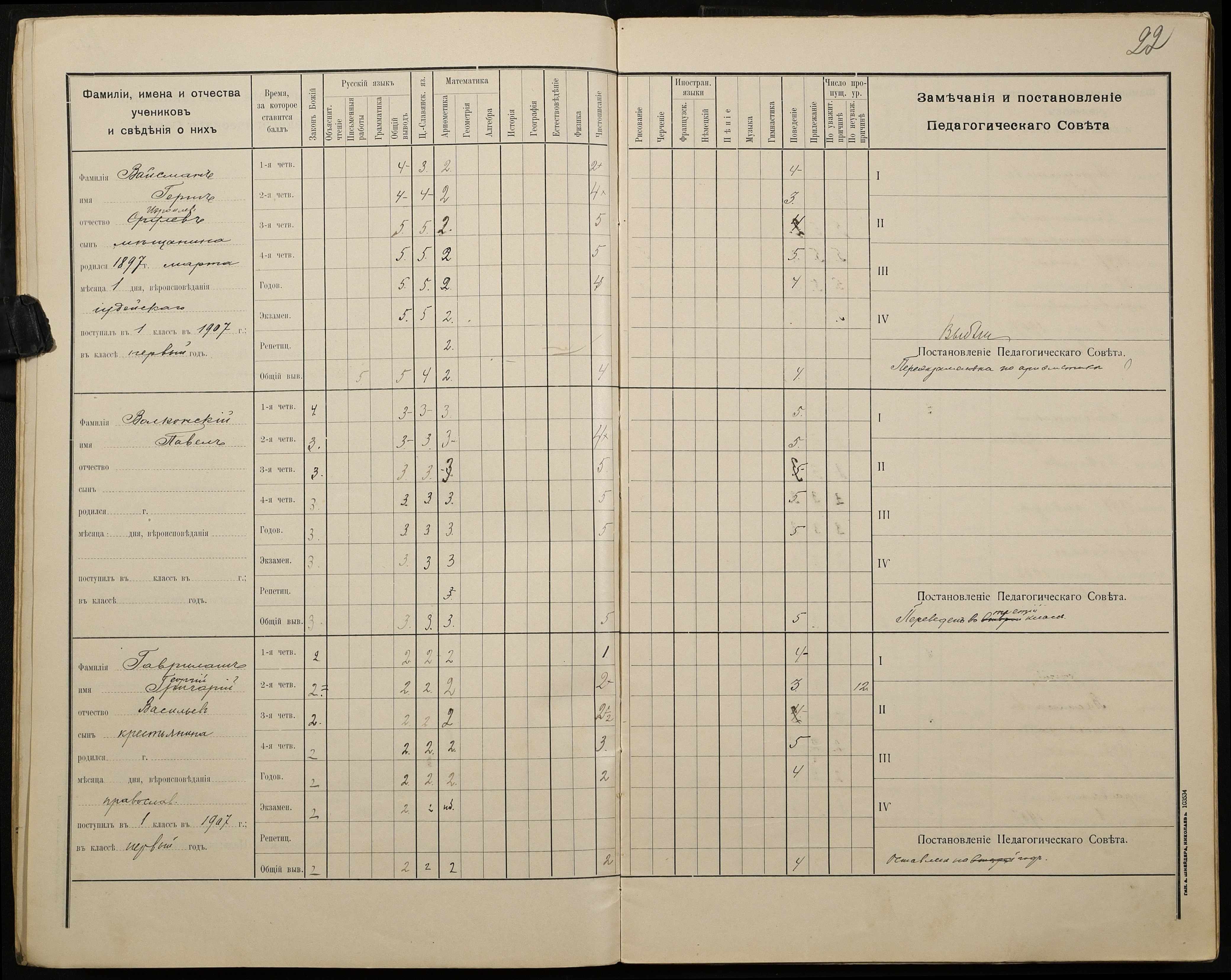 • • • • Справа № 428 “Відомості успішності і поведінки учнів першого класу за 1908-1909 навчальний рік”