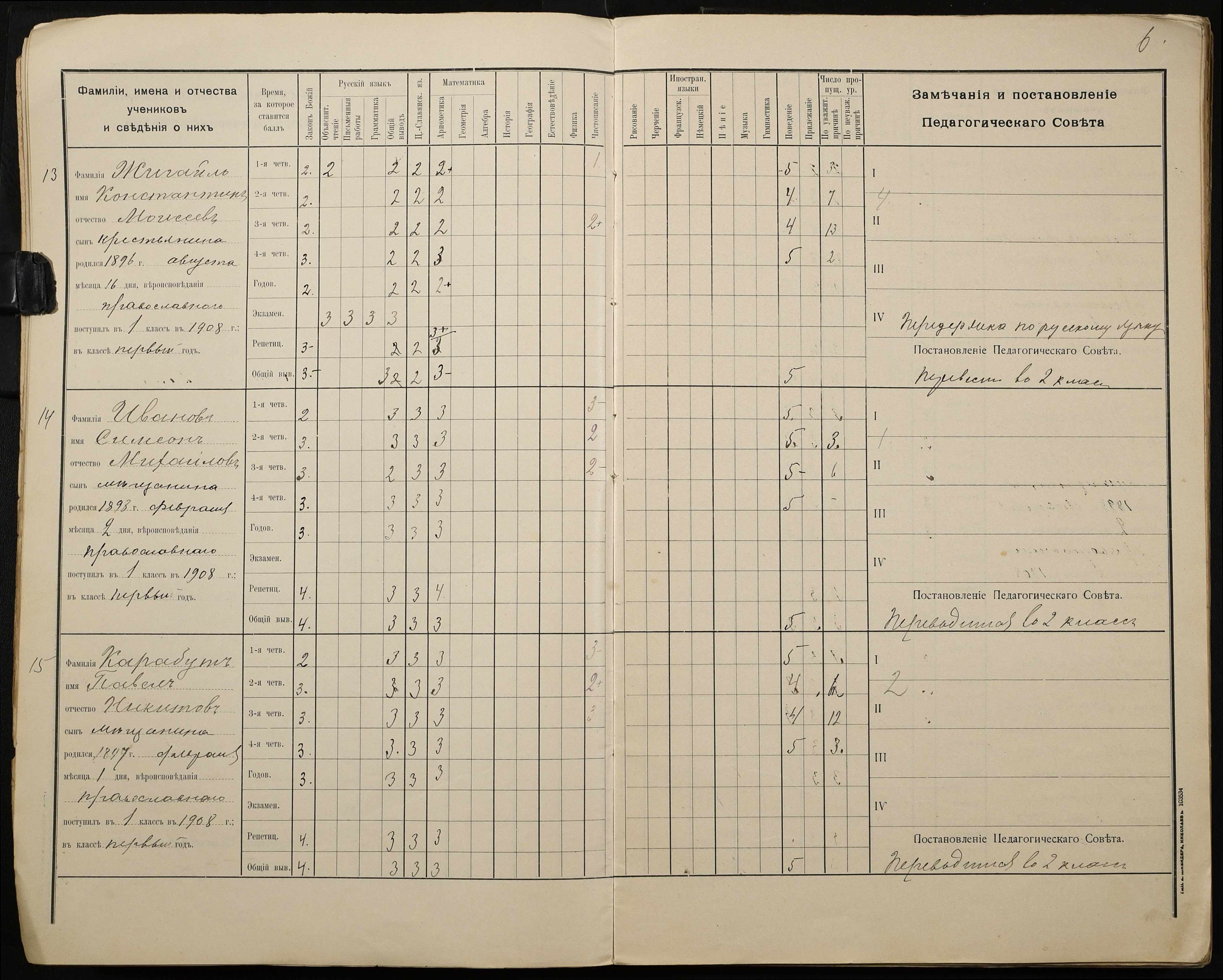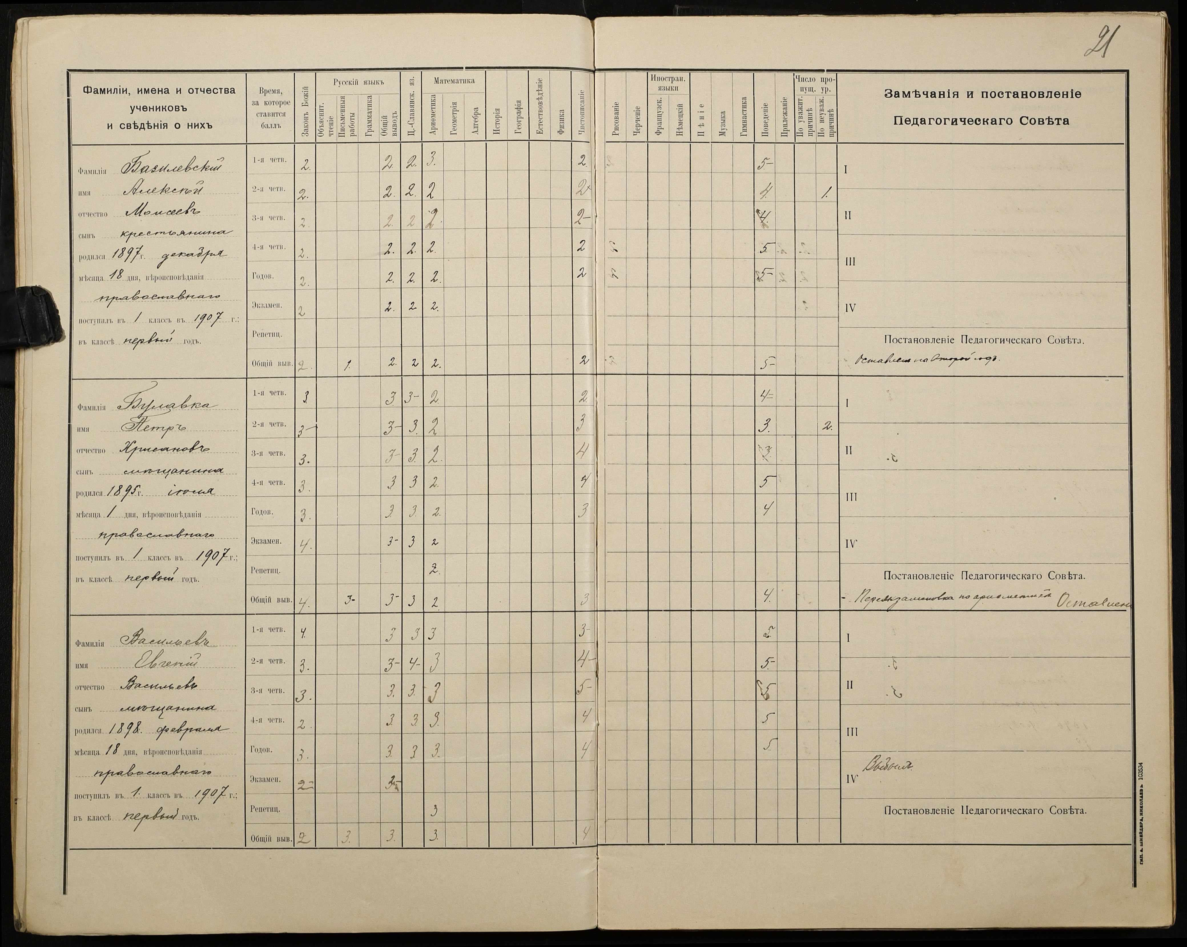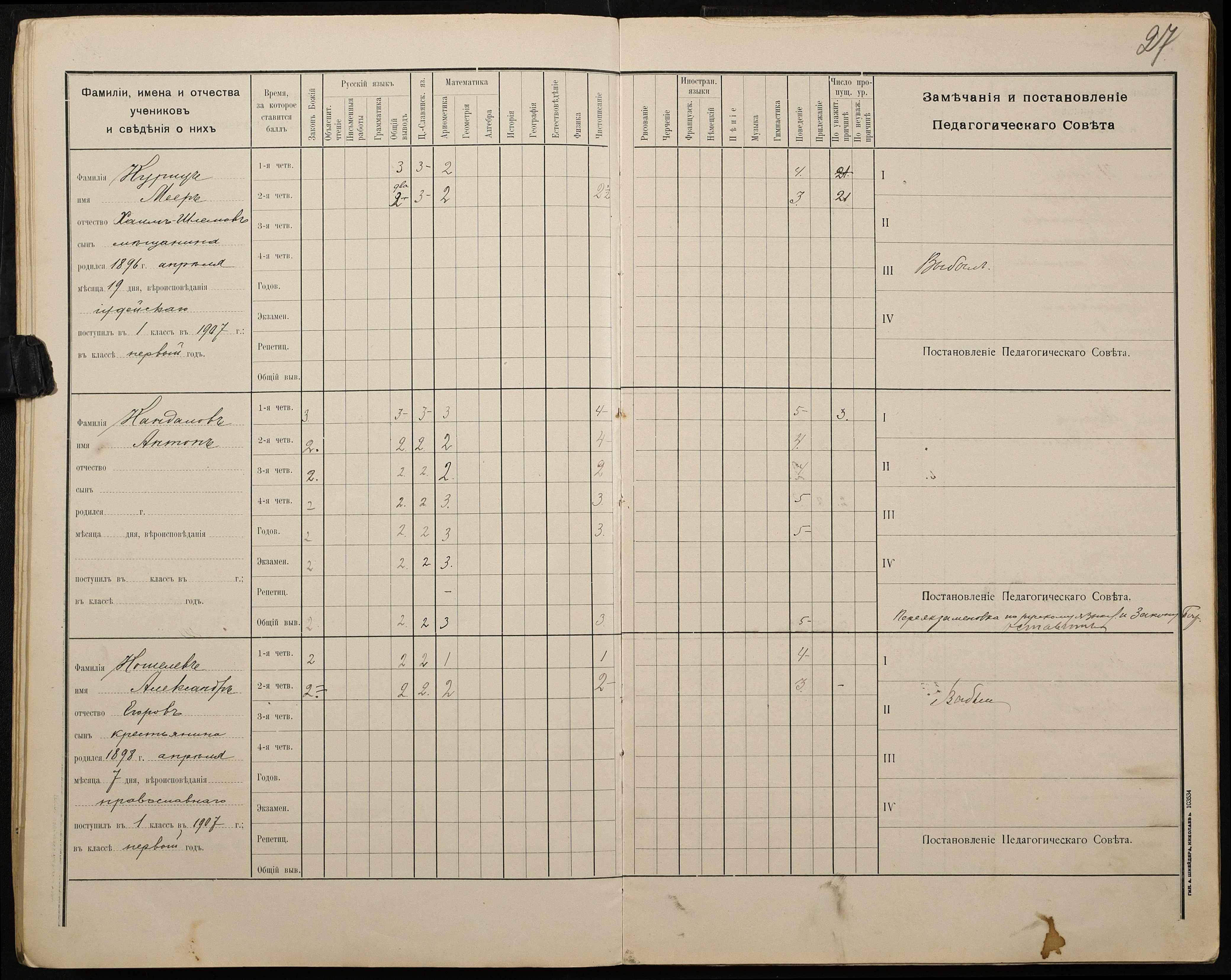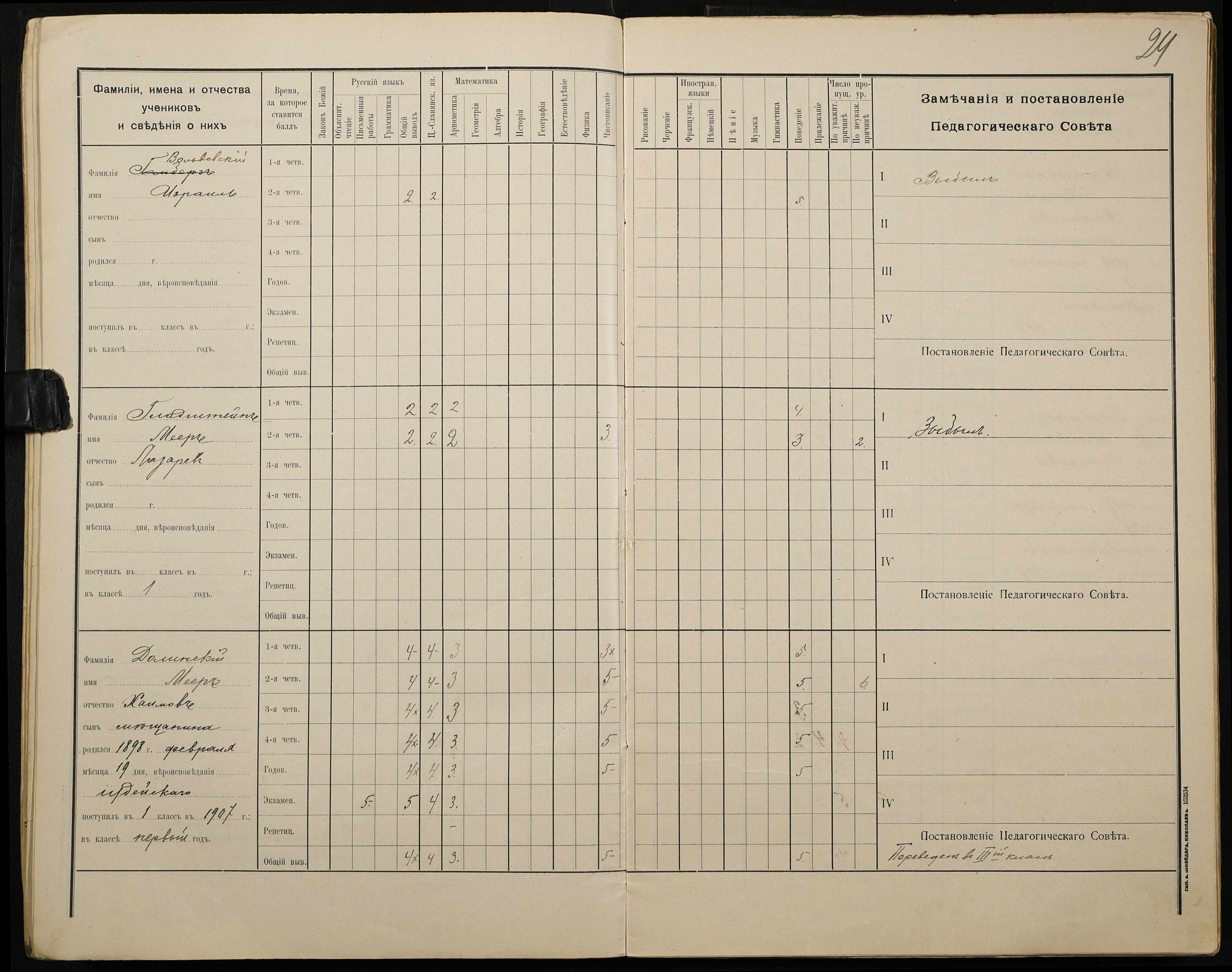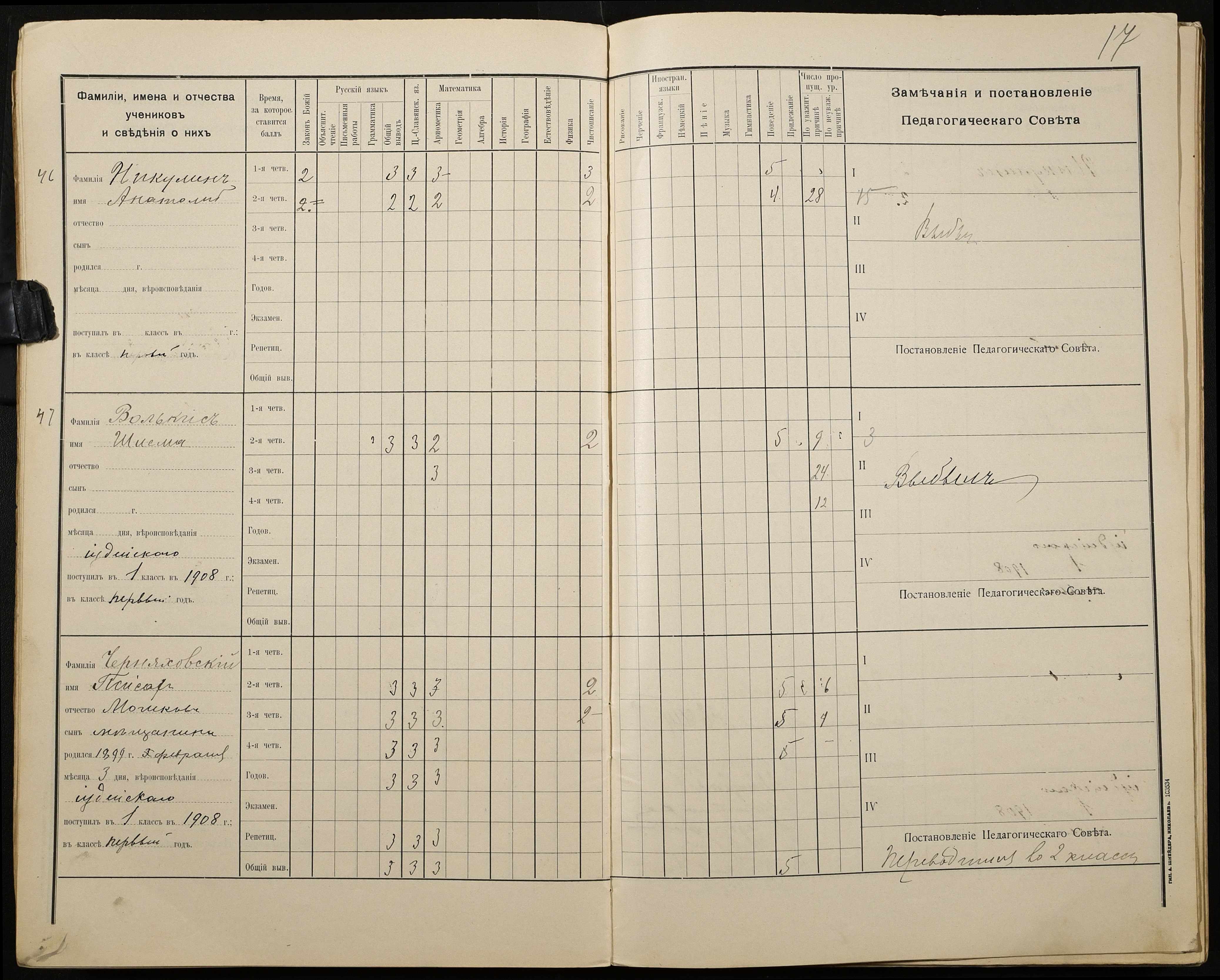 • • • • Справа № 428 “Відомості успішності і поведінки учнів першого класу за 1908-1909 навчальний рік”
