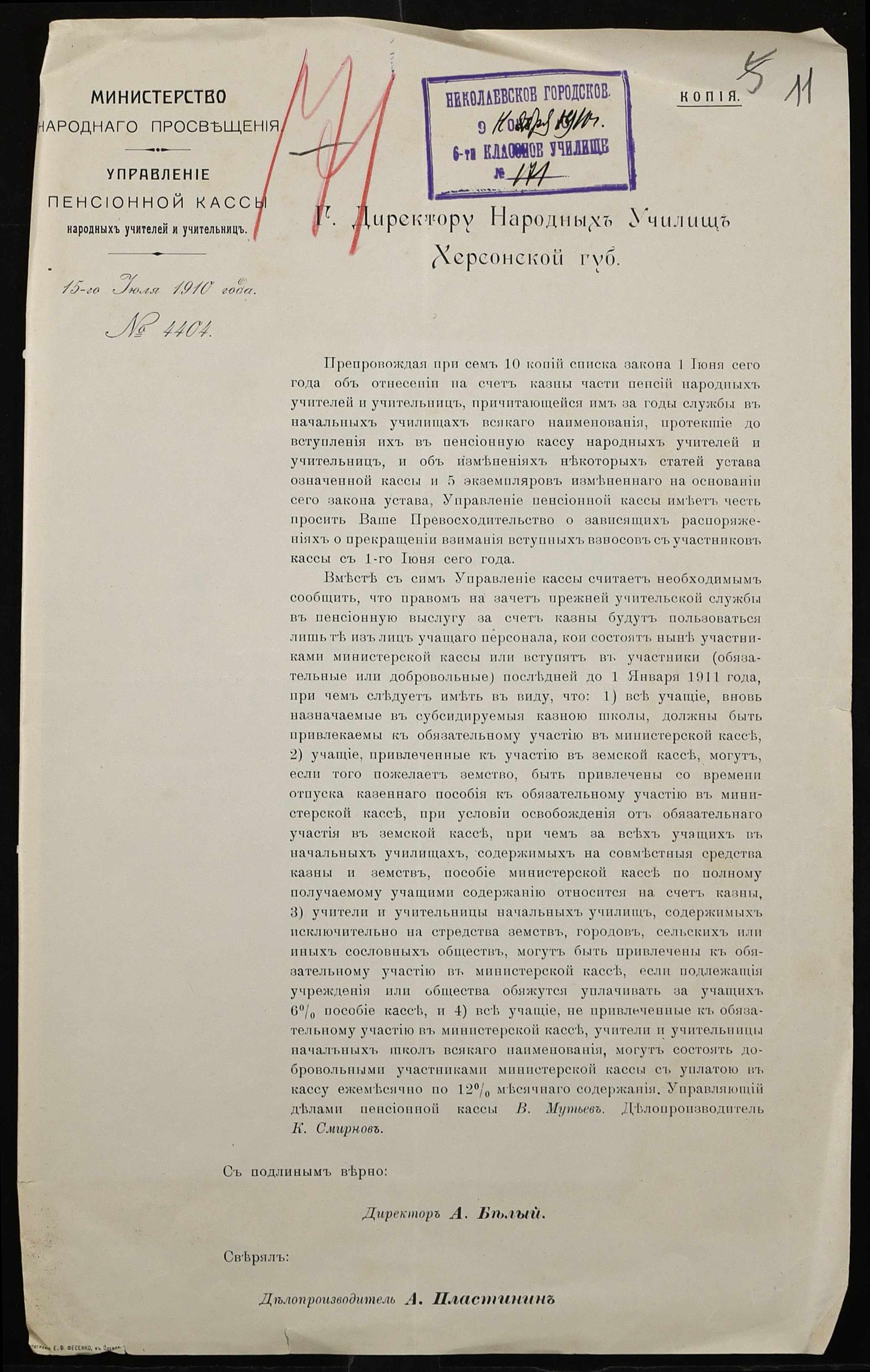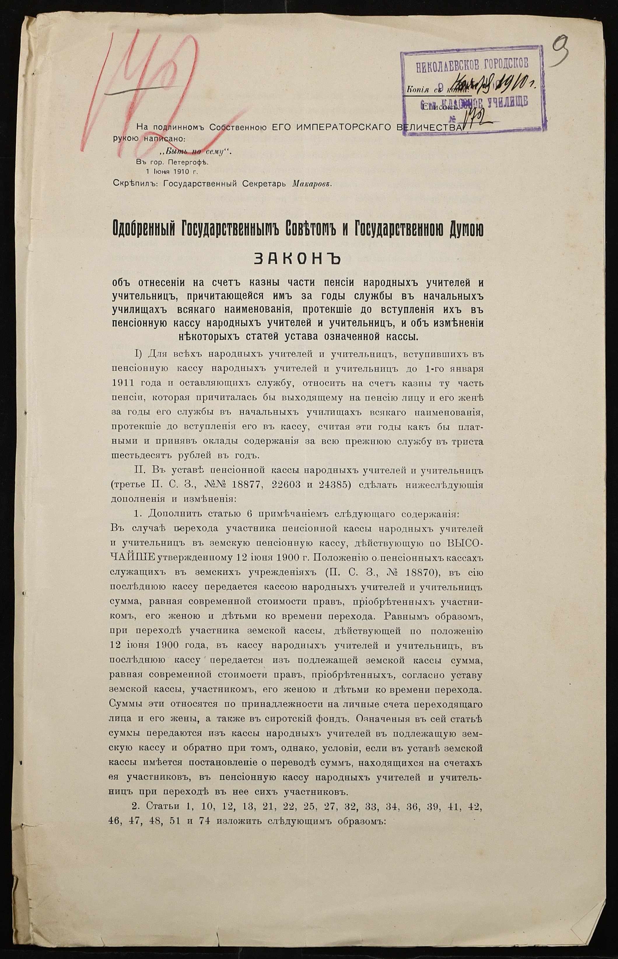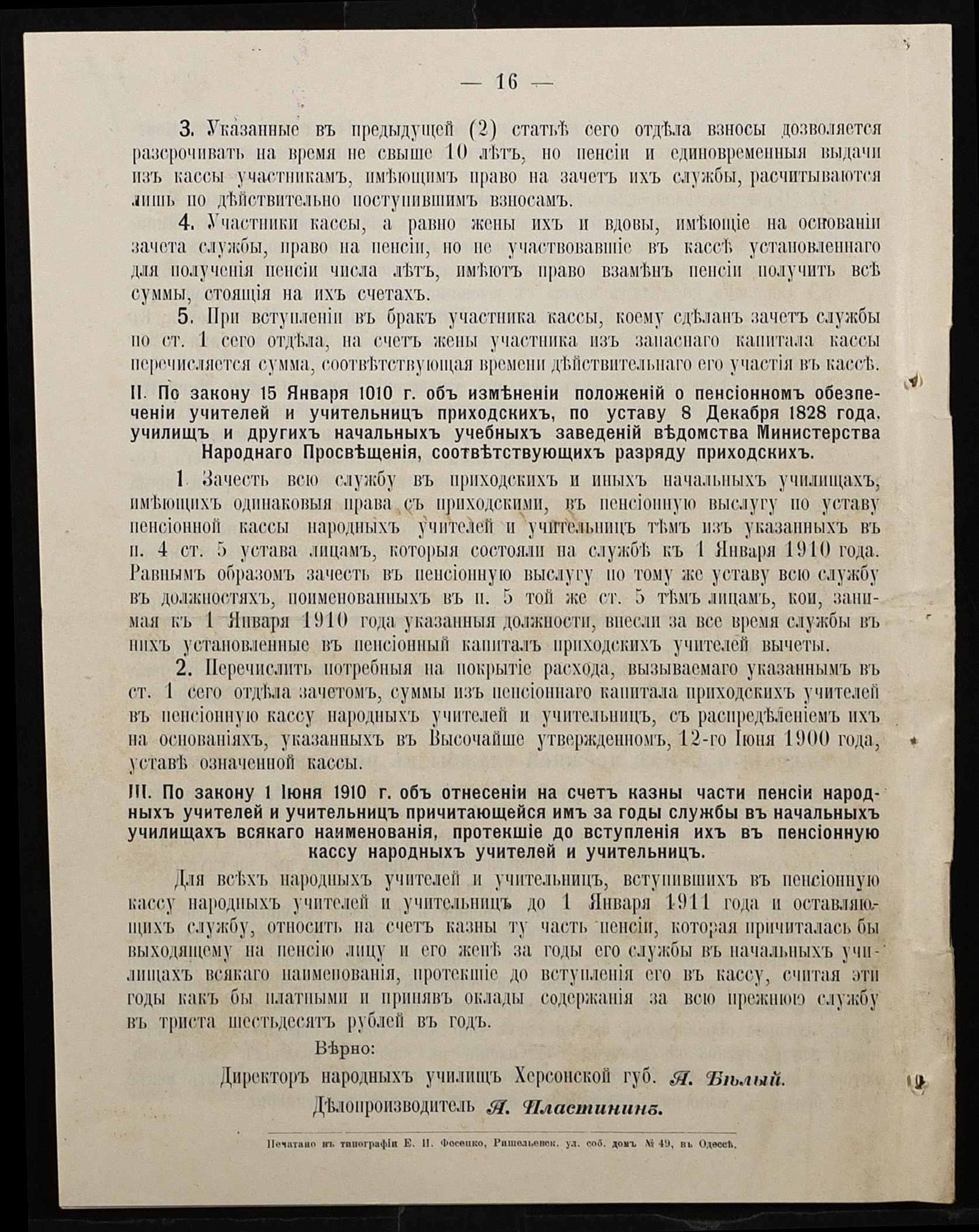 • • • • Справа № 431 “Устав пенсійної каси, закон про відрахування в казну частини платні вчителів (копії)”