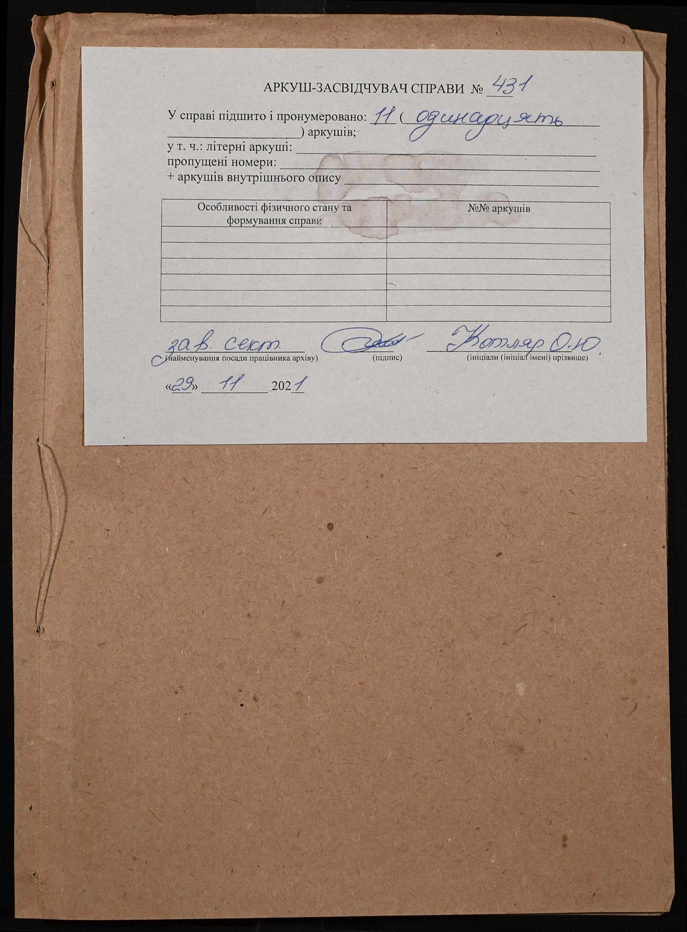Фонд 131 / Опис 1 / Справа 431