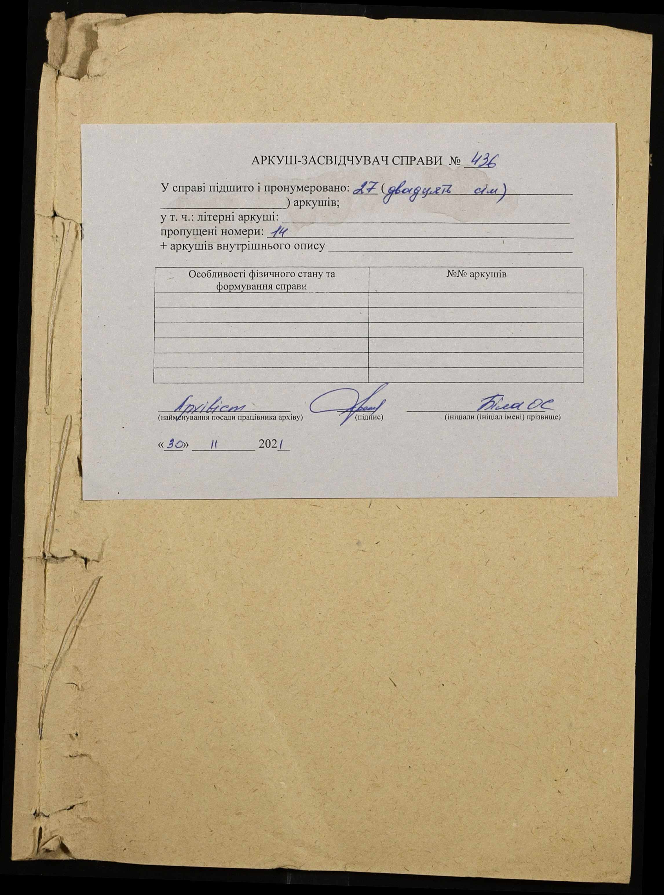 ◦ ◦ ◦ Опис № 1 справ постійного зберігання за 1847-1852, 1858, 1868-1869, 1871-1919, 1922 роки