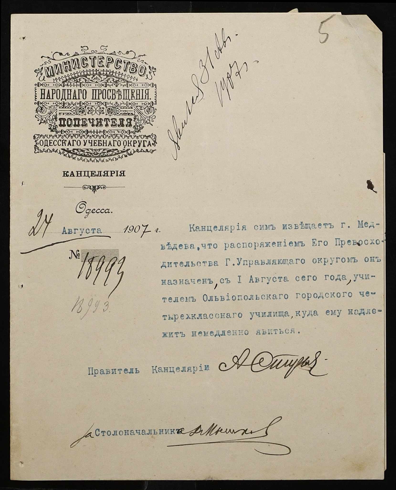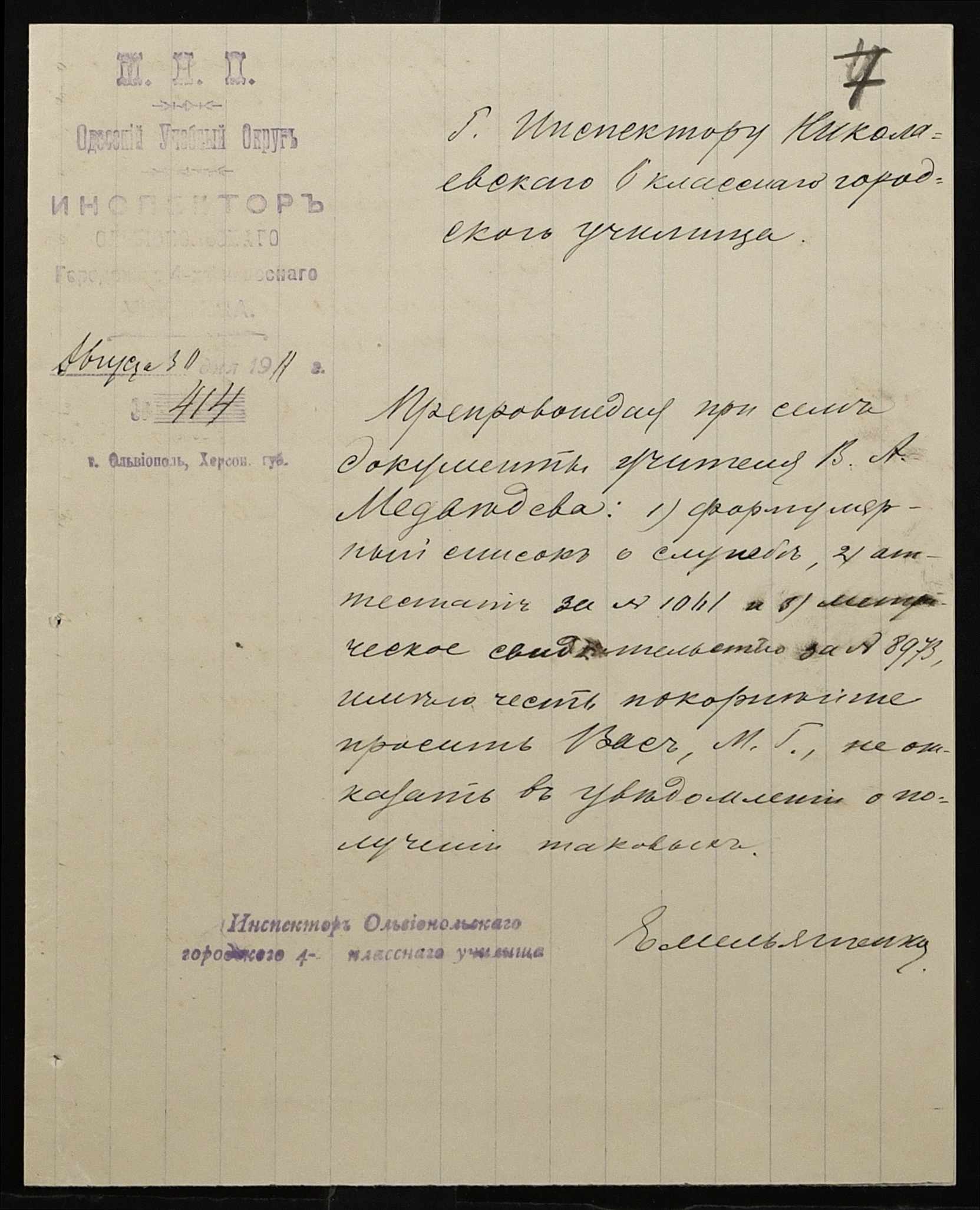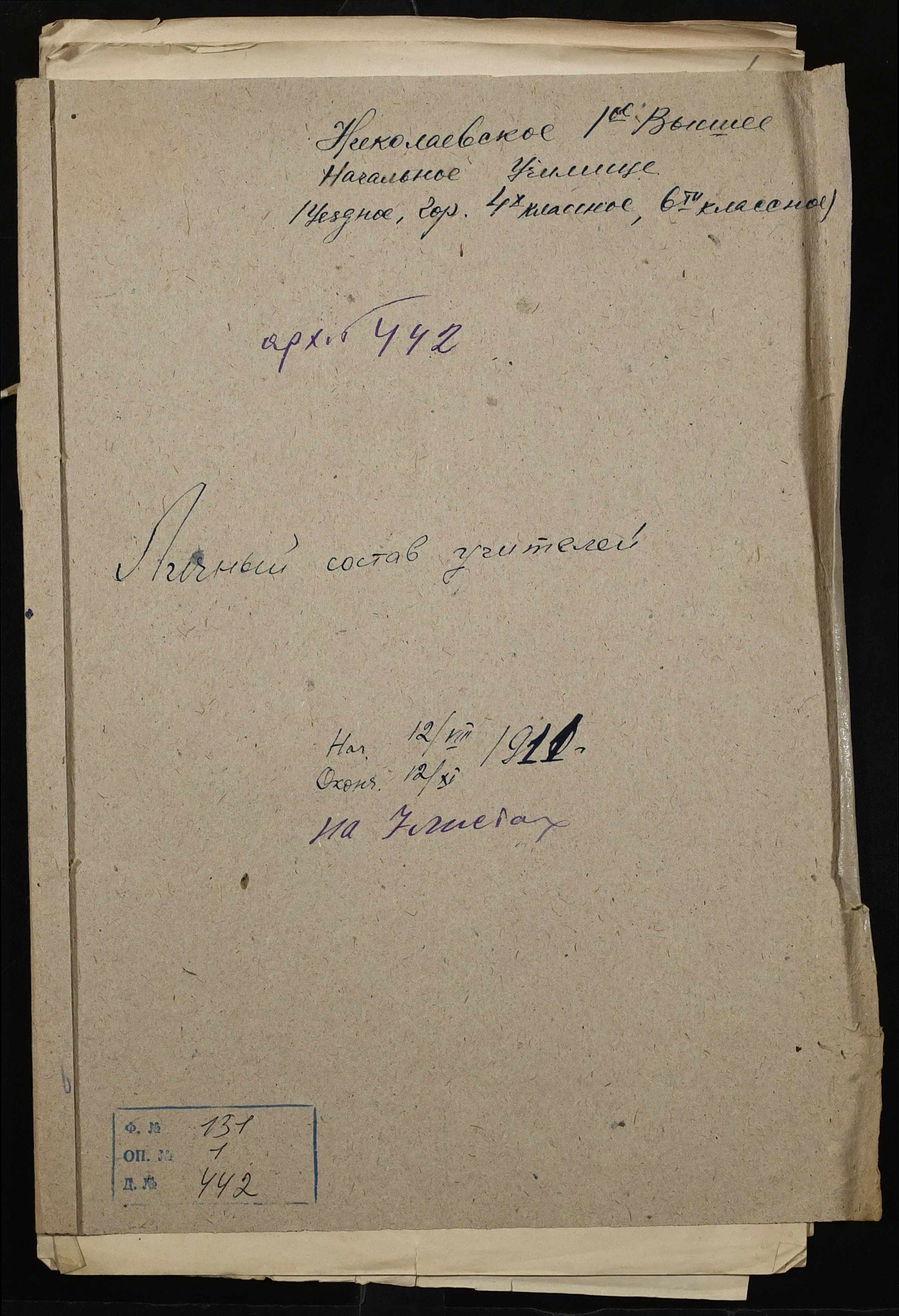 • • • • Справа № 442 “Листування про проходження служби чиновниками училища”