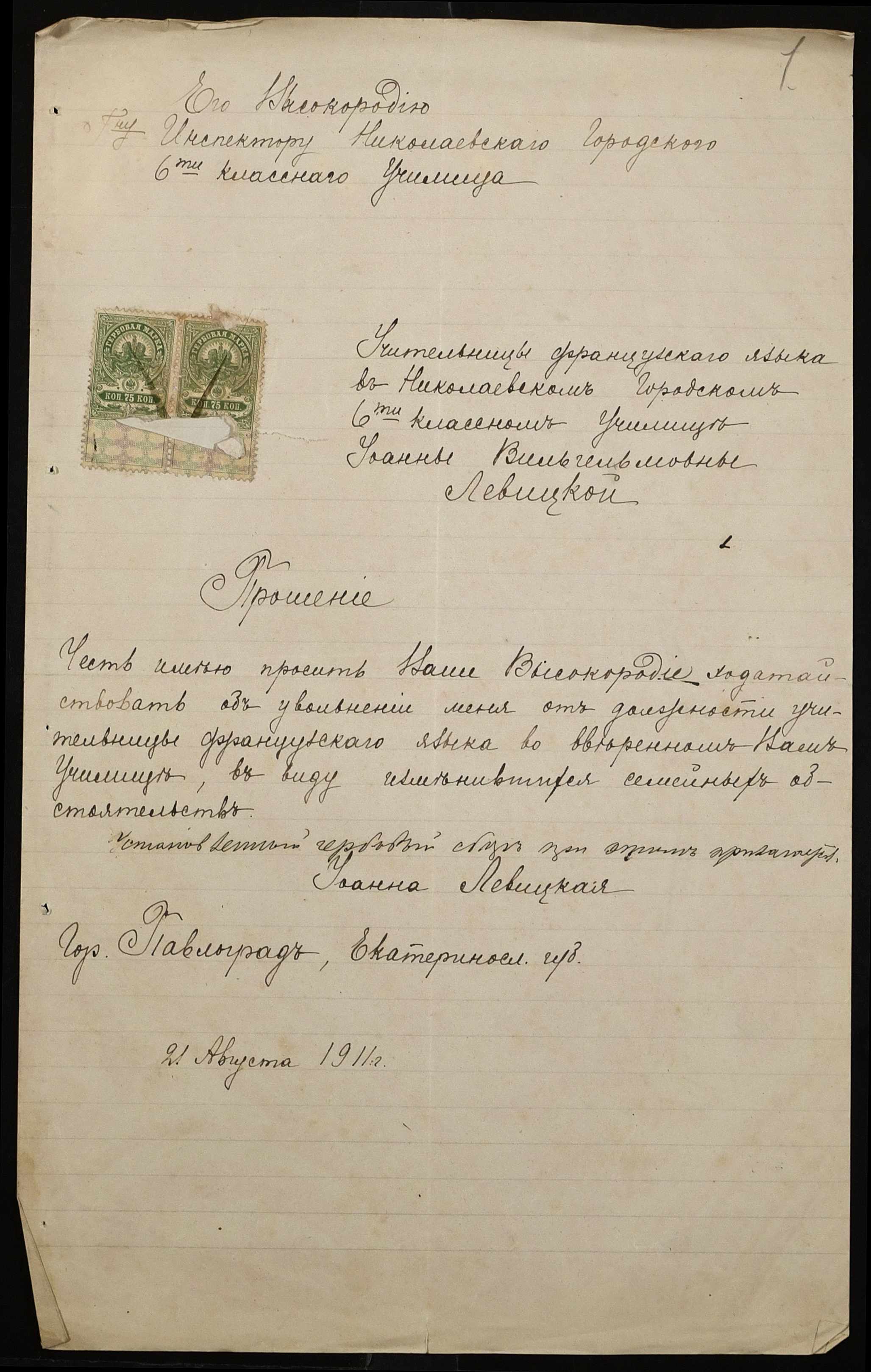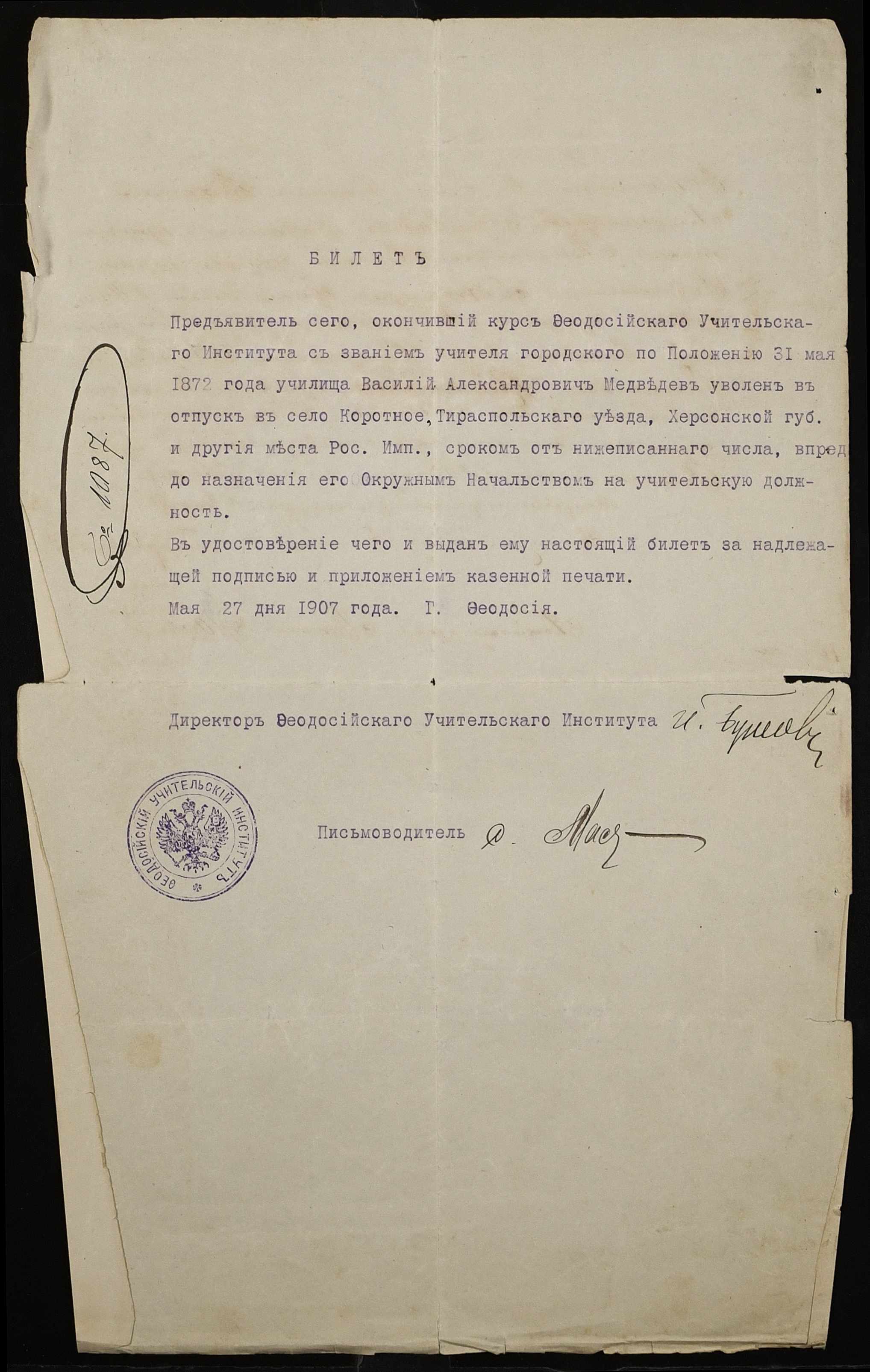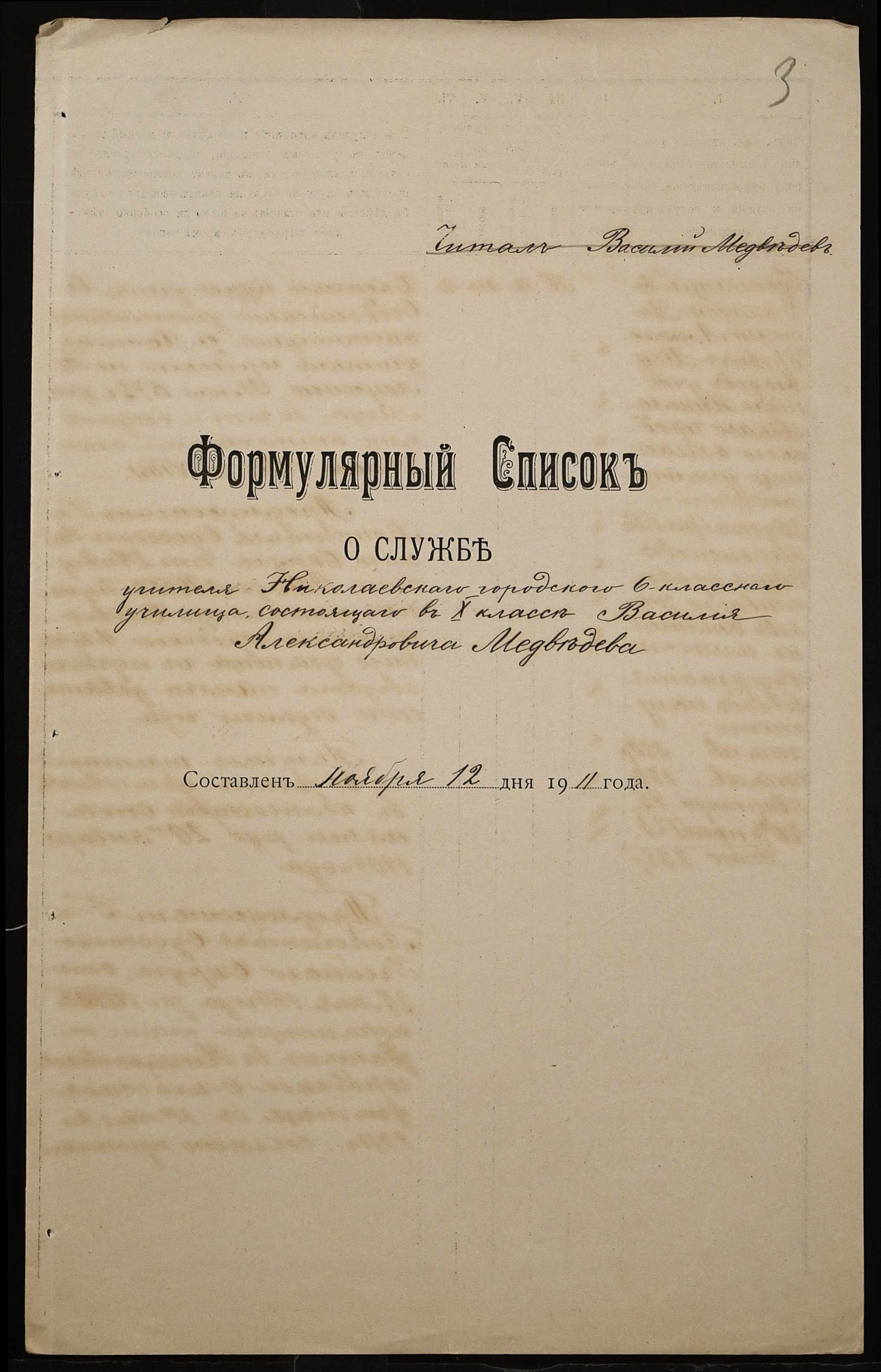 • • • • Справа № 442 “Листування про проходження служби чиновниками училища”