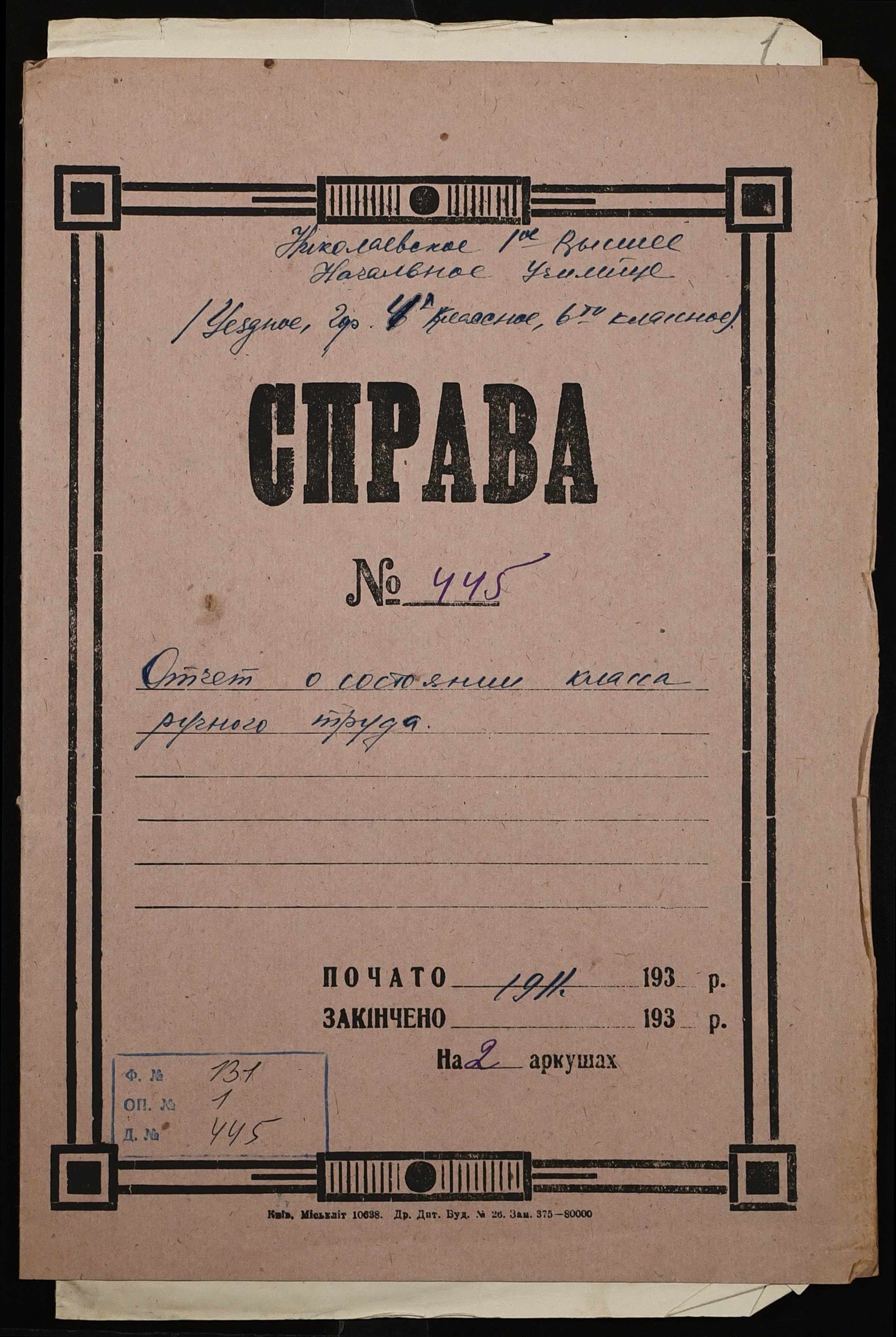 Фонд 131 / Опис 1 / Справа 445