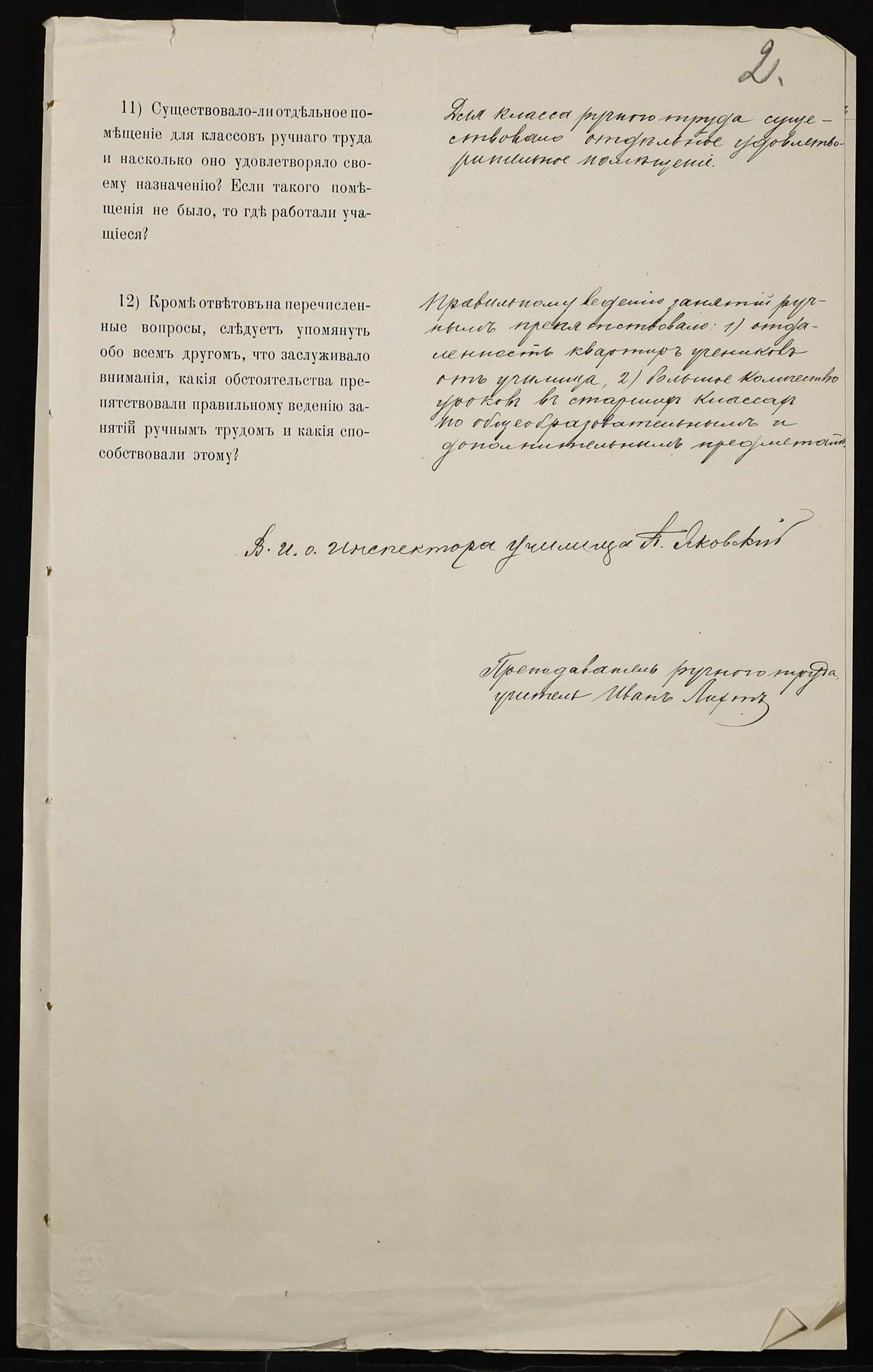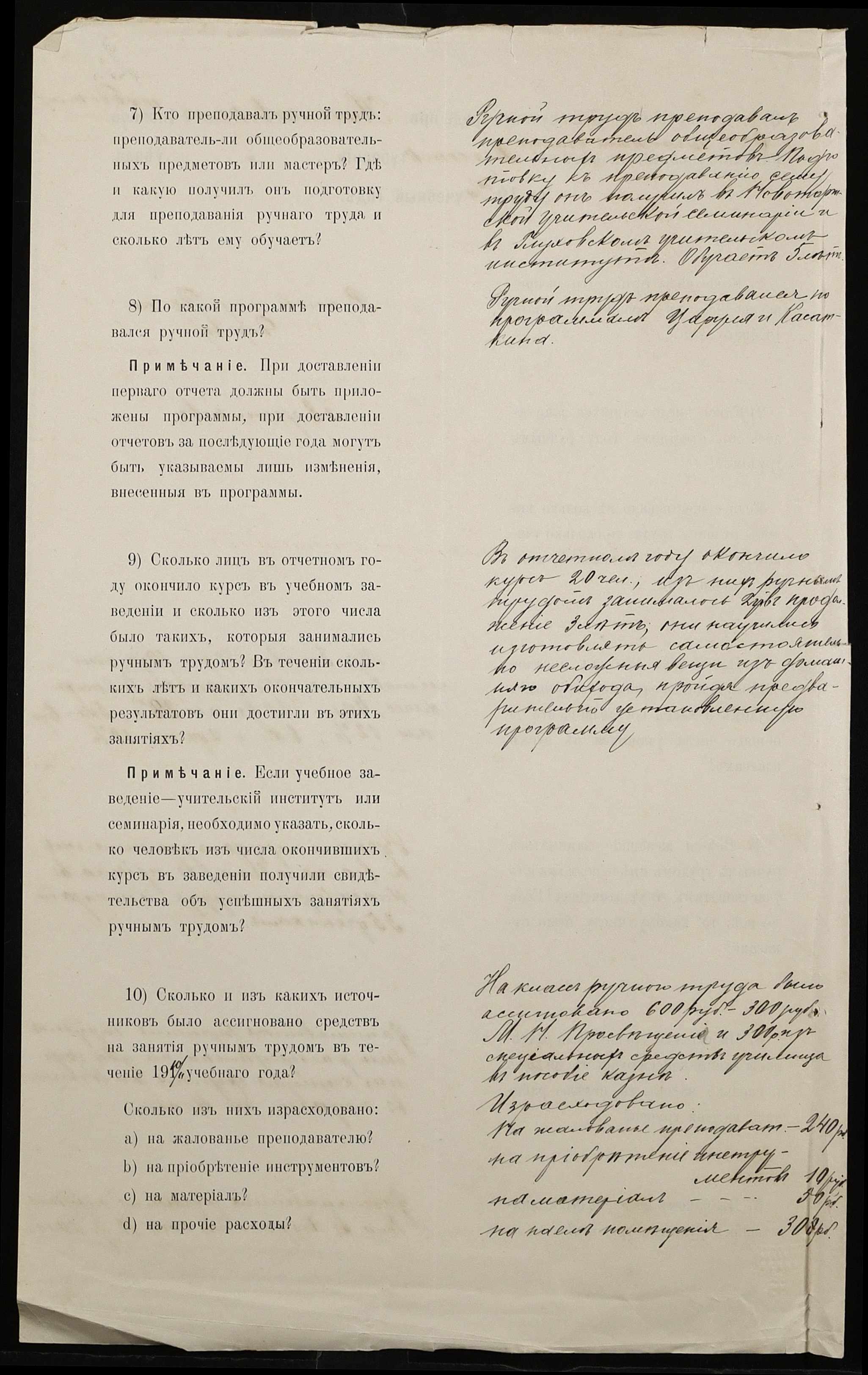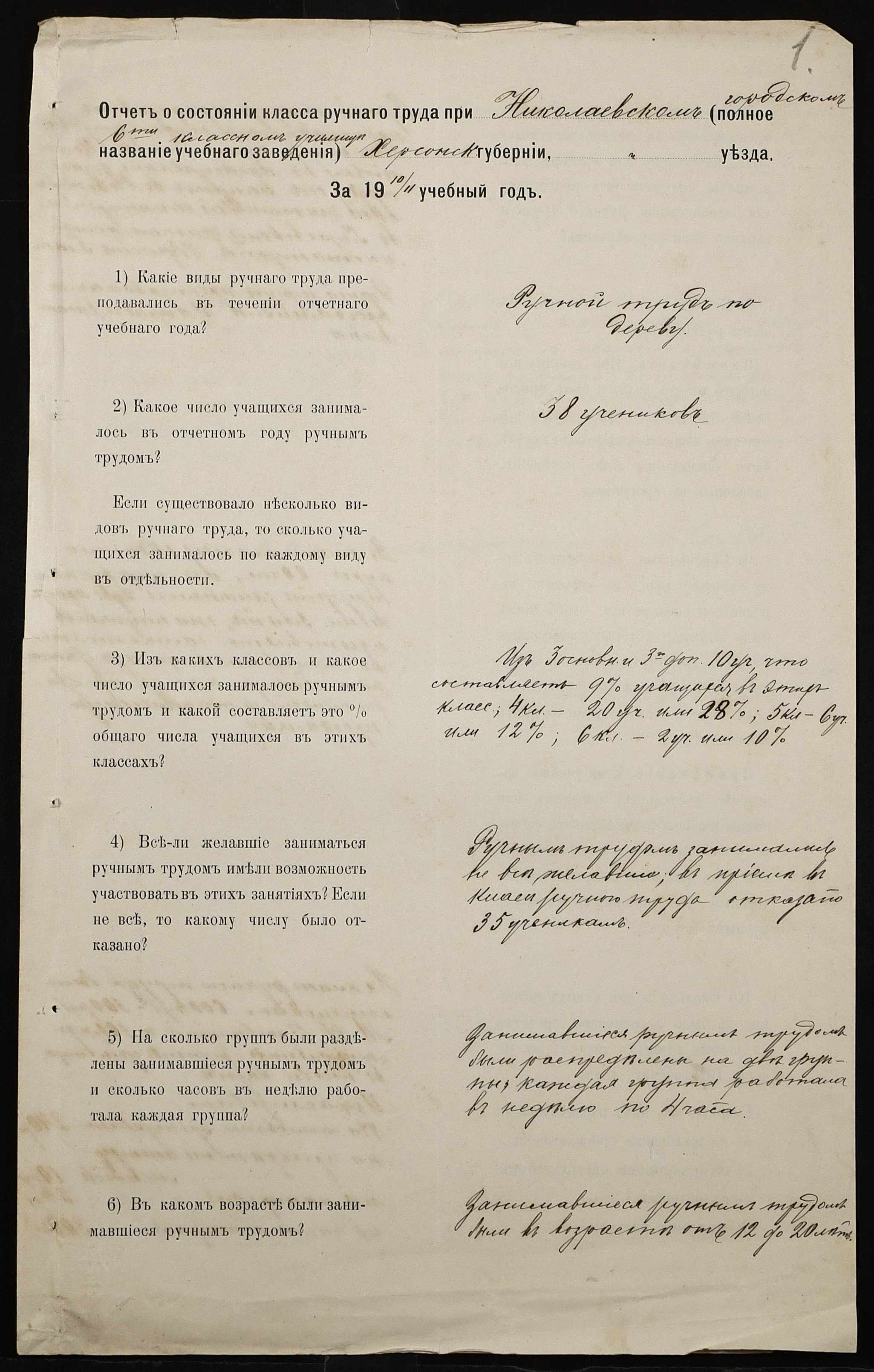 • • • • Справа № 445 “Звіт про стан класу ручної праці при училищі за 1911 рік”