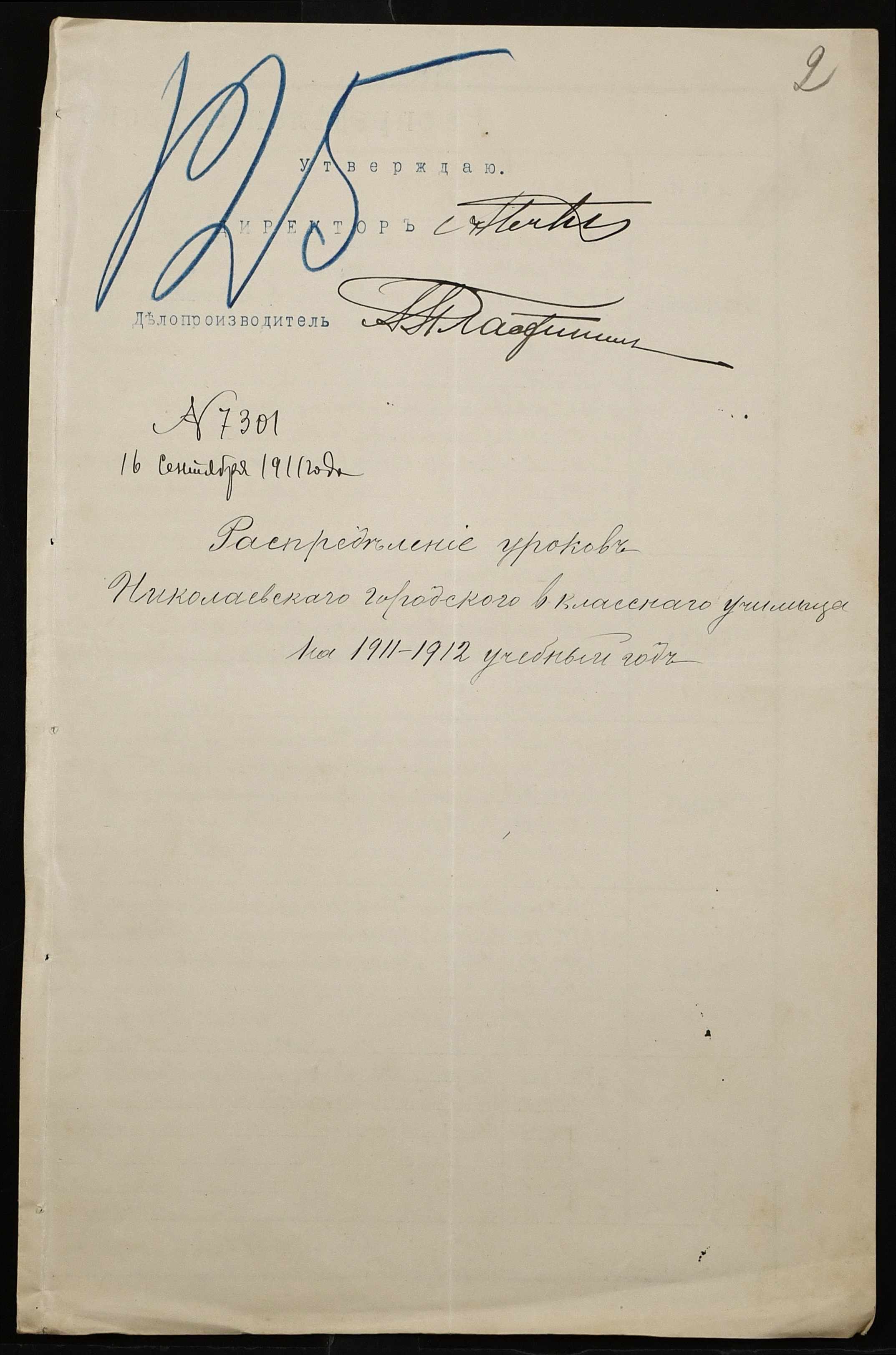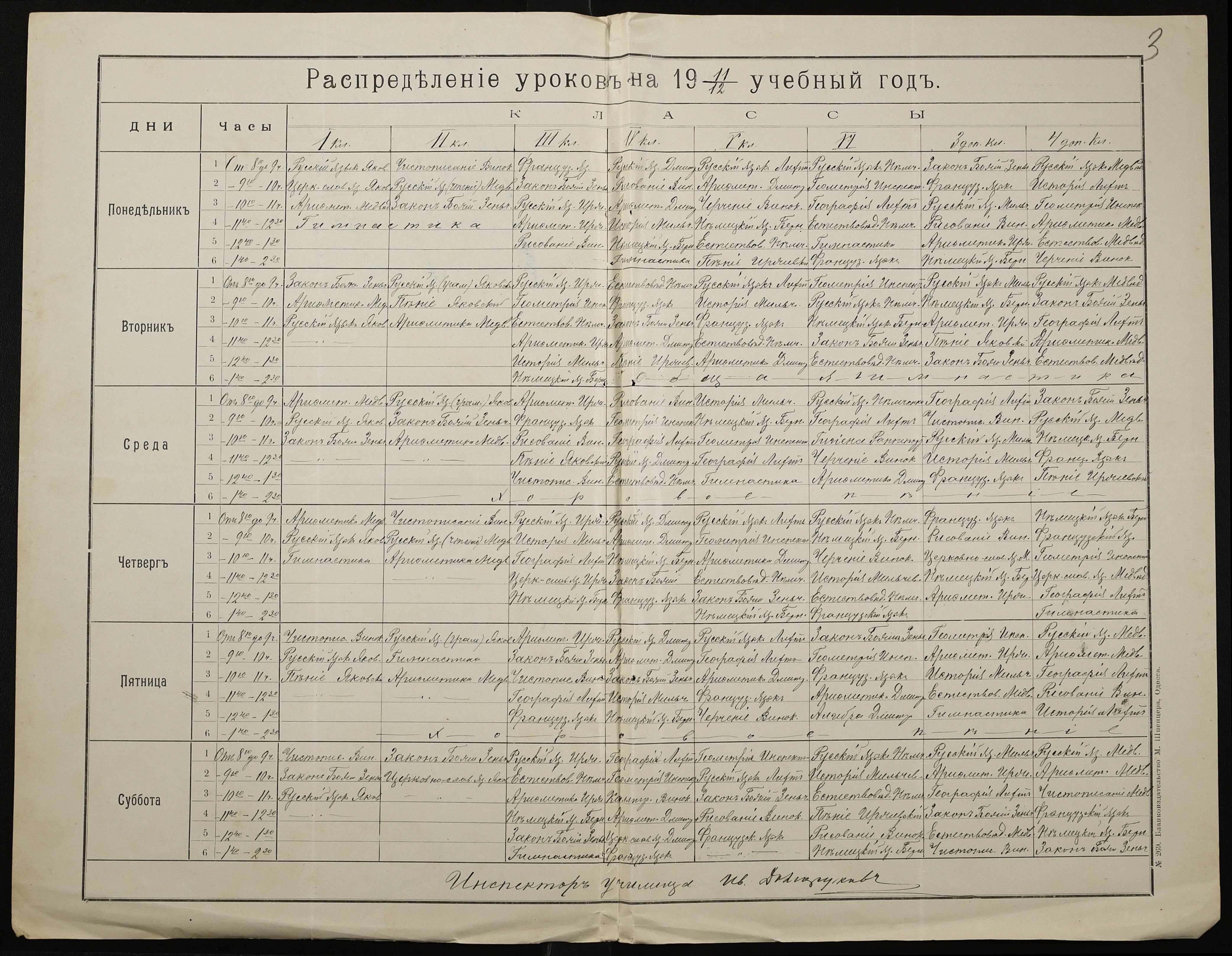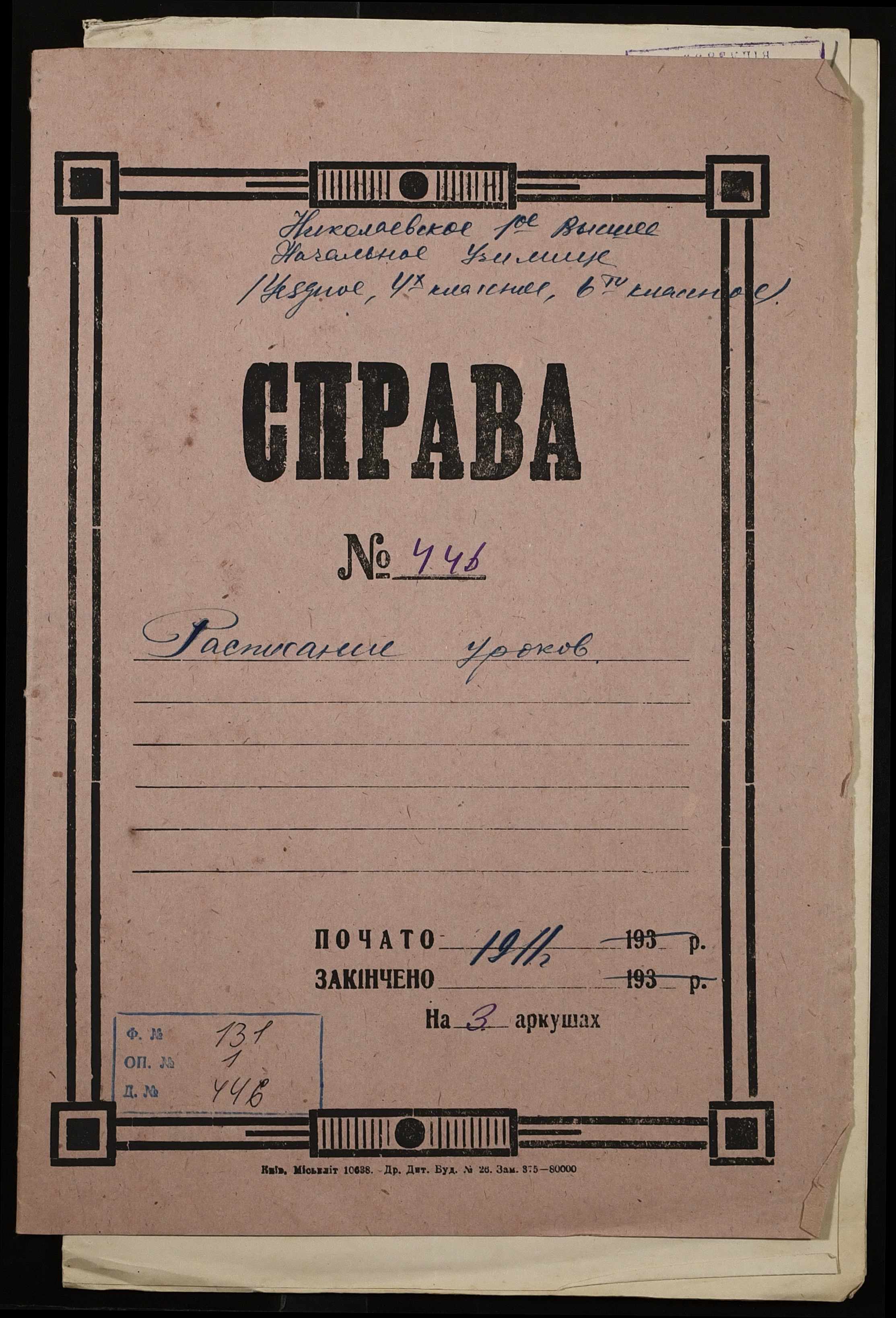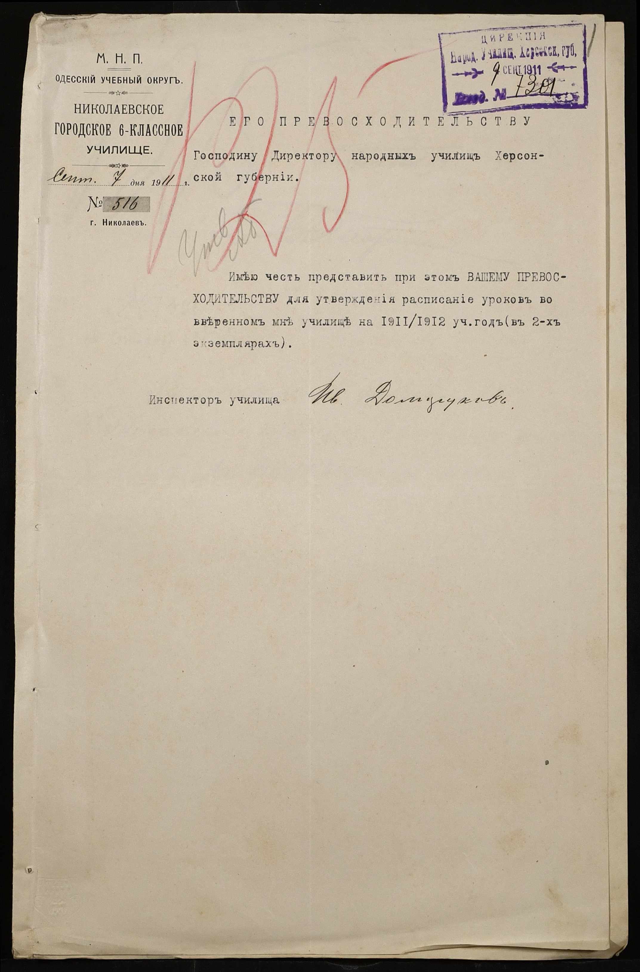• • • • Справа № 446 “Розклад уроків в училищі за 1911-1912 навчальний рік”