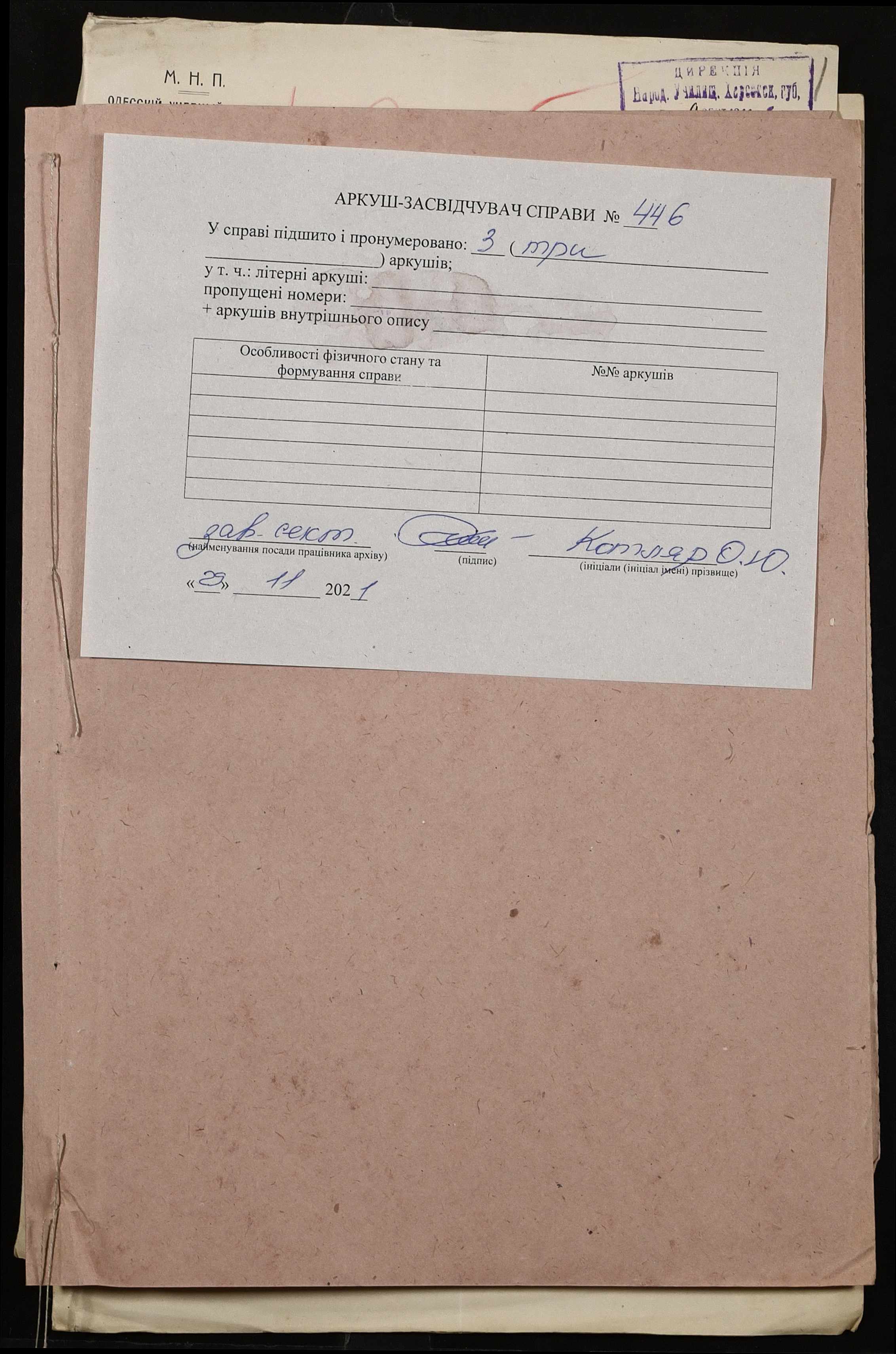 ◦ ◦ ◦ Опис № 1 справ постійного зберігання за 1847-1852, 1858, 1868-1869, 1871-1919, 1922 роки