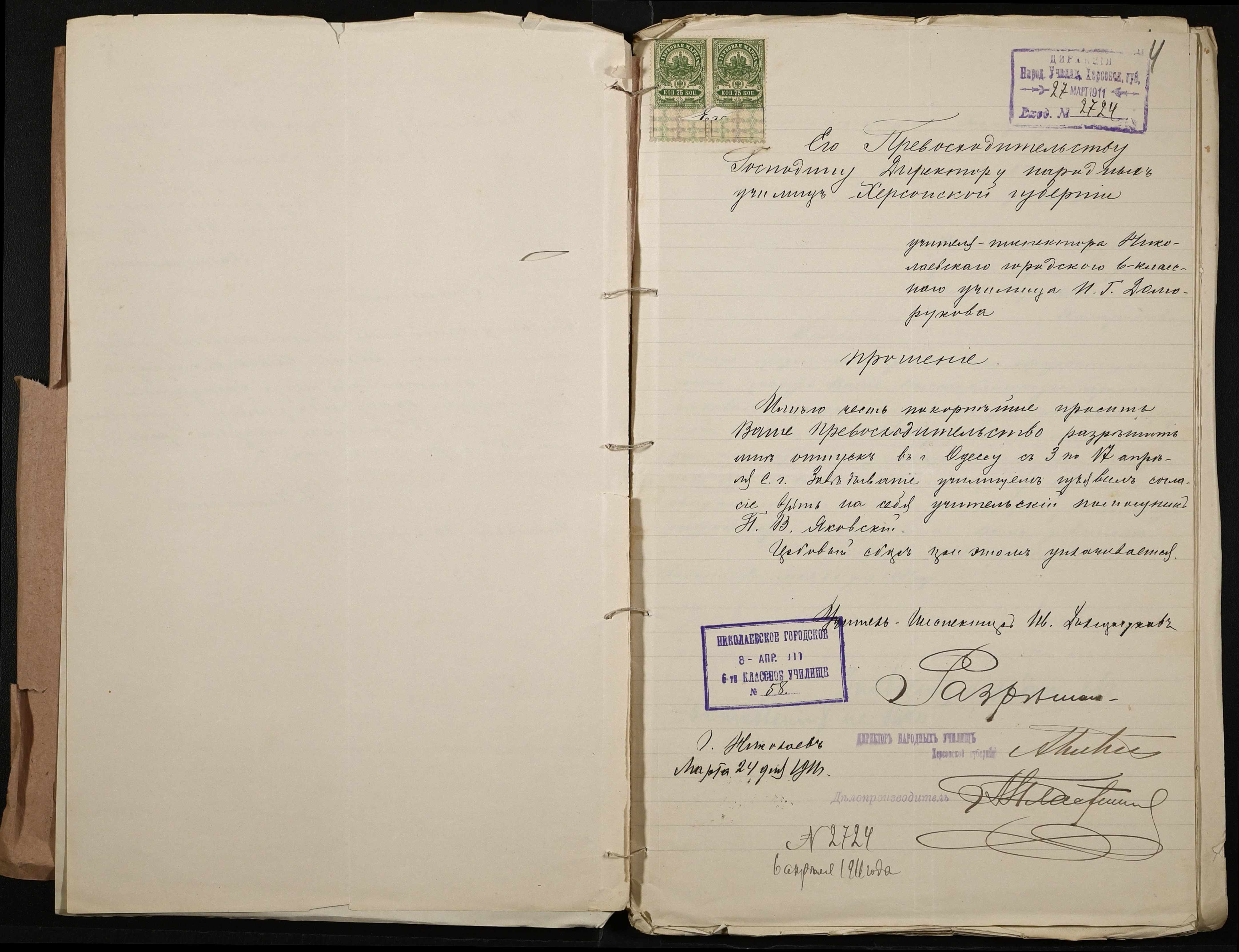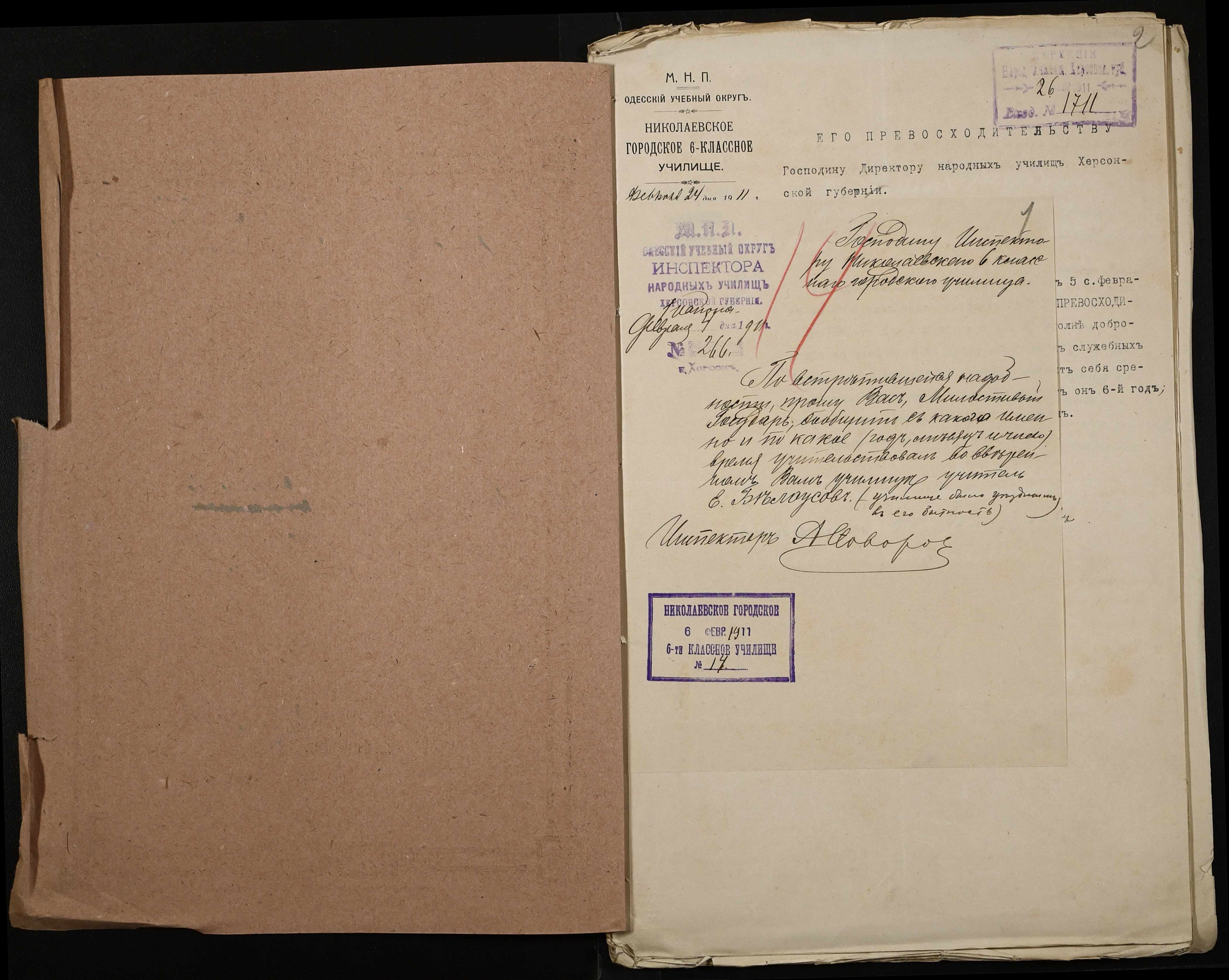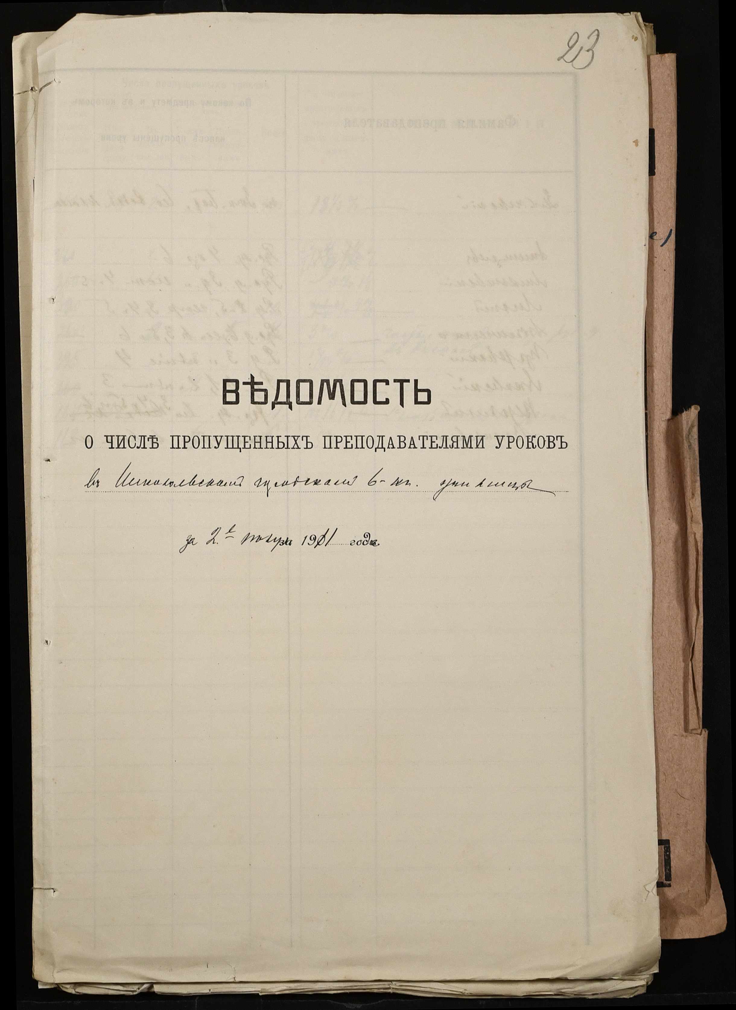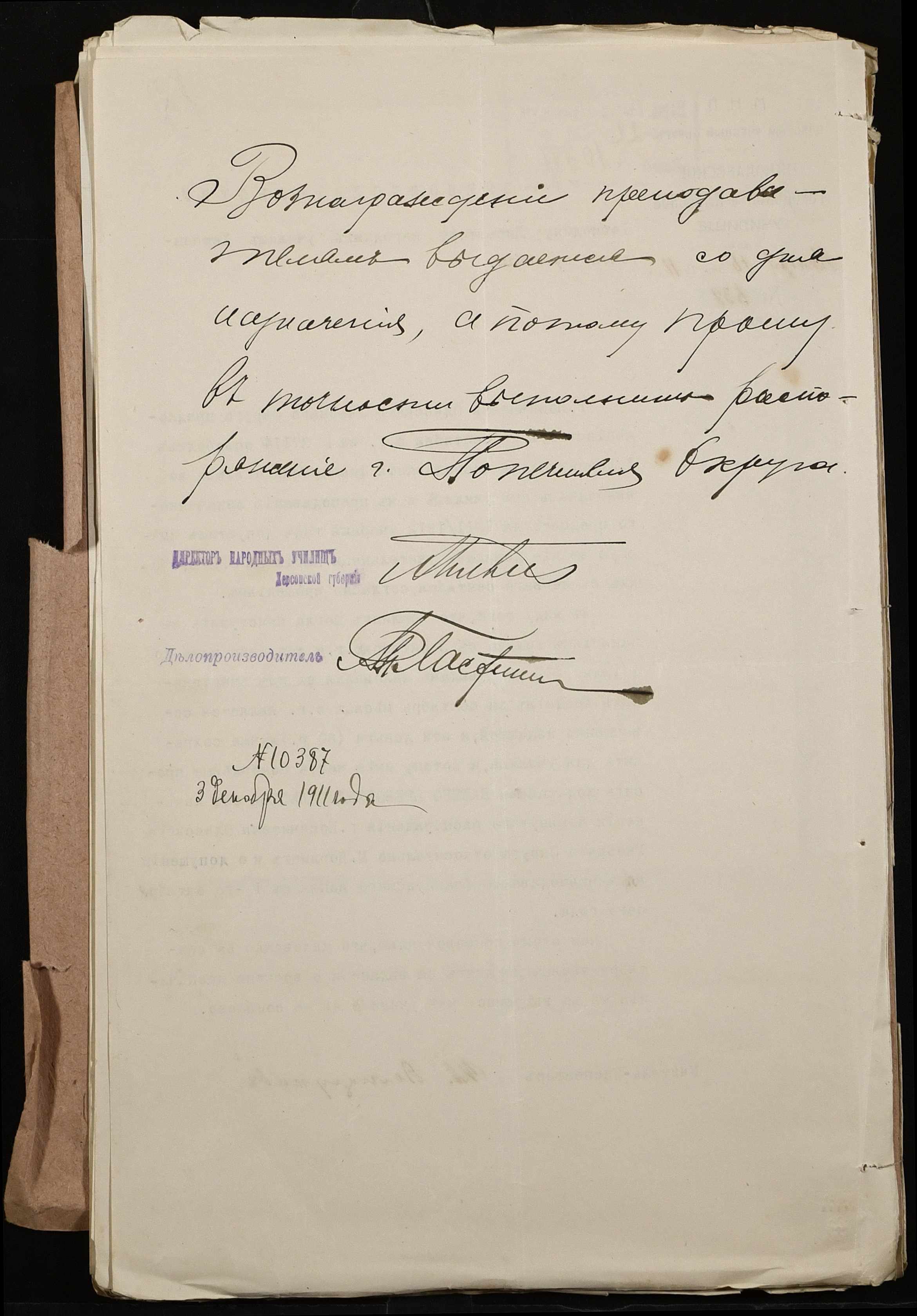 • • • • Справа № 447 “Відомості обліку уроків, на яких були відсутні викладачі, за II півріччя 1910-1911 навчальний рік, прохання викладачів про надання відпусток”