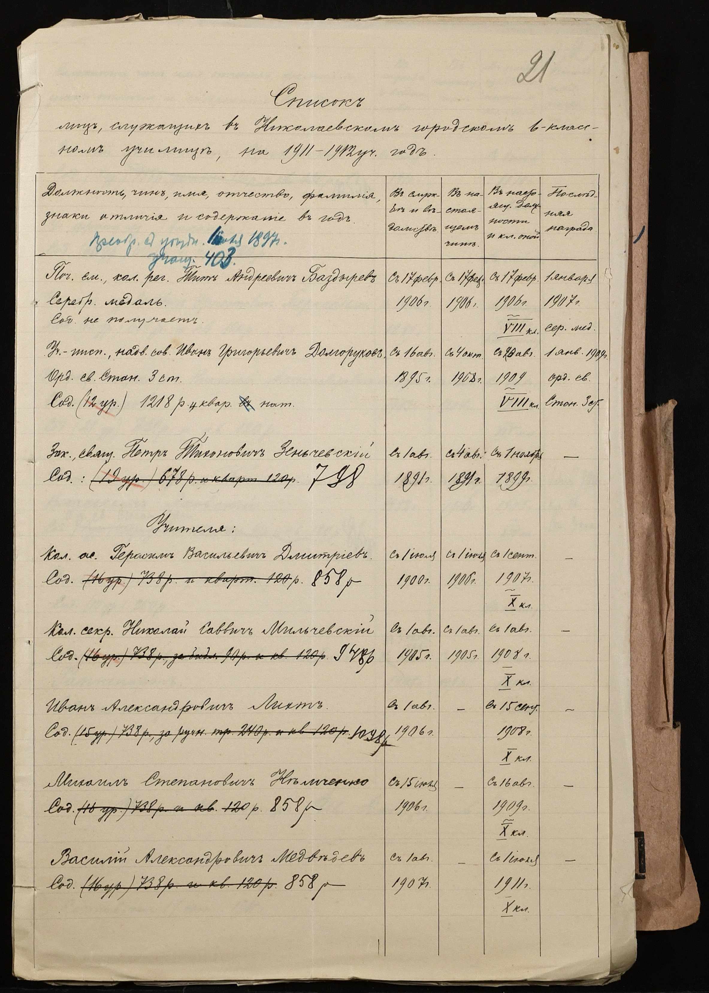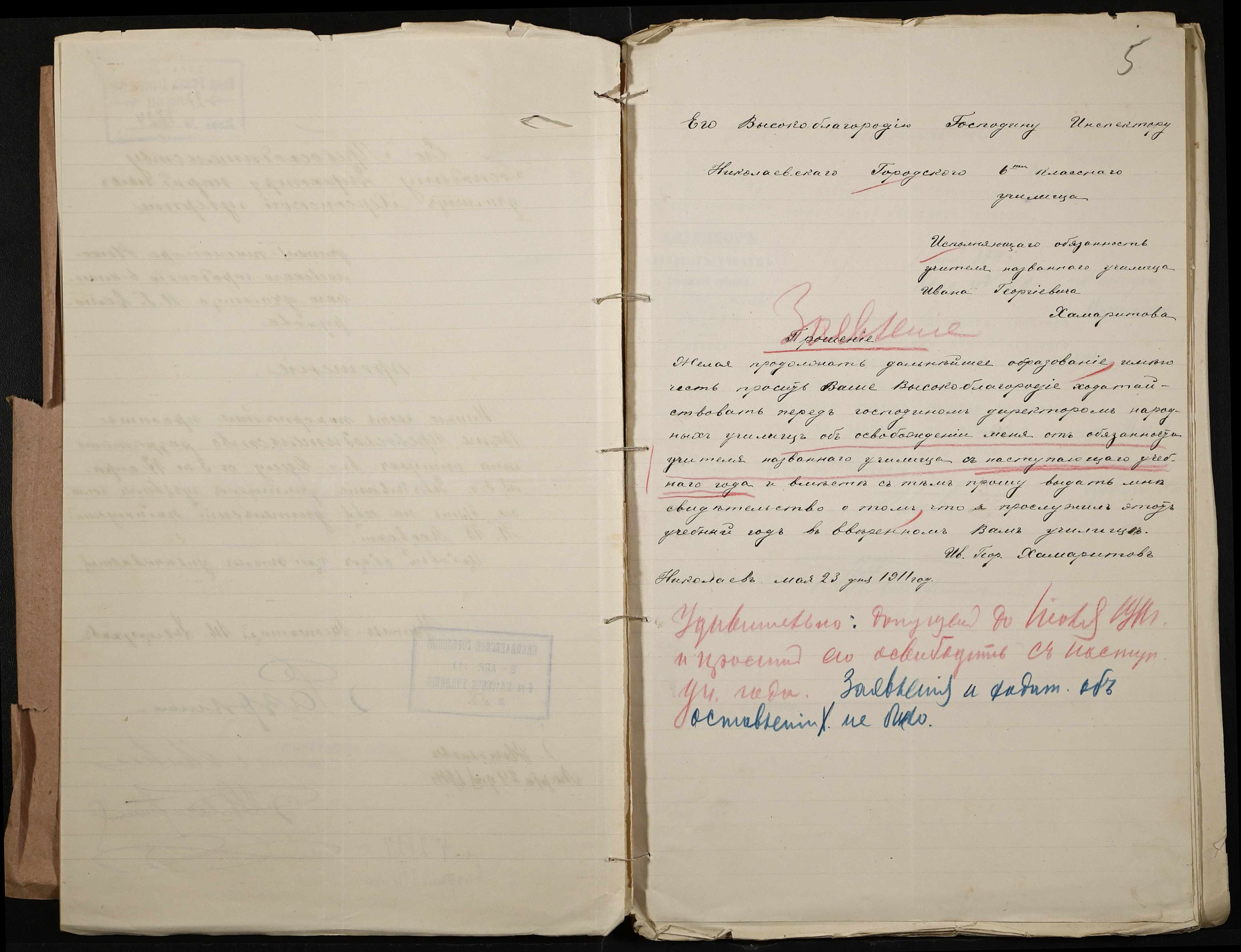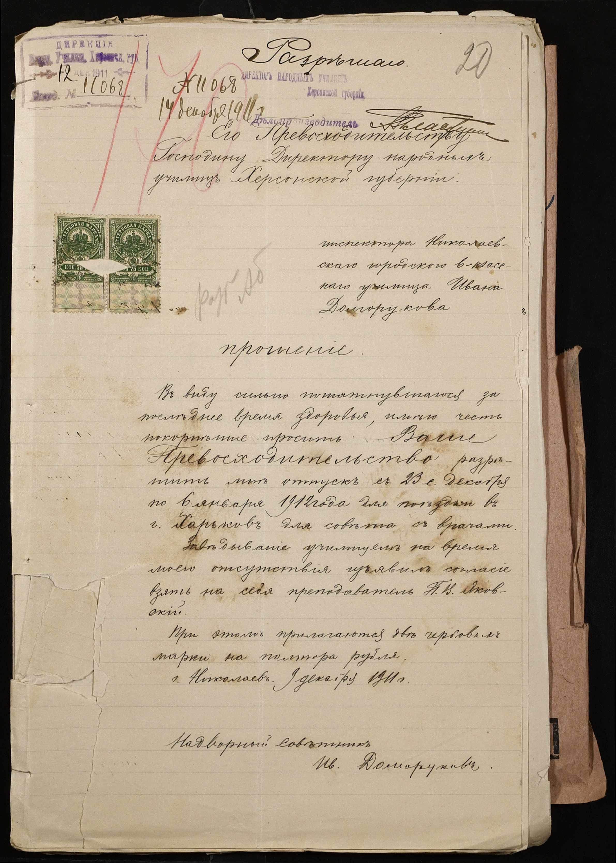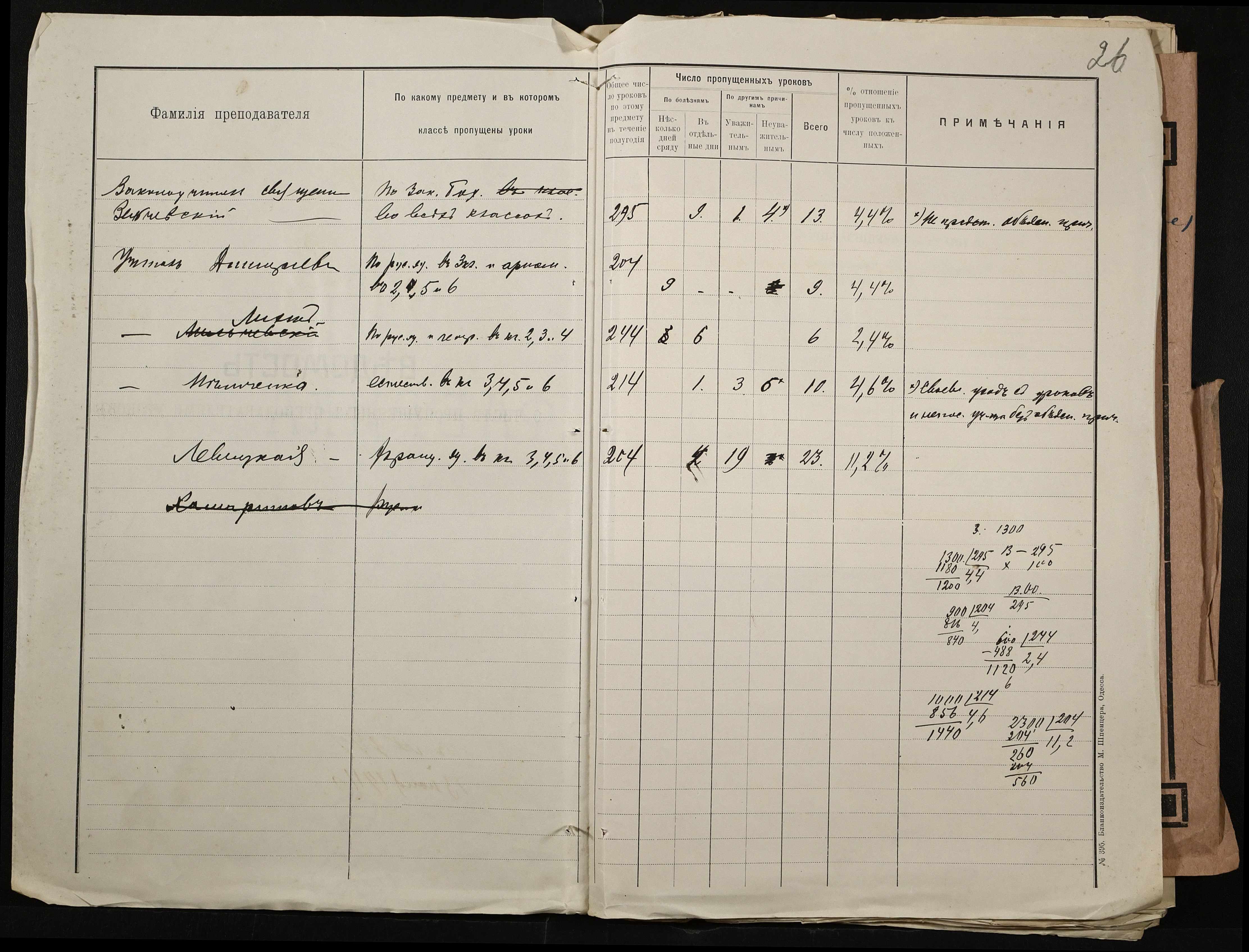 • • • • Справа № 447 “Відомості обліку уроків, на яких були відсутні викладачі, за II півріччя 1910-1911 навчальний рік, прохання викладачів про надання відпусток”
