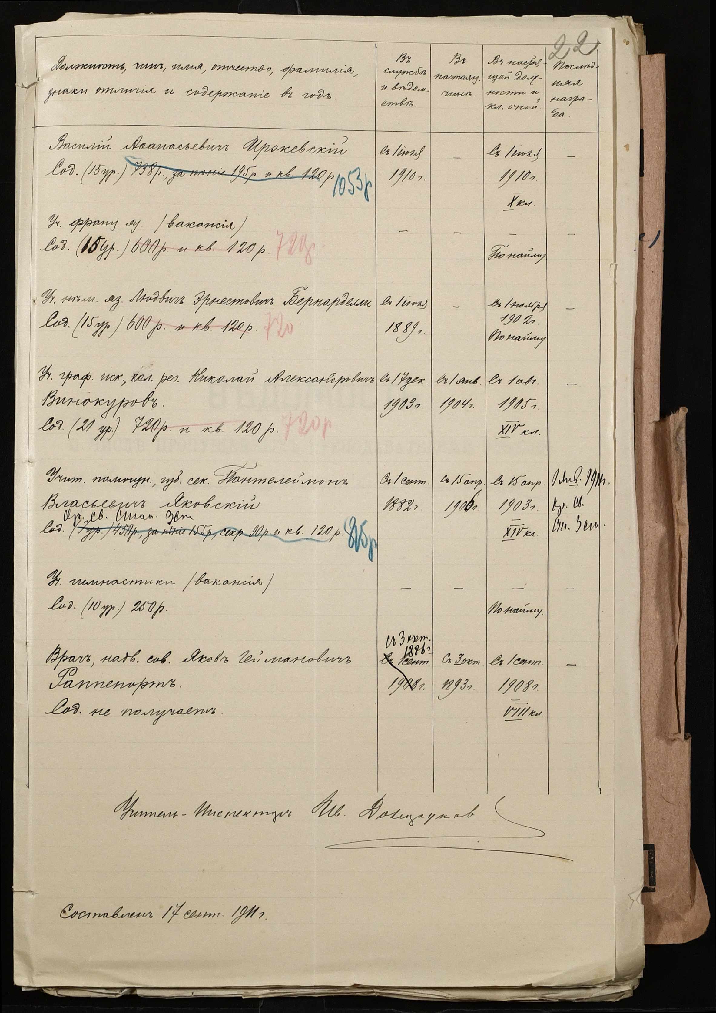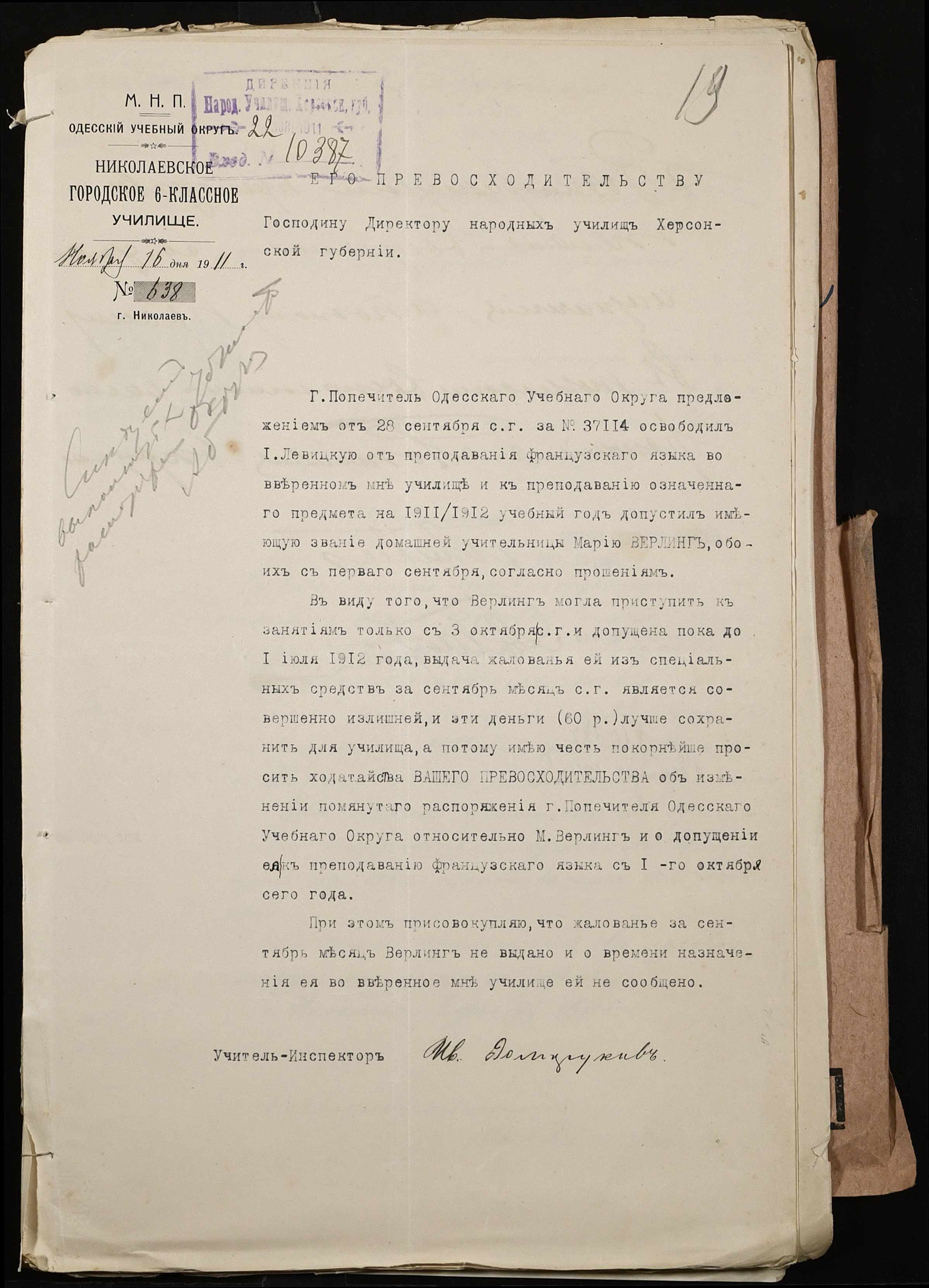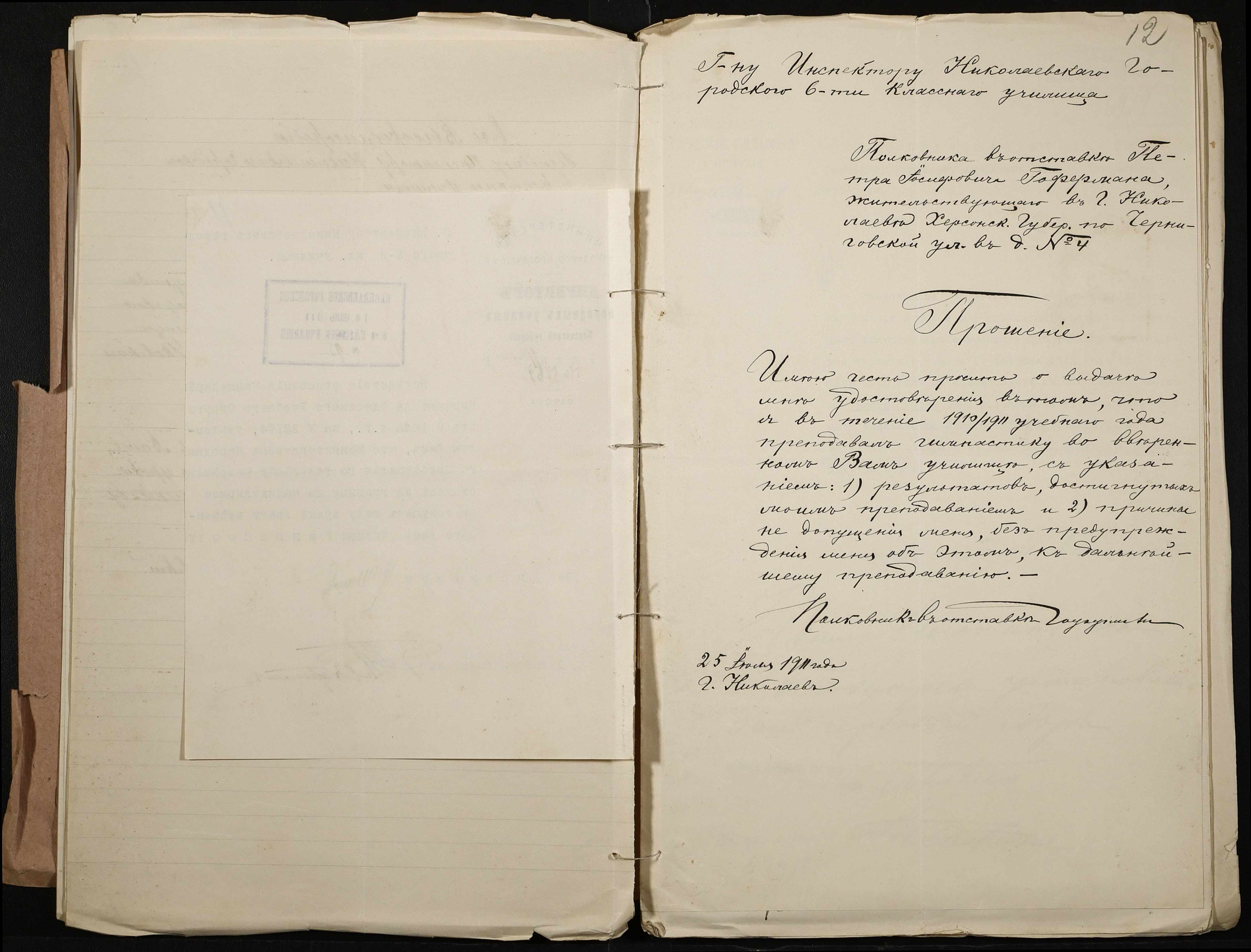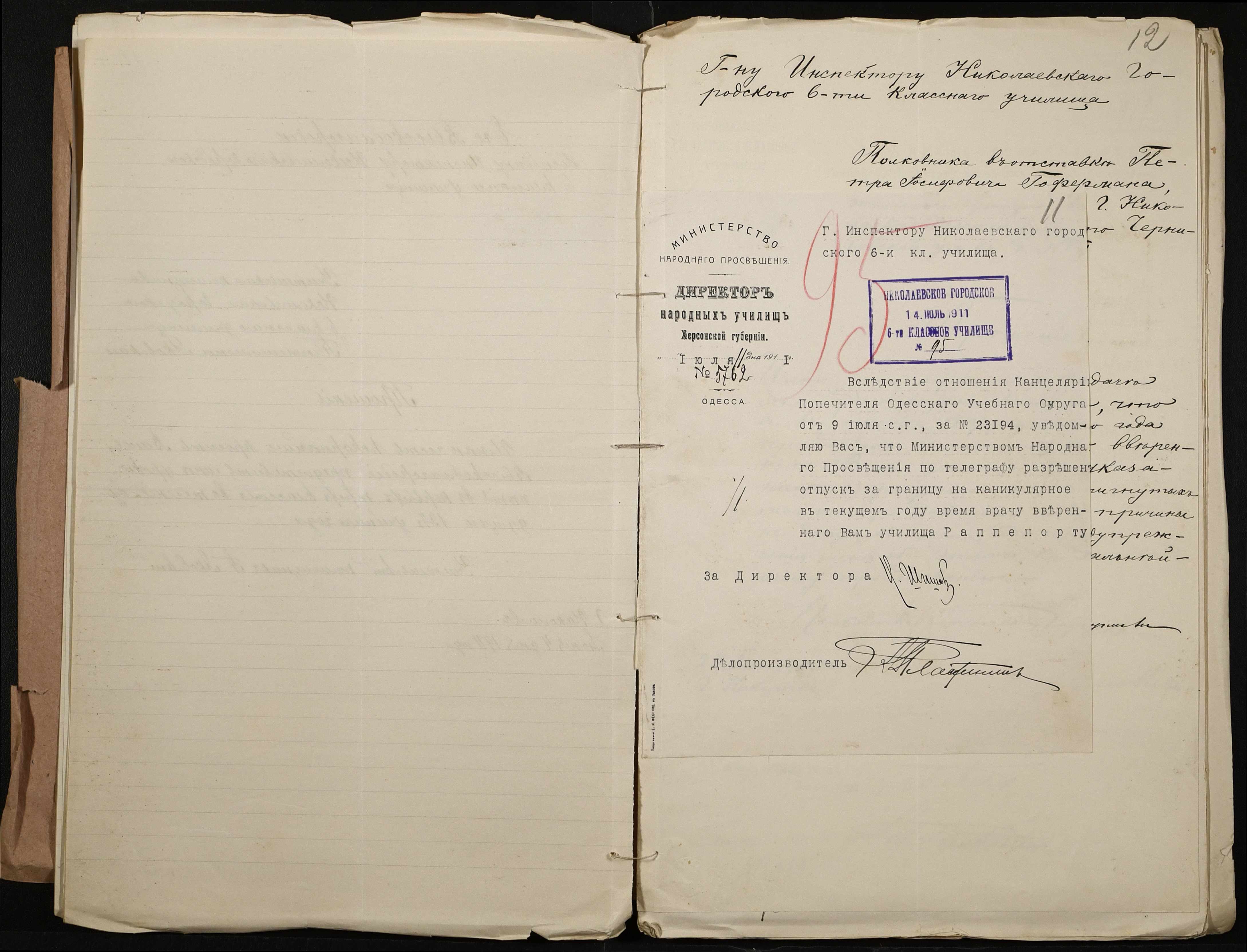 • • • • Справа № 447 “Відомості обліку уроків, на яких були відсутні викладачі, за II півріччя 1910-1911 навчальний рік, прохання викладачів про надання відпусток”